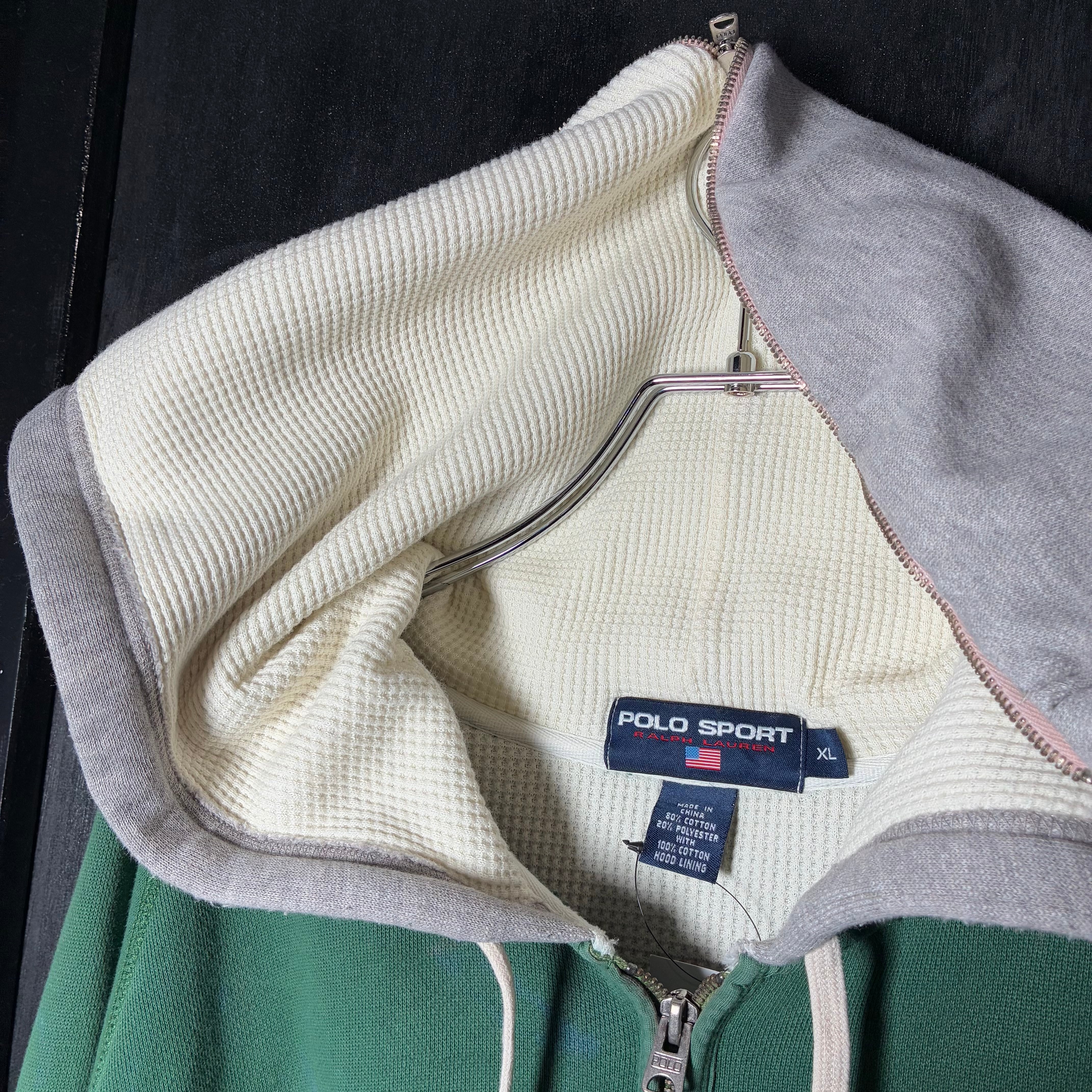 90s POLO SPORT ジップパーカー ヴィンテージパーカー ポロスポーツ ラルフローレン ナンバリング フード裏サーマル 切替カラー USA古着 ストリート 古着