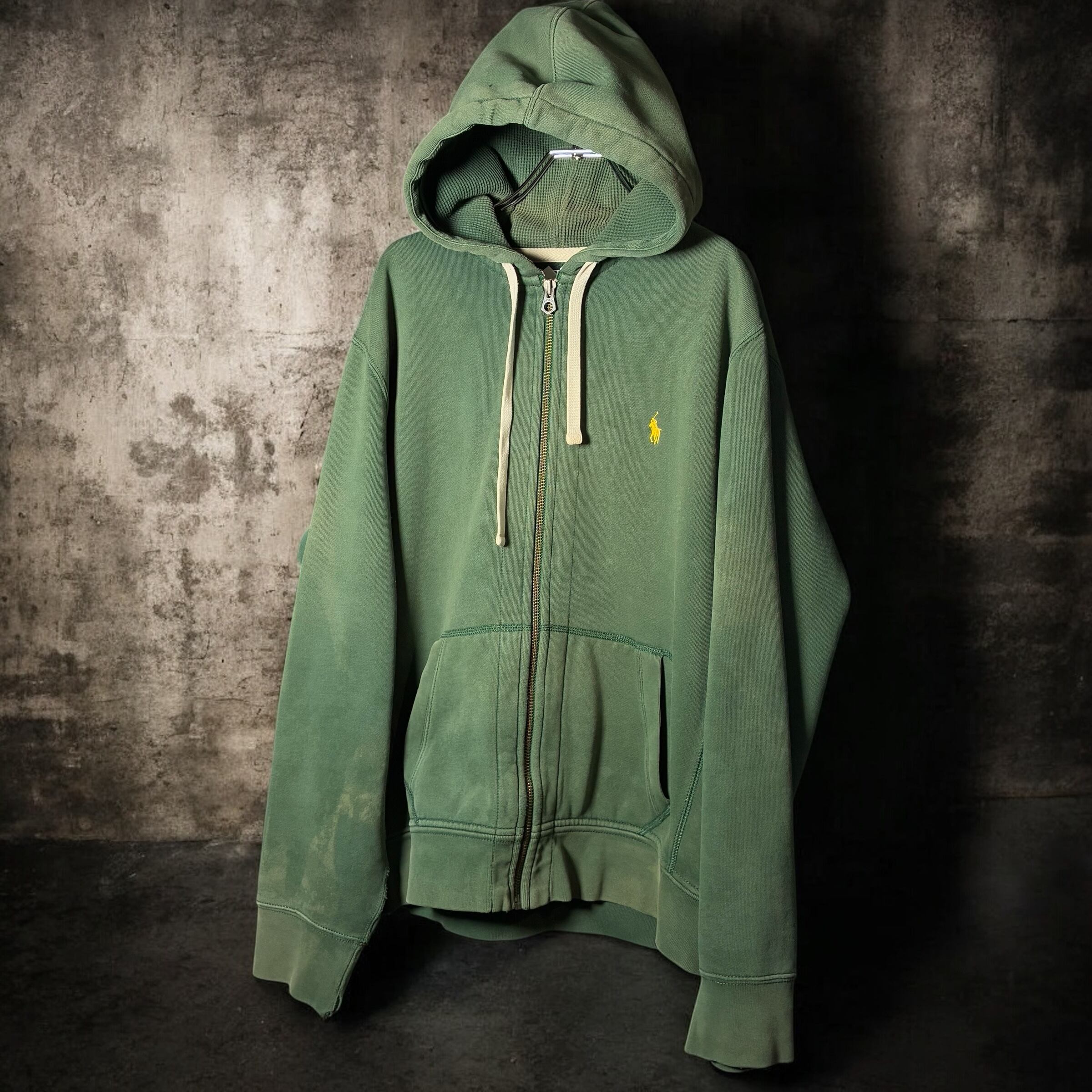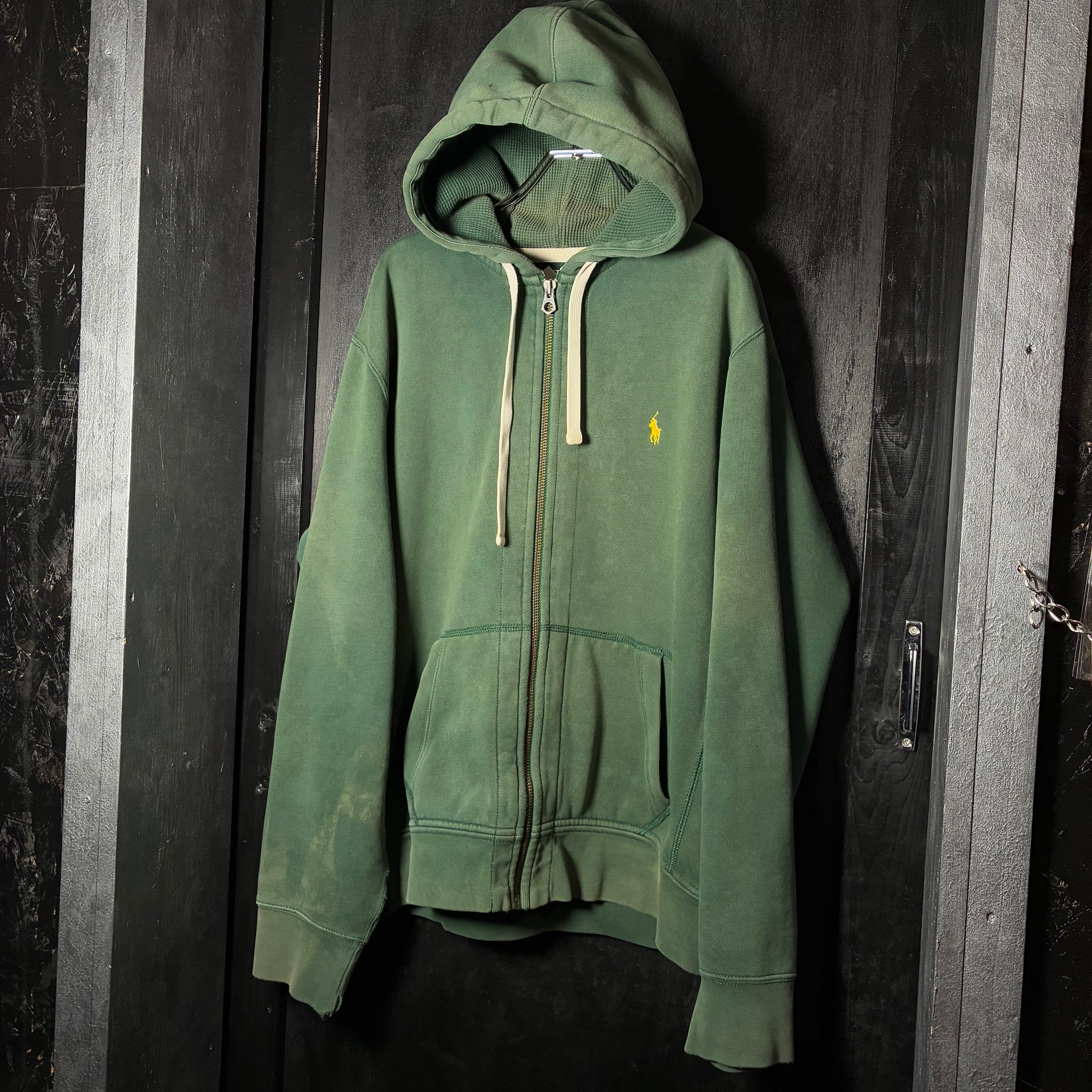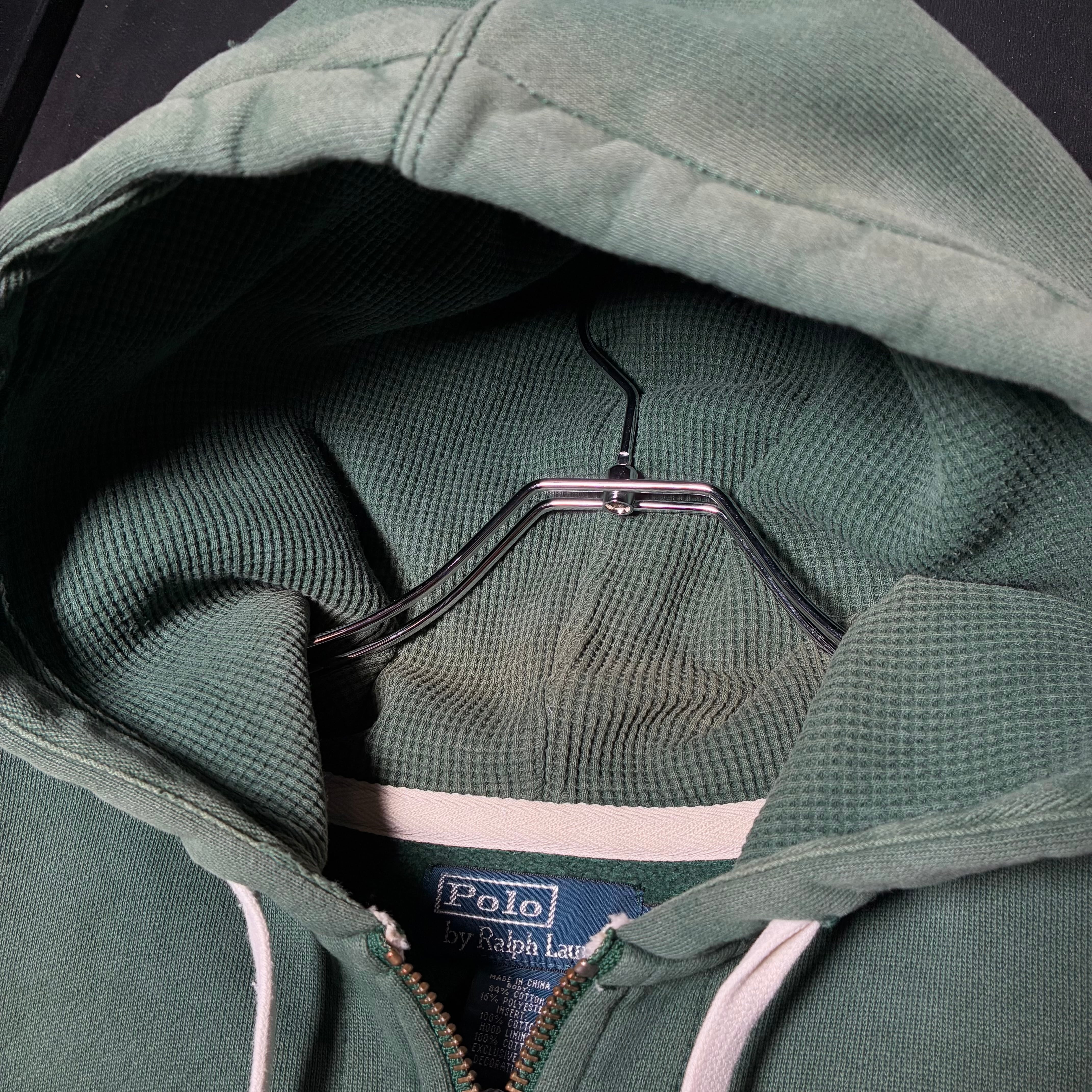90s POLO RALPH LAUREN ジップパーカー 極上フェード 緑 フード裏サーマル ラルフ