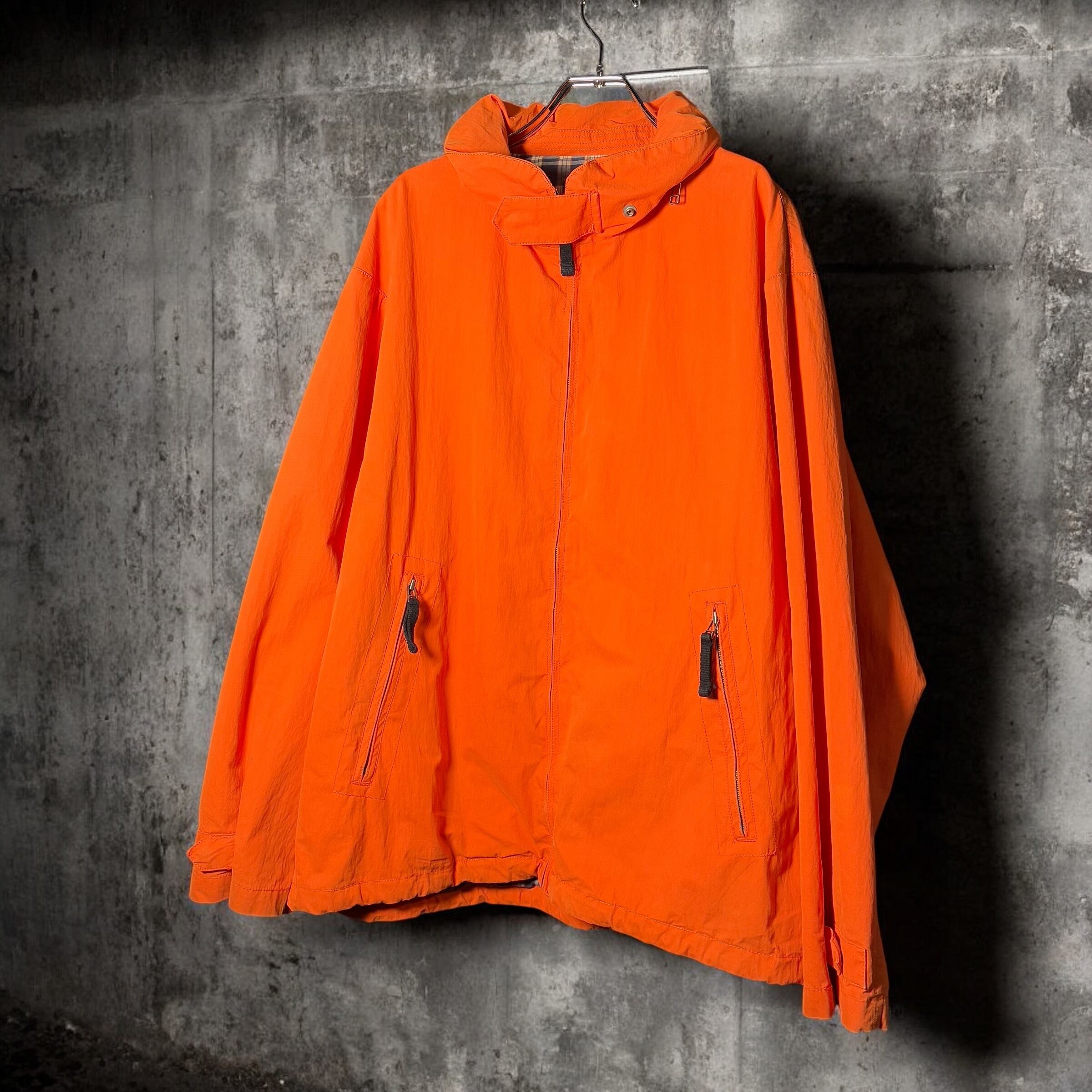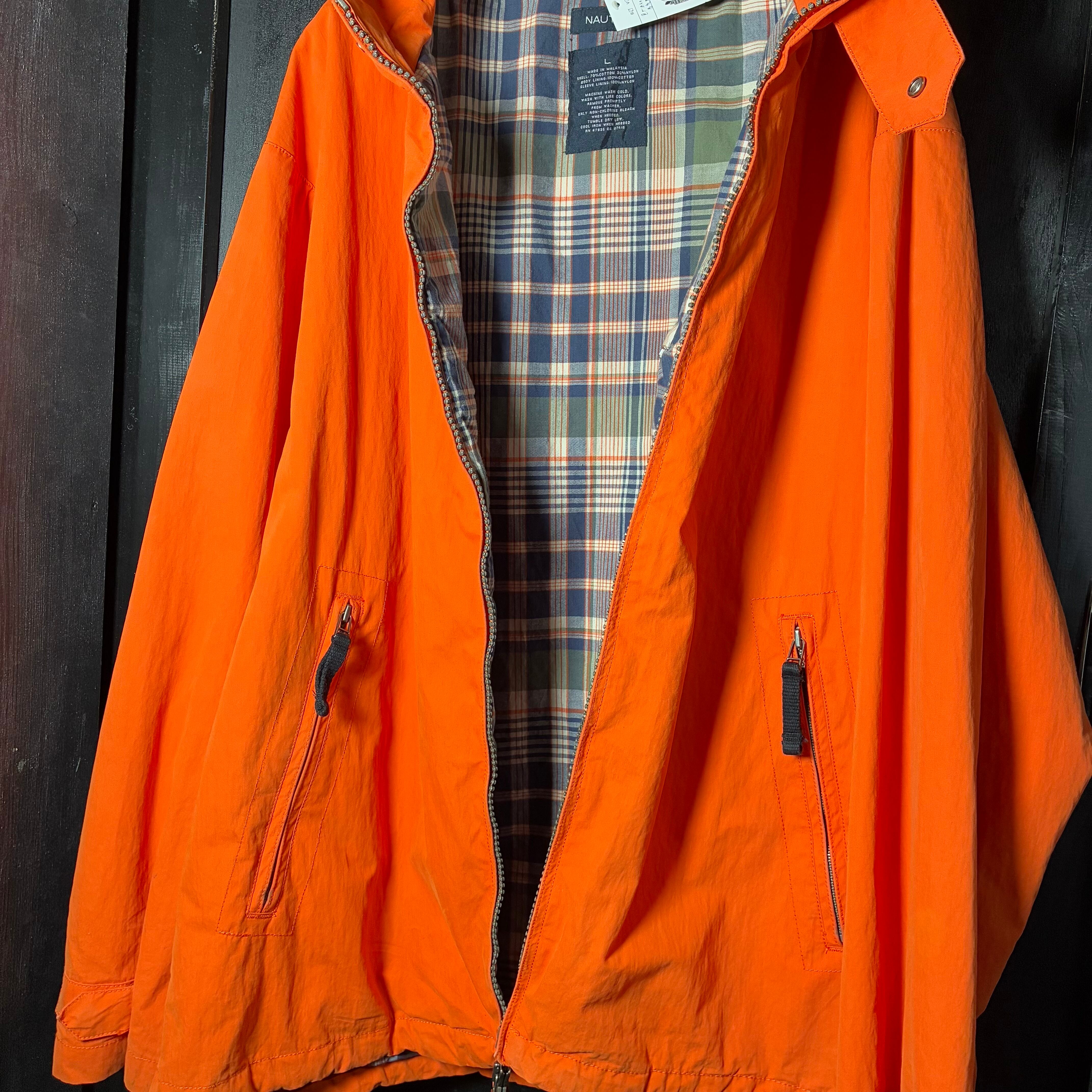 NAUTICA ナイロンジャケット オレンジ アウトドア ヴィンテージ ブルゾン チェック裏地 ストリート 古着