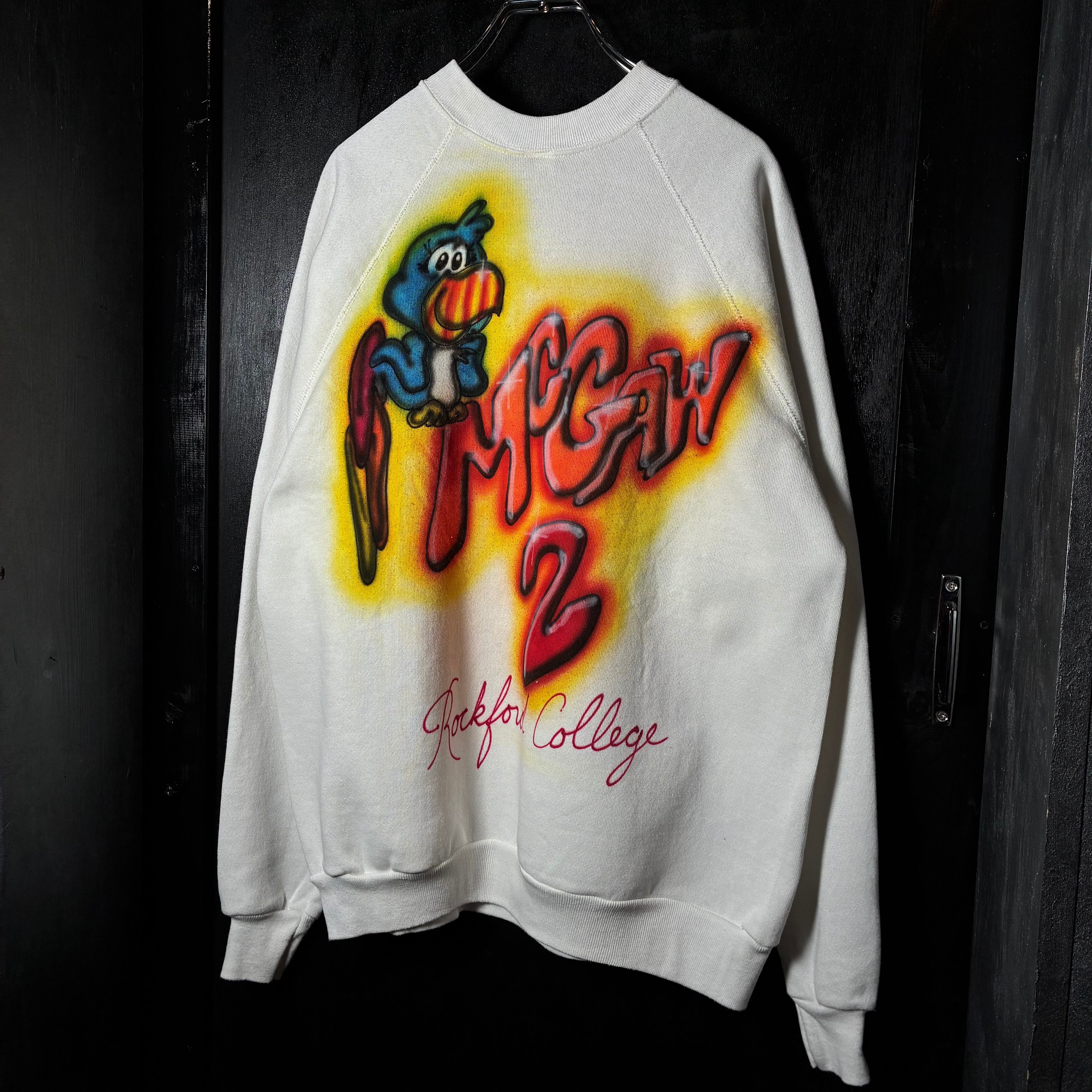 90s USA製 TULTEX ハンドペイントヴィンテージスウェット グラフィック ラグラン 白