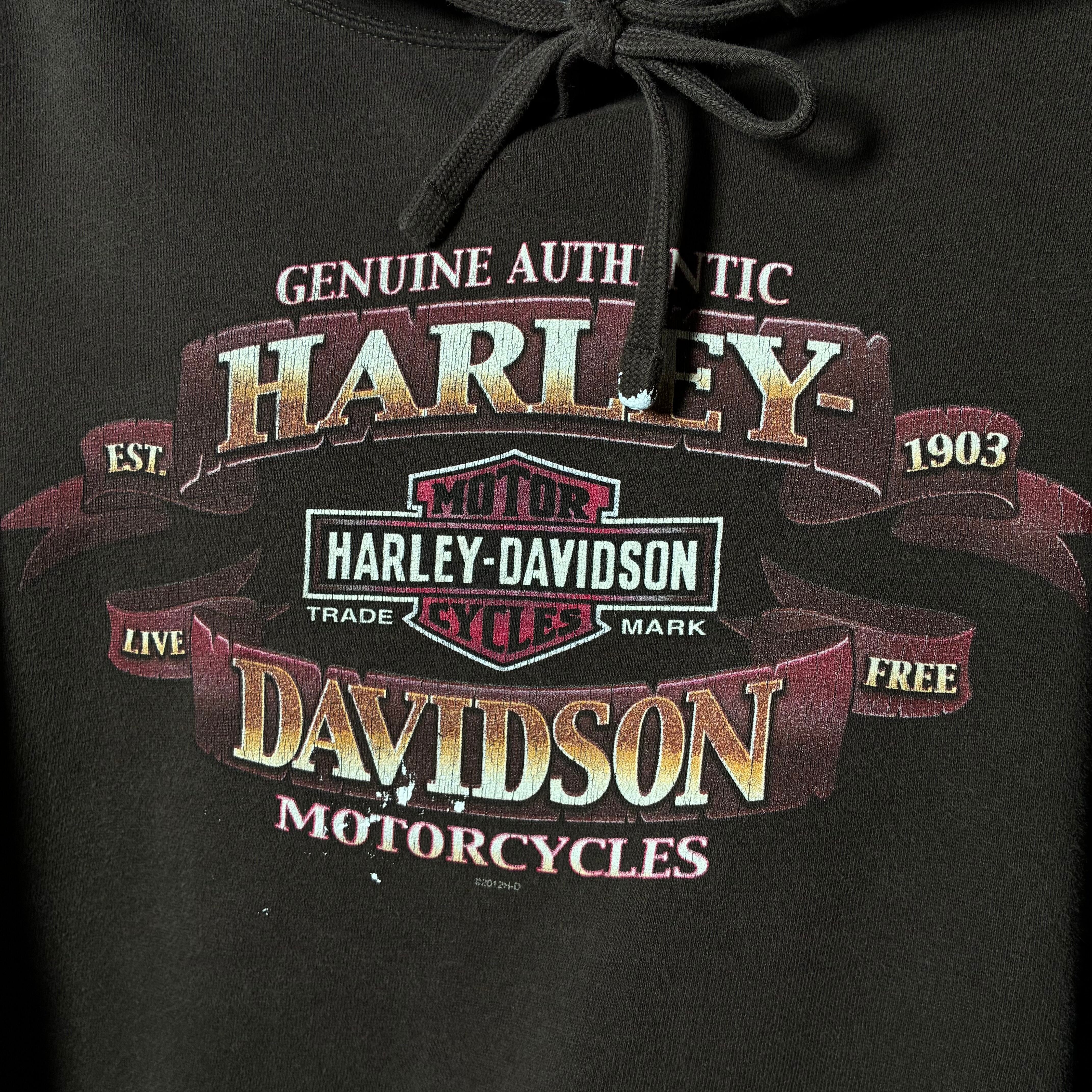 Harley-Davidson ハーレーダビッドソン ハーレーパーカー バックプリント スカル No1 フーディ フルプリント フェード ヴィンテージ 古着 アメカジ バイカー