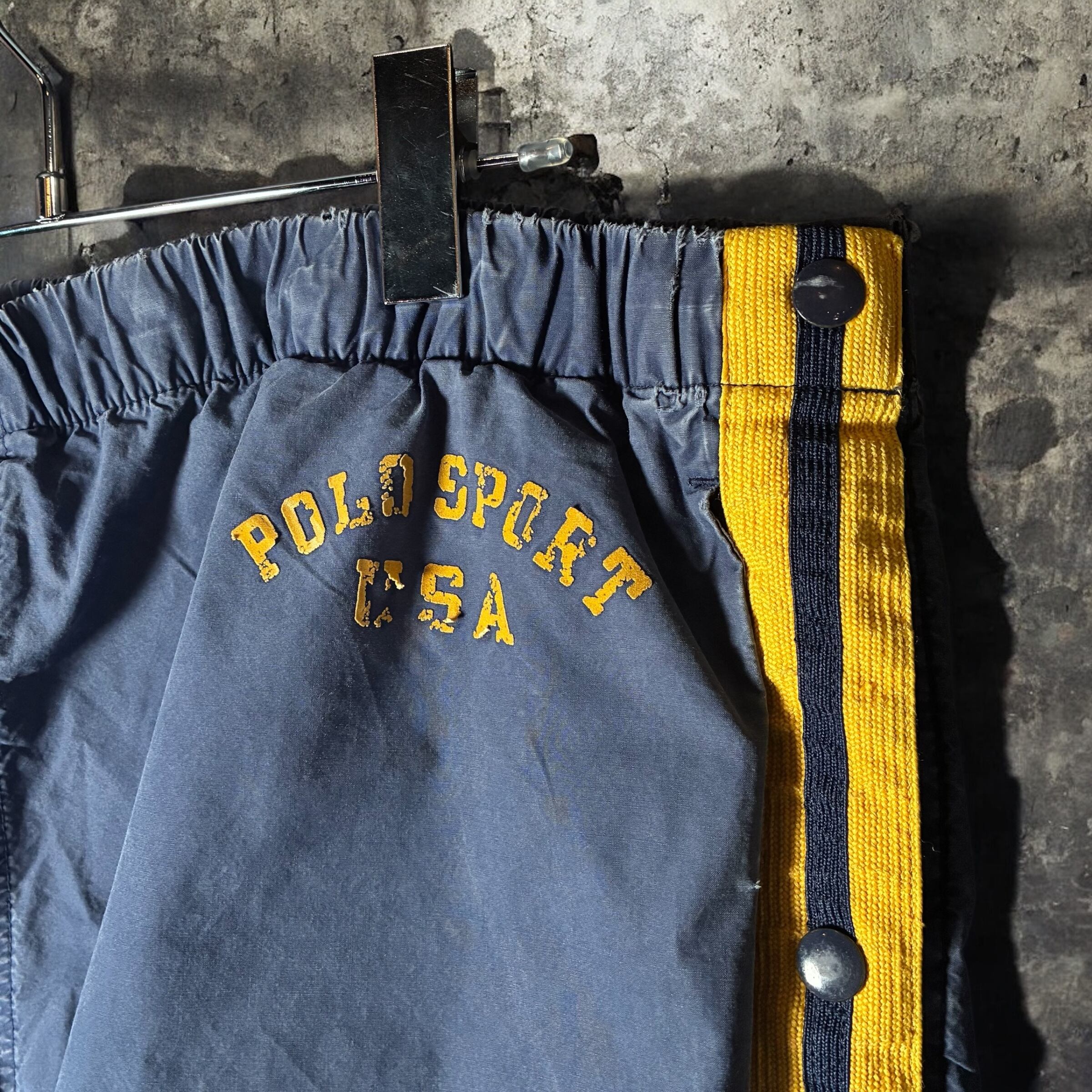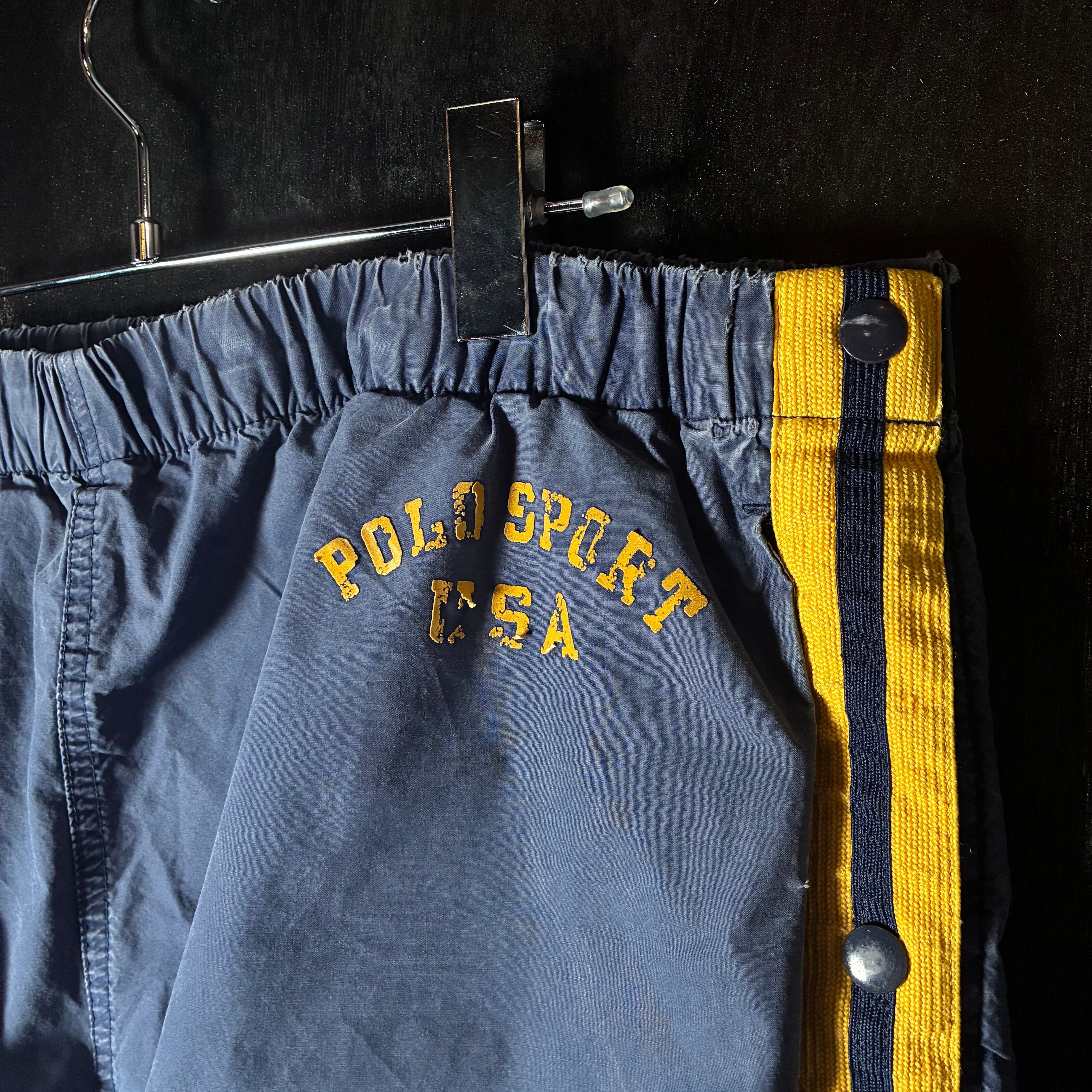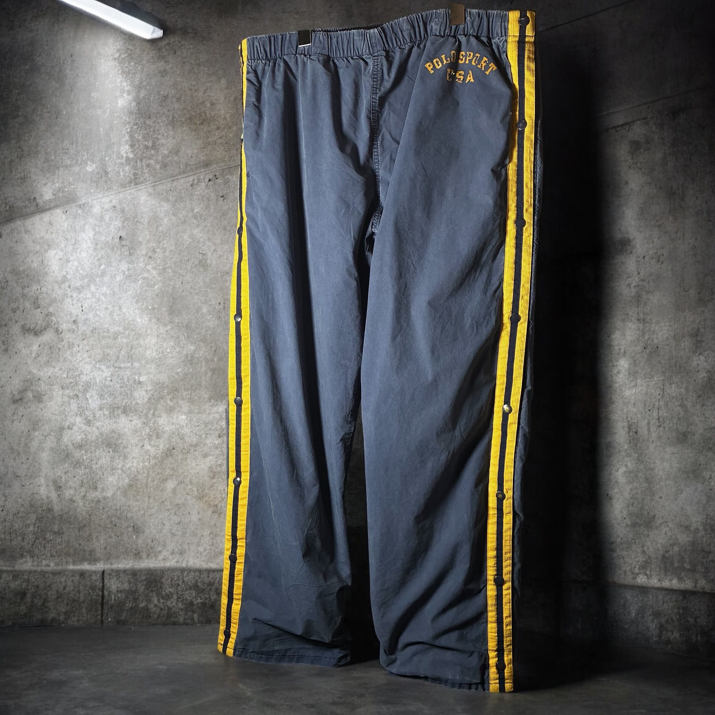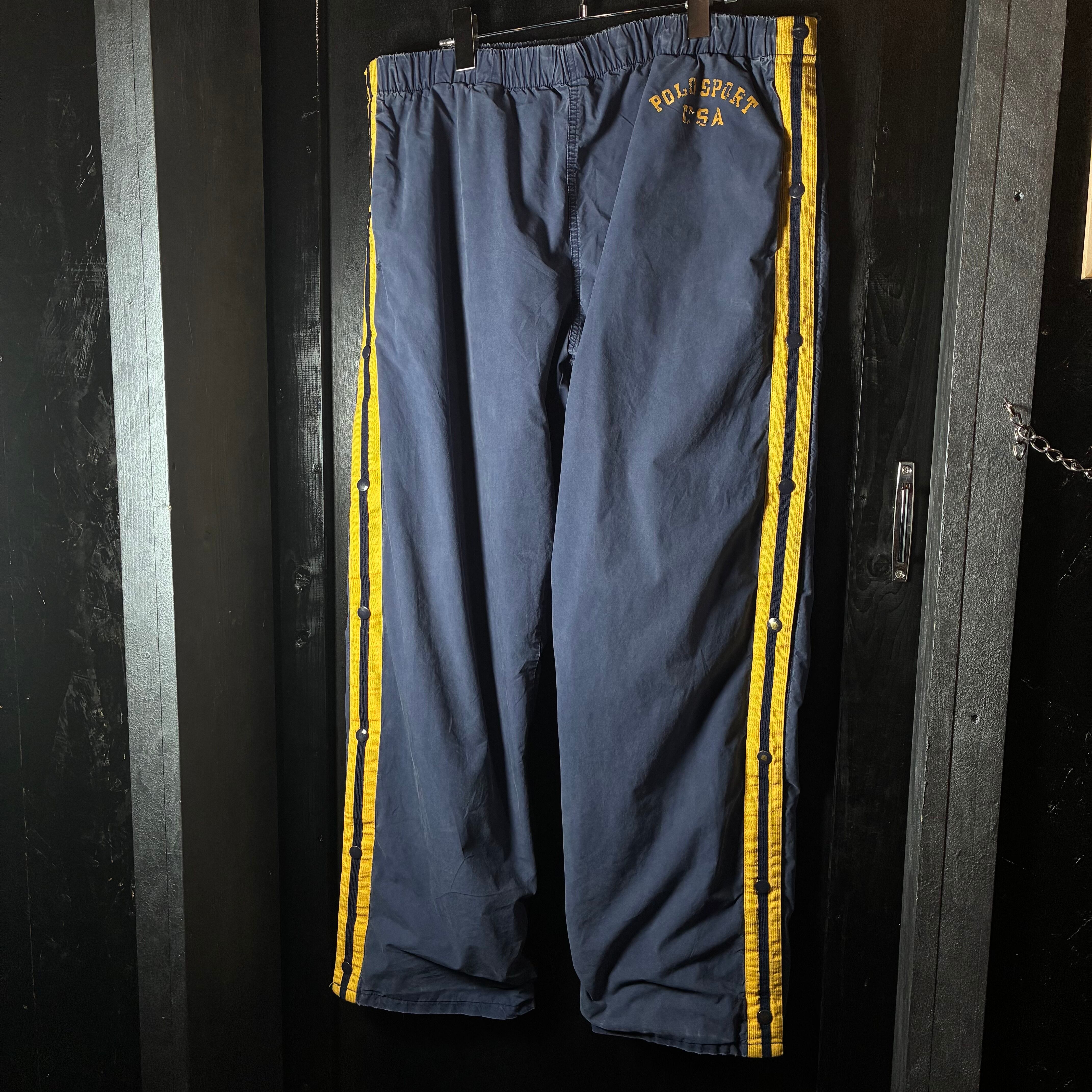 90s POLO SPORT コットントラックパンツ フェードネイビー×黄色サイドライン ポロスポーツ