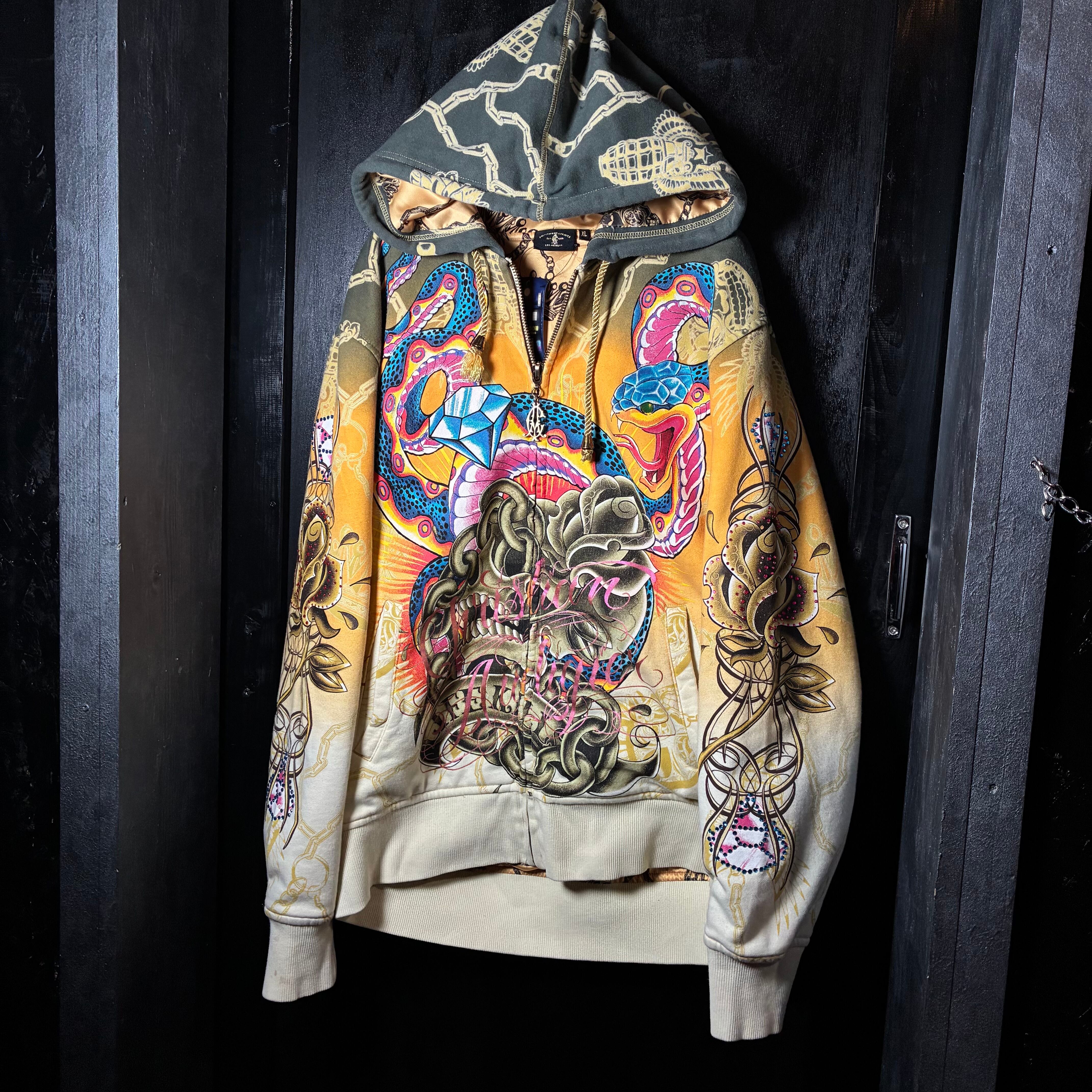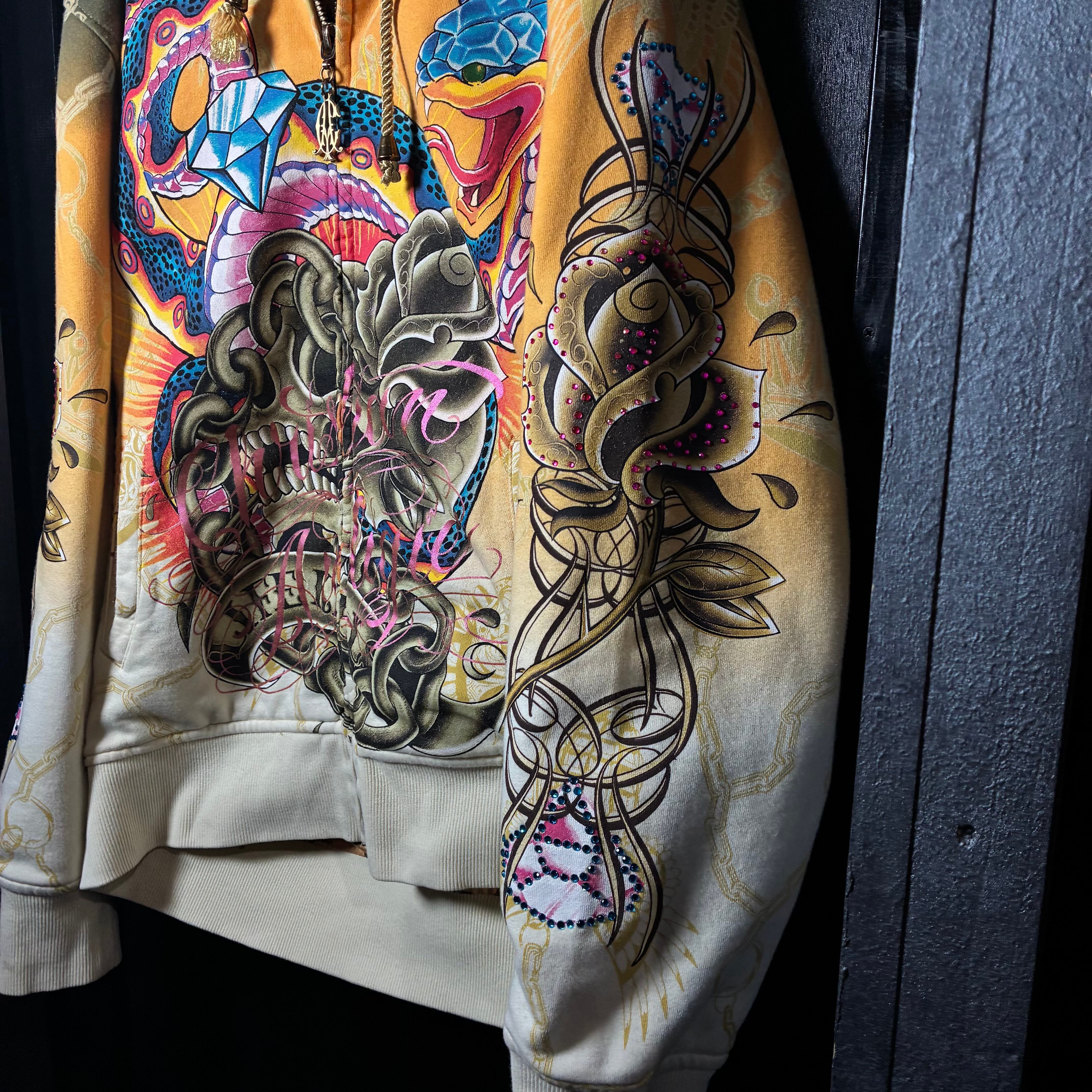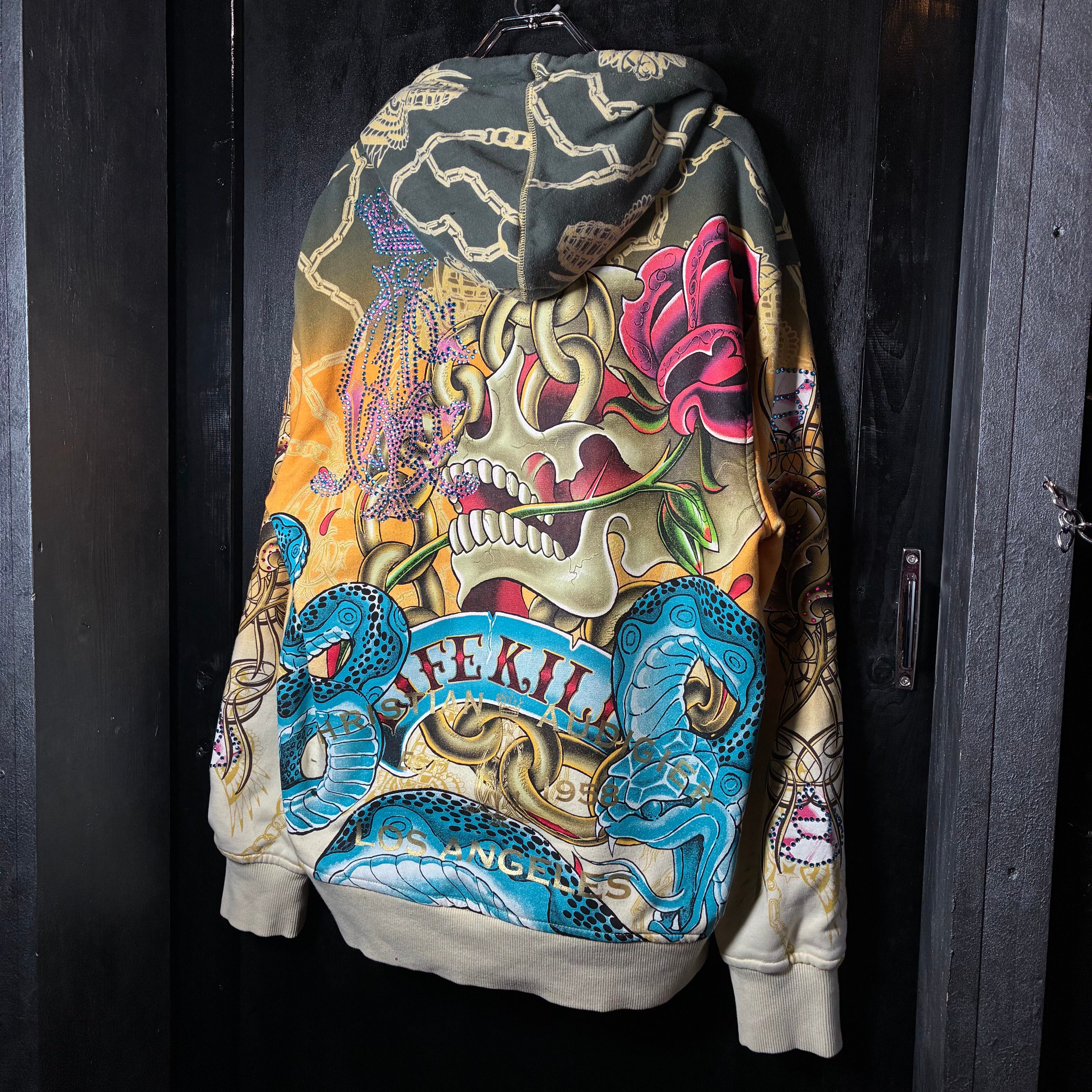 クリスチャンオードジェー, ChristianAudigier, Y2K, スカルパーカー, ジップパーカー, ラインストーン, タトゥーデザイン, ヒップホップ, ストリート, 派手パーカー,