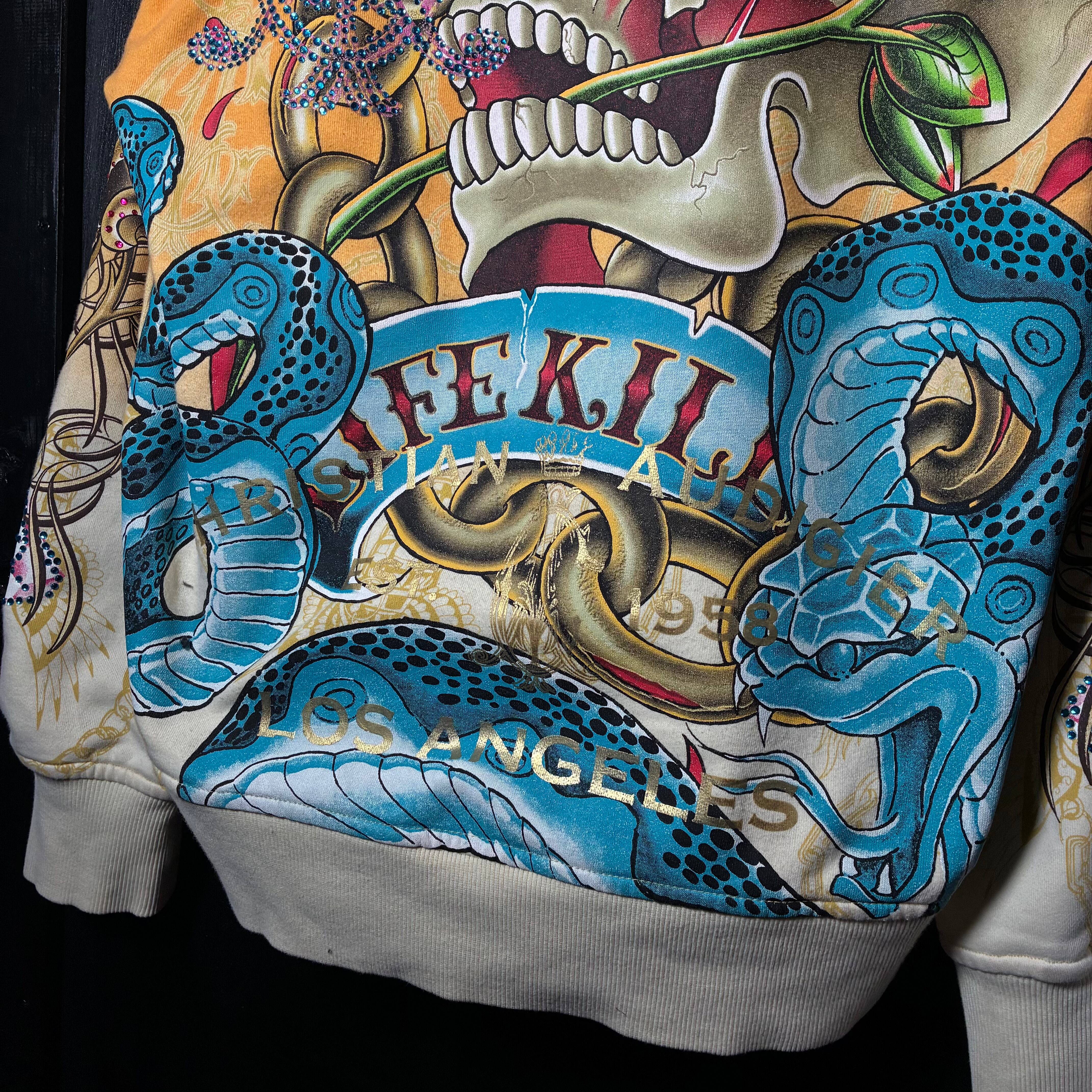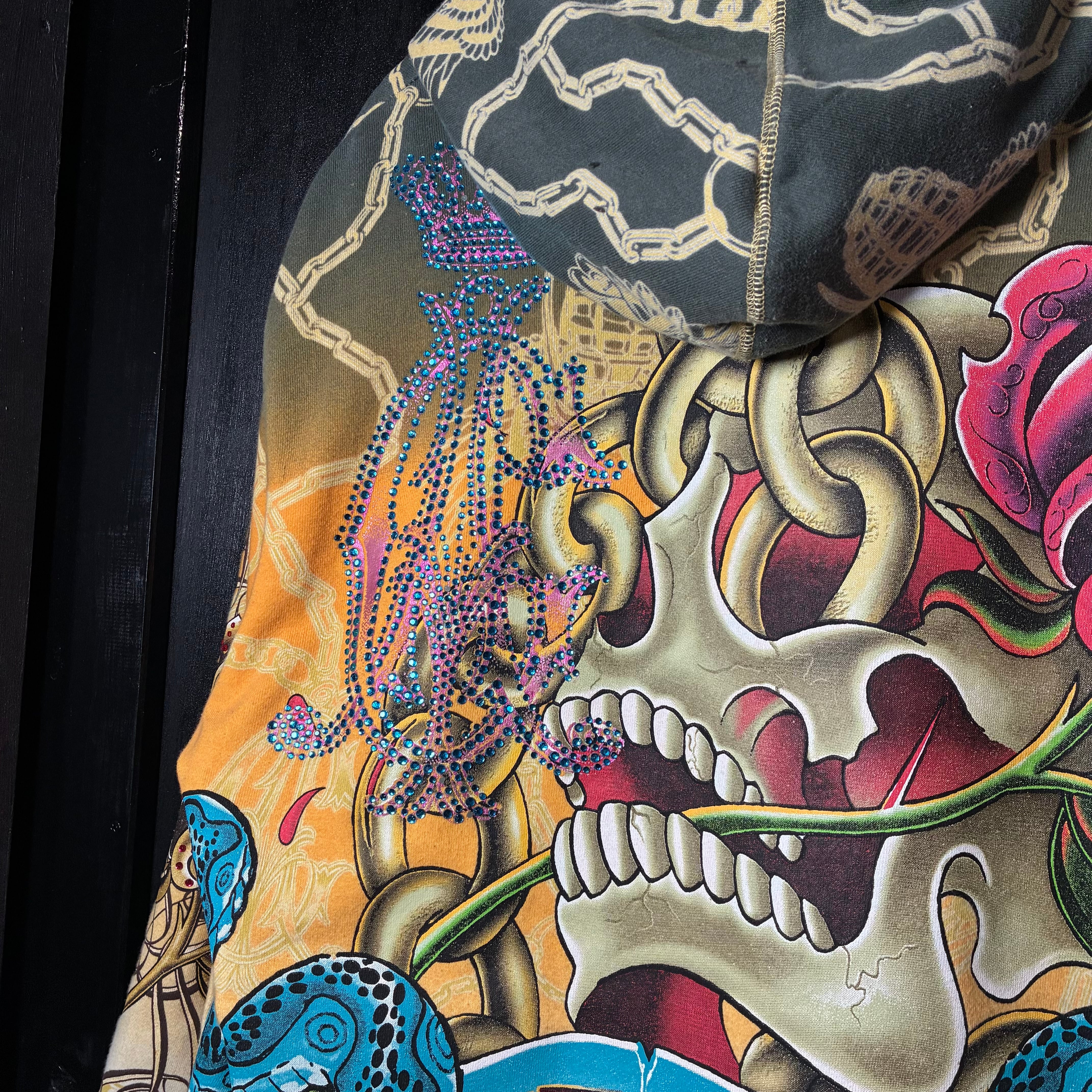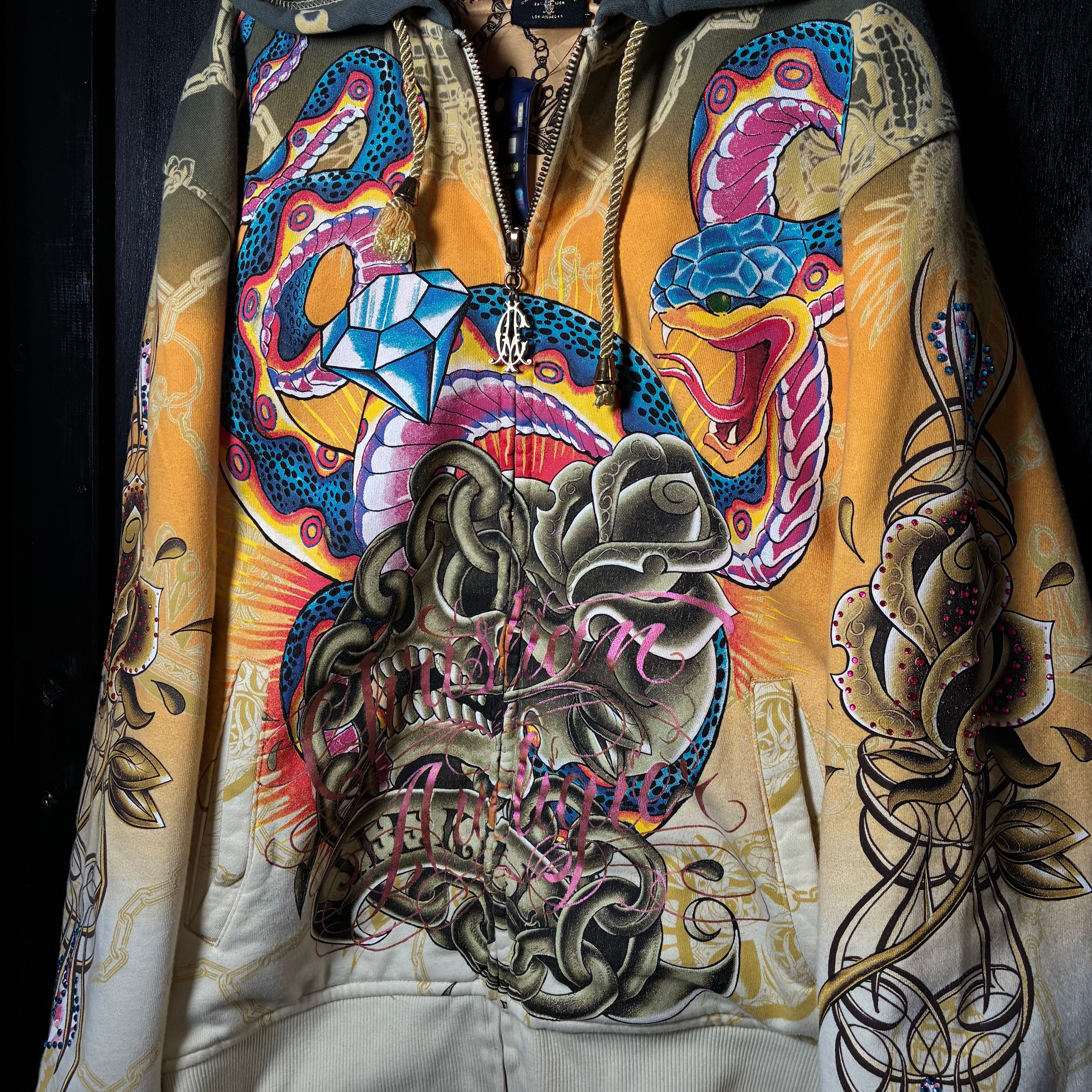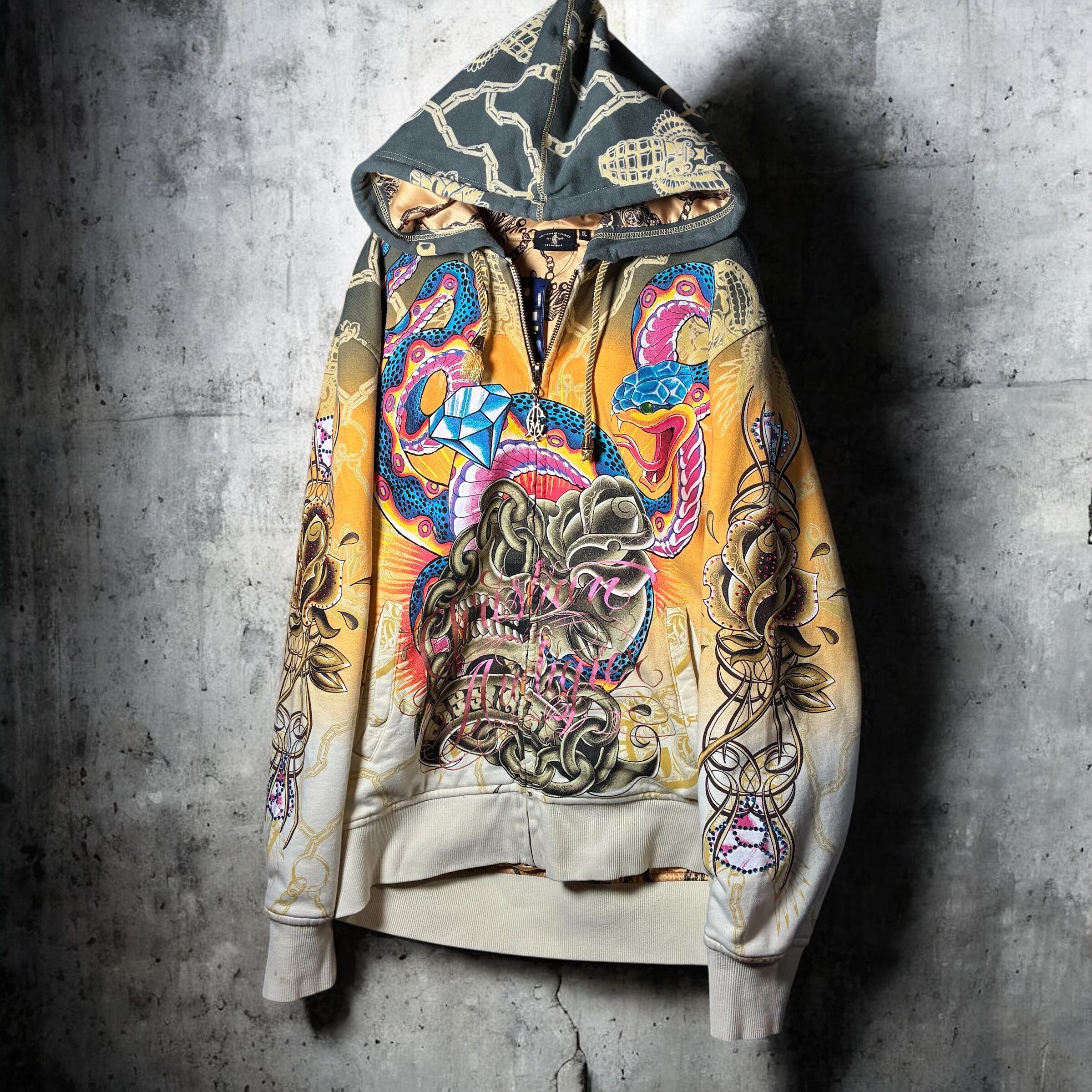 クリスチャンオードジェー, ChristianAudigier, Y2K, スカルパーカー, ジップパーカー, ラインストーン, タトゥーデザイン, ヒップホップ, ストリート, 派手パーカー,