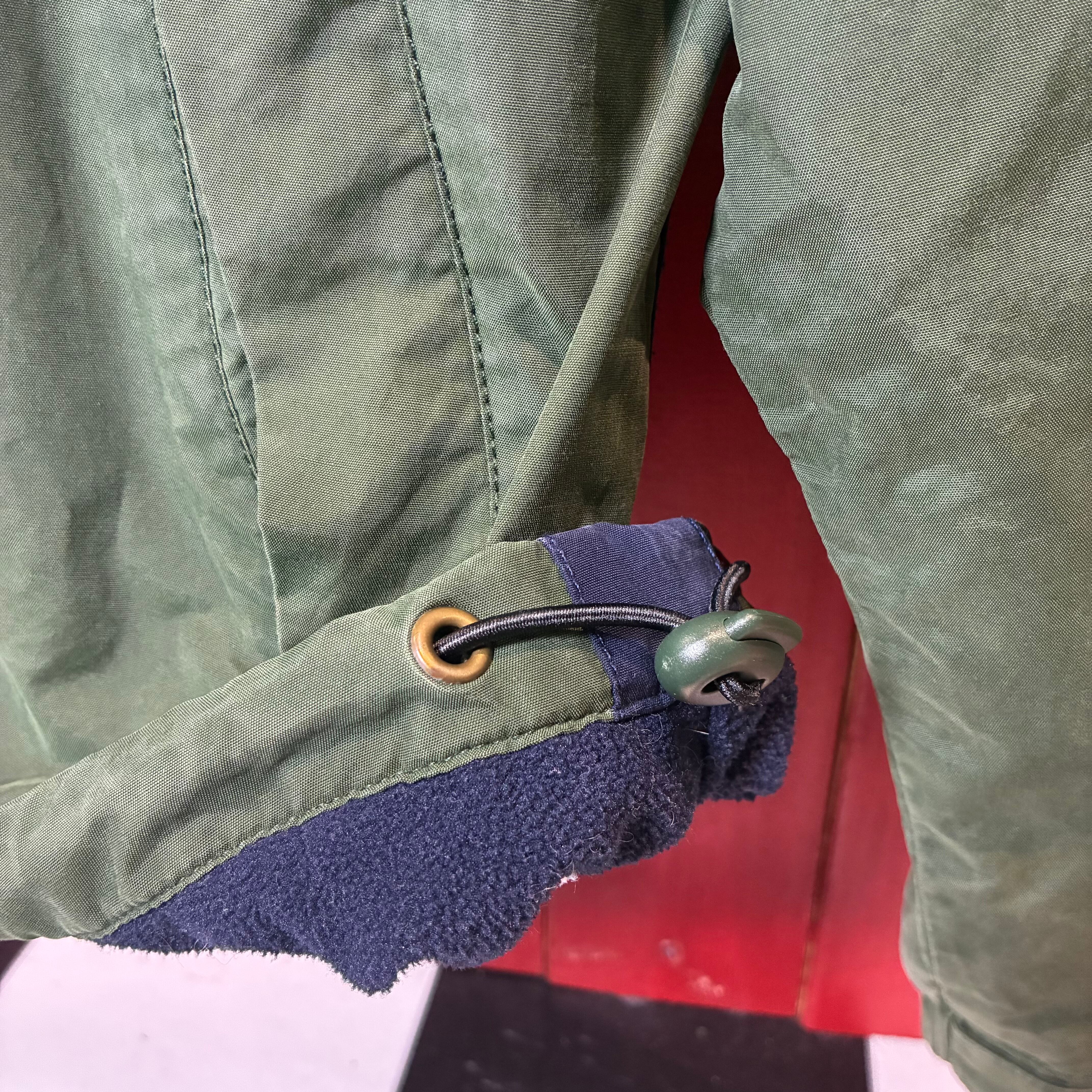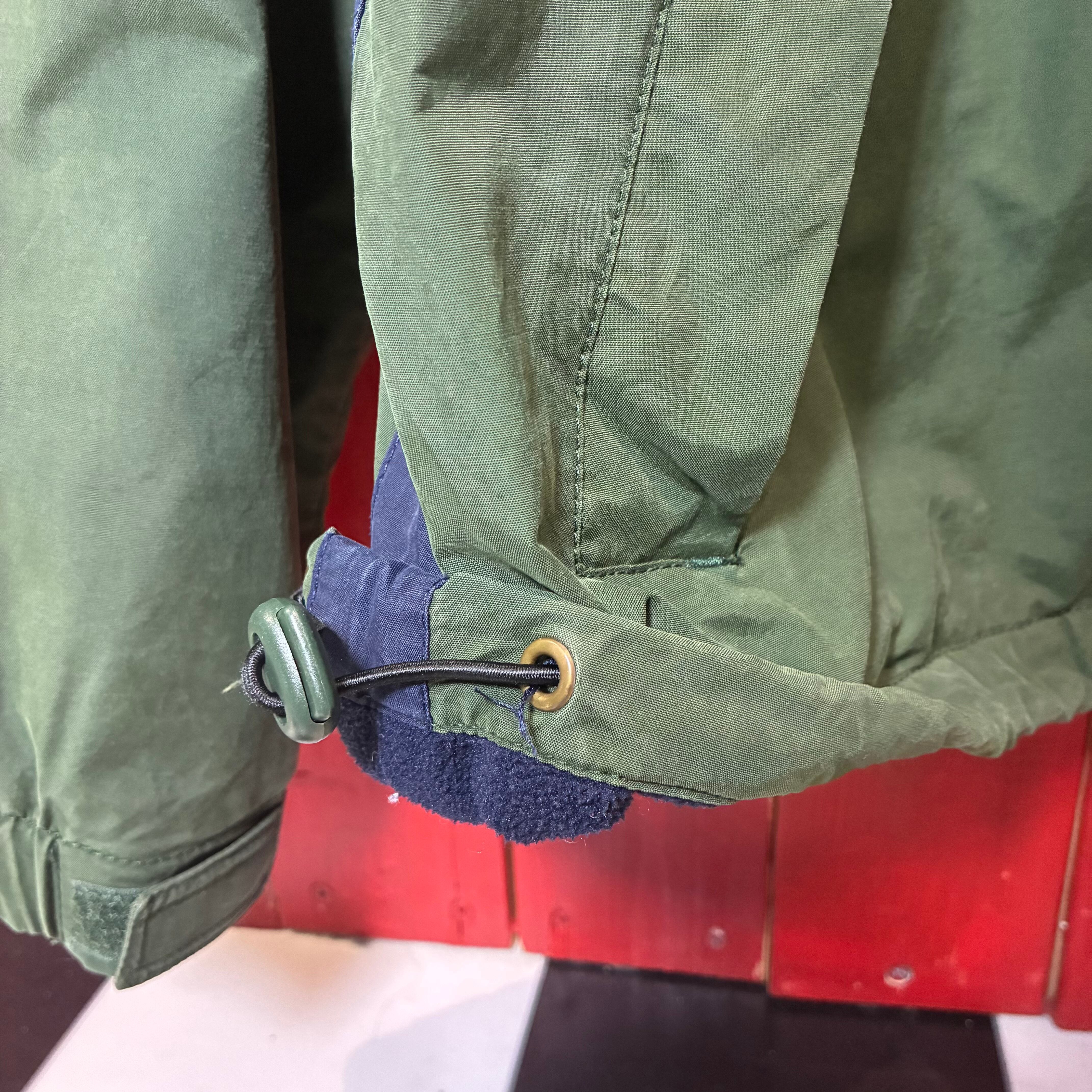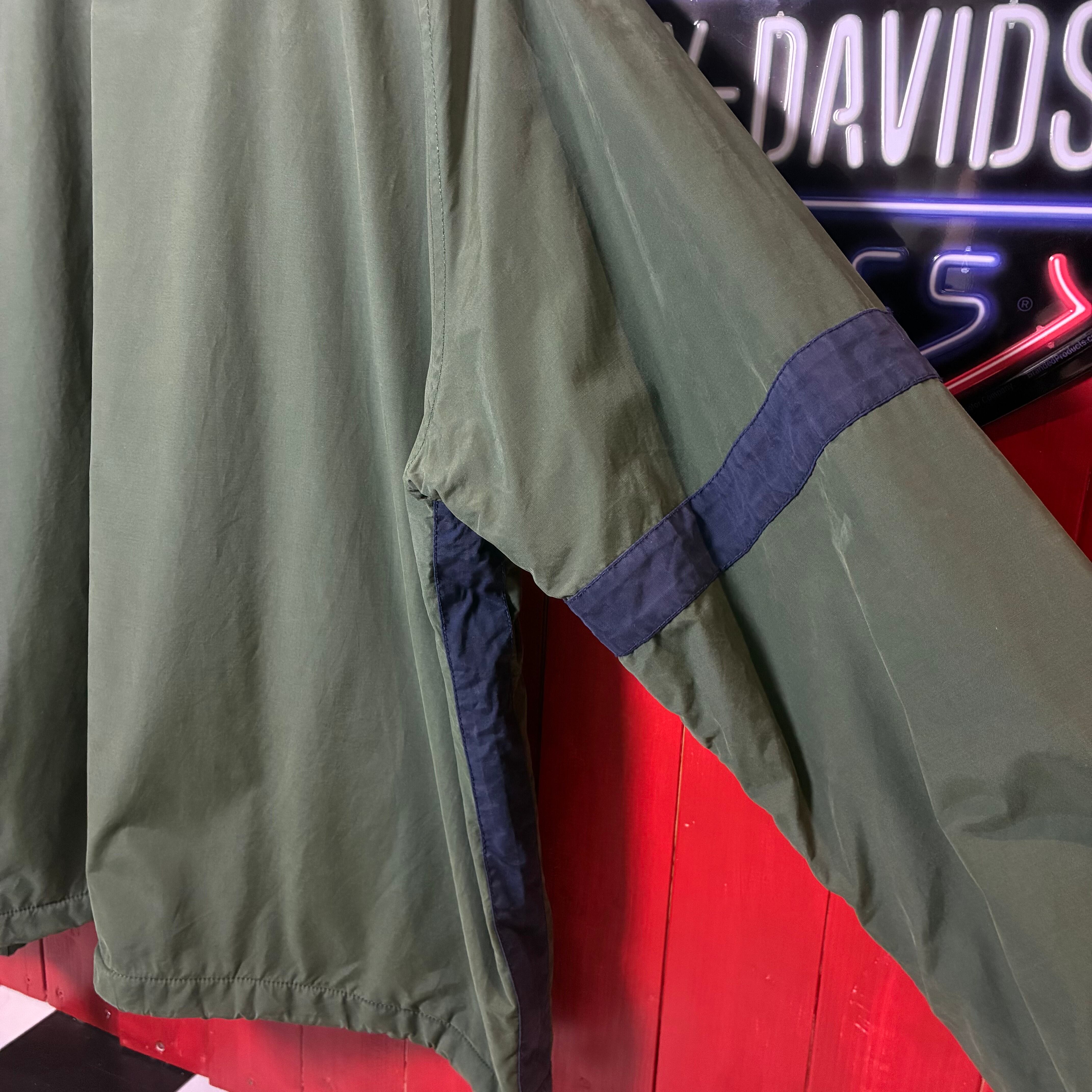 90s TOMMY HILFIGER ナイロンウォームアップジャケット カーキ×ネイビー ドローコード付き