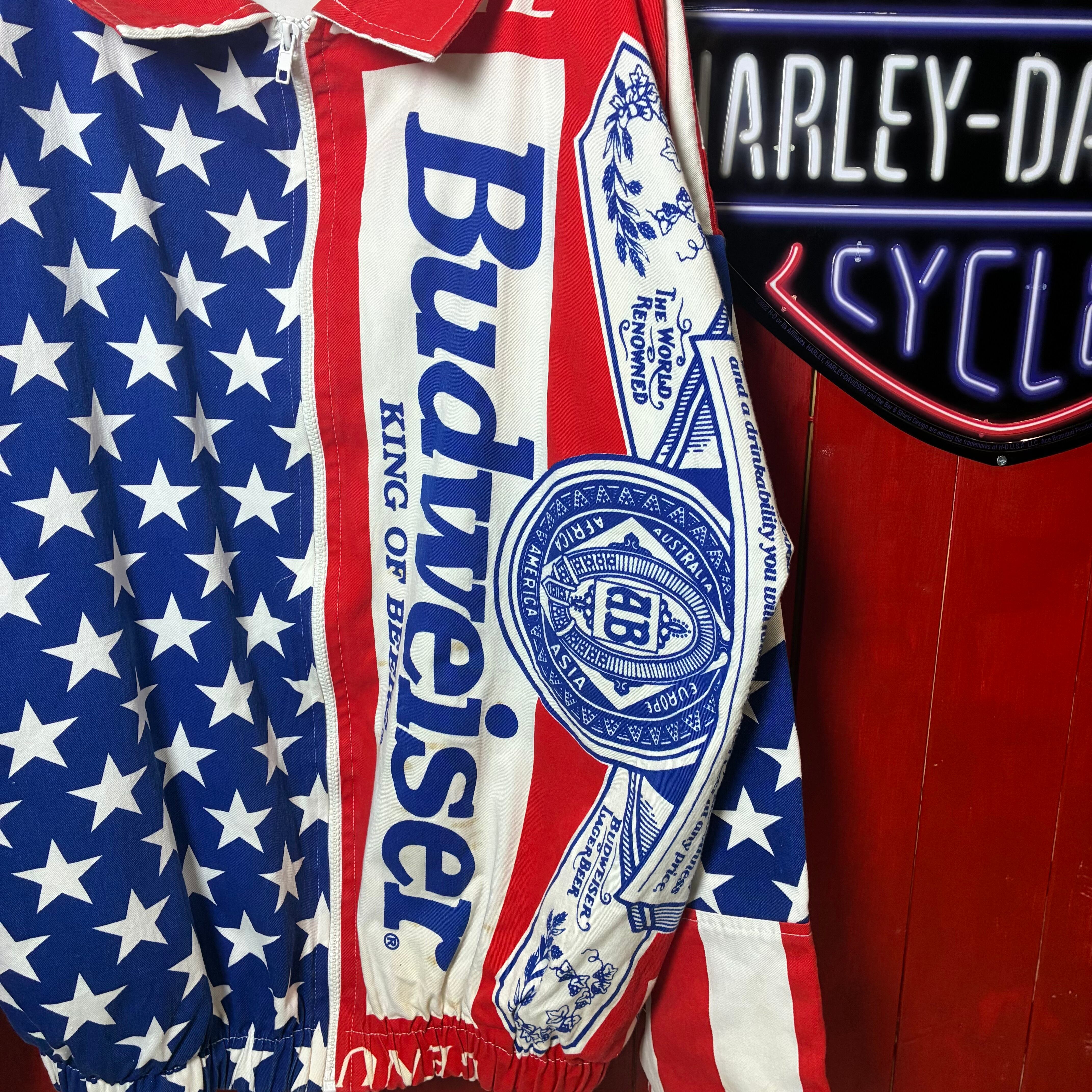 Budweiser レーシングジャケット 90s USA製 企業ロゴ アメリカ古着 ナイロンジャケット ヴィンテージ