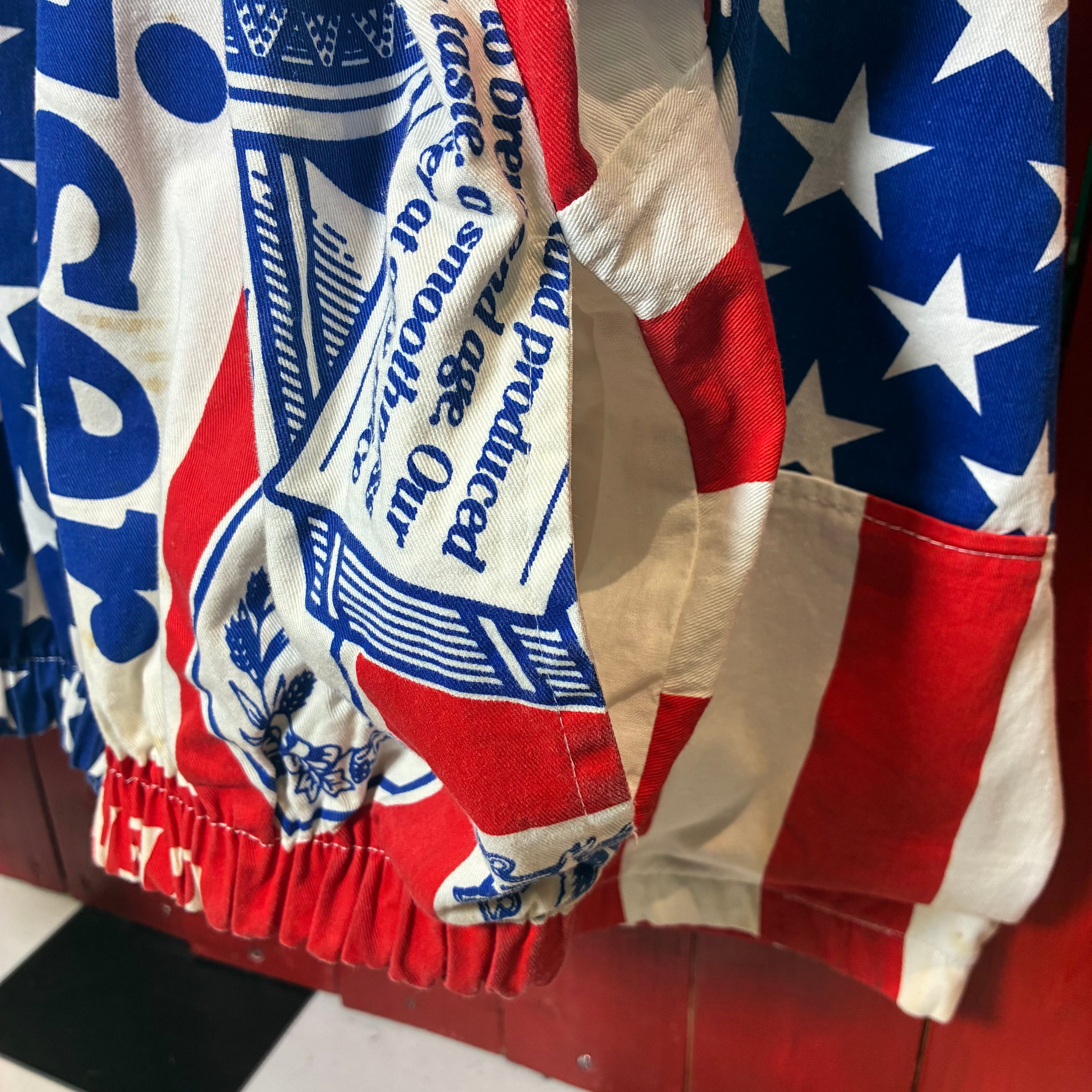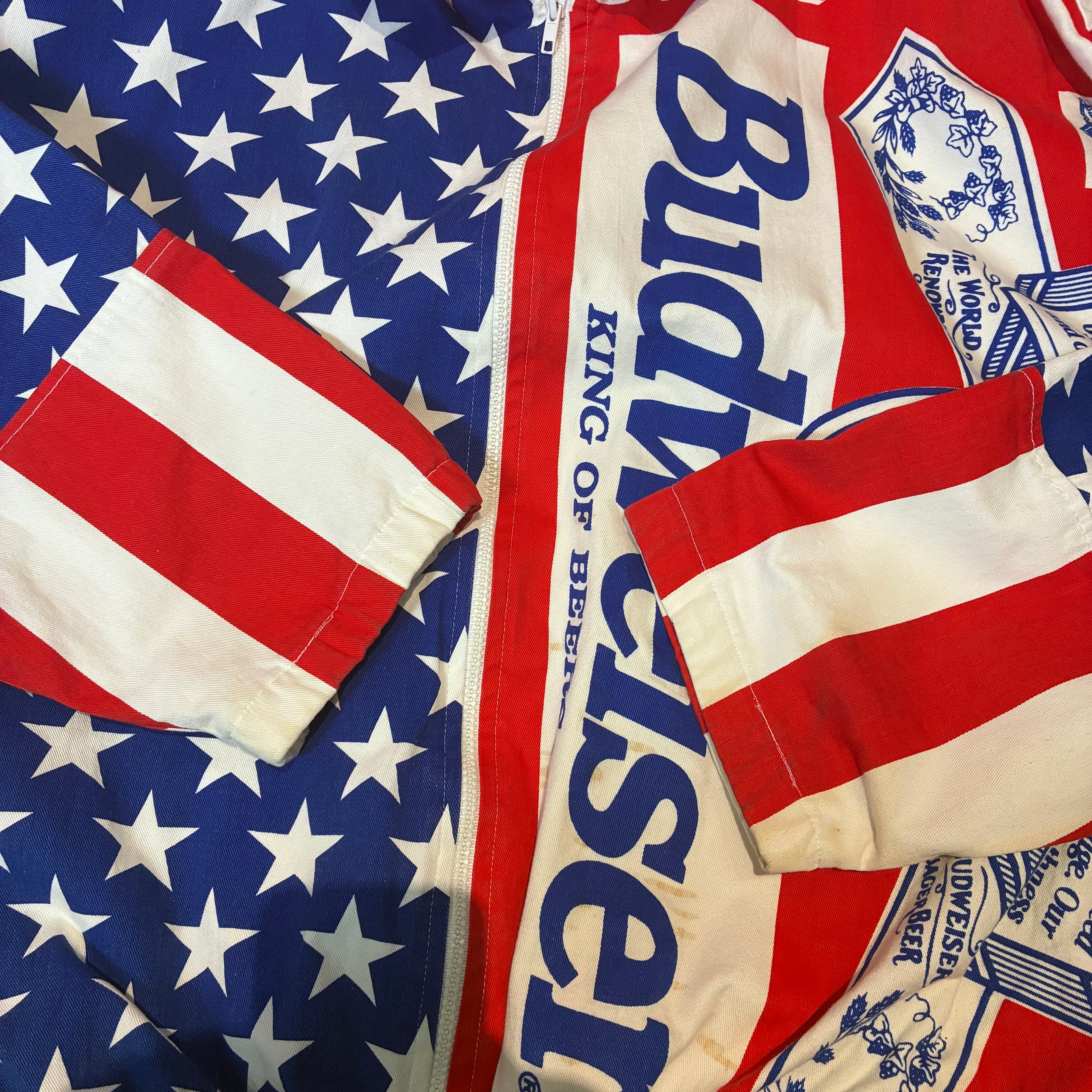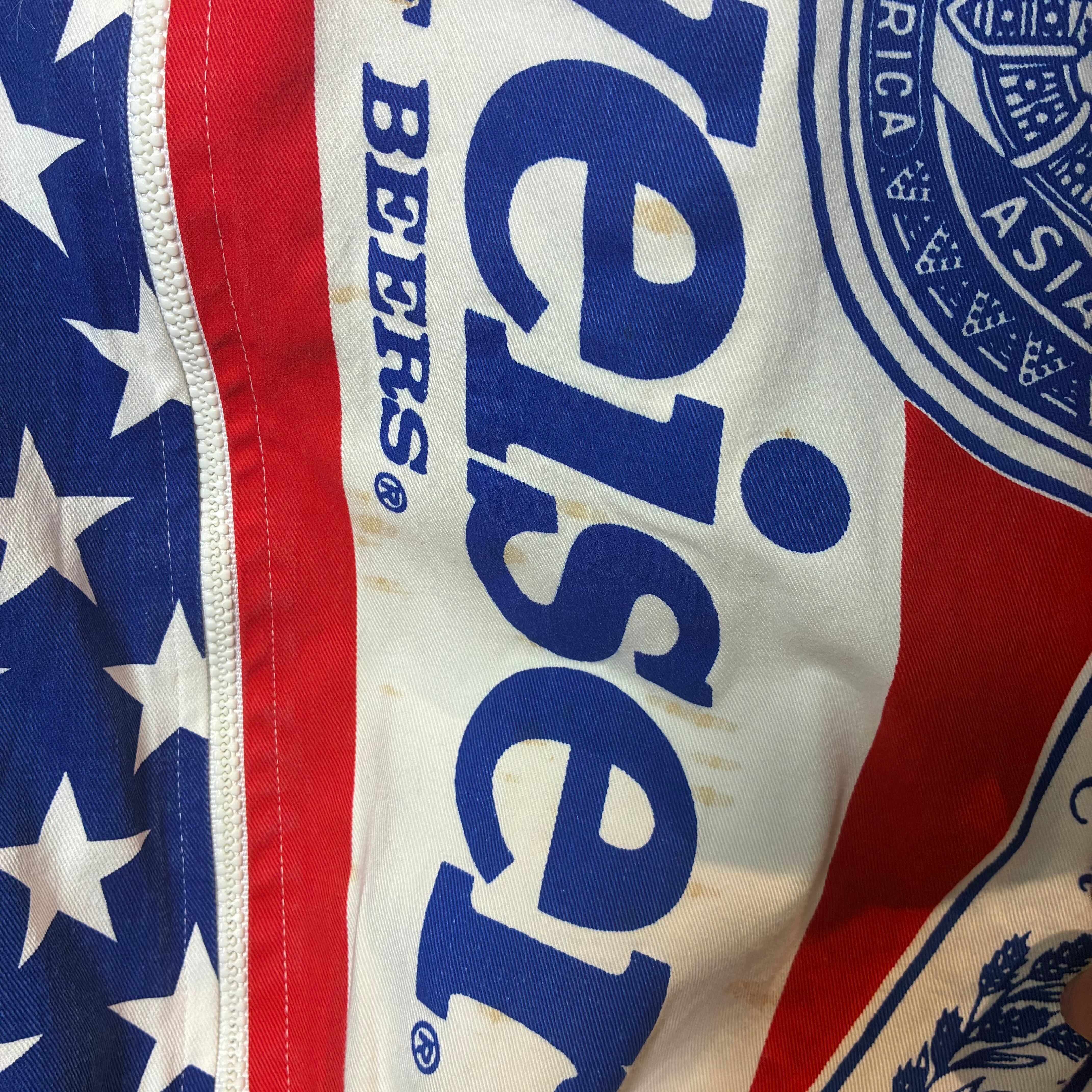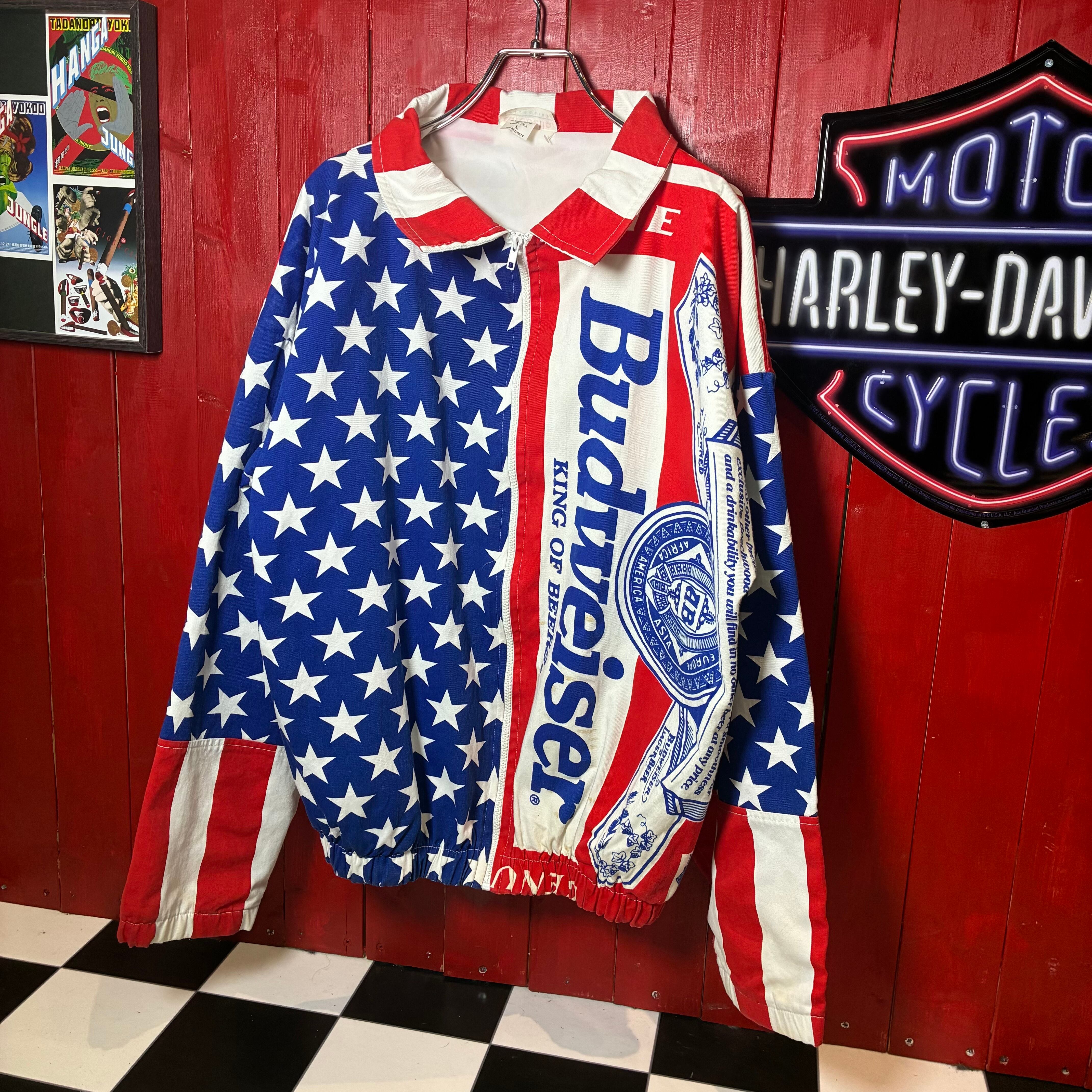 90s USA製 Budweiser 総柄ジャケット バドワイザー ビール アメカジ コットンジャケット