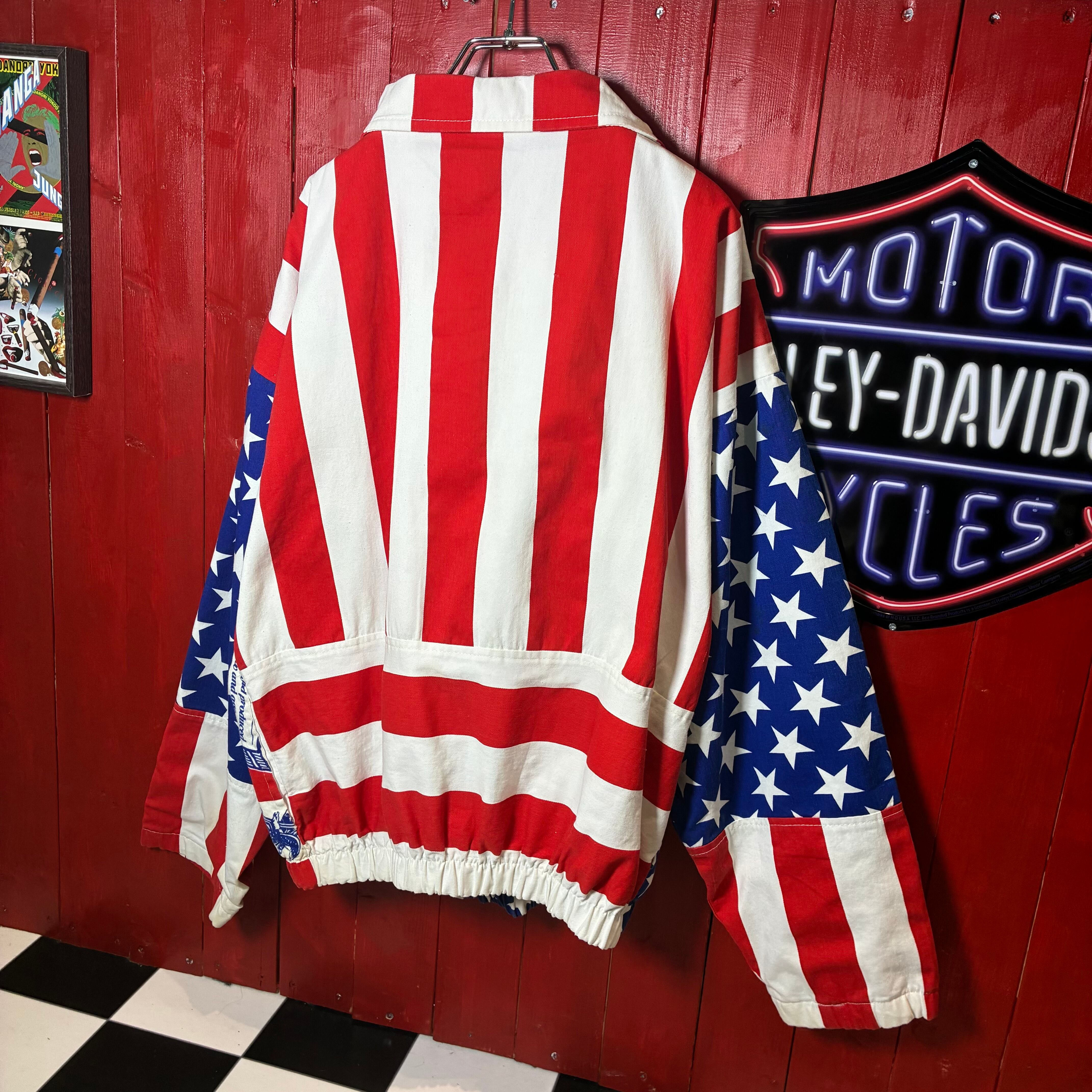 星条旗×ロゴを全面に落とし込んだ、当時ならではの強烈なアドバタイジングデザイン。