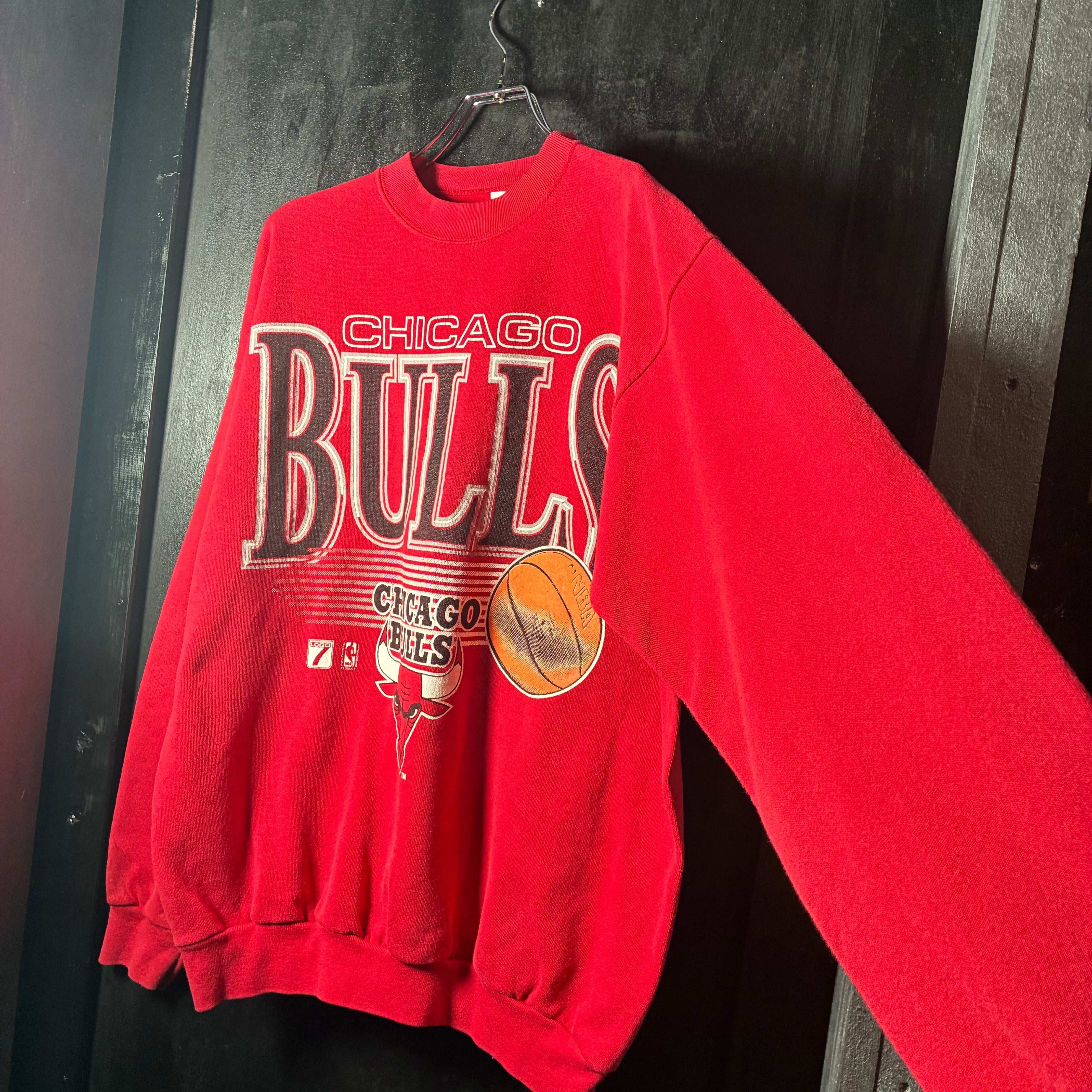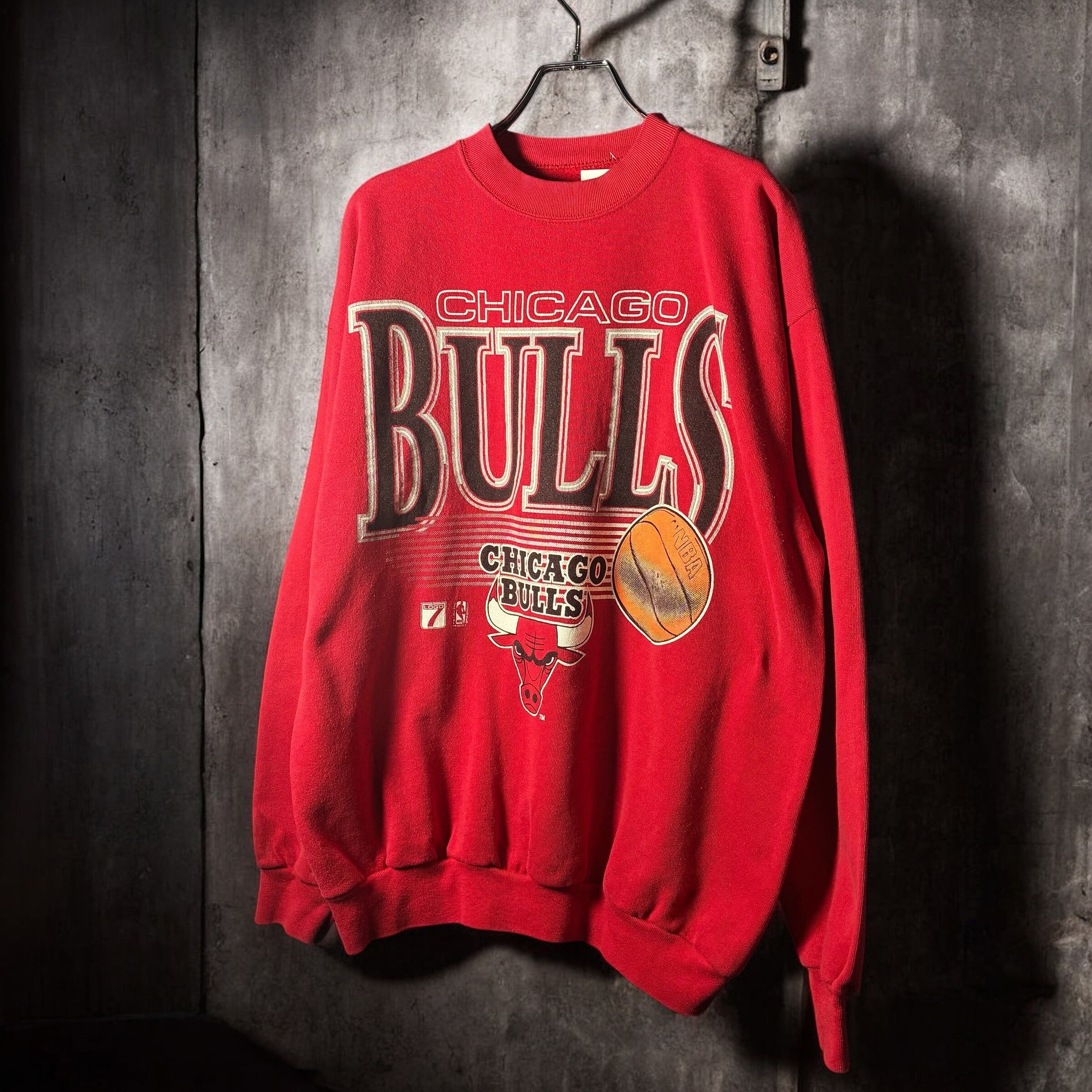 Chicago Bulls LOGO7 90s スウェット NBA バスケ ブルズ 赤スウェット ビッグロゴ USA古着 ストリート