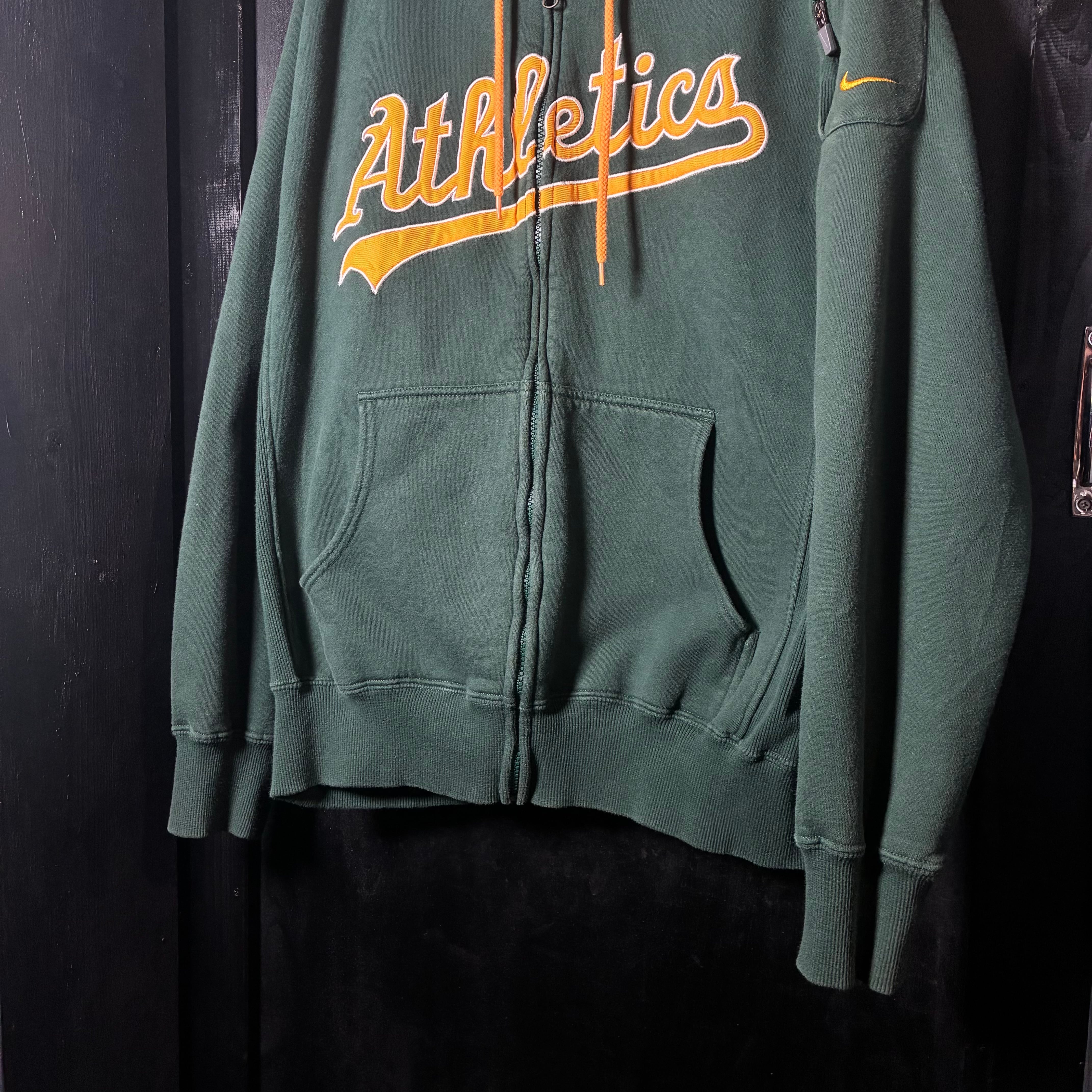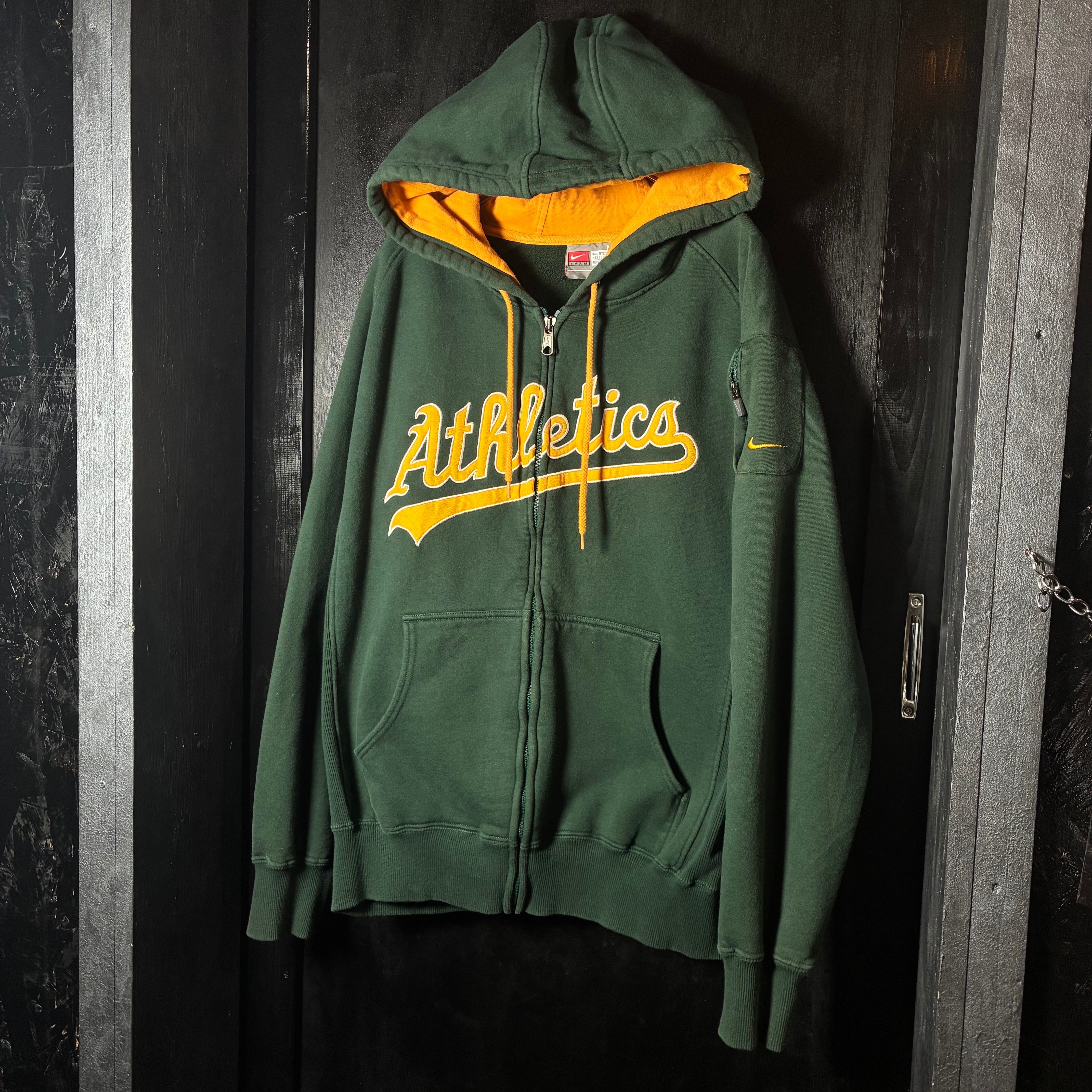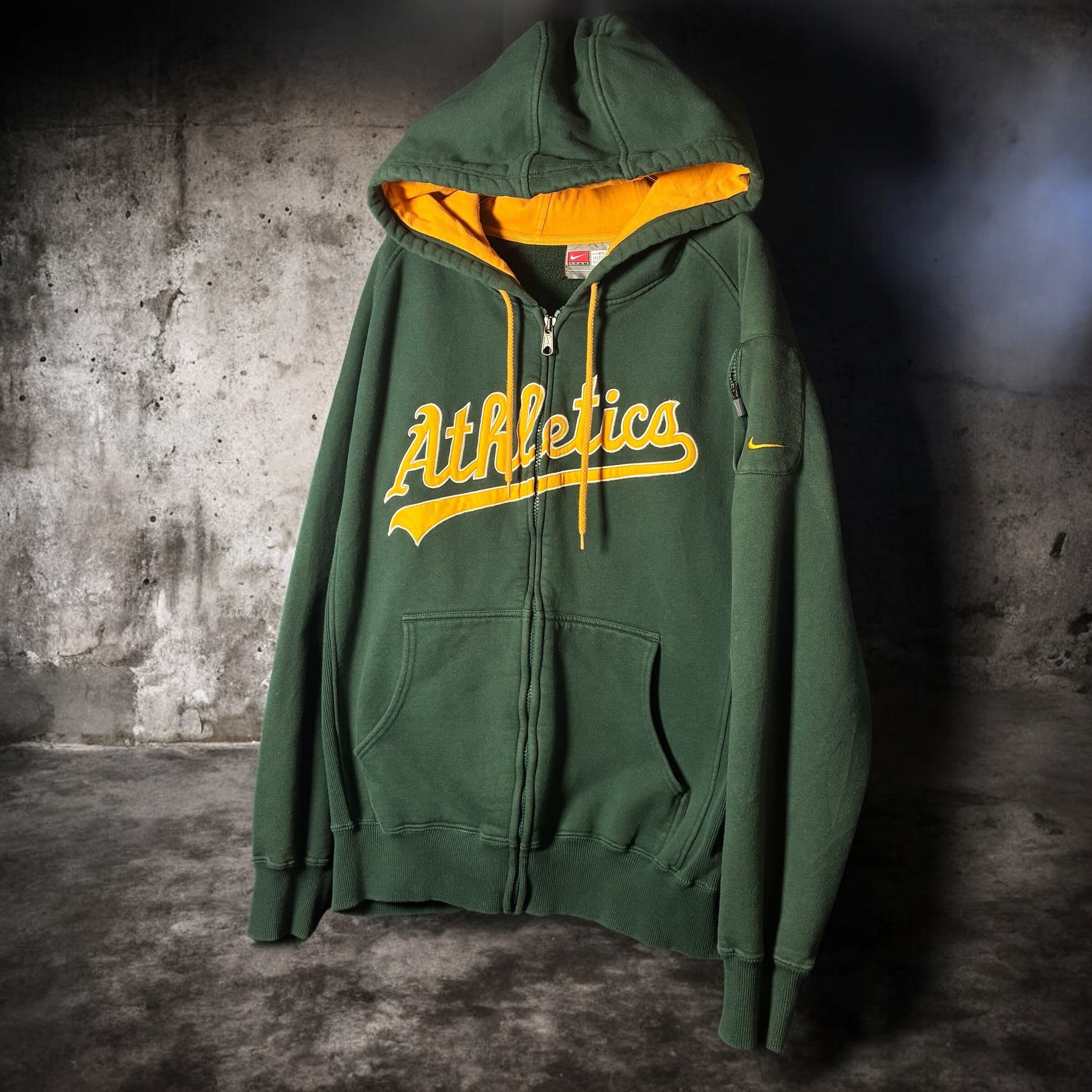 ナイキ ジップパーカー, nike hoodie, MLB, アスレチックス, oakland athletics, 00s ナイキ, チームロゴ, スポーツ古着, ストリート