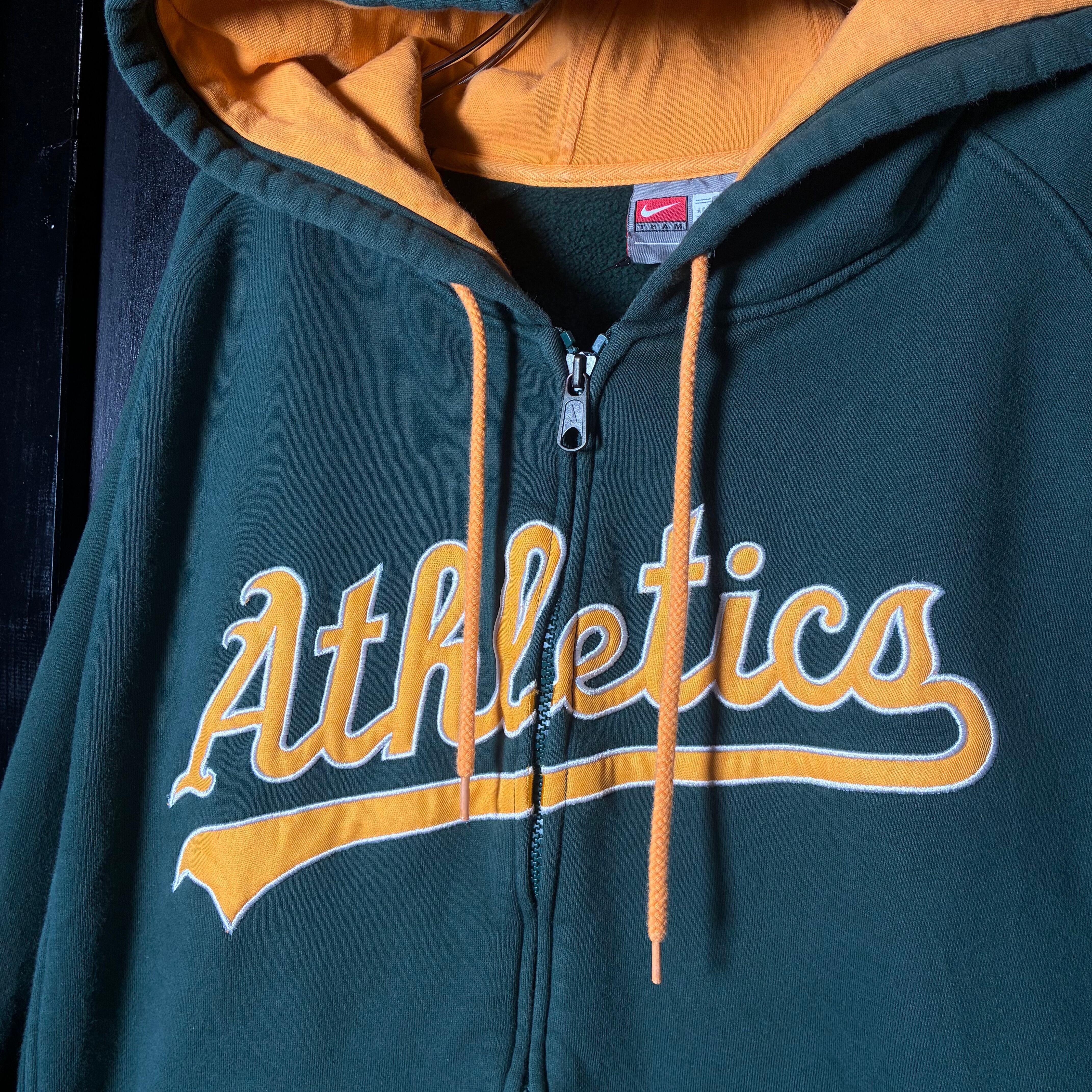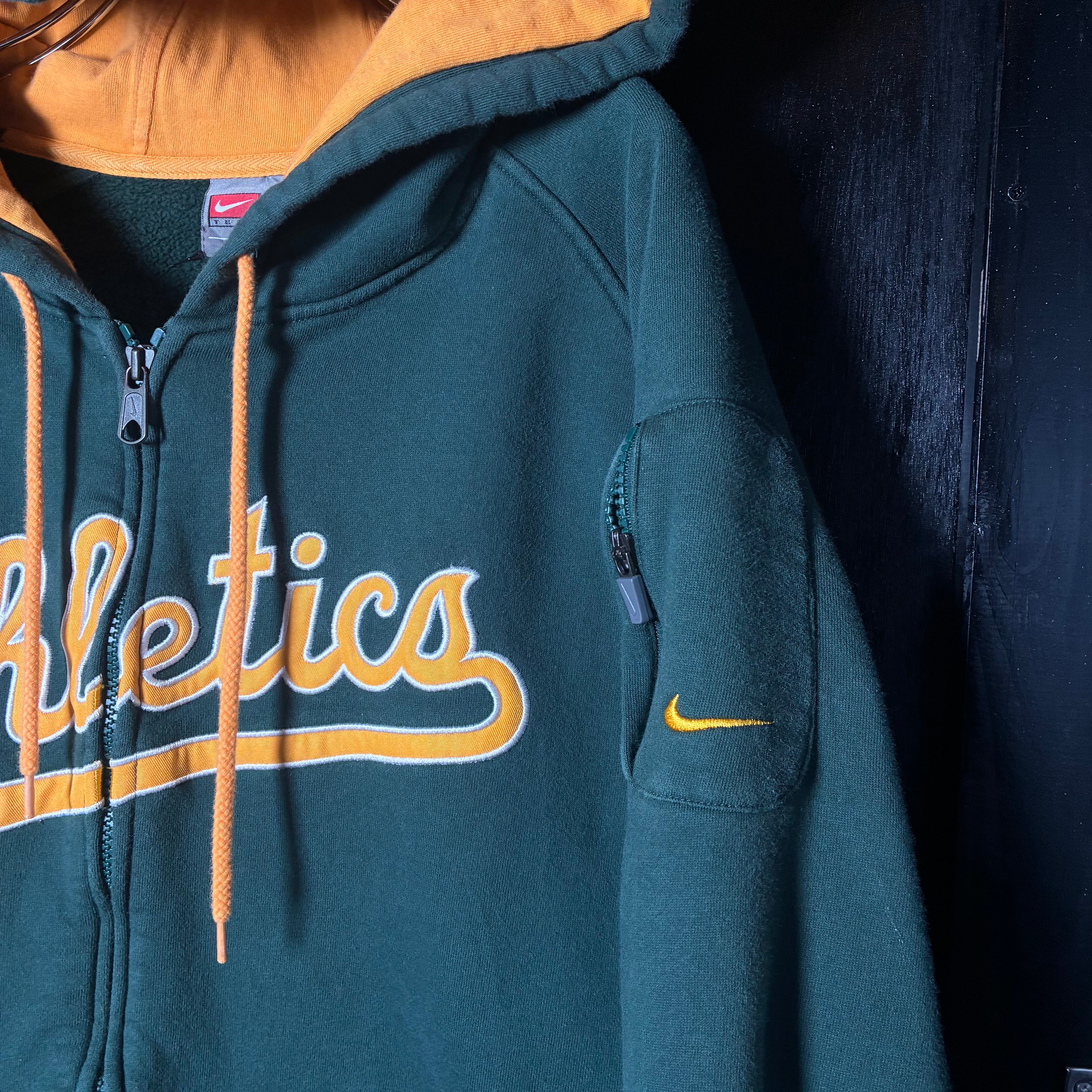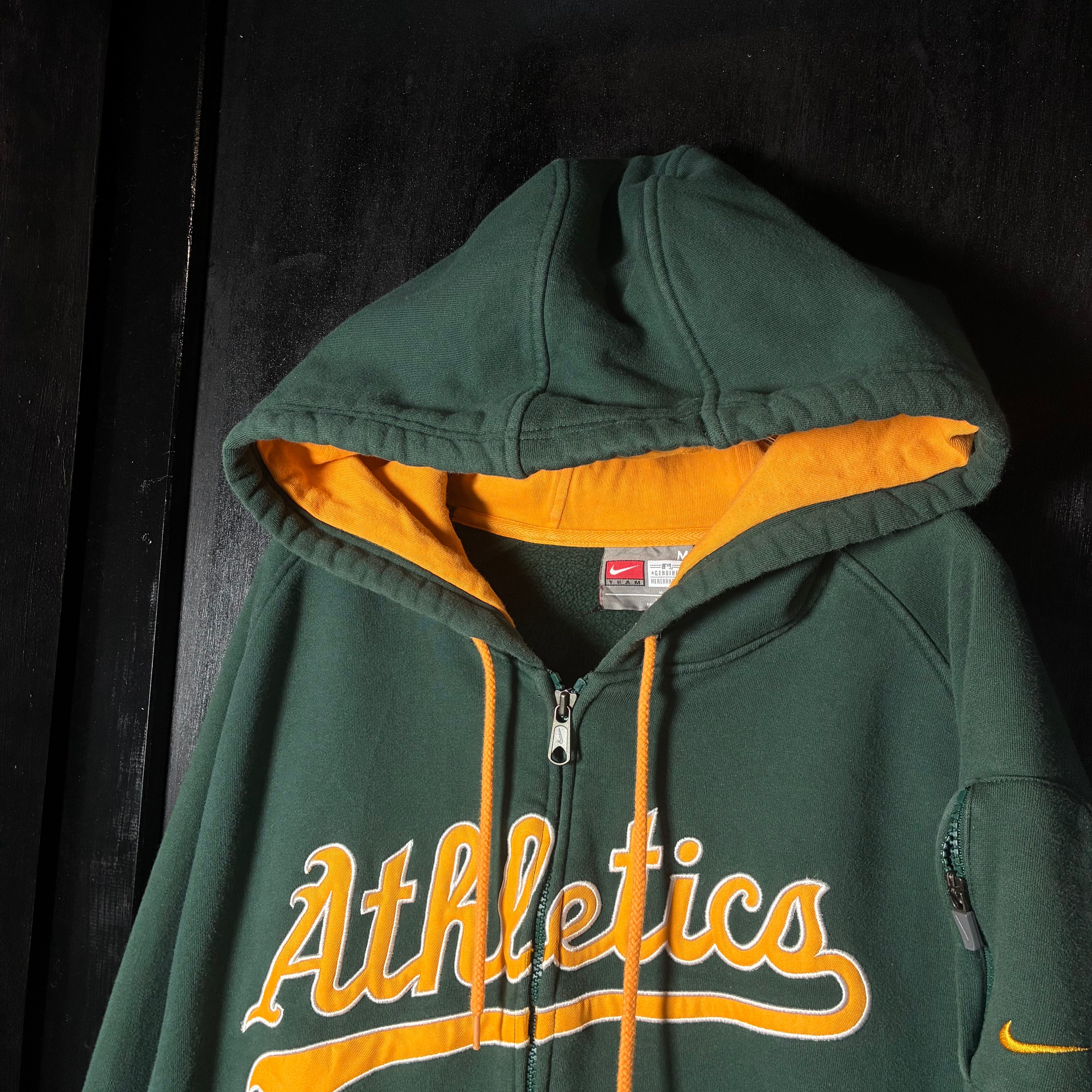 ナイキ ジップパーカー, nike hoodie, MLB, アスレチックス, oakland athletics, 00s ナイキ, チームロゴ, スポーツ古着, ストリート
