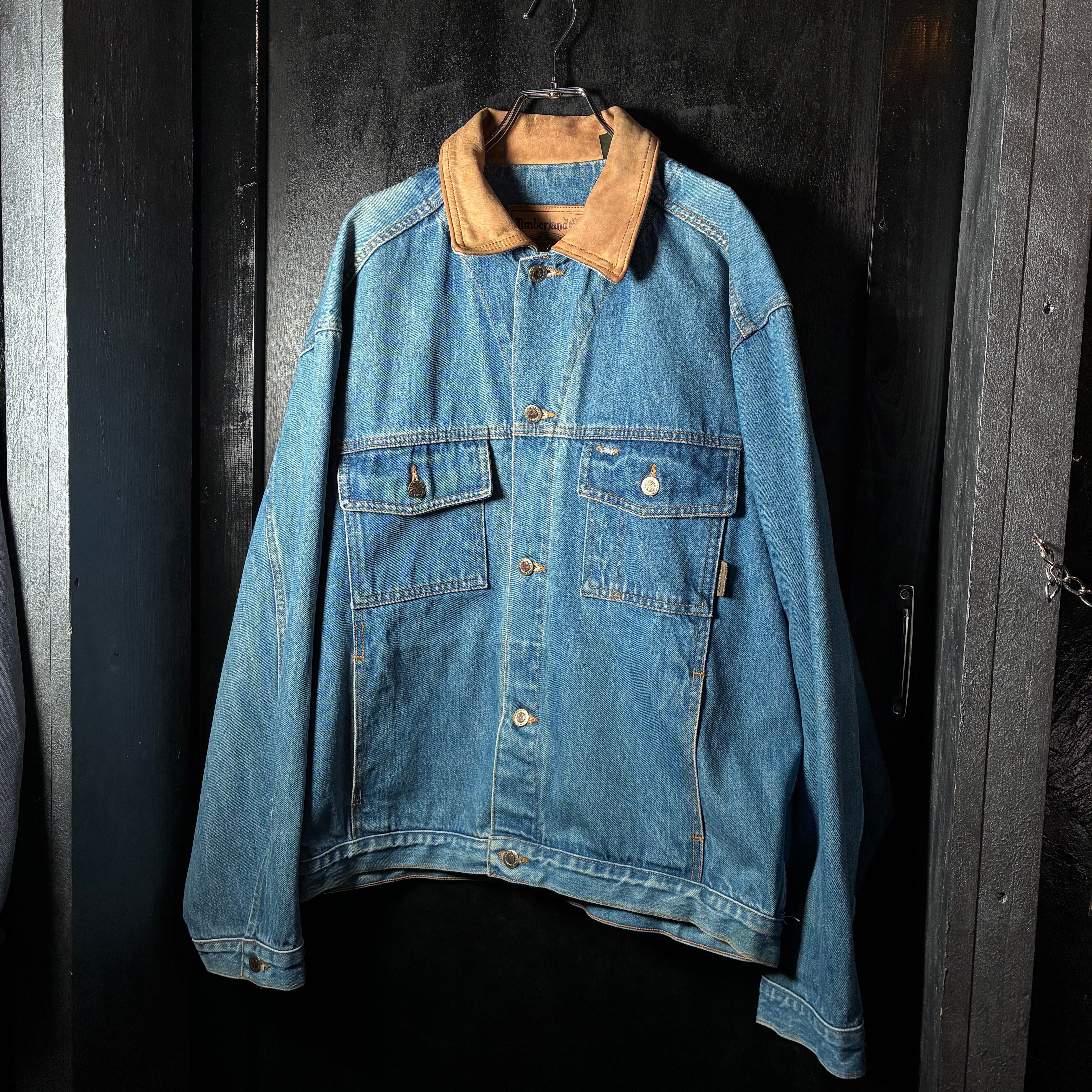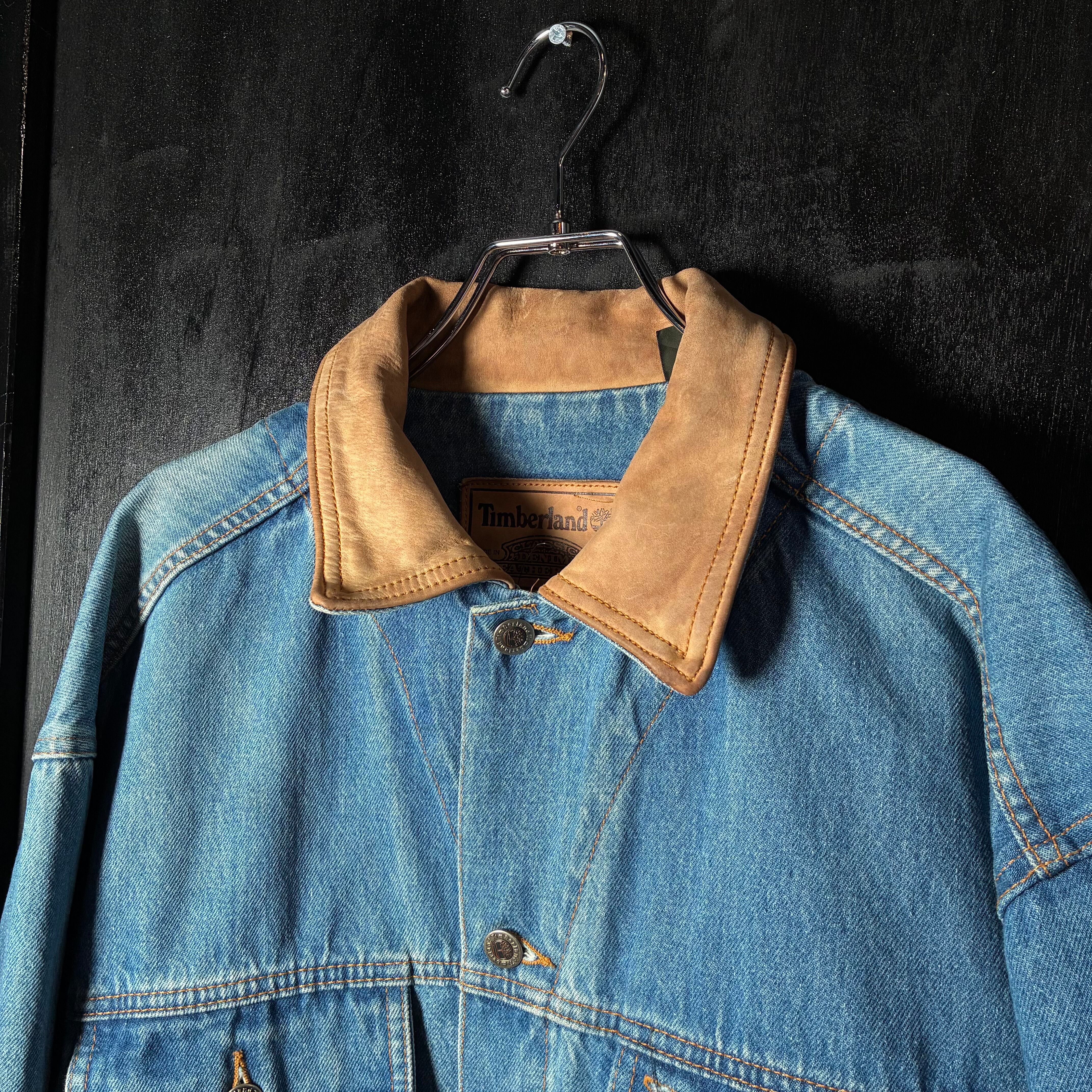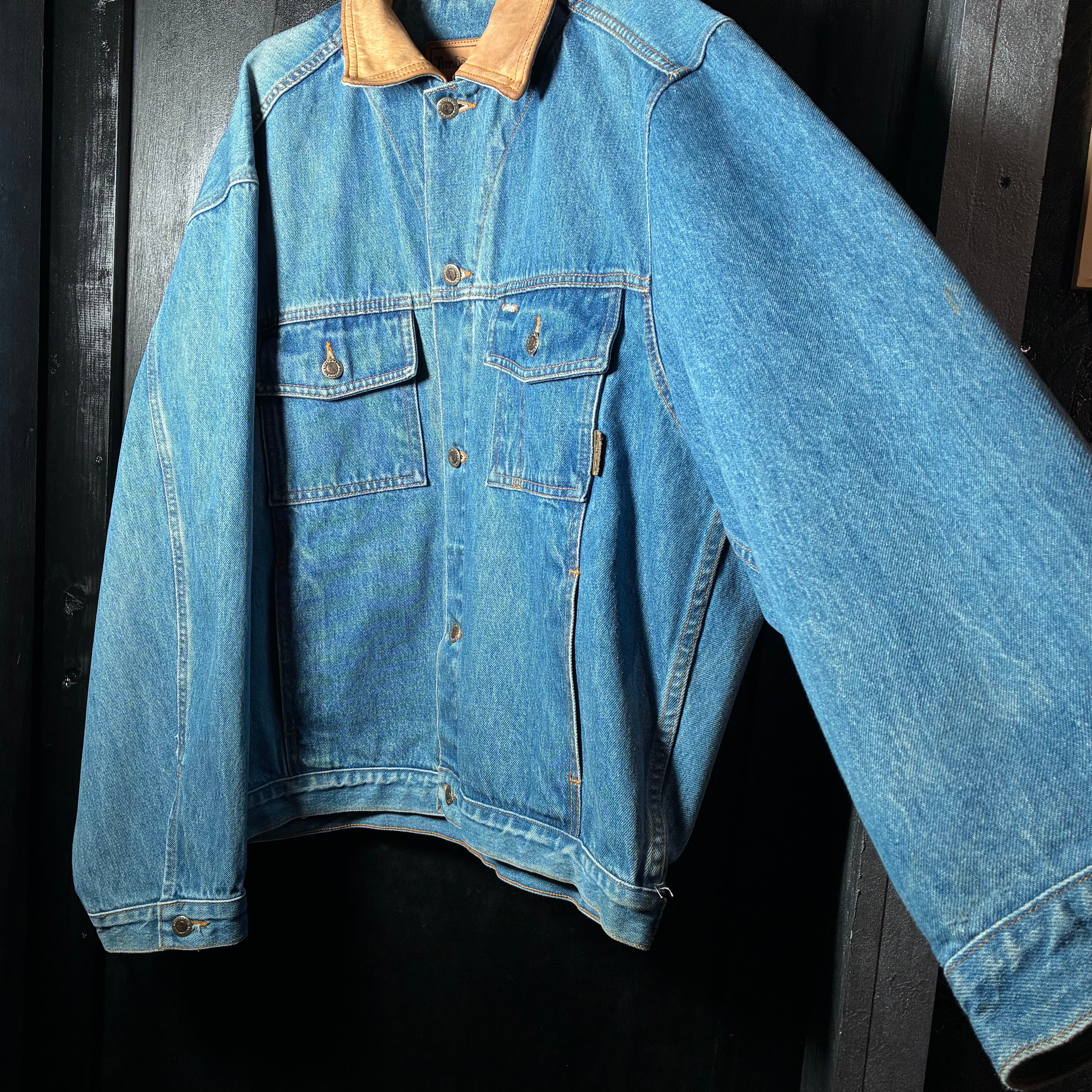 Timberland デニムジャケット 90s USA製 本革襟 レザーカラー ヴィンテージ アメカジ ワーク ストリート 古着