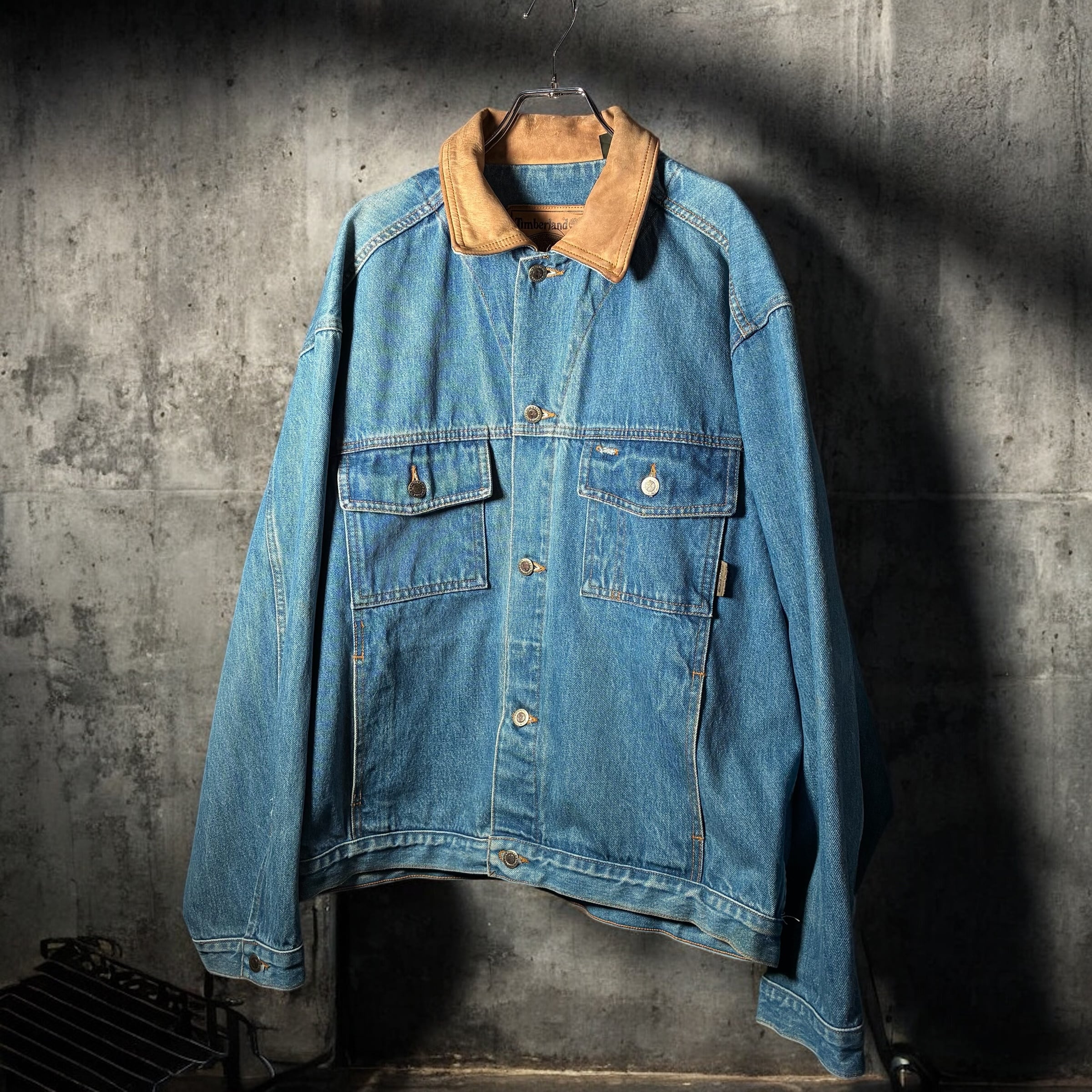 ● 90s Timberlandらしい無骨なデニムボディに、本革襟を組み合わせた存在感のある一着