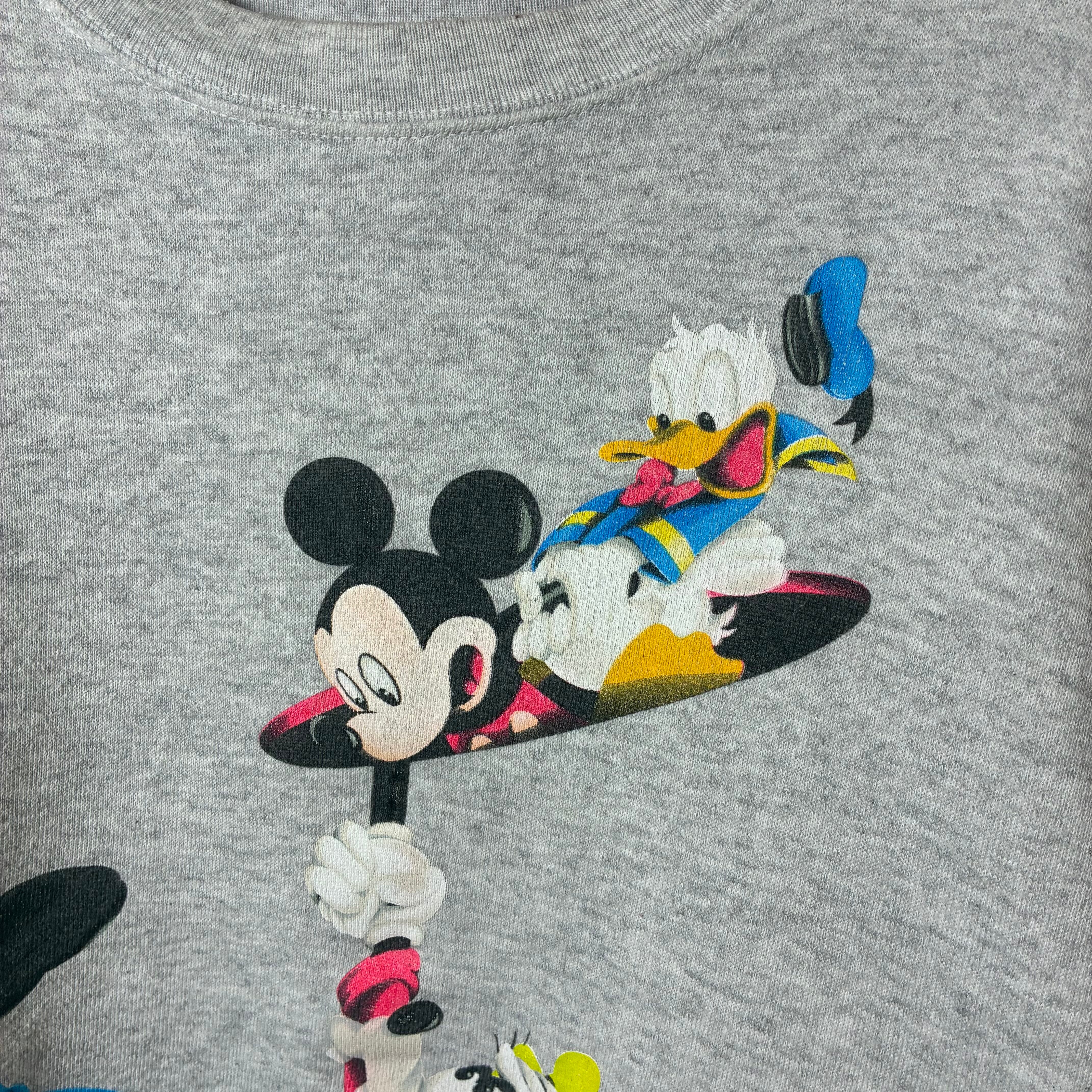 ミッキー unlimited 90s ディズニー スウェット プリント キャラクター 古着 USA企画 グレー 杢 ミッキーマウス ドナルド jerry leigh