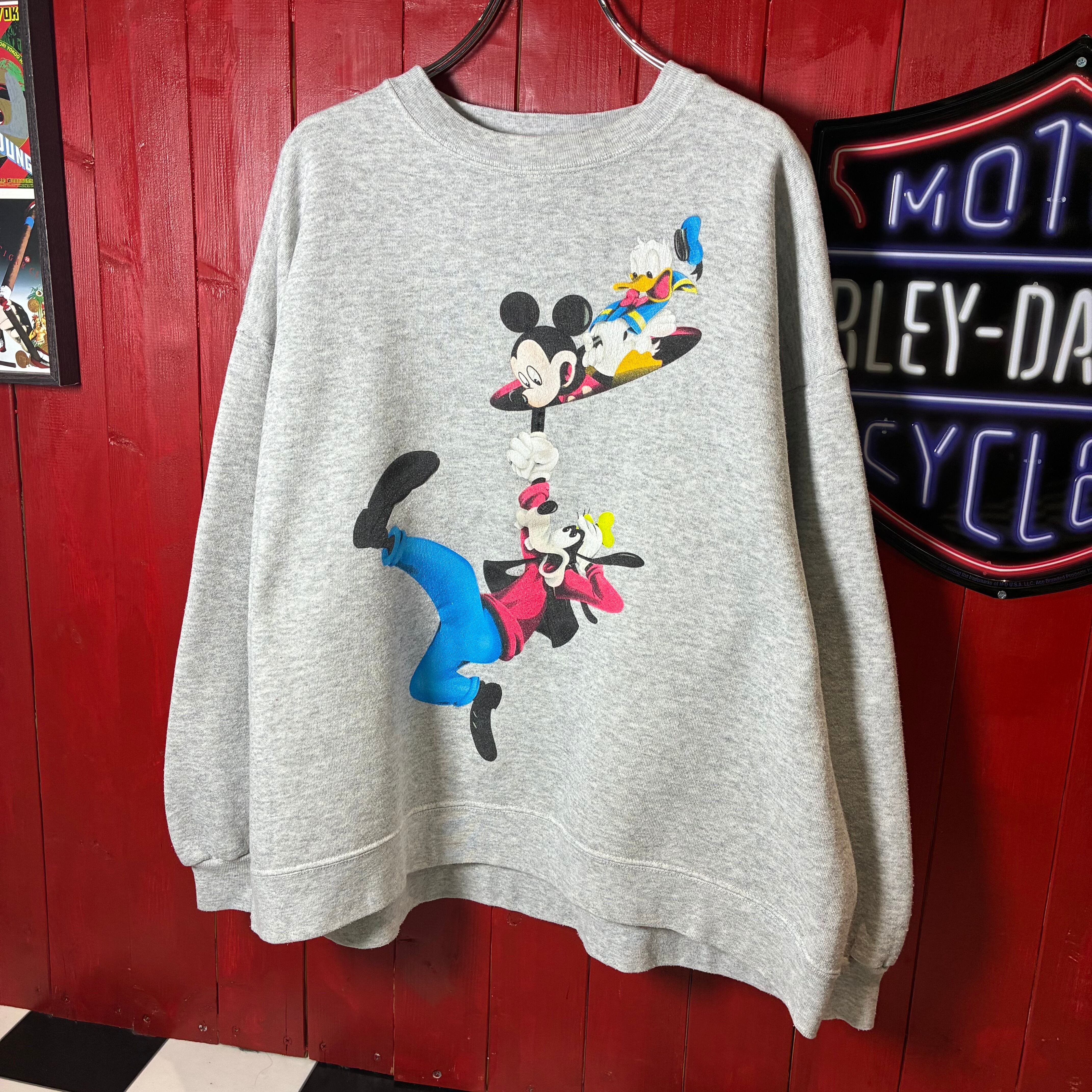 90s Mickey Unlimited ミッキー&ドナルド&グーフィー プリントスウェット メキシコ製