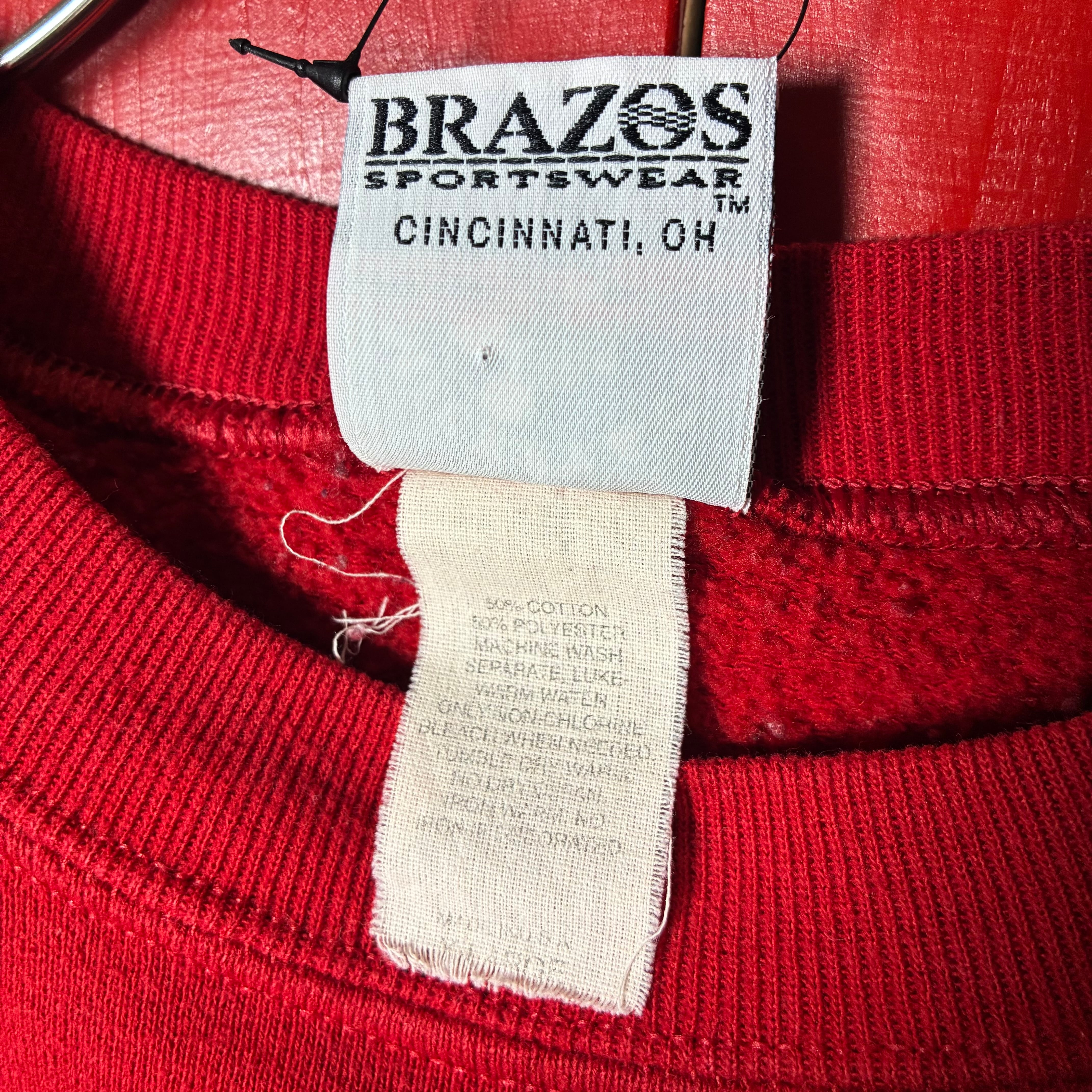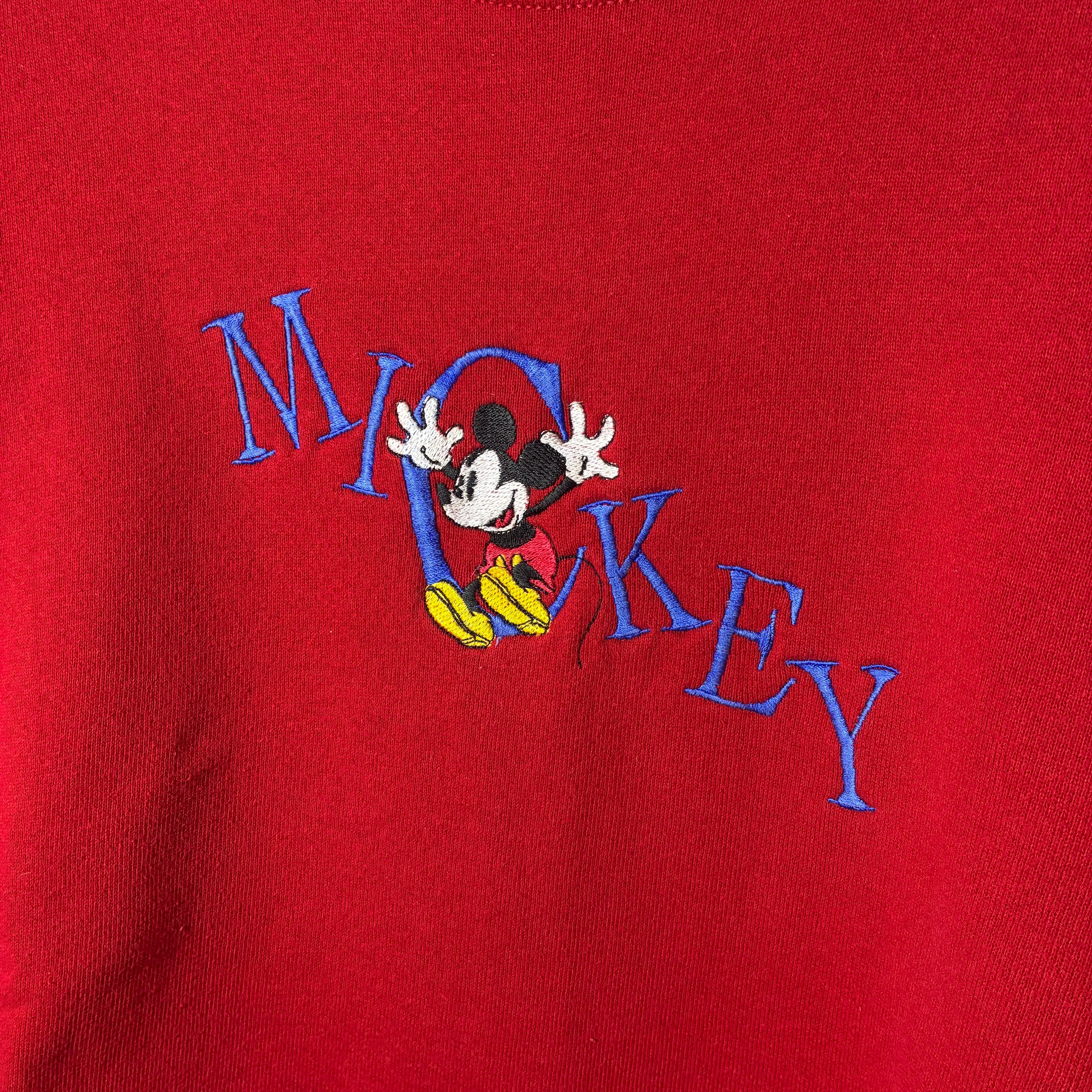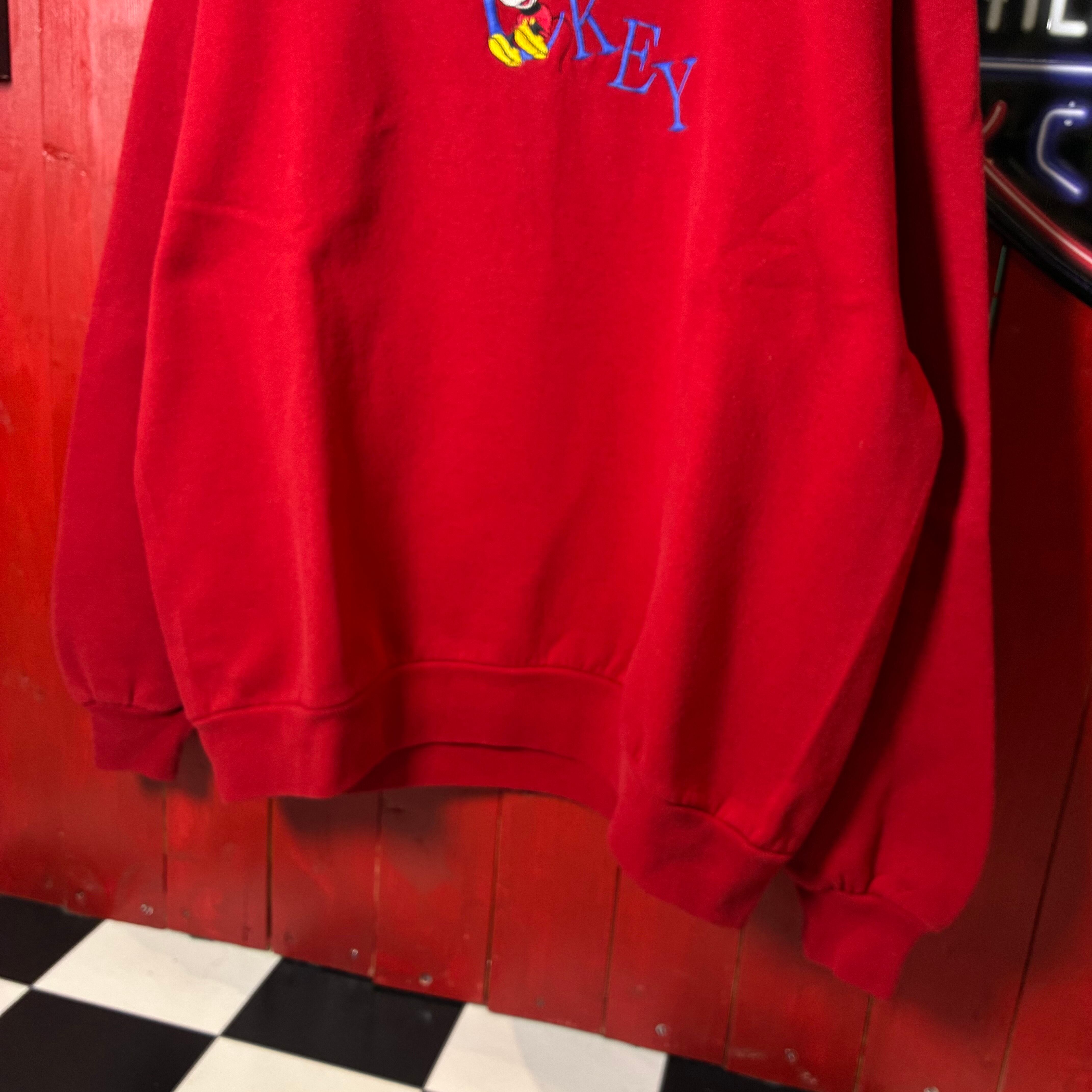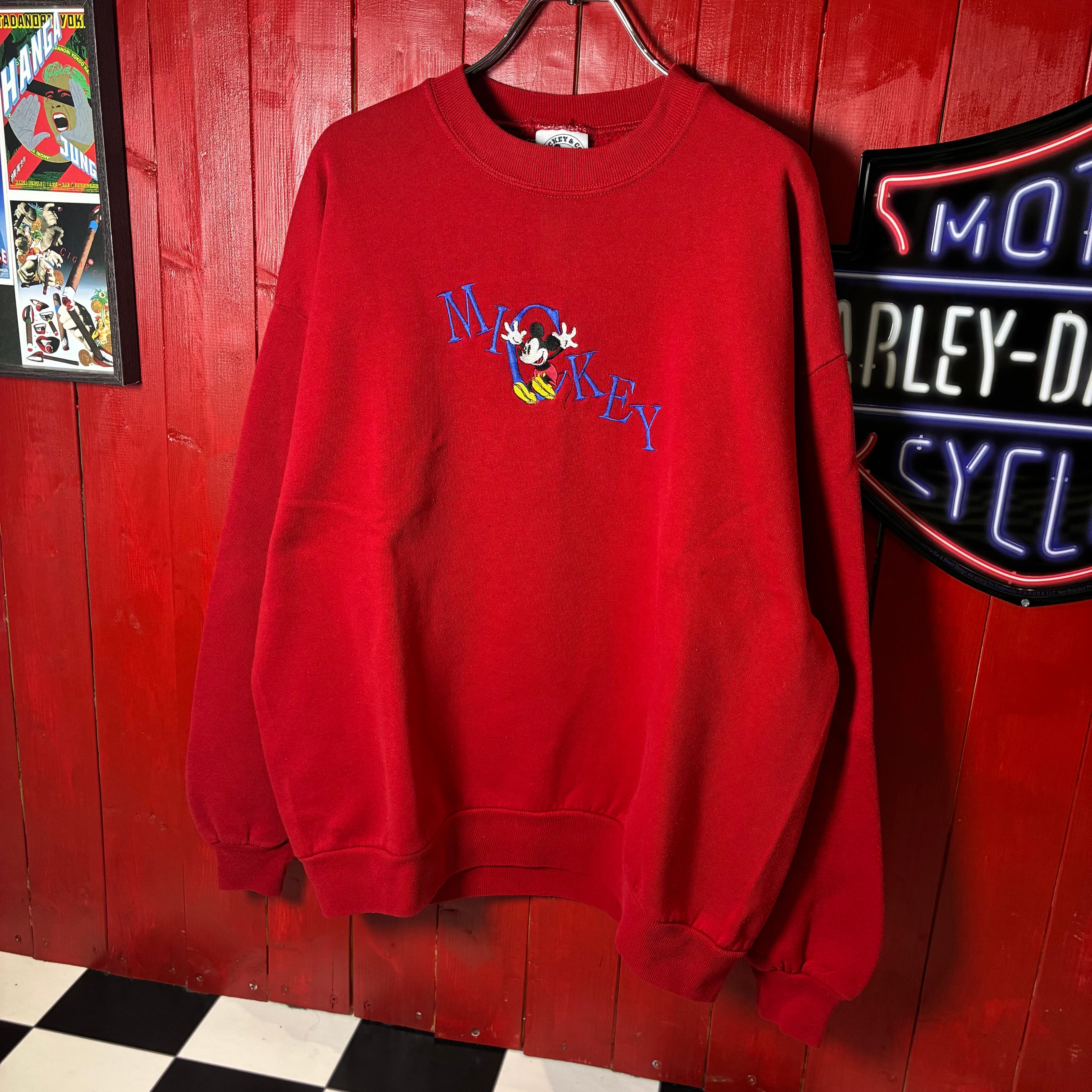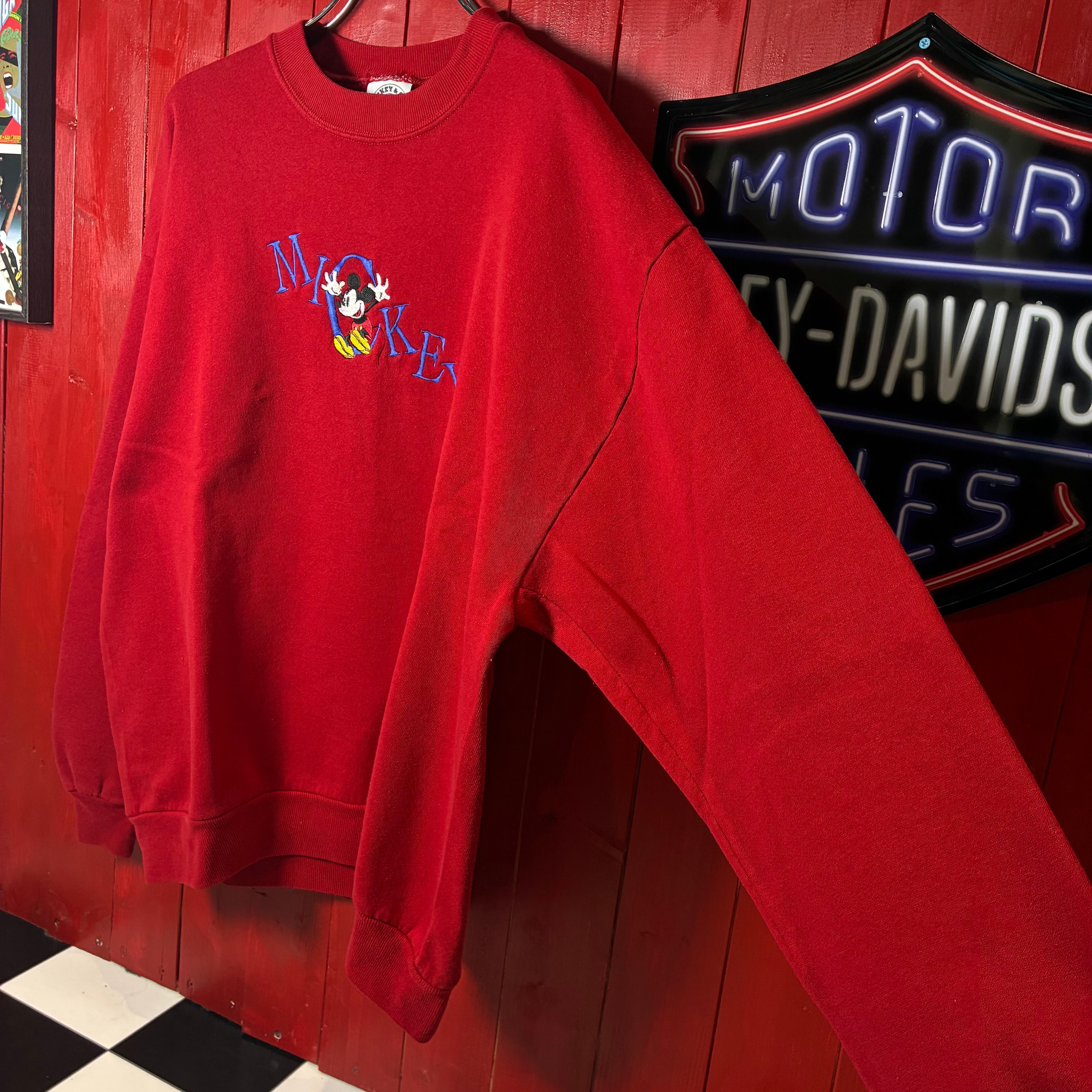 90s MICKEY & CO. ミッキーマウス 刺繍スウェット レッド USA製 BRAZOSボディ