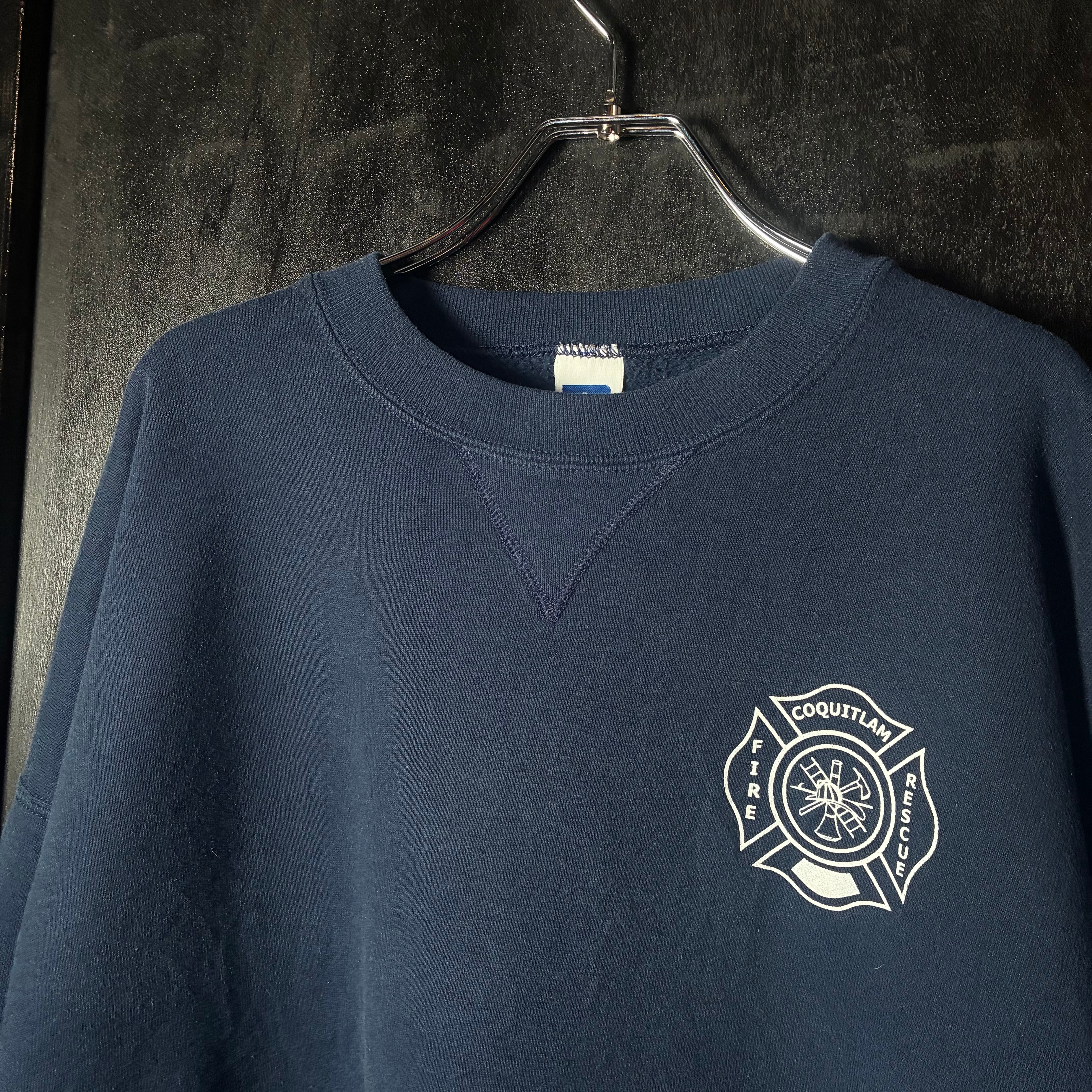 90s メキシコ製 RUSSELL ATHLETIC スウェット 消防レスキュー ネイビー