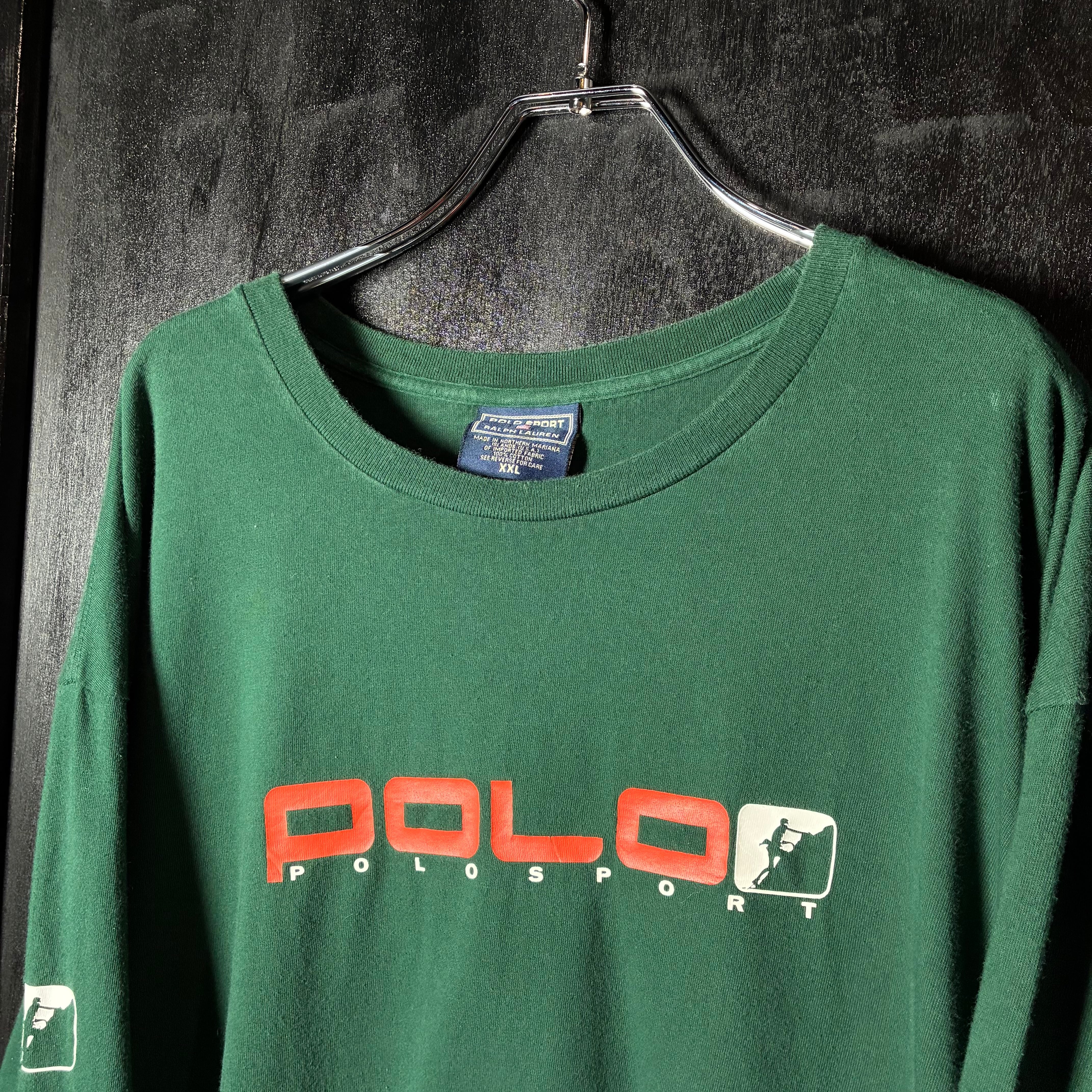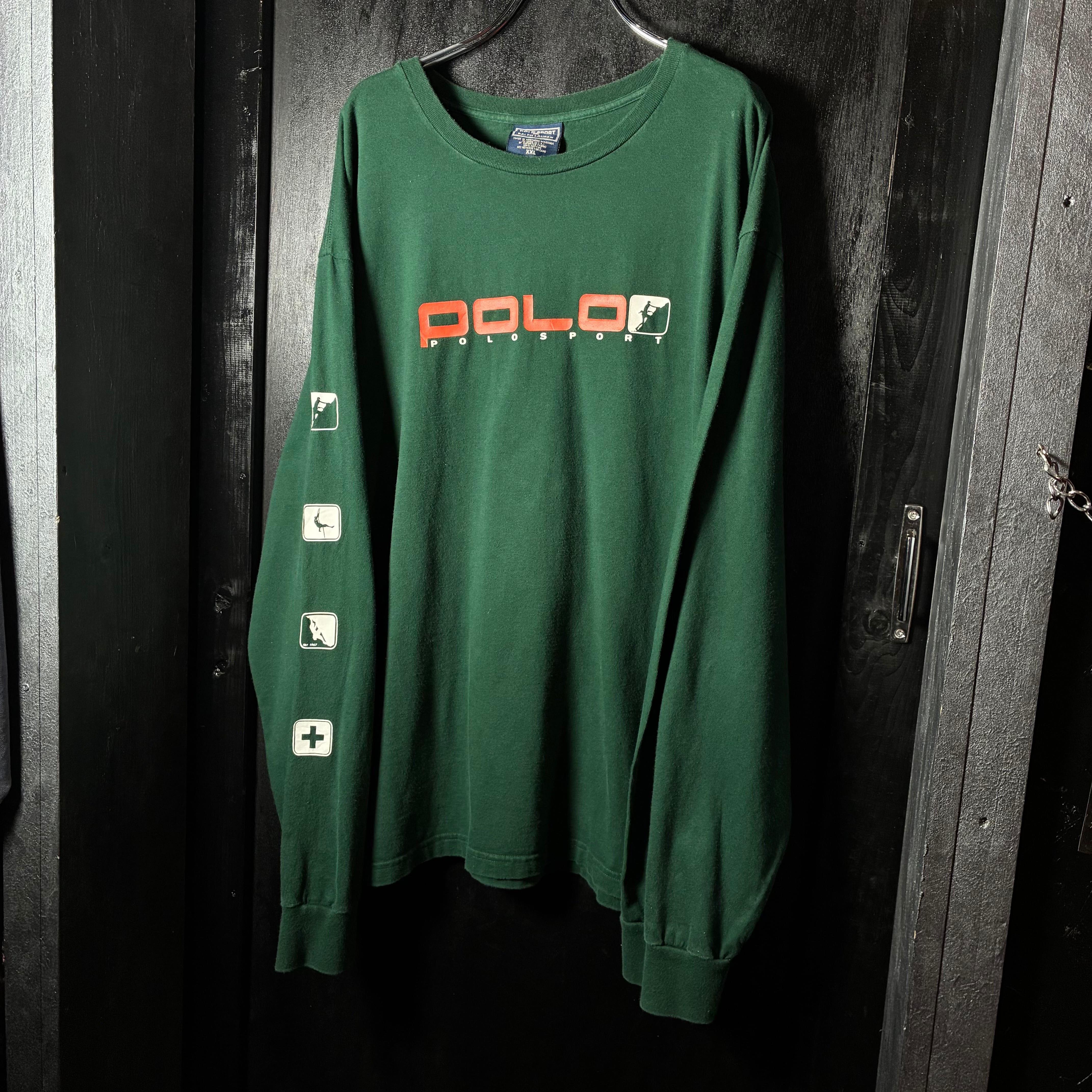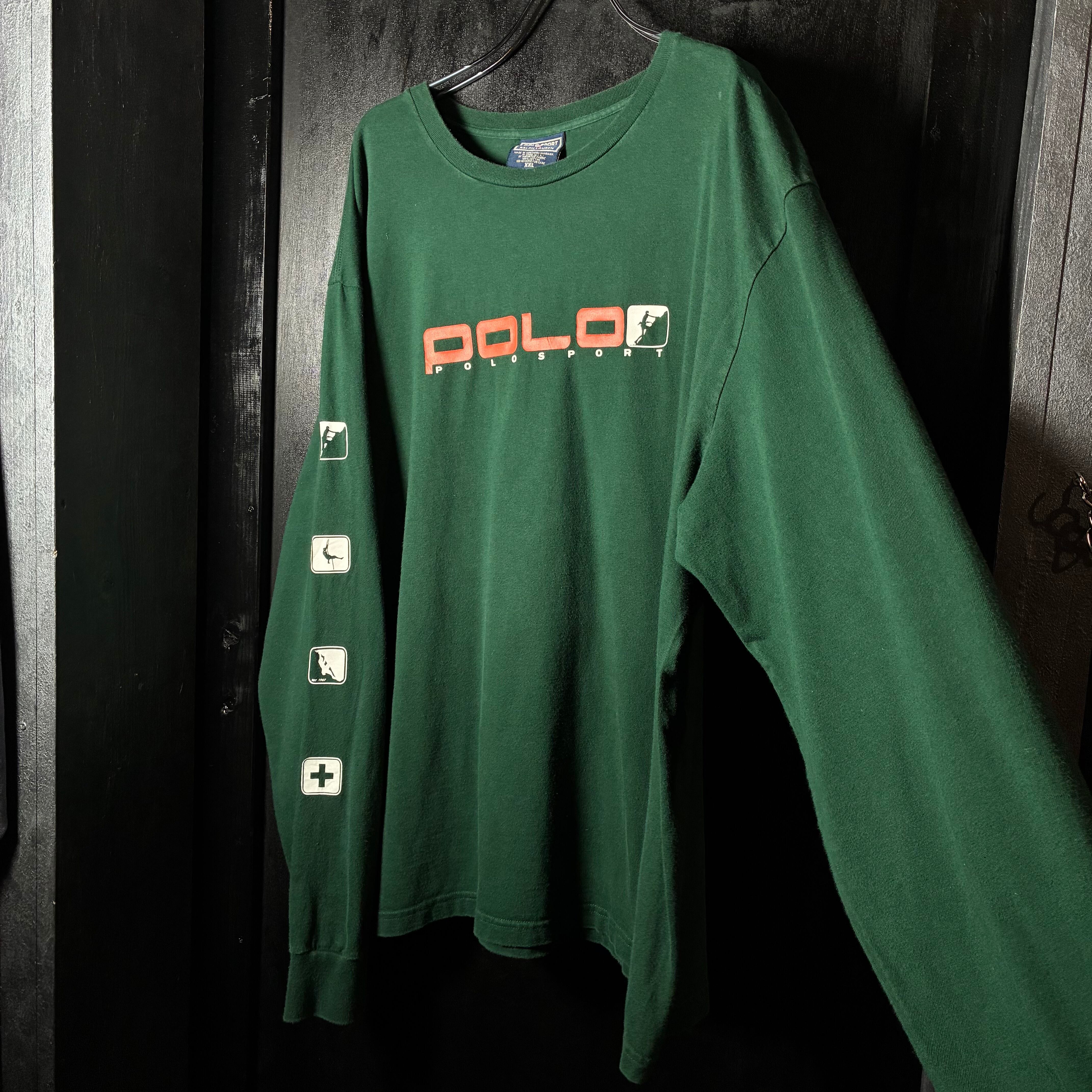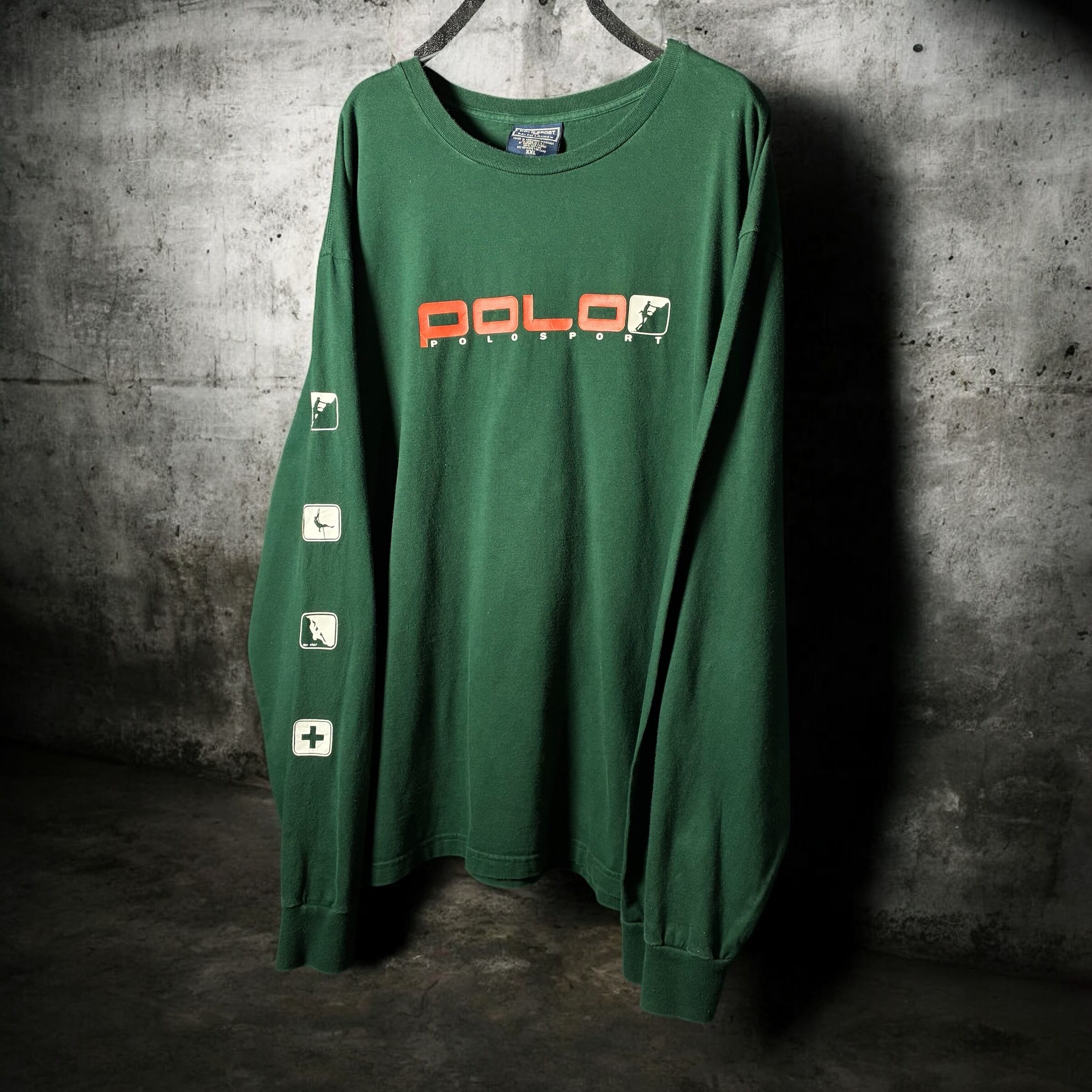 90s USA製 POLO SPORT RALPH LAUREN ロンT 緑 袖プリント ポロスポーツ