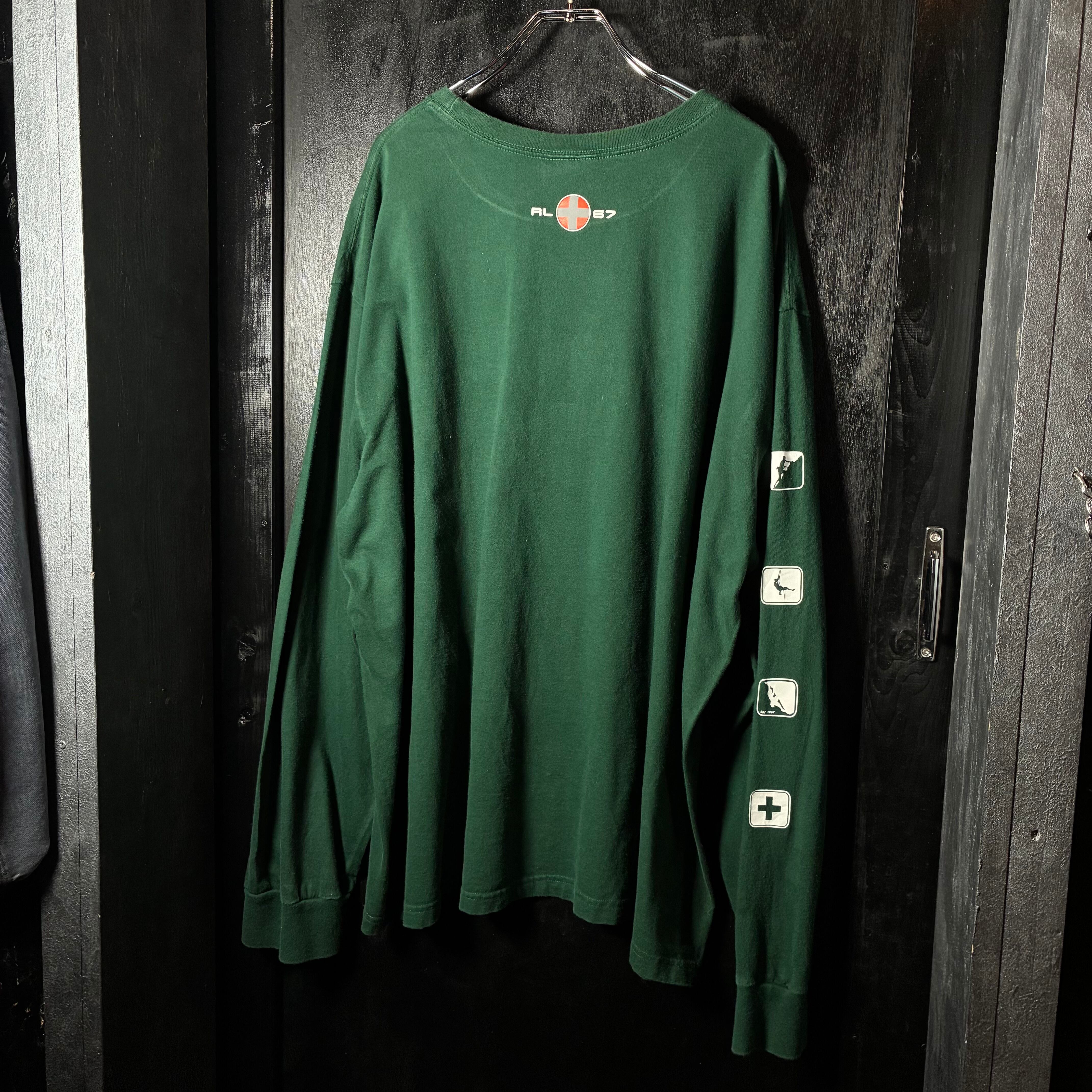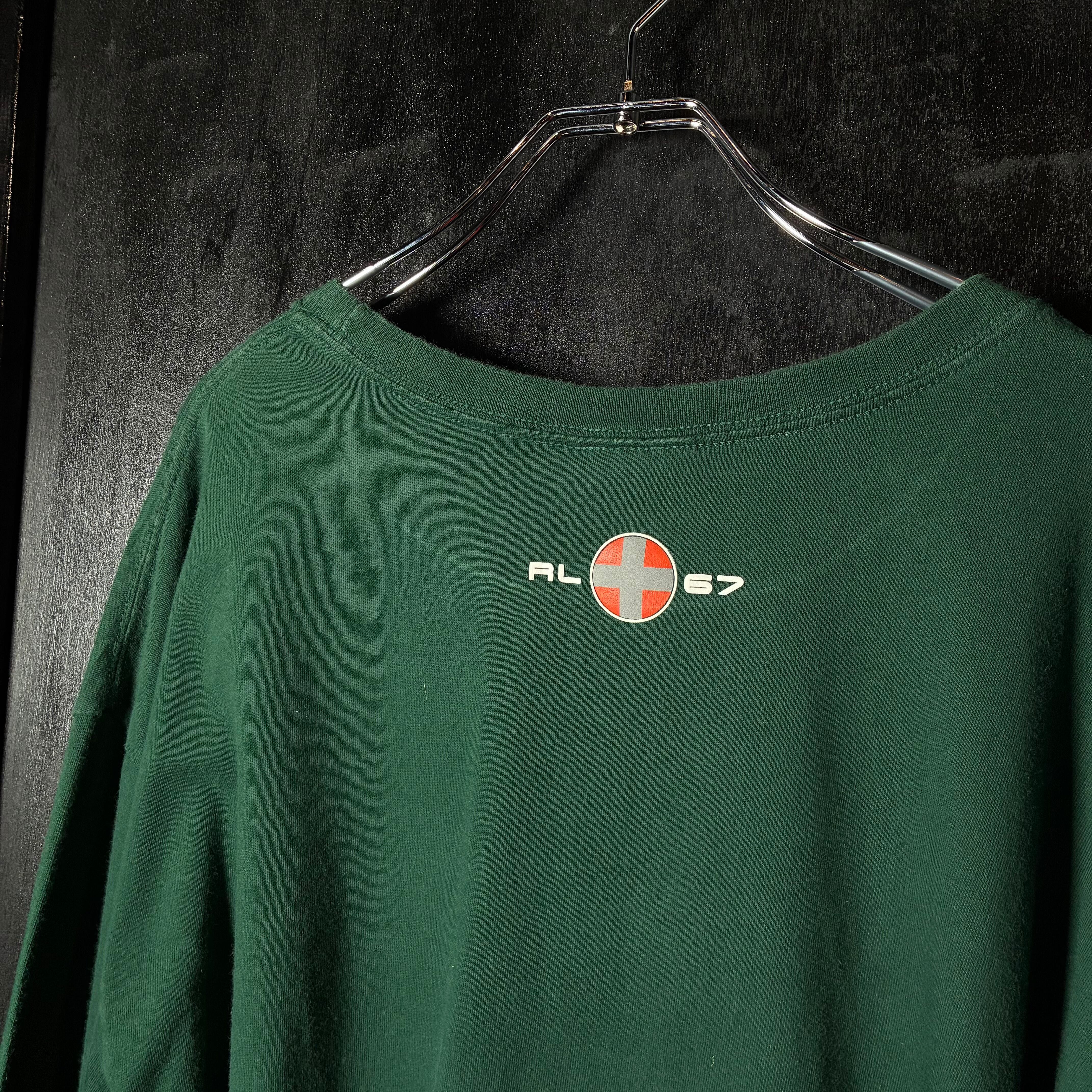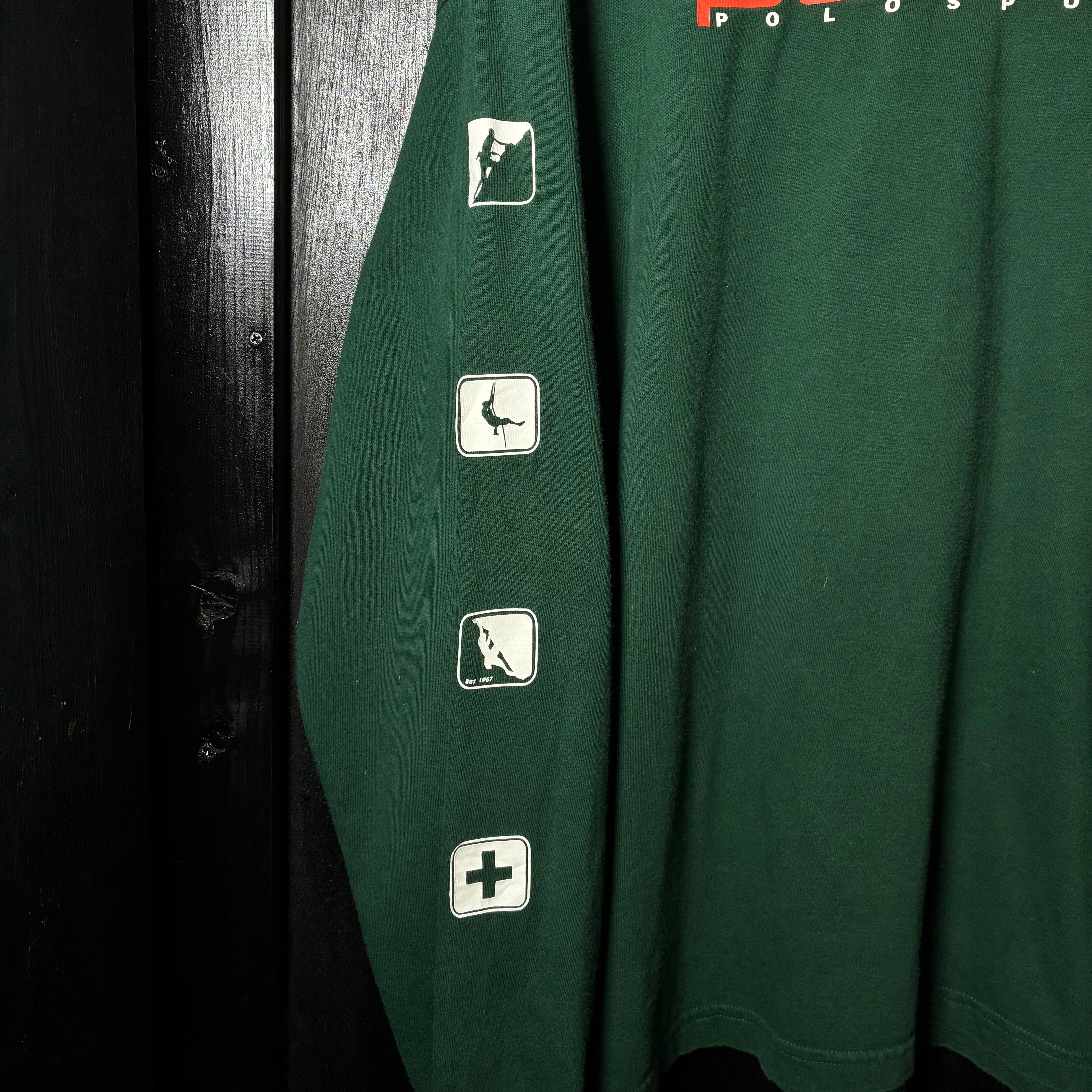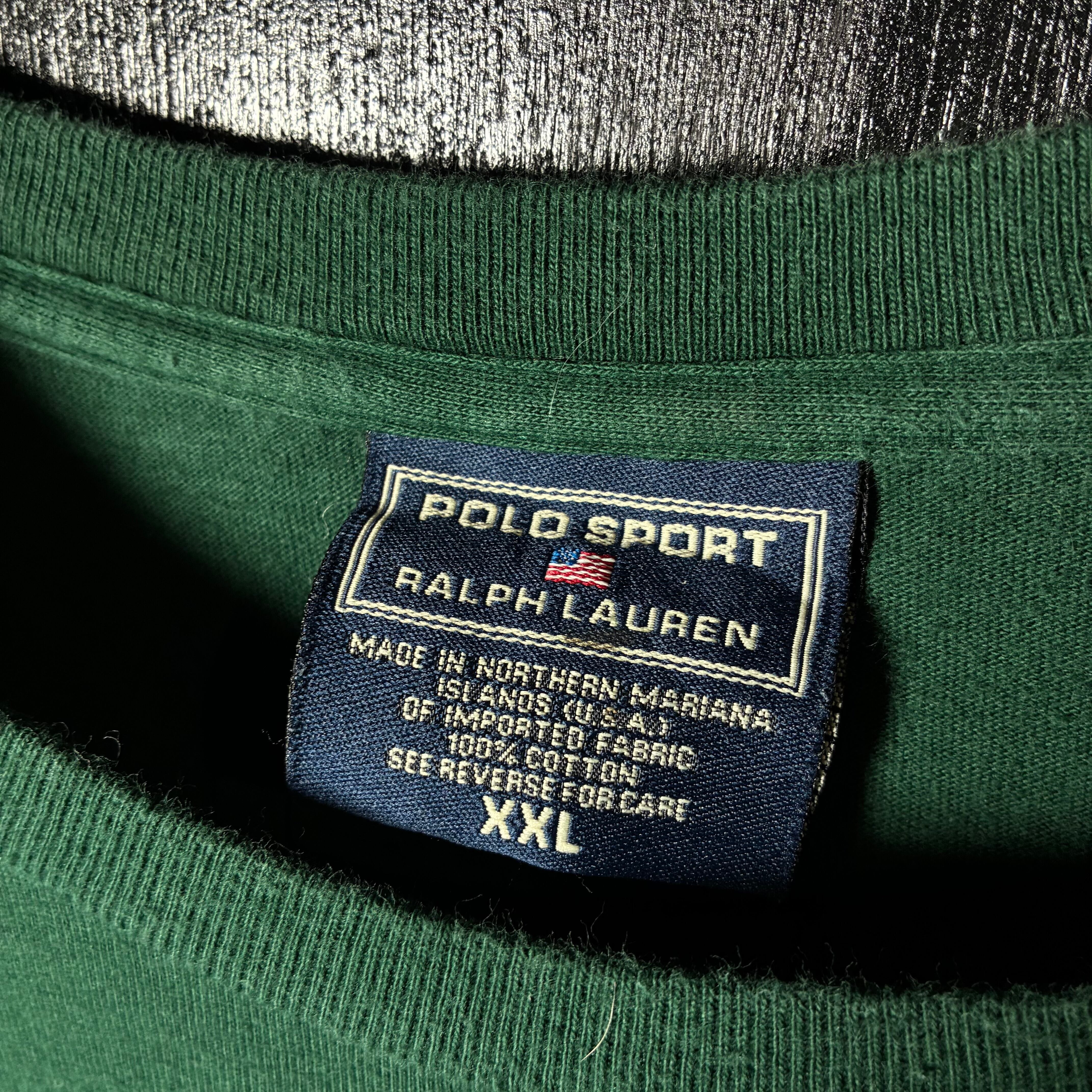 90s USA製 POLO SPORT RALPH LAUREN ロンT 緑 袖プリント ポロスポーツ