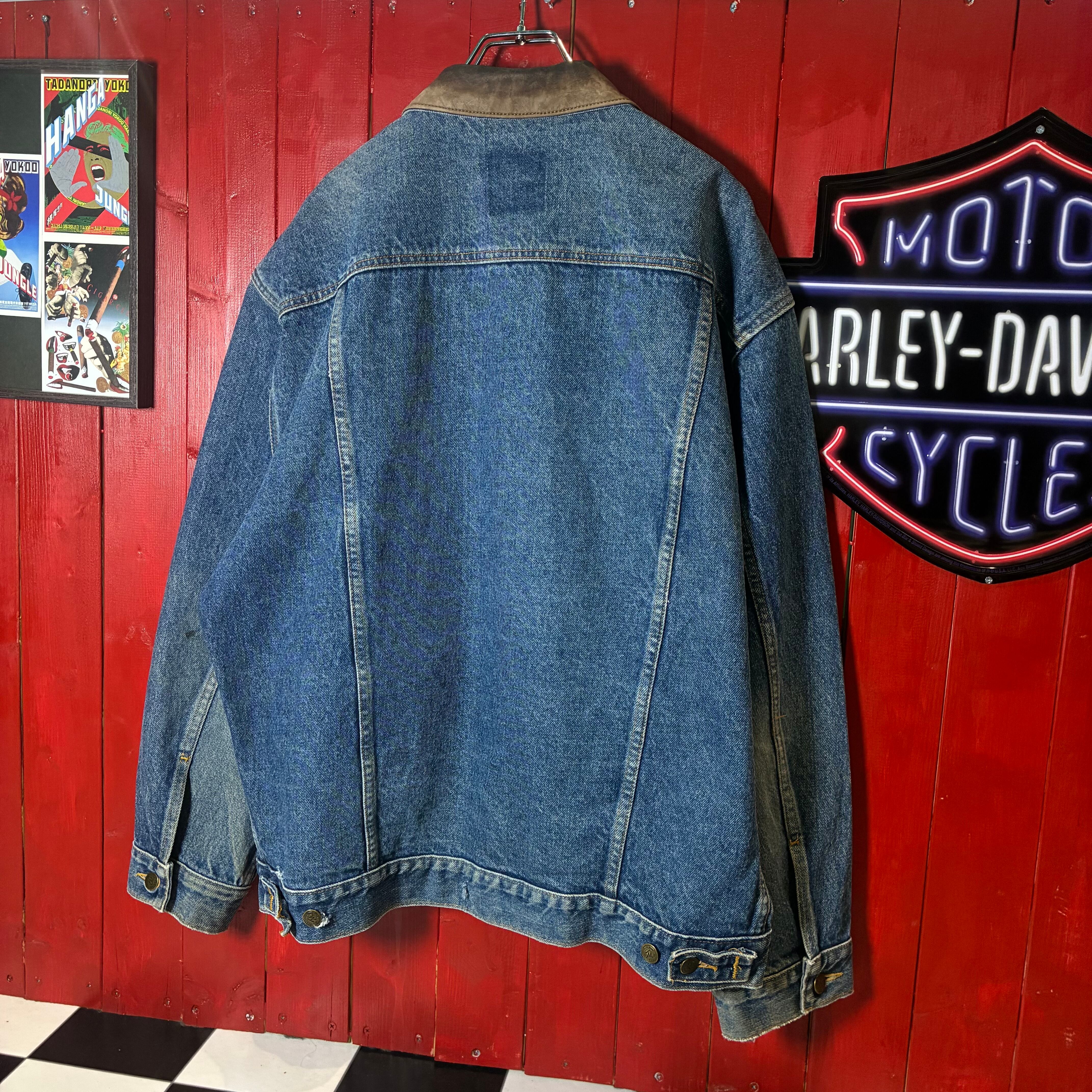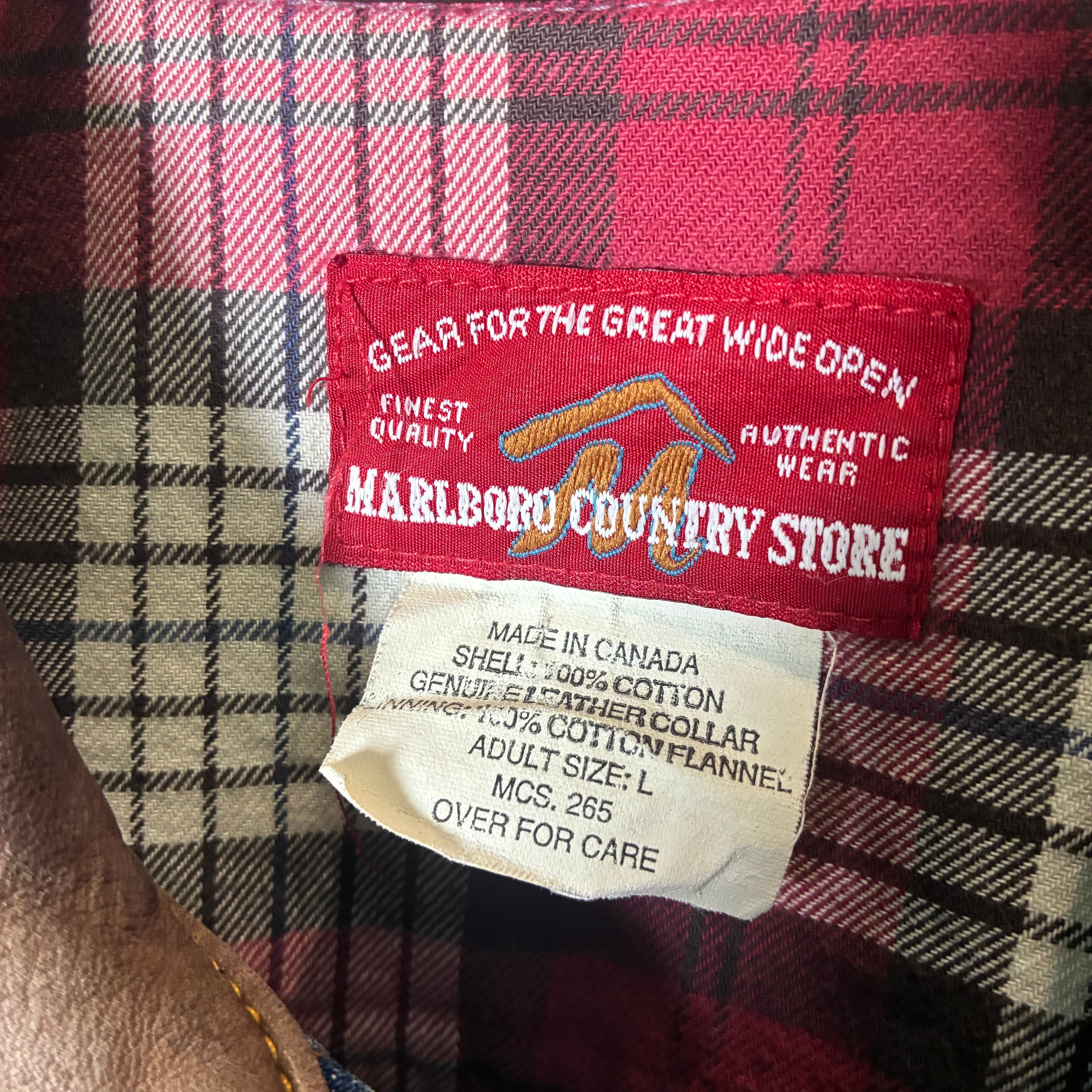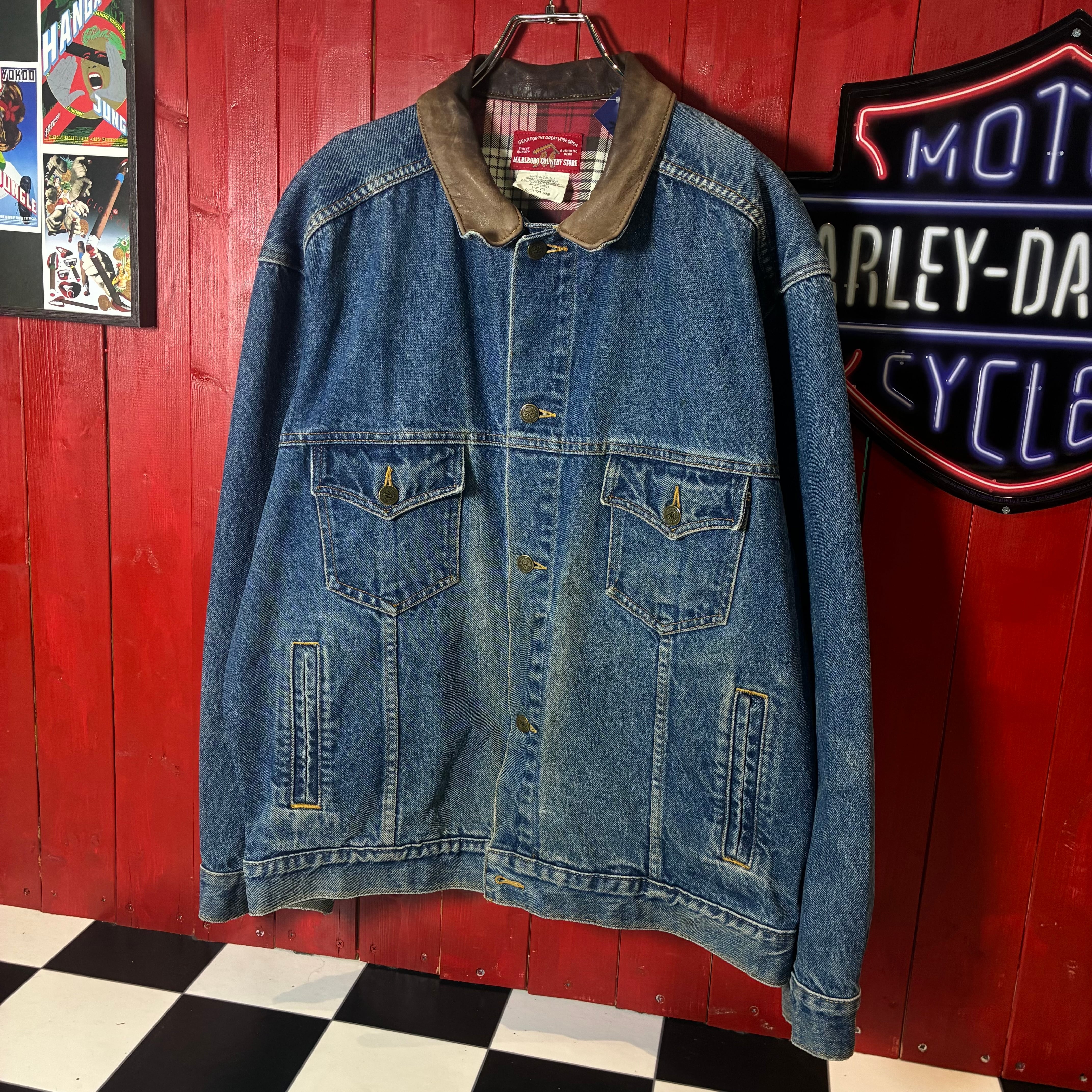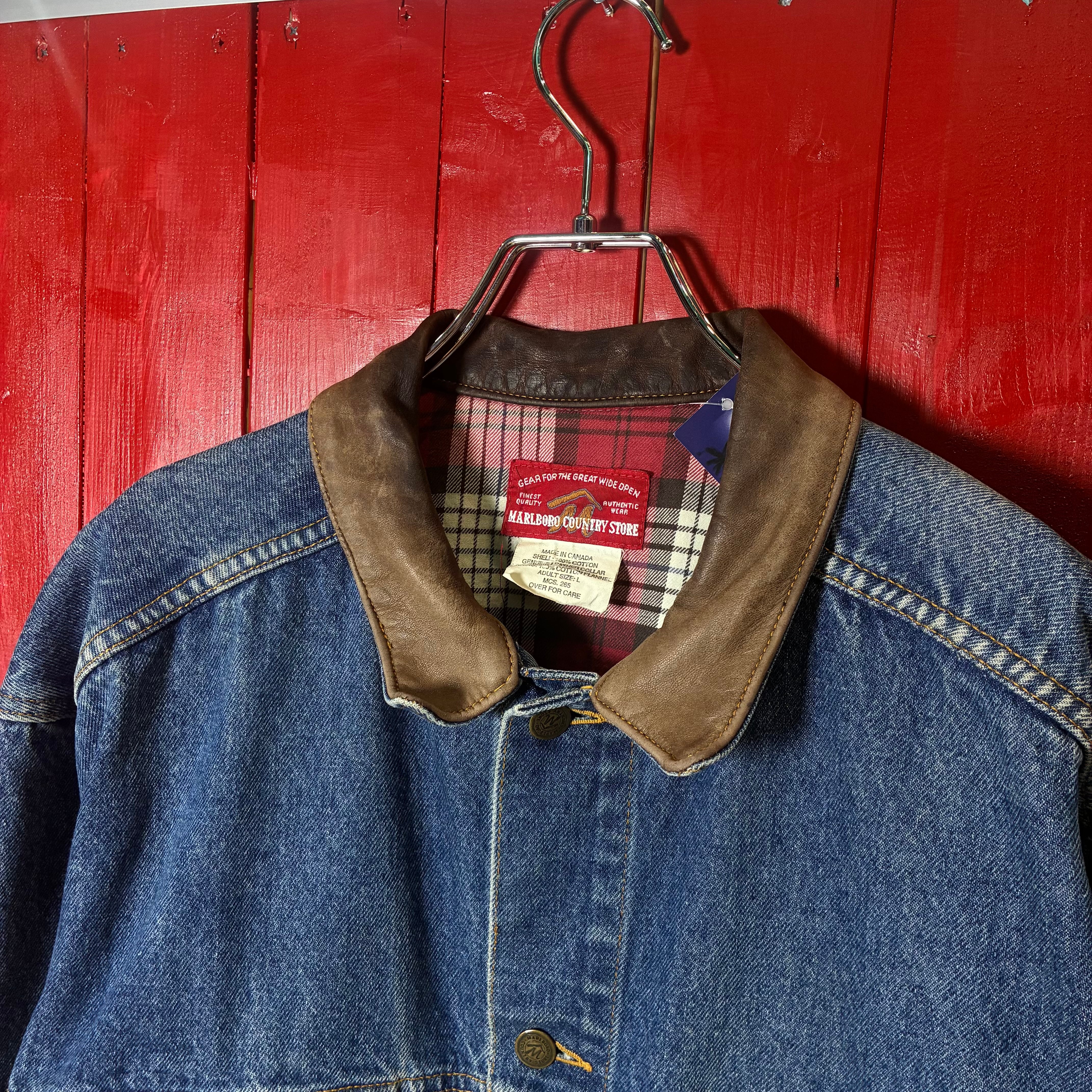 マルボロ デニムジャケット Marlboro 90s カナダ製 レザーカラー ワークジャケット アウトドア ヴィンテージ 古着
