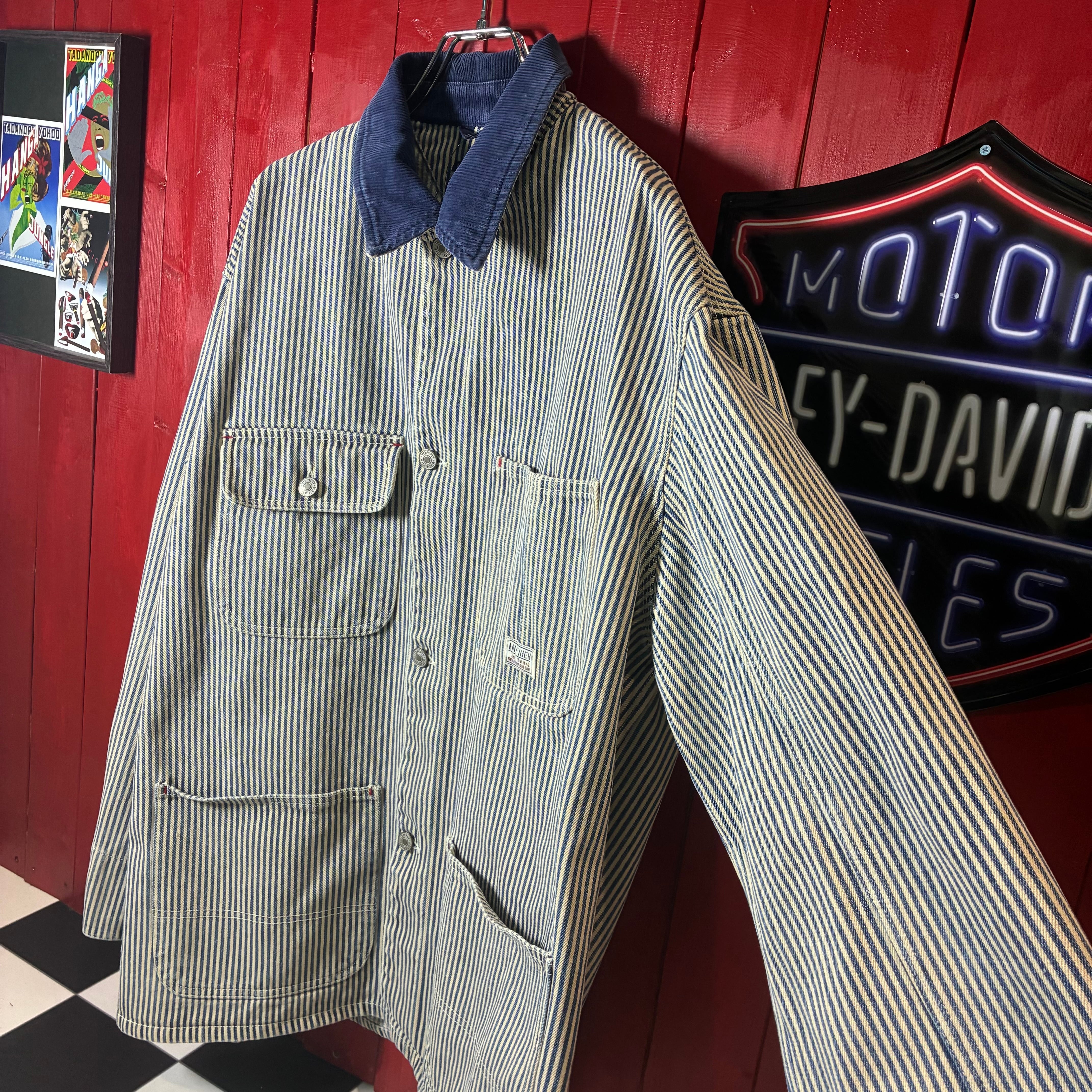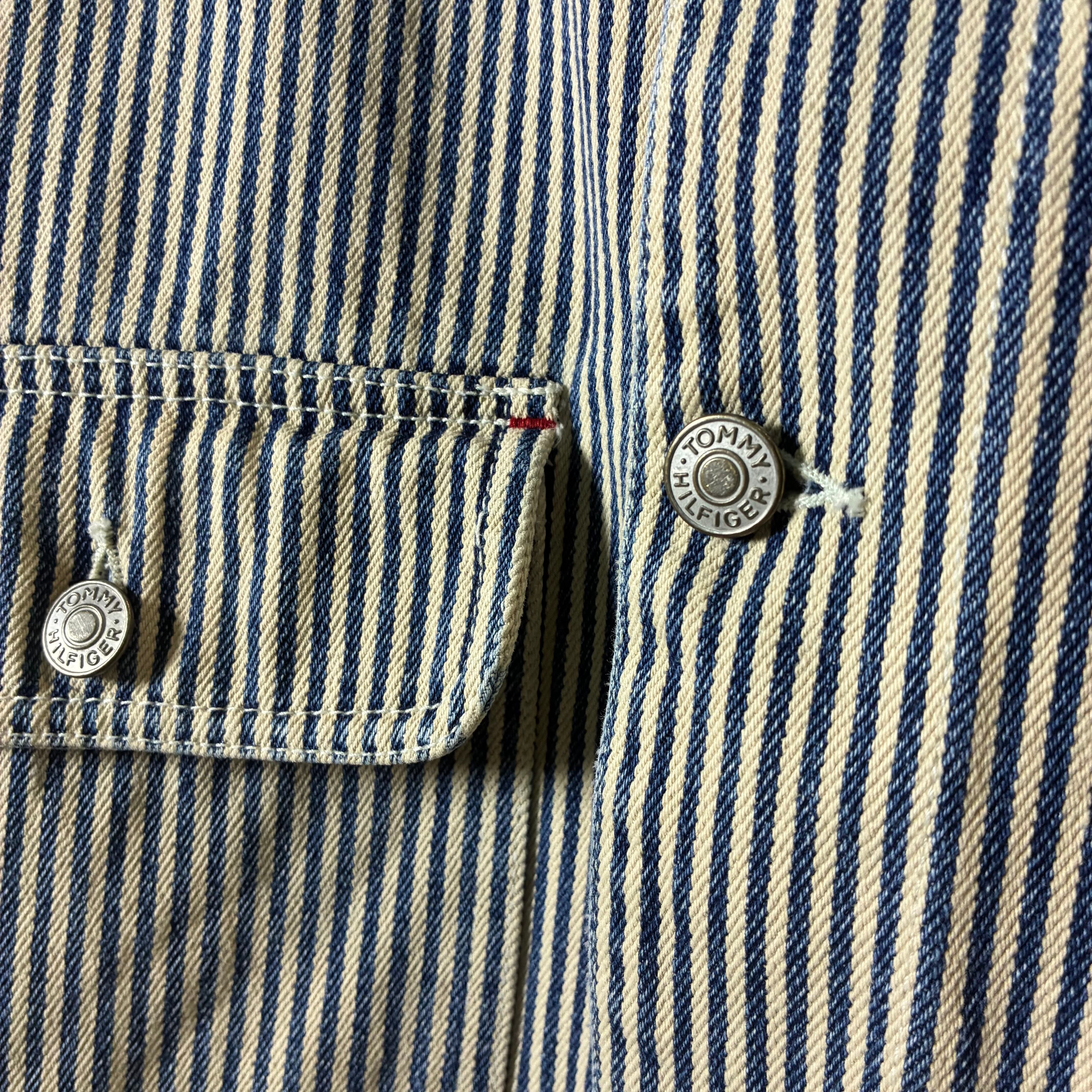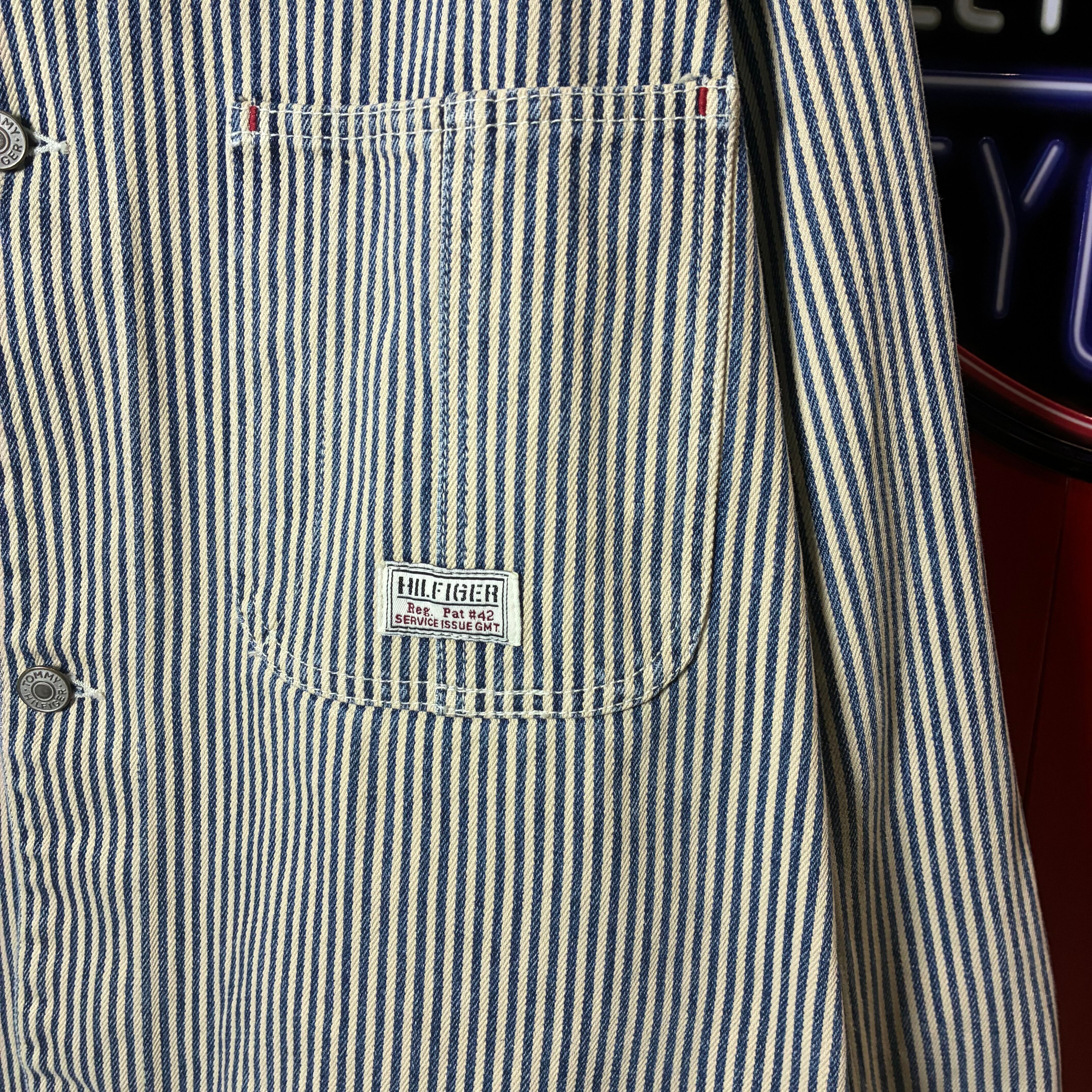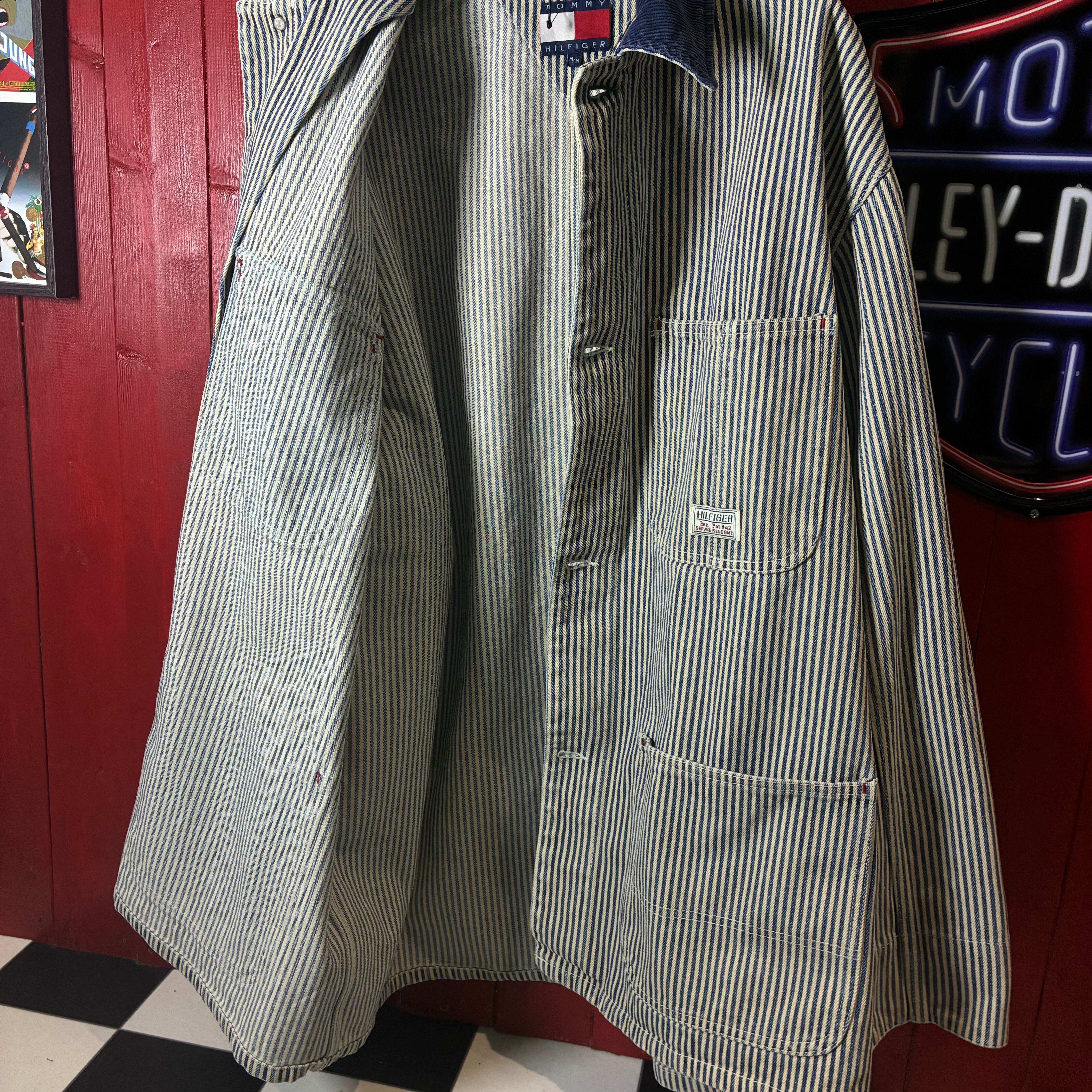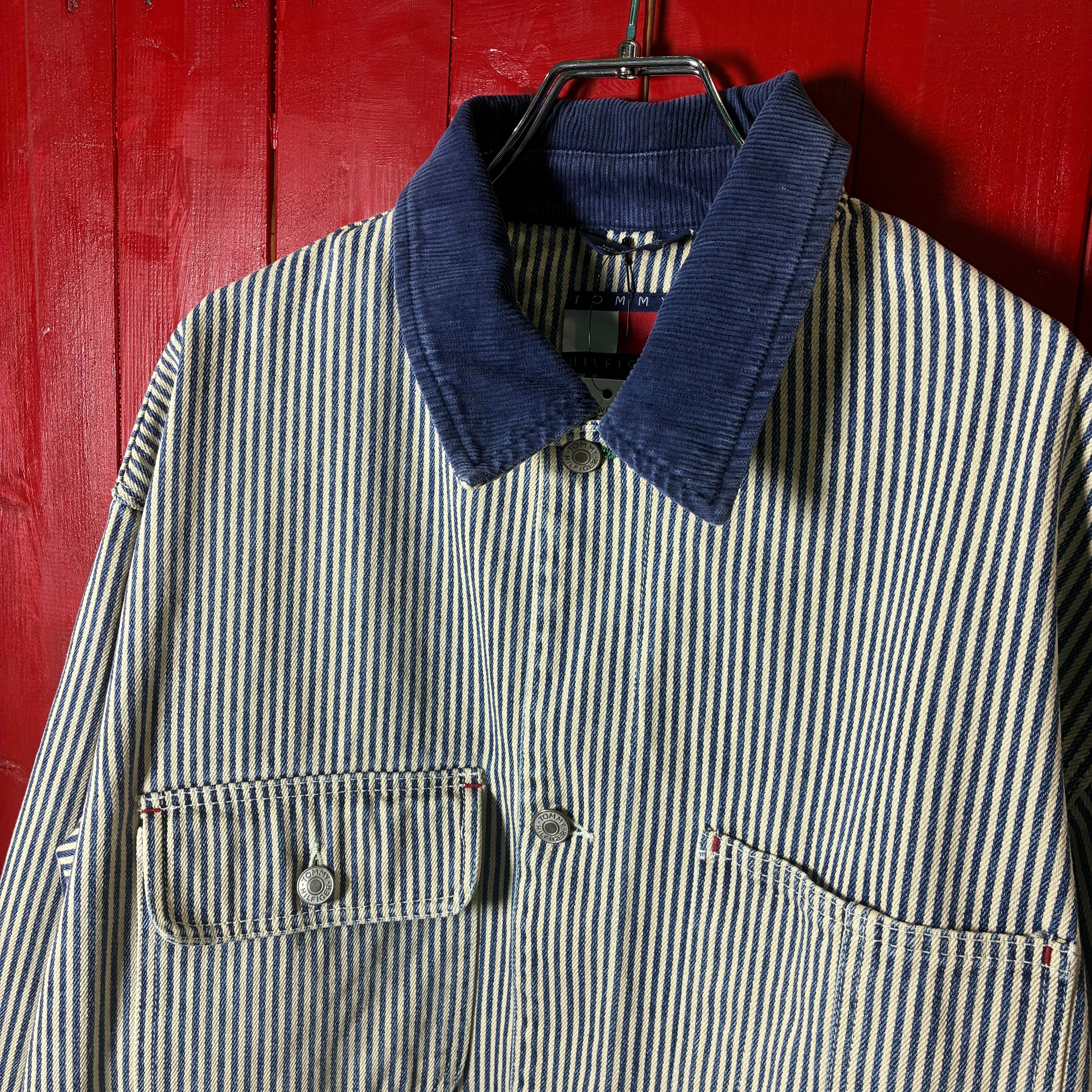 TOMMY HILFIGER 90s トミーヒルフィガー ヒッコリーストライプ カバーオール ワークジャケット ビンテージ アメリカ古着