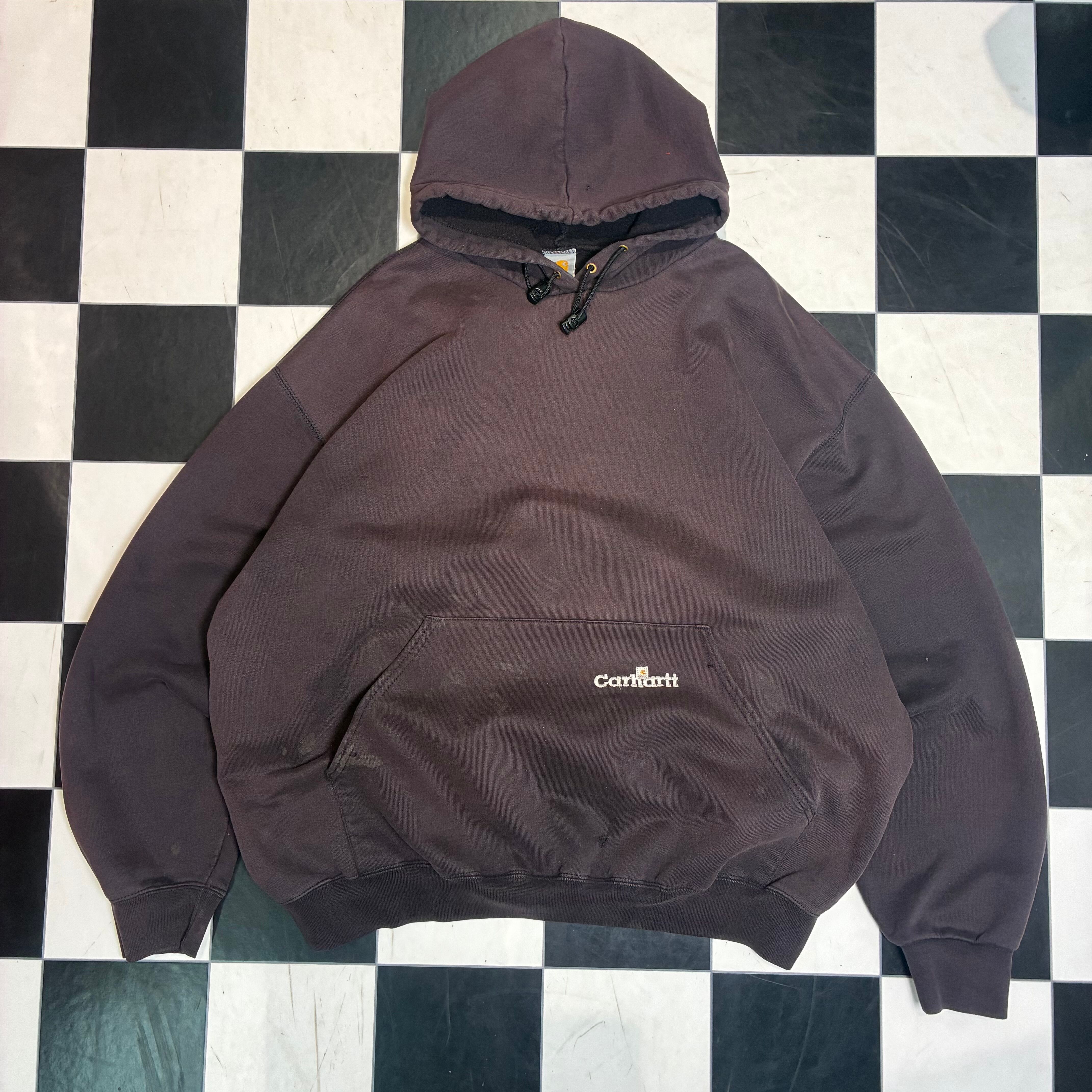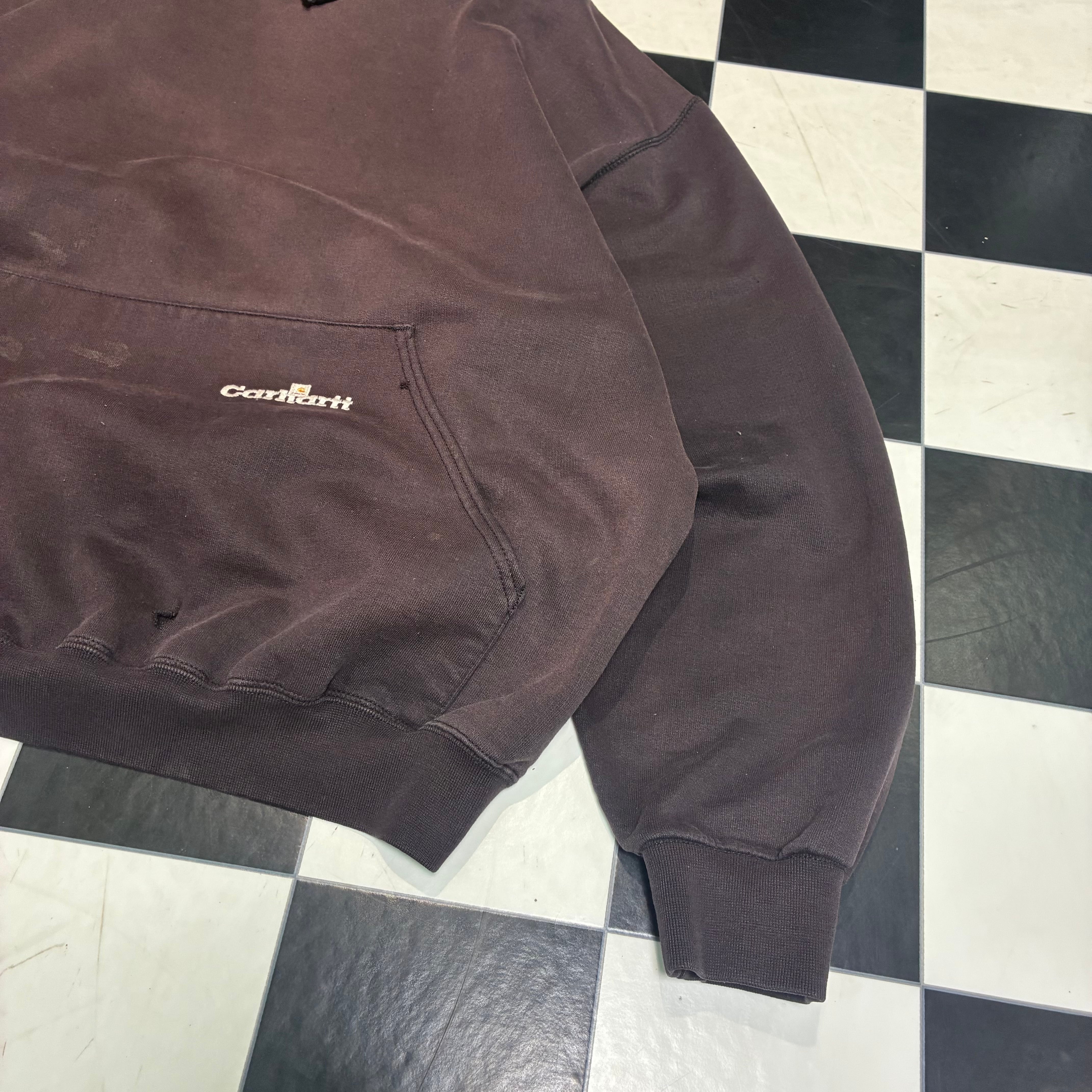 00s Carhartt プルオーバーパーカー フェードブラウン 刺繍ロゴ カーハート