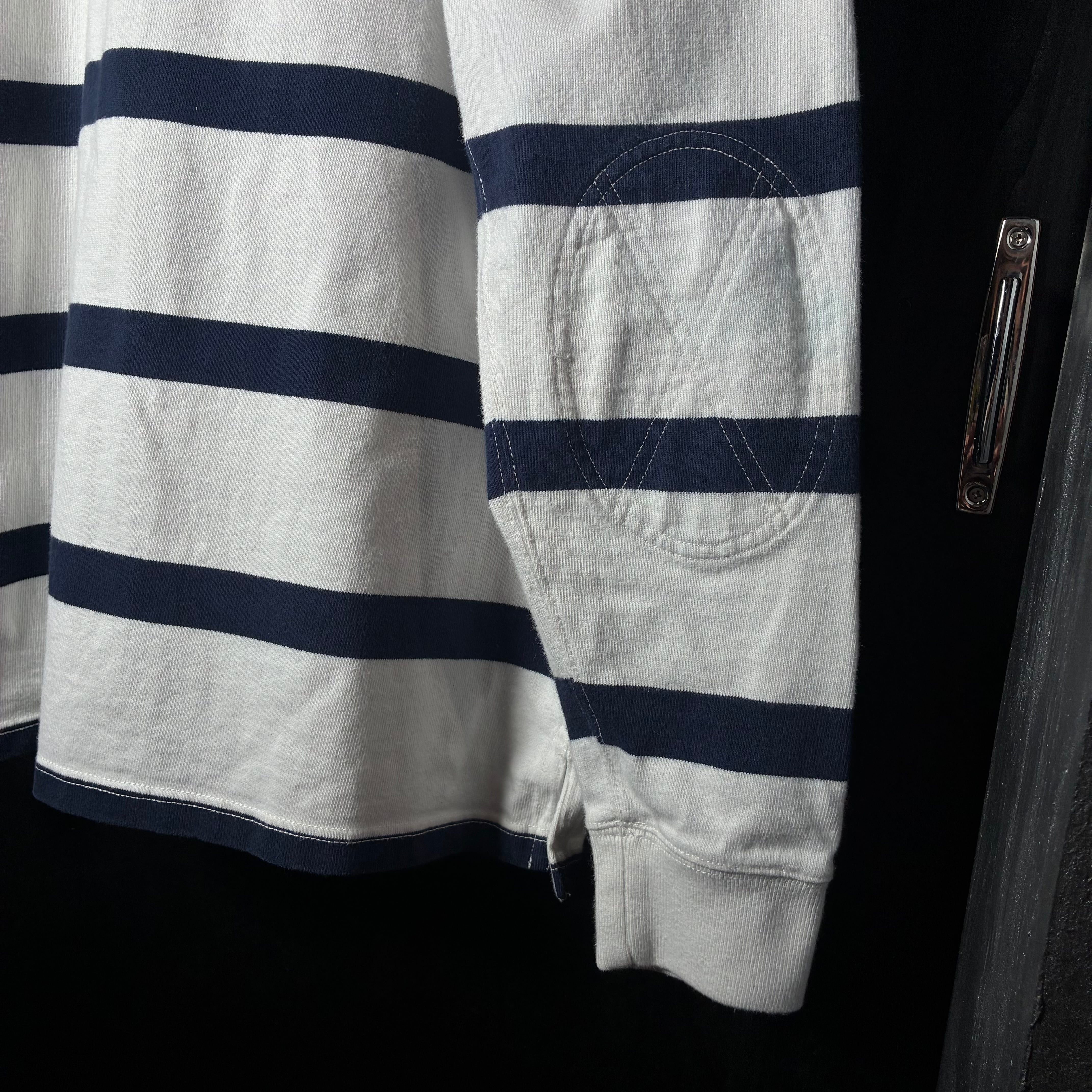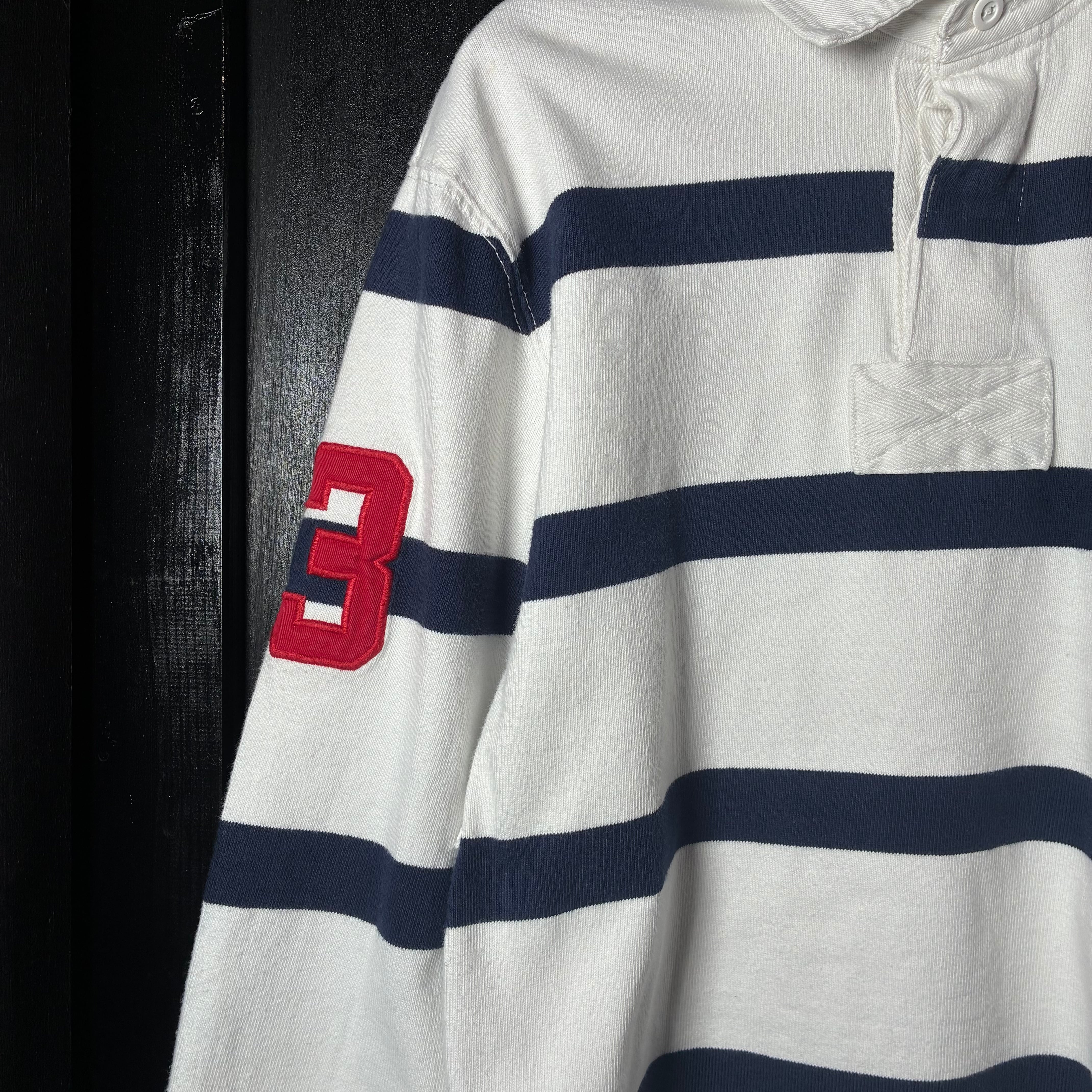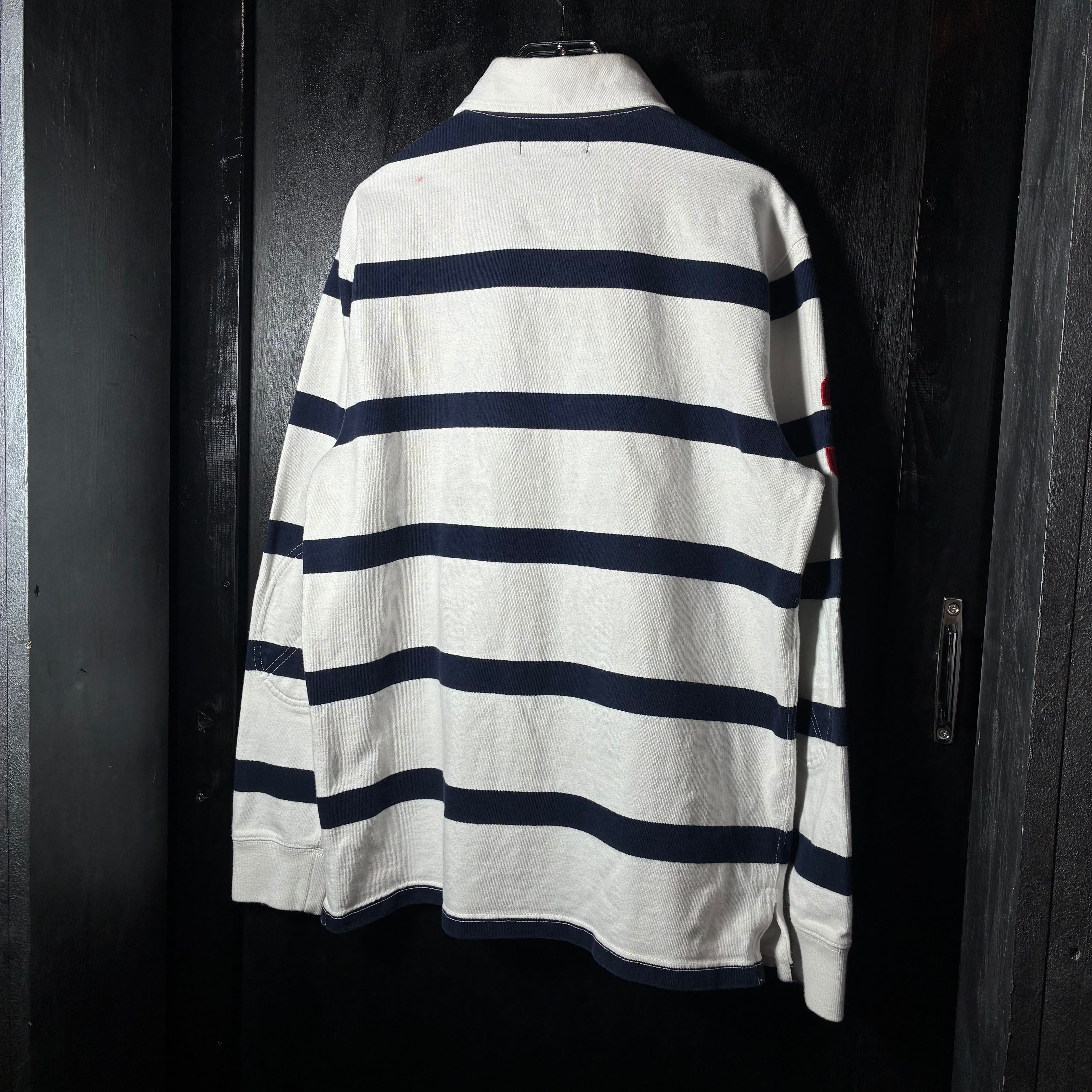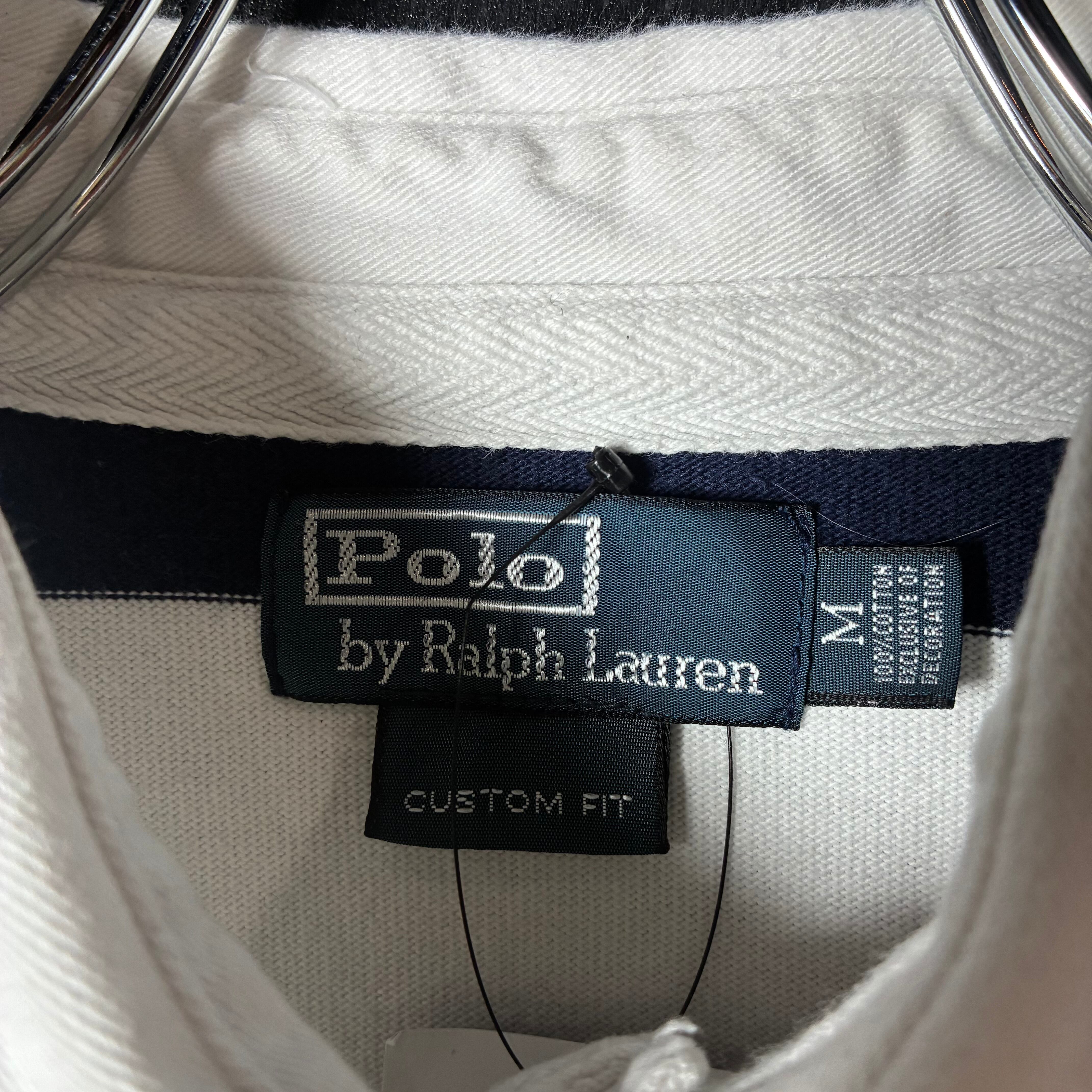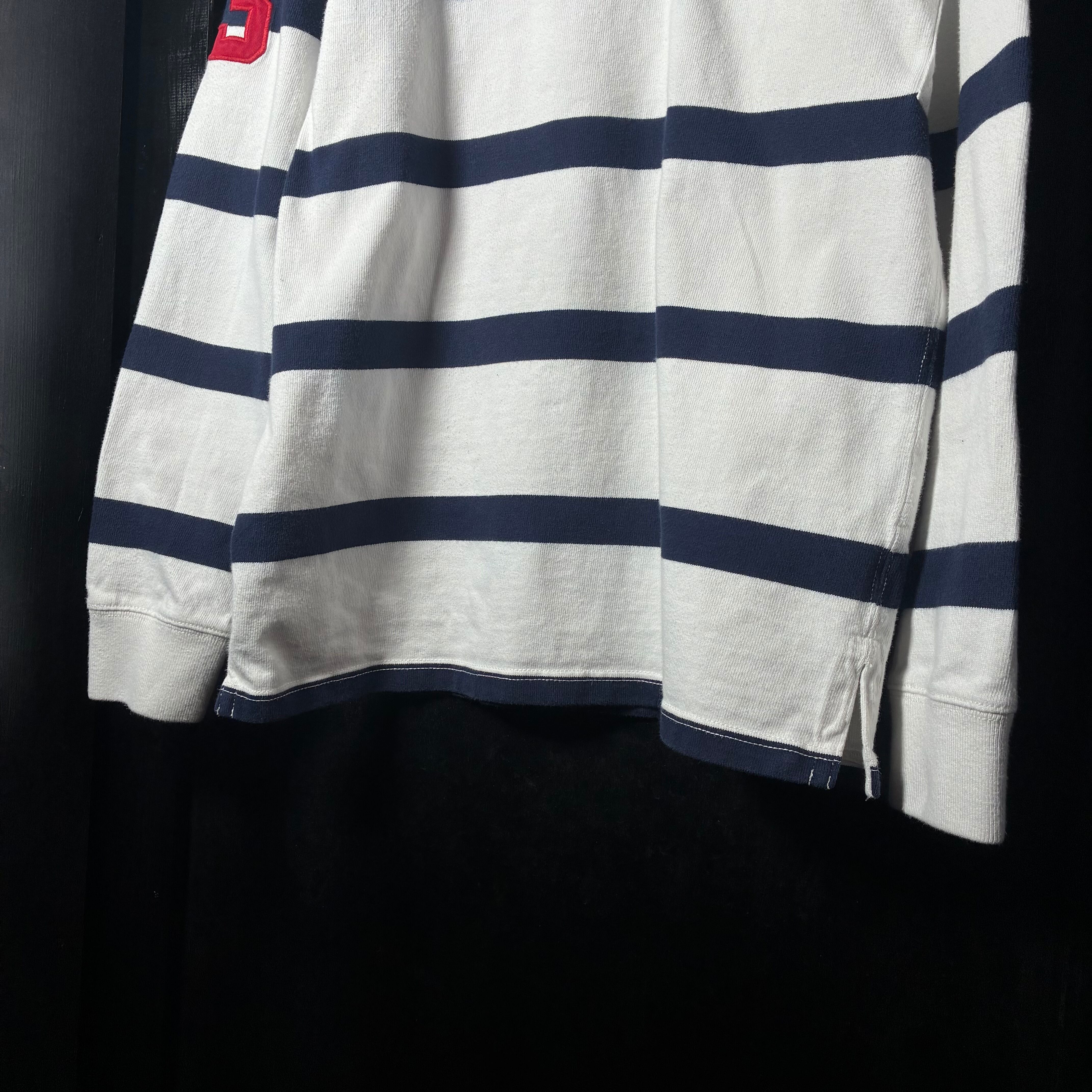 90s Polo Ralph Lauren ラルフローレン ラガーシャツ ビッグポニー ナンバリング ボーダーシャツ ホワイト ネイビー 長袖ポロシャツ ヴィンテージラルフ