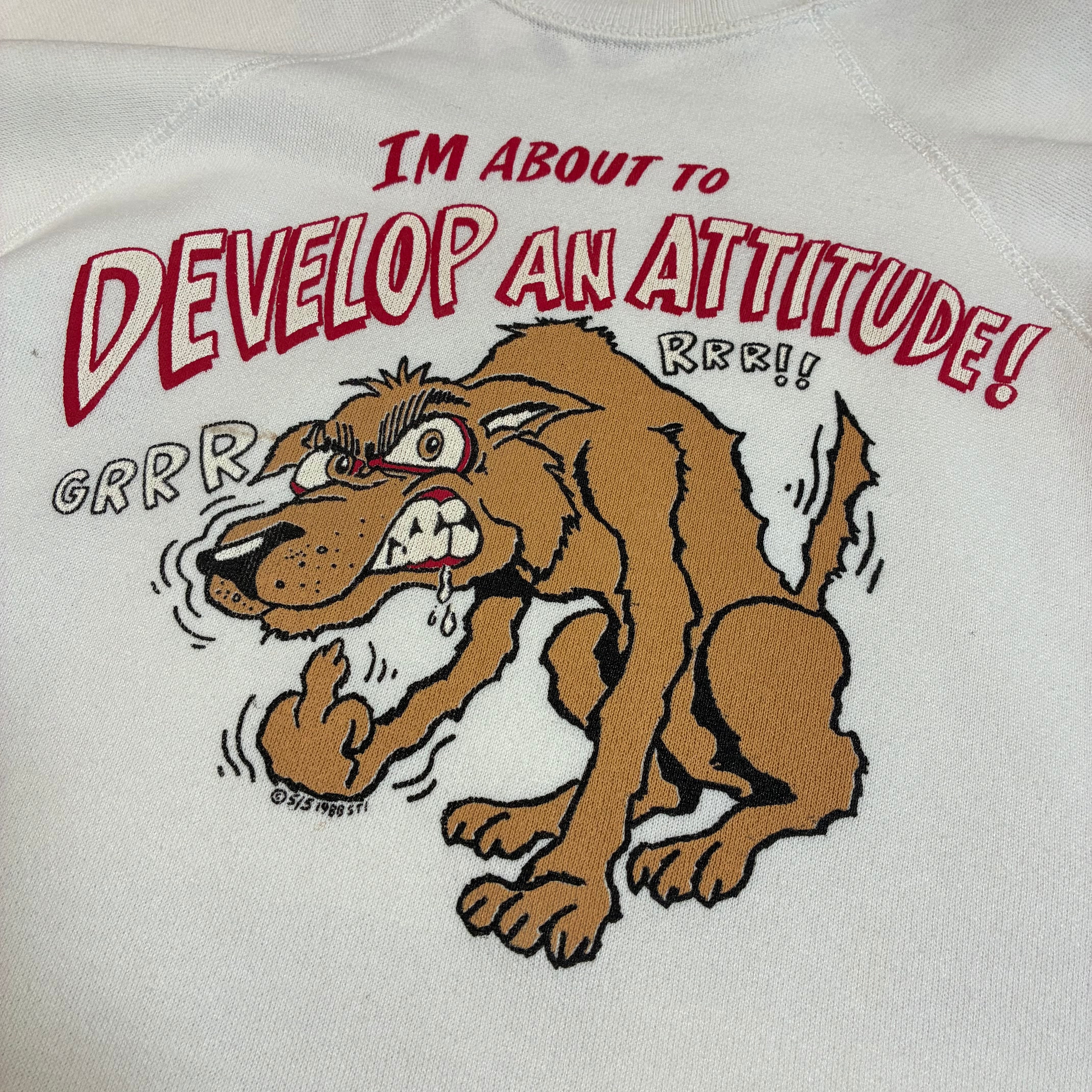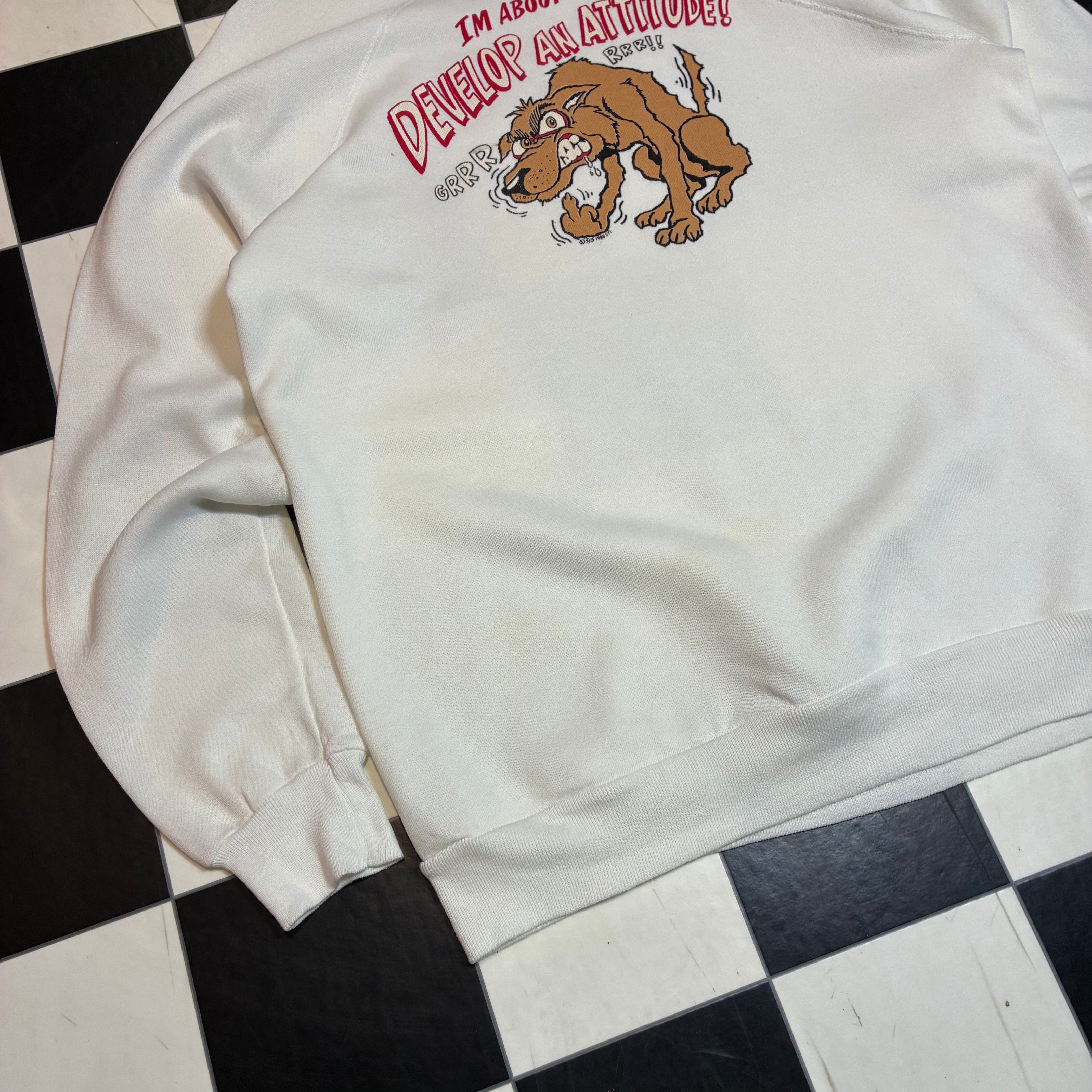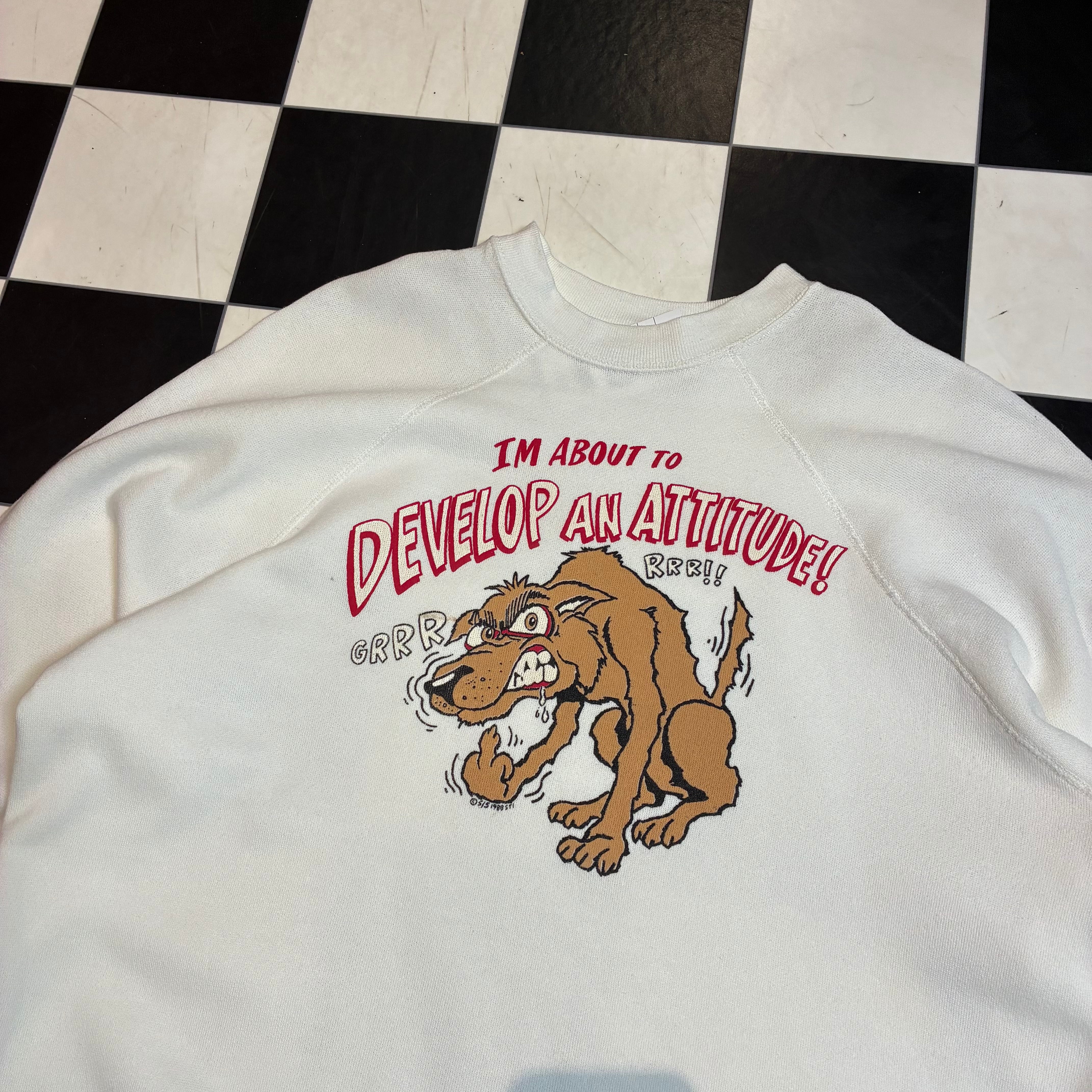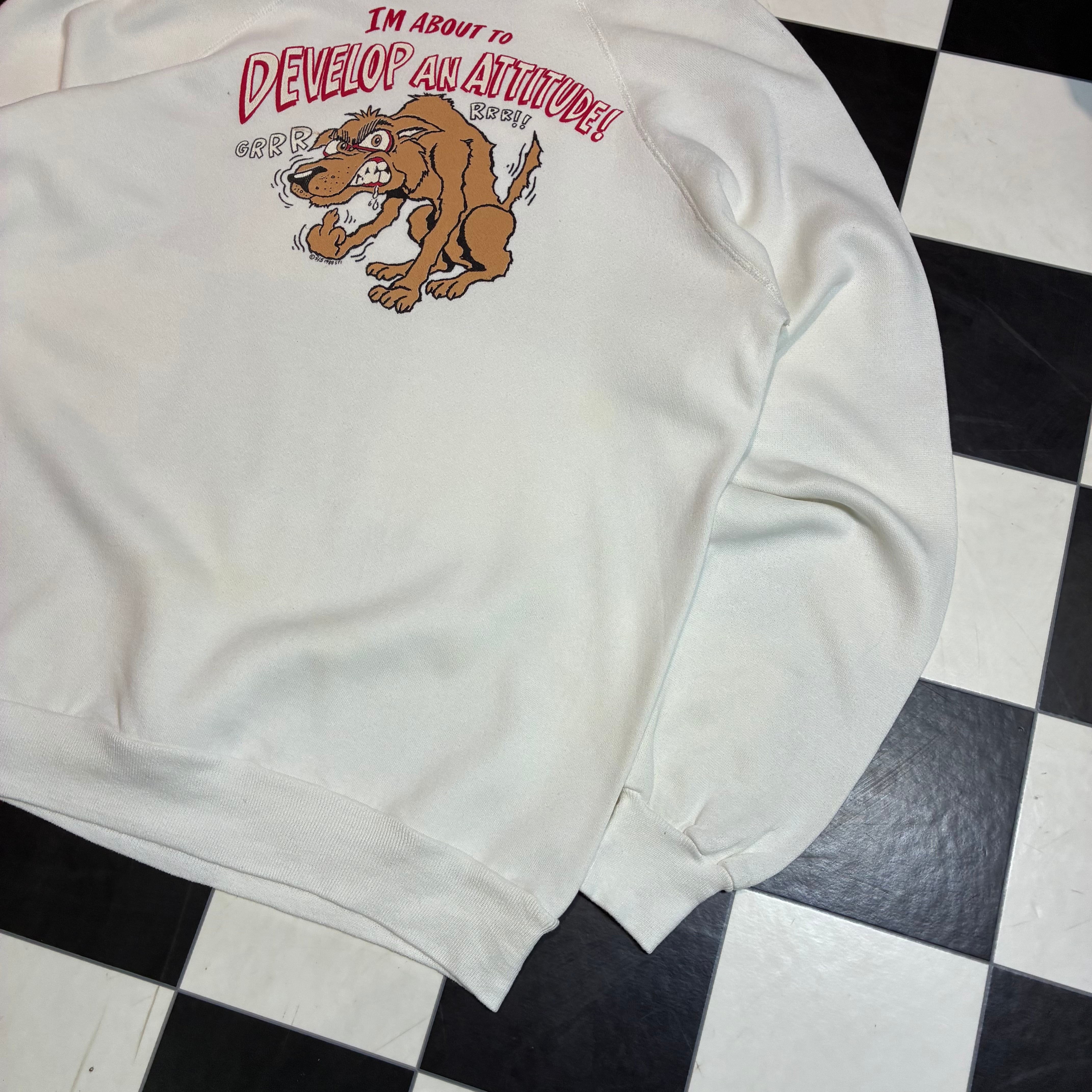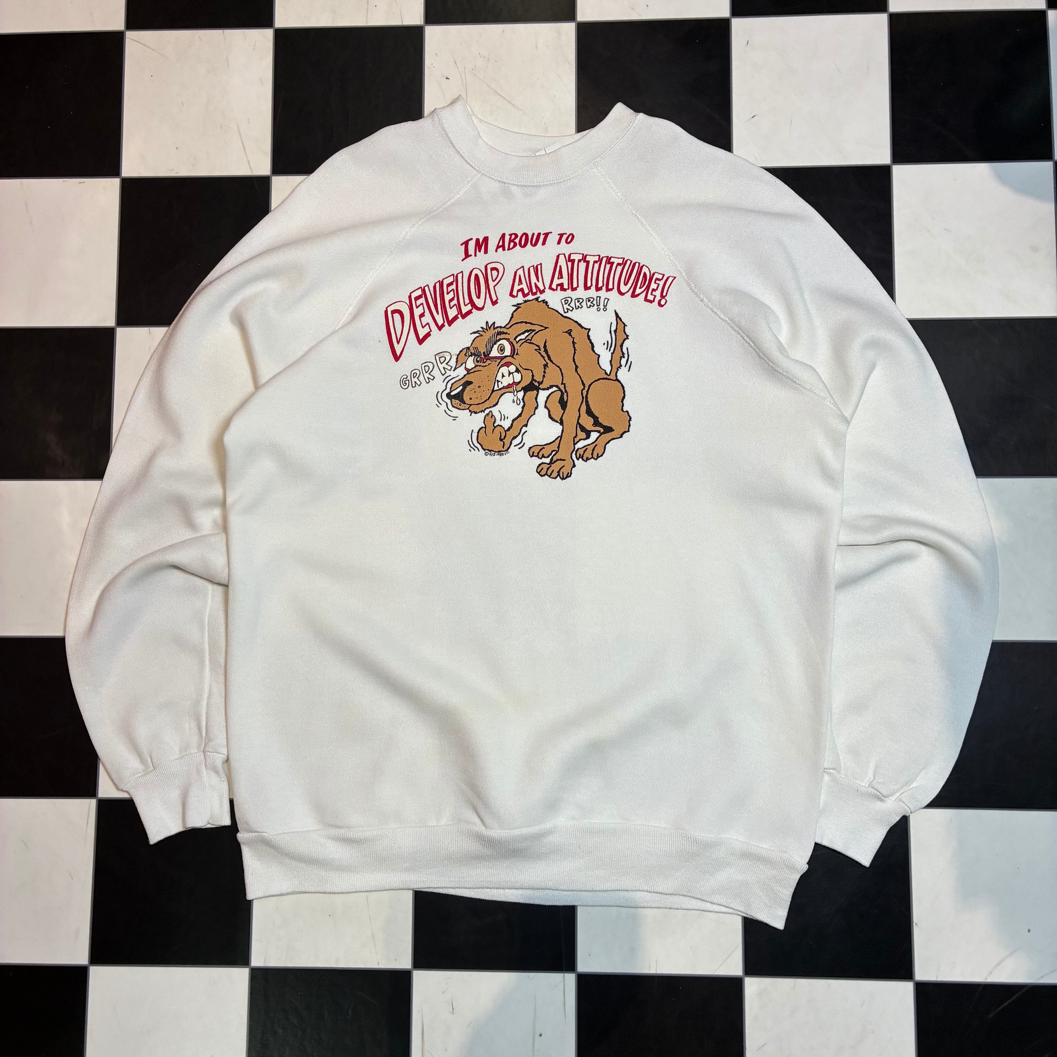80s Vintage ラグランスウェット ブチギレわんちゃん ファック