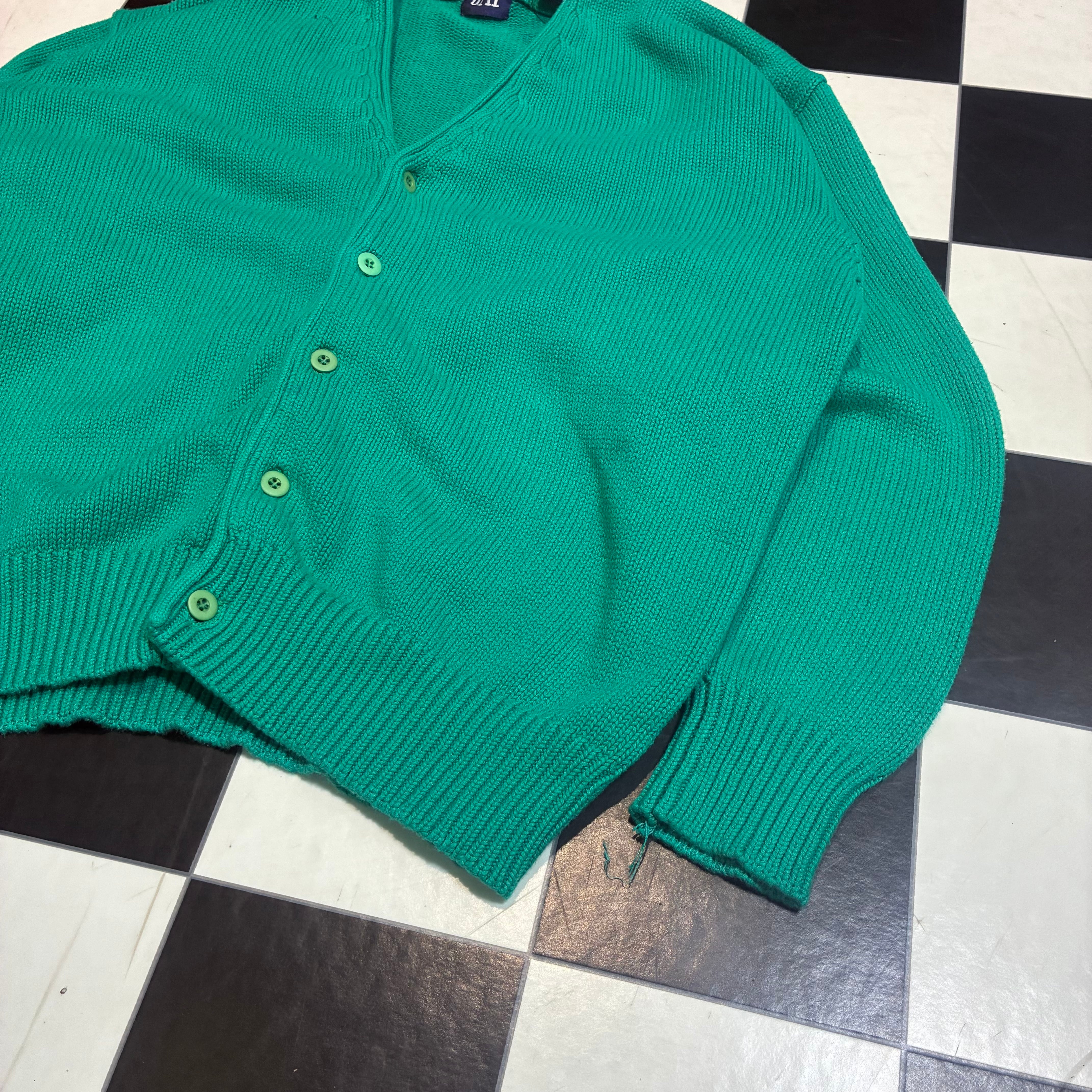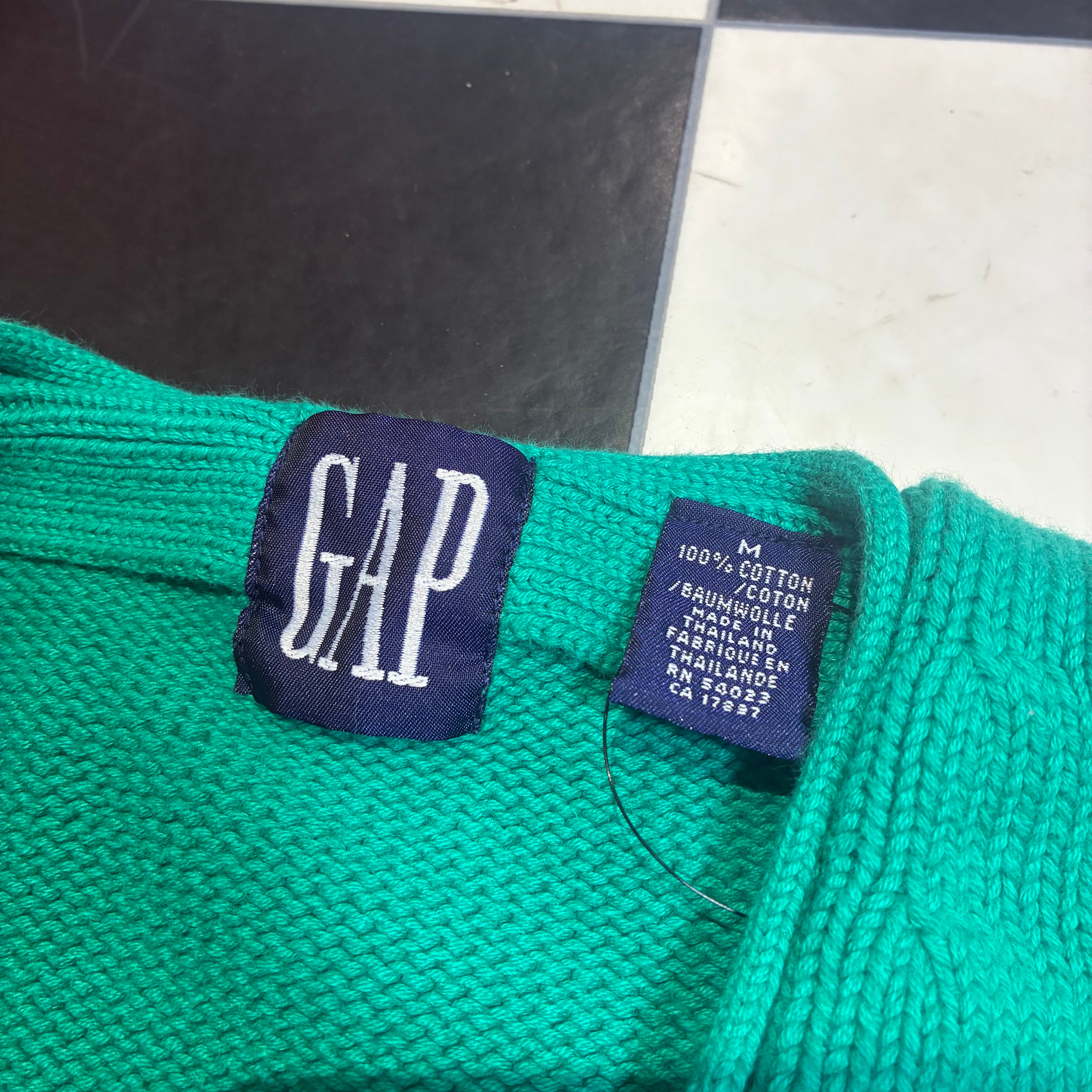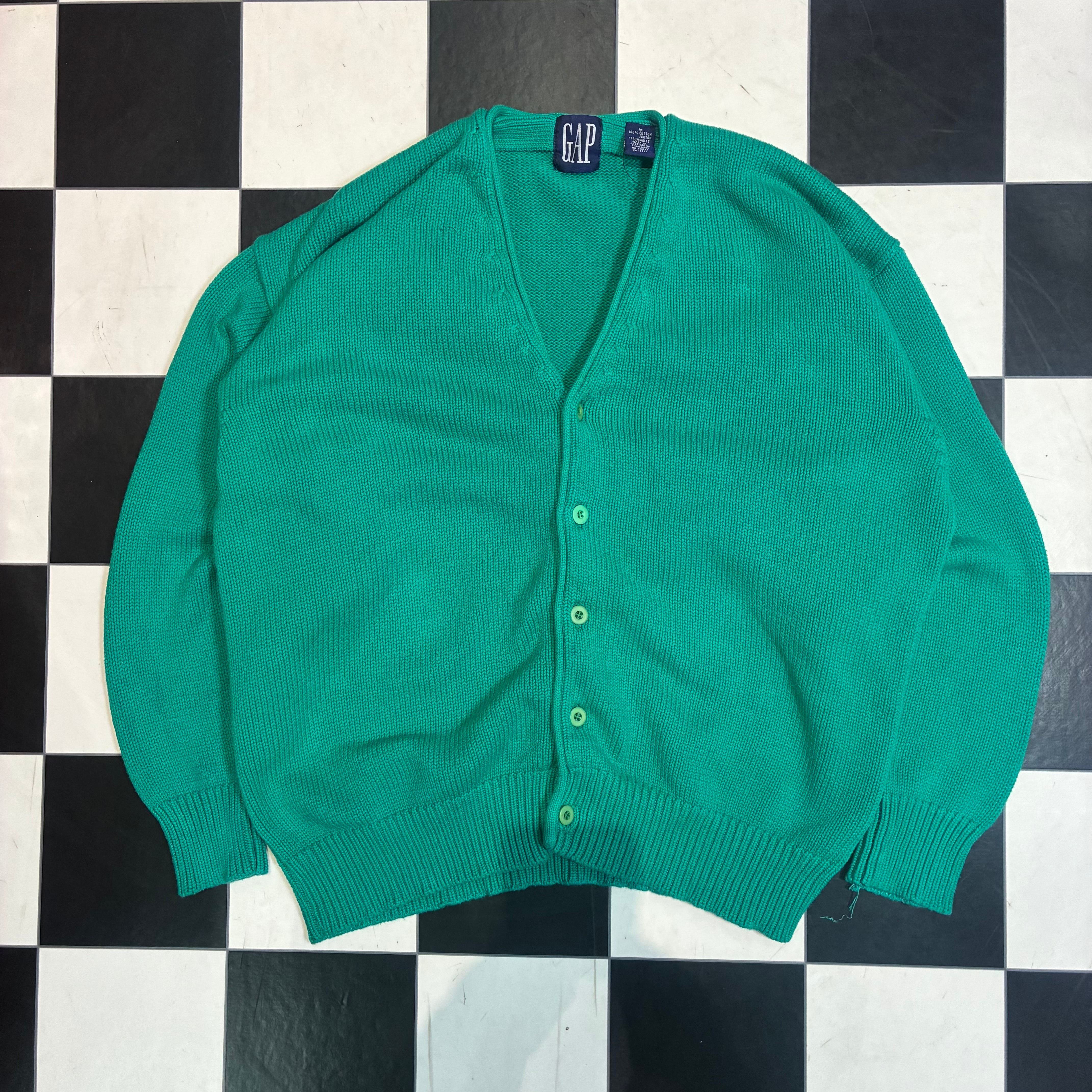 OLD GAP GAP 90s ギャップ コットンカーディガン カーディガン ニット グリーン 緑 無地 ボックスシルエット アメカジ ストリート 古着 ヴィンテージ