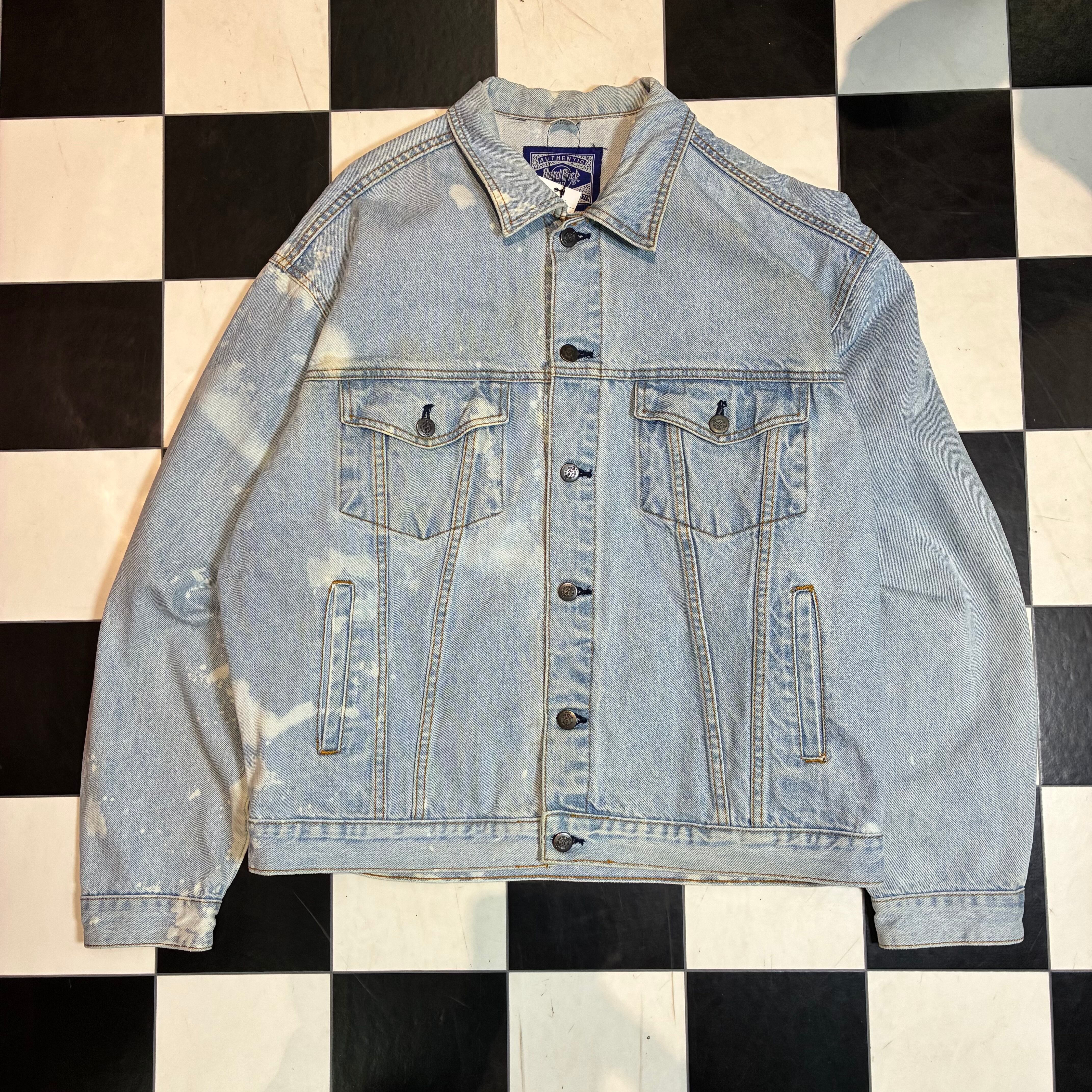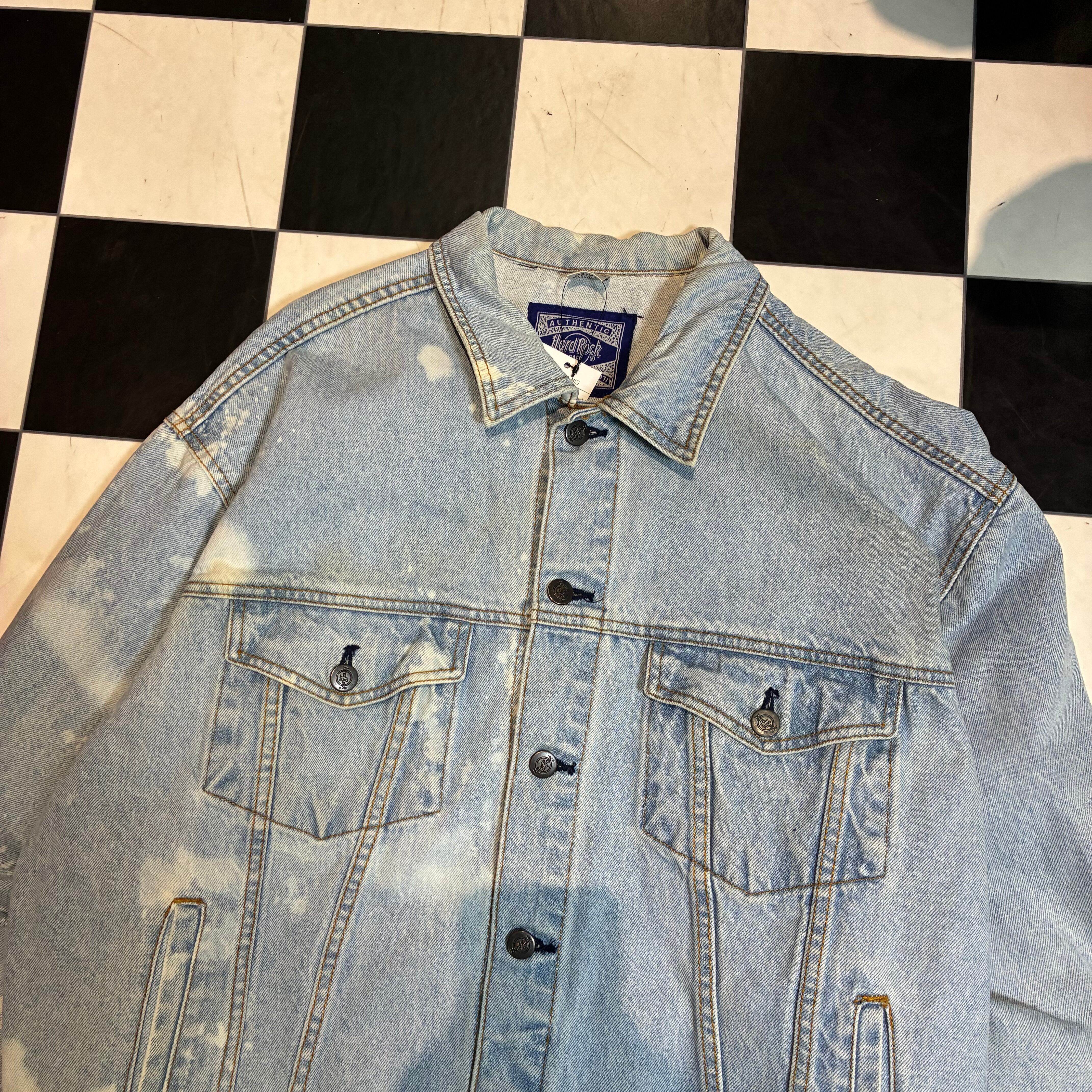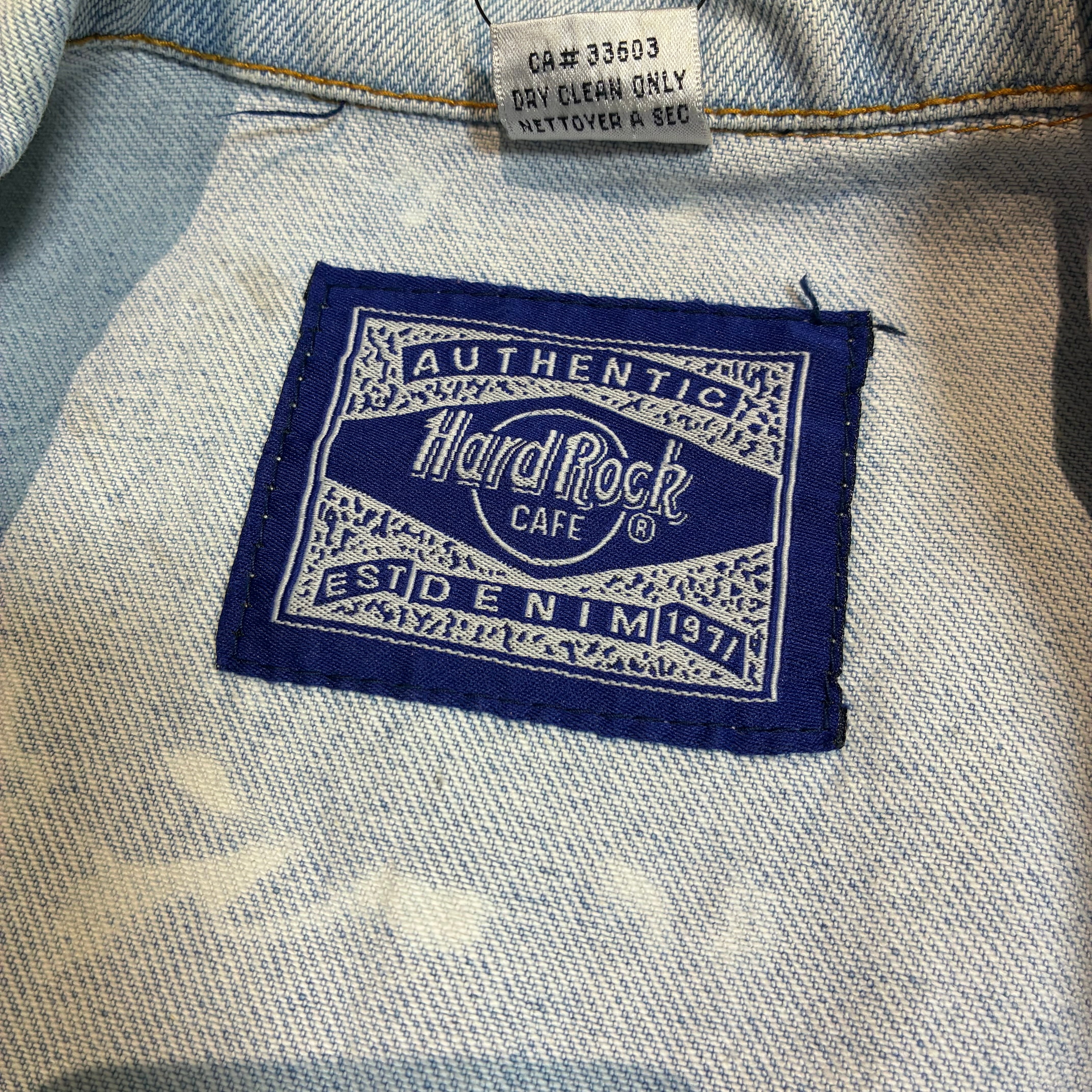 90s Hard Rock CAFE デニムジャケット ハードロックカフェ SKYDOME TORONTO ブリーチ加工 ヴィンテージデニム 刺繍ロゴ バンド 古着 Gジャン