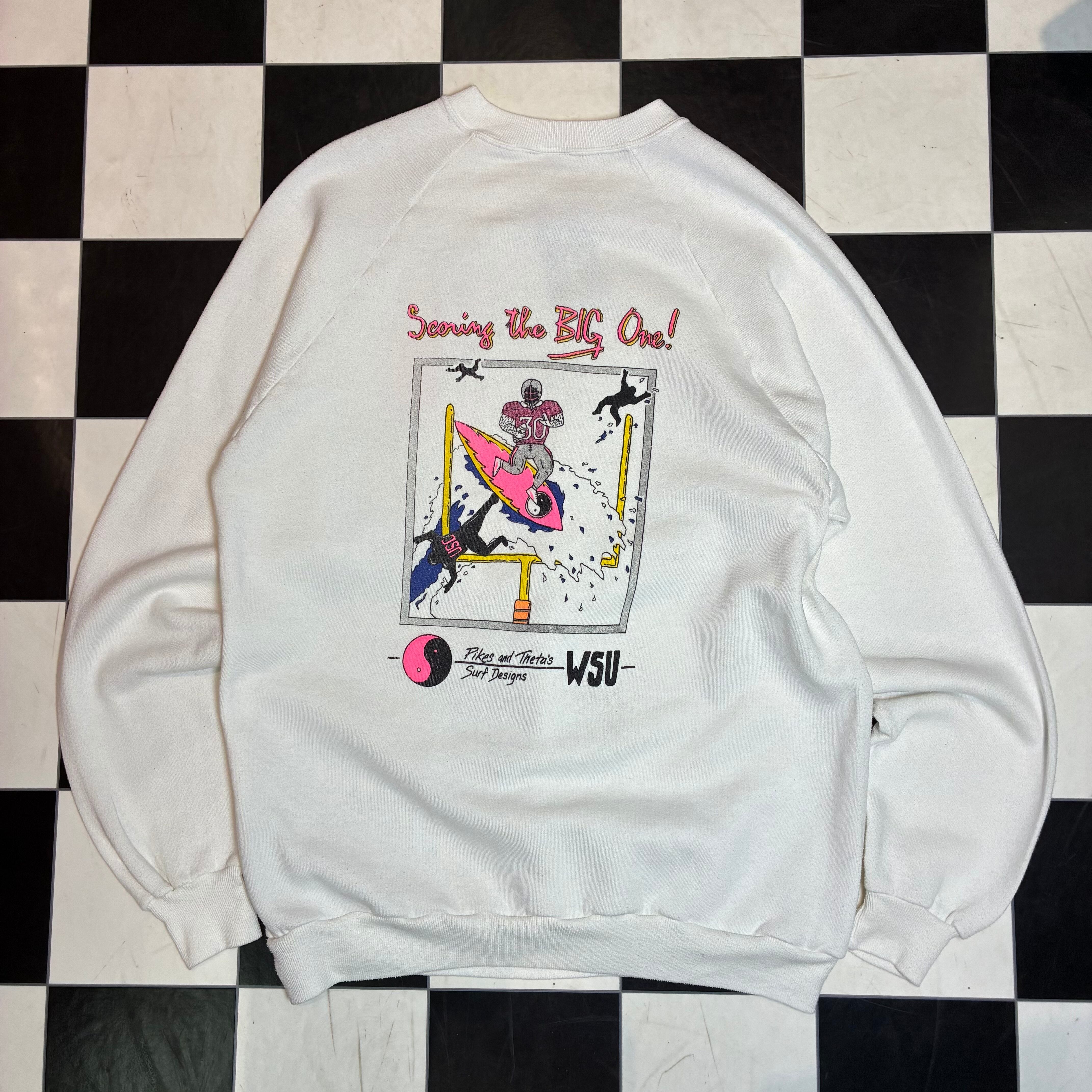 80s USA製 JERZEES サーフィンラガーマン ラグランスウェット 白