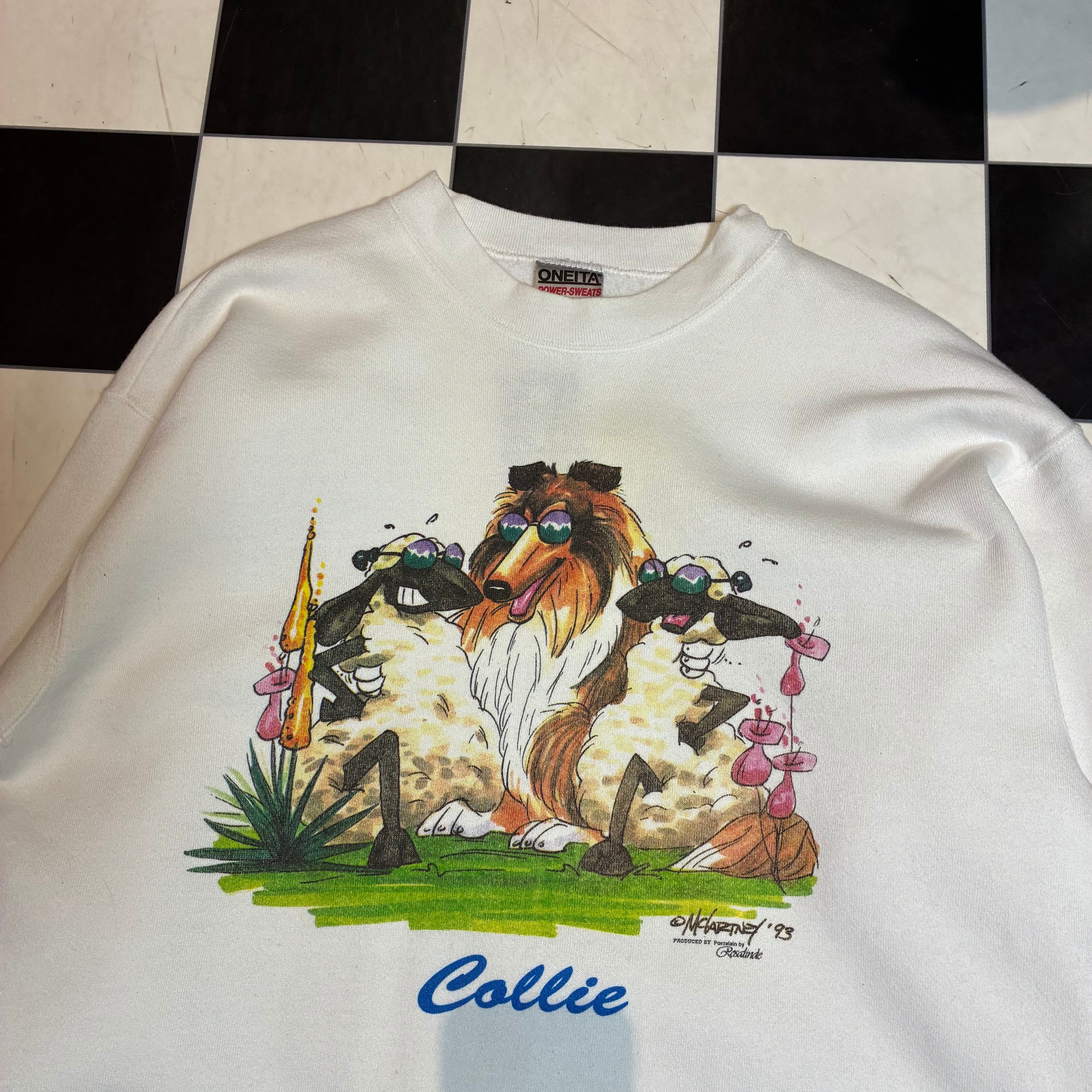 90s USA製 ONEITA アニマルスウェット 犬 白 L
