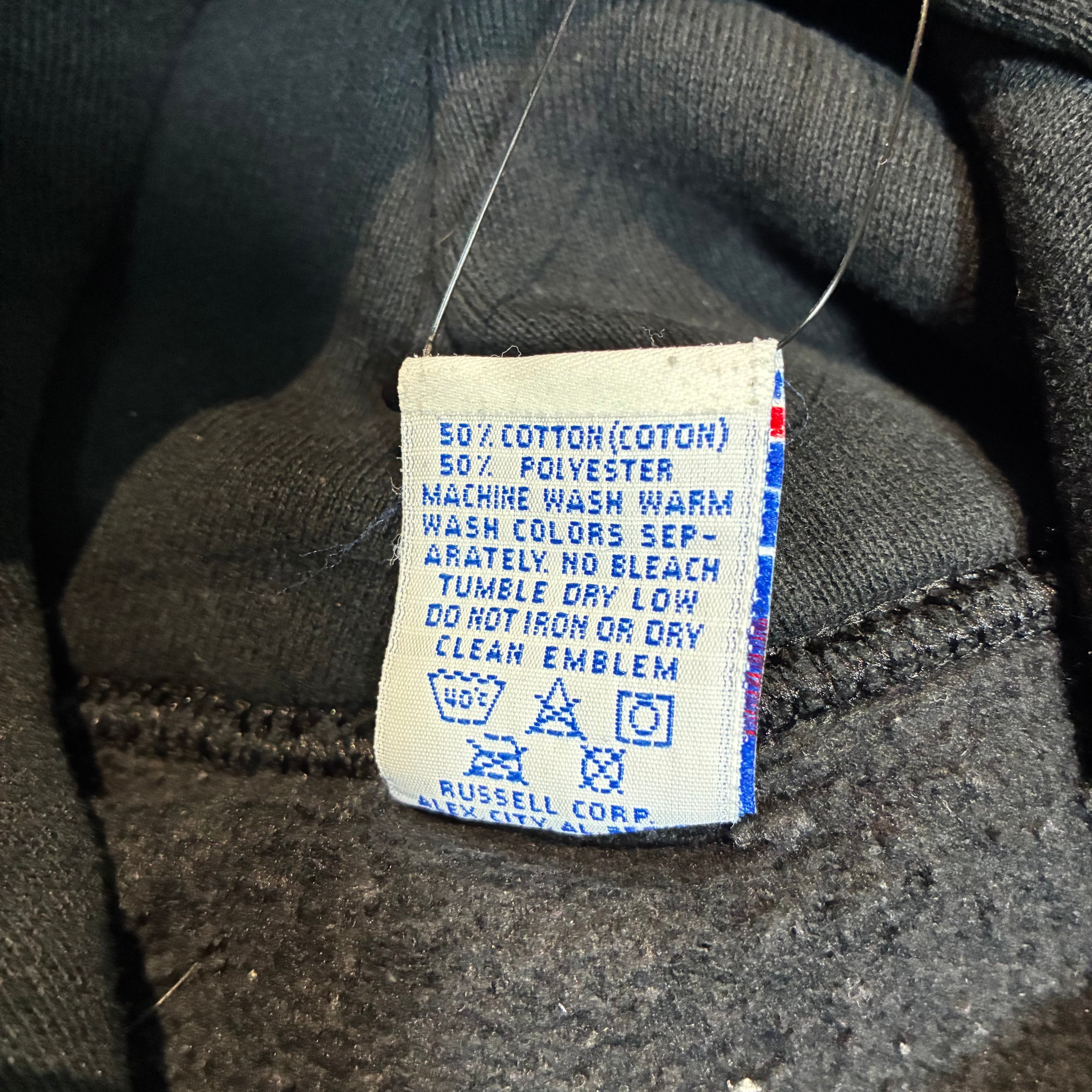 90s USA製 RUSSELL ATHLETIC ラッセルアスレチック サンフランシスコ州立大学 SAN FRANCISCO STATE UNIVERSITY カレッジパーカー 刺繍ロゴ ブラックパーカー アメリカ製 古着 スウェットパーカー ストリート