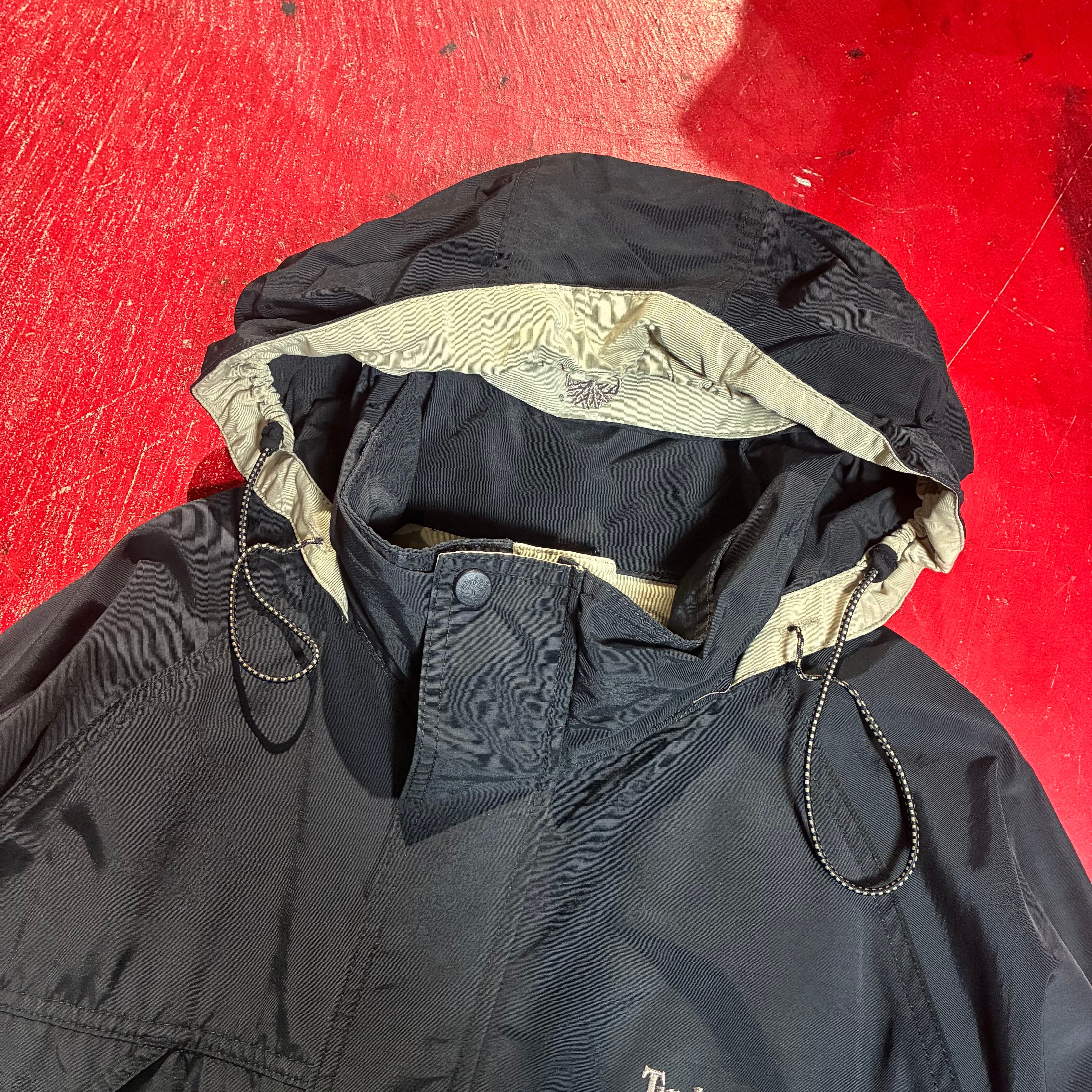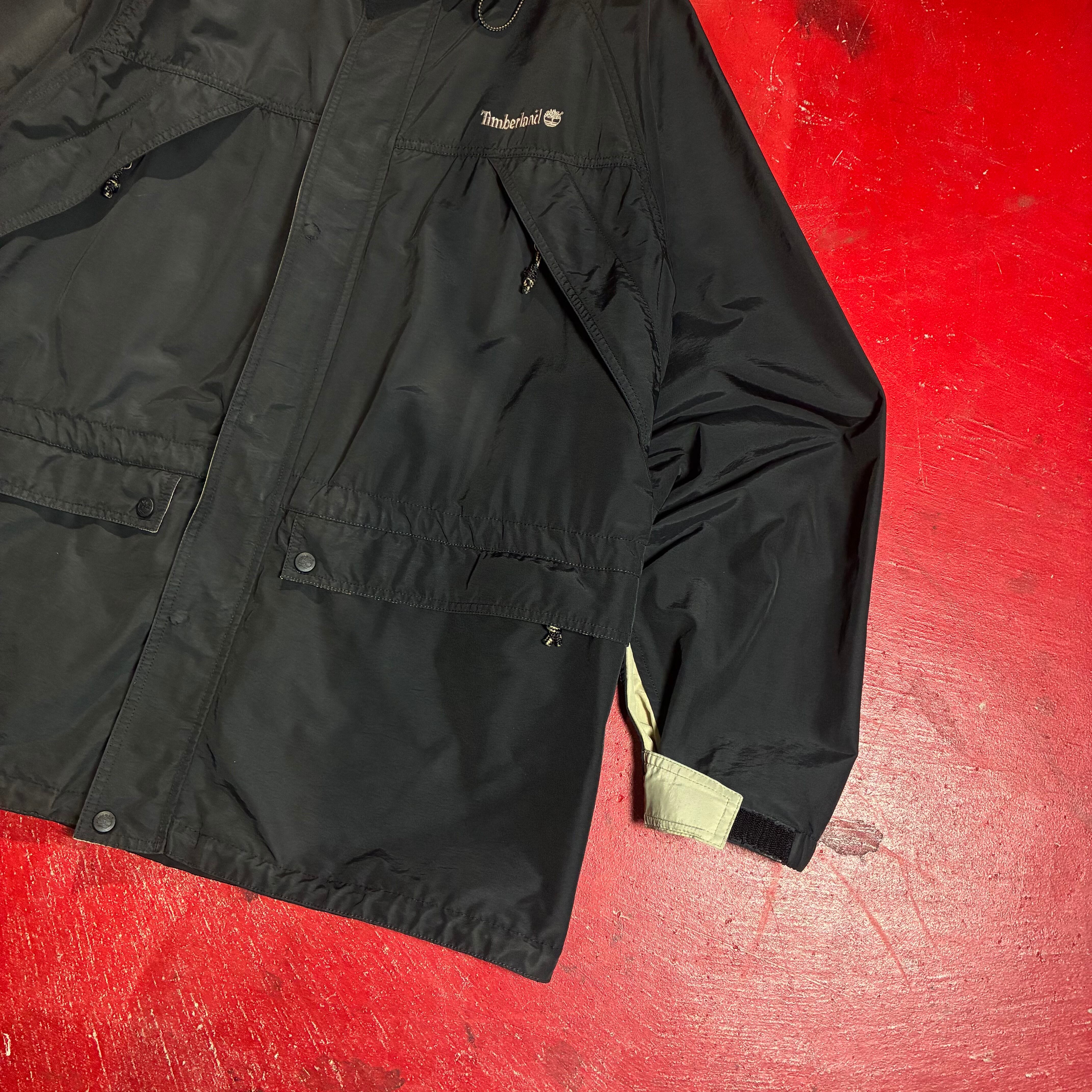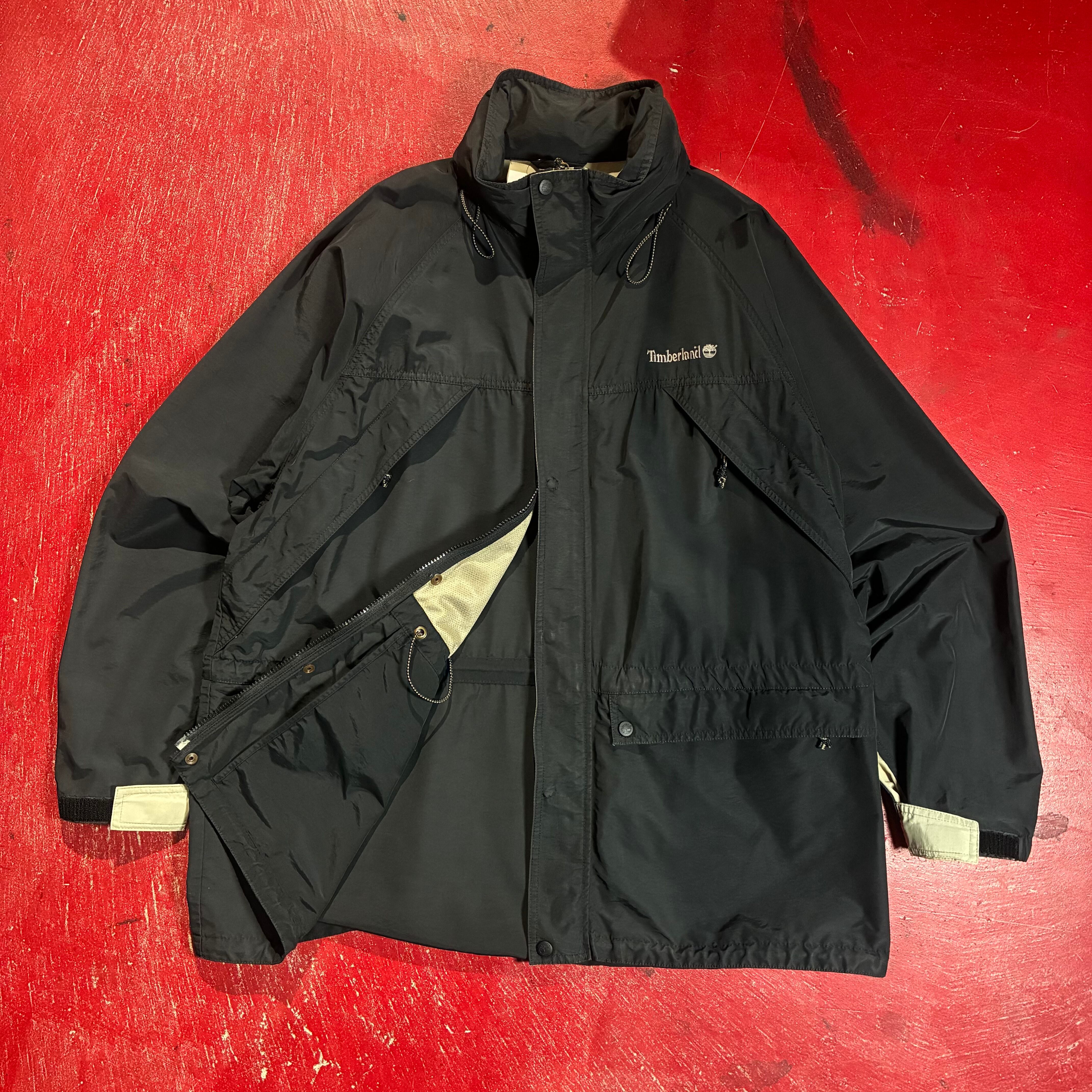 90s Timberland WEATHERGEAR ティンバーランド マウンテンジャケット ナイロンジャケット ブラック XL ダブルジップ ドローコード付き アウトドアジャケット 90年代古着 ストリートファッション