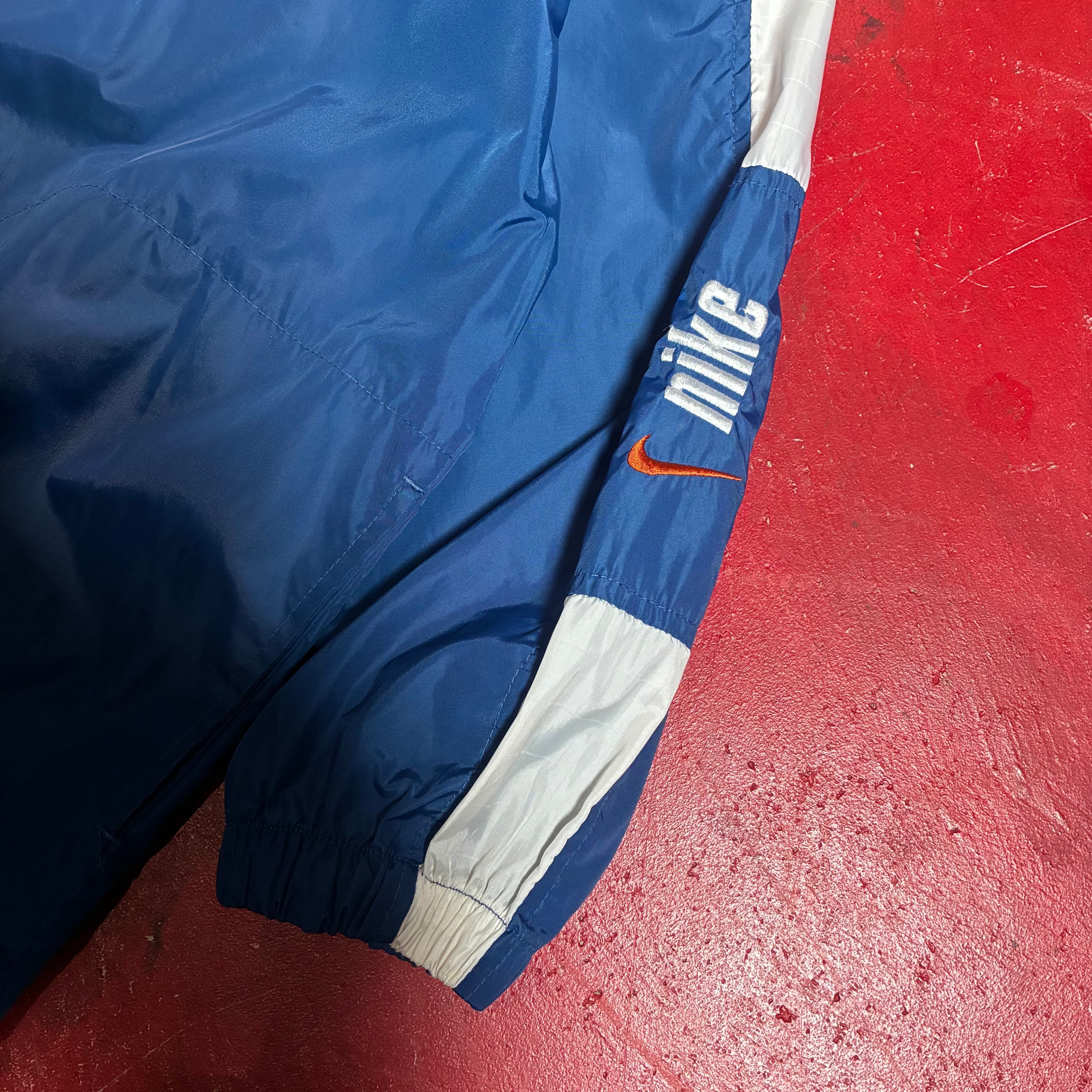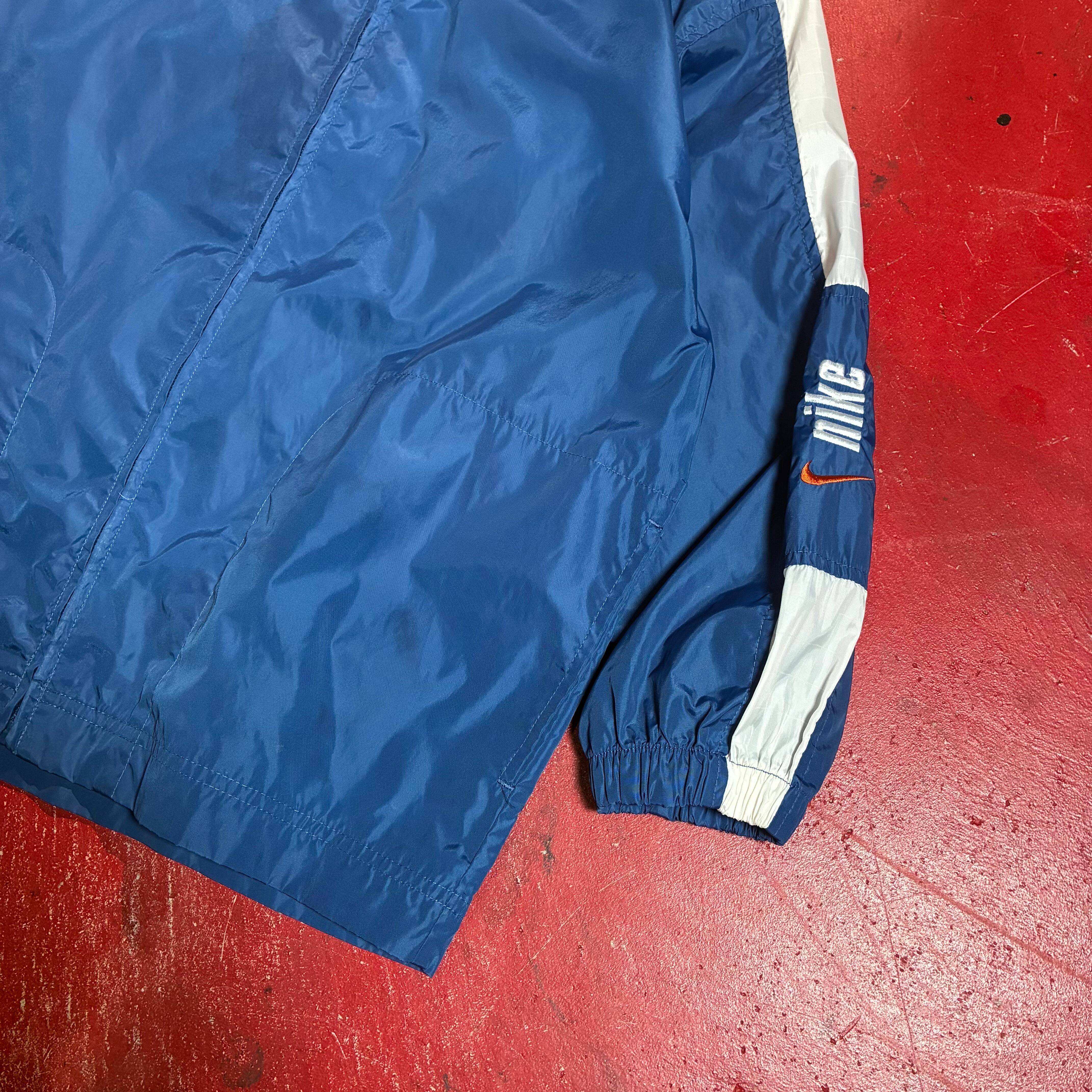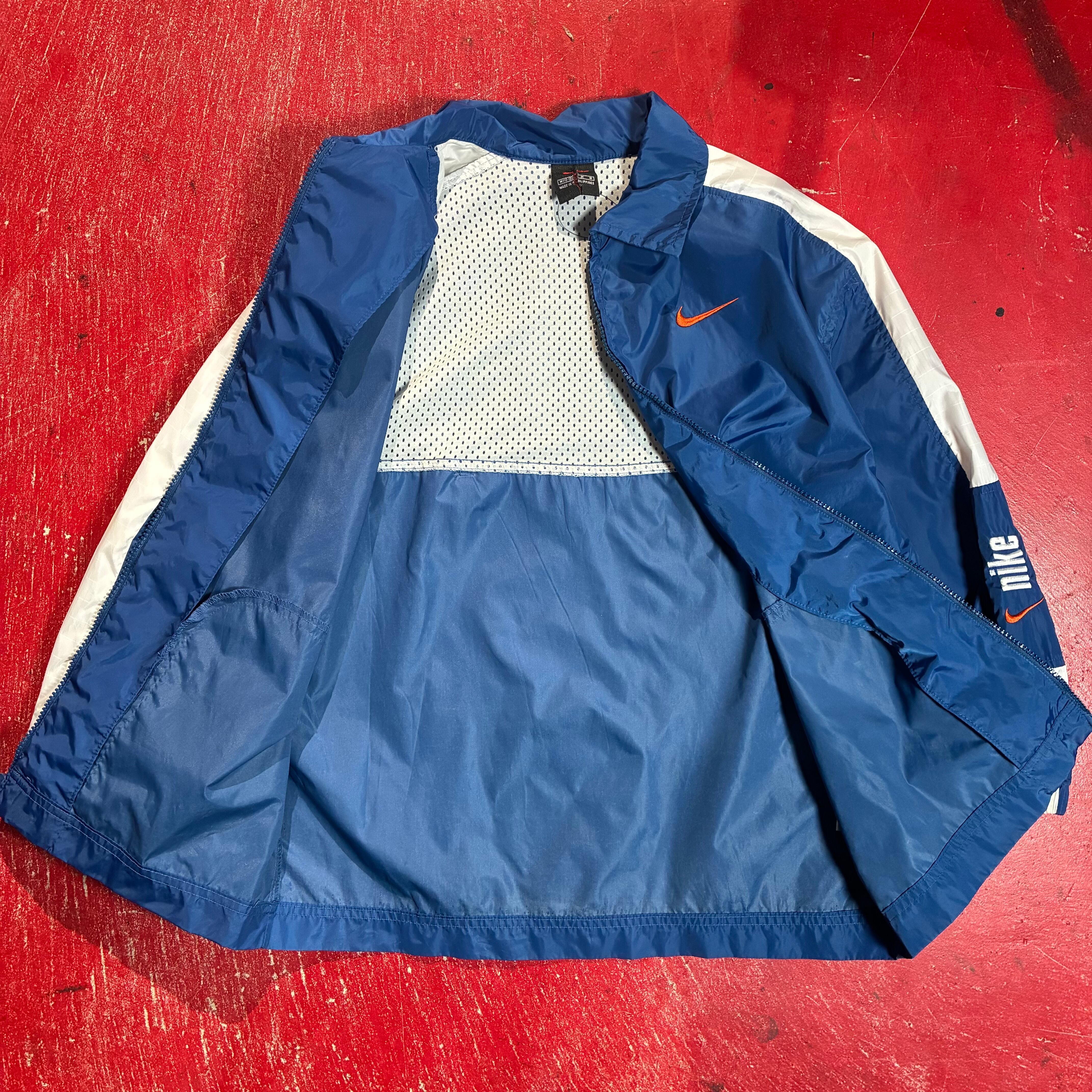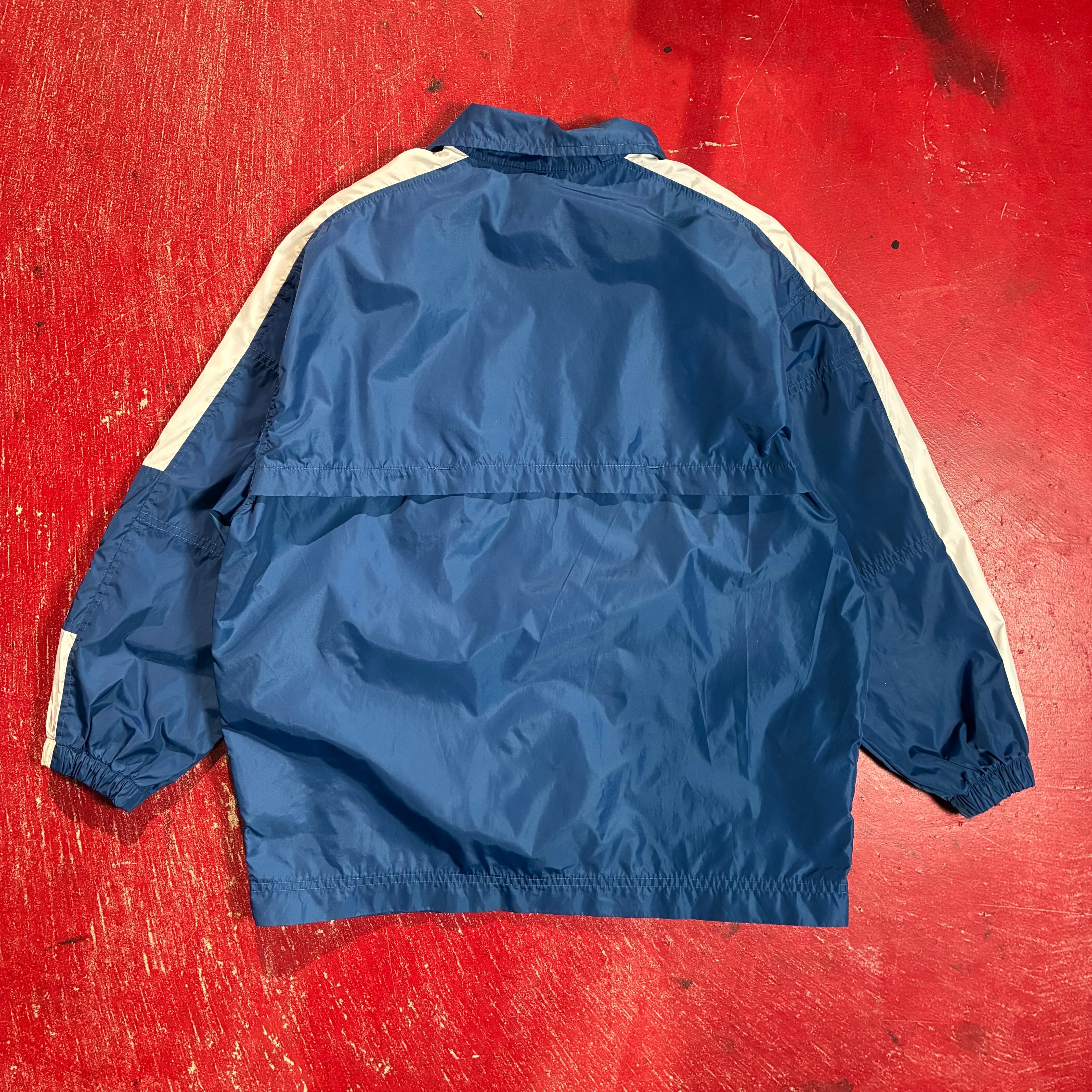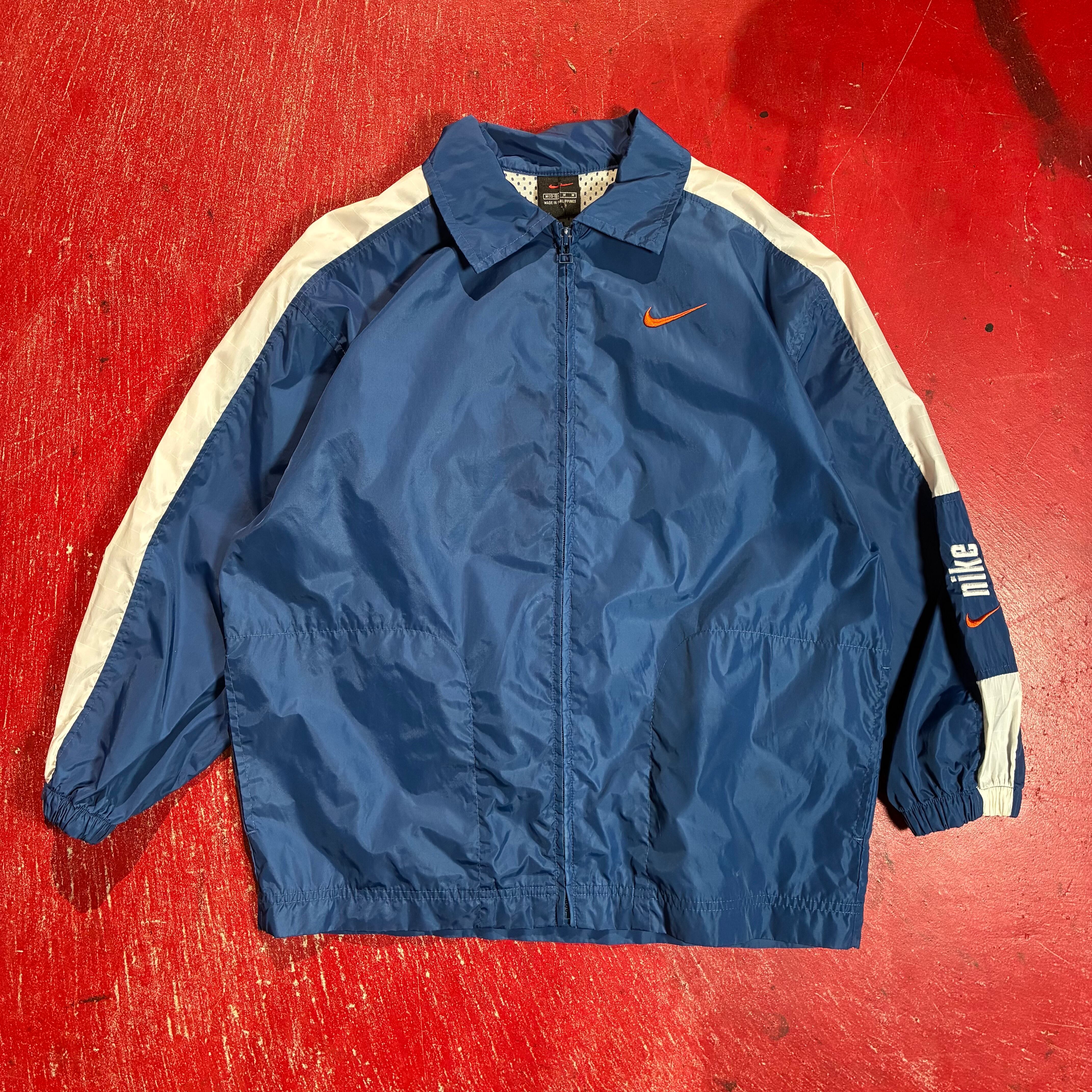 00s NIKE ナイロンジャケット 青×白 袖ロゴ刺繍 ナイキ