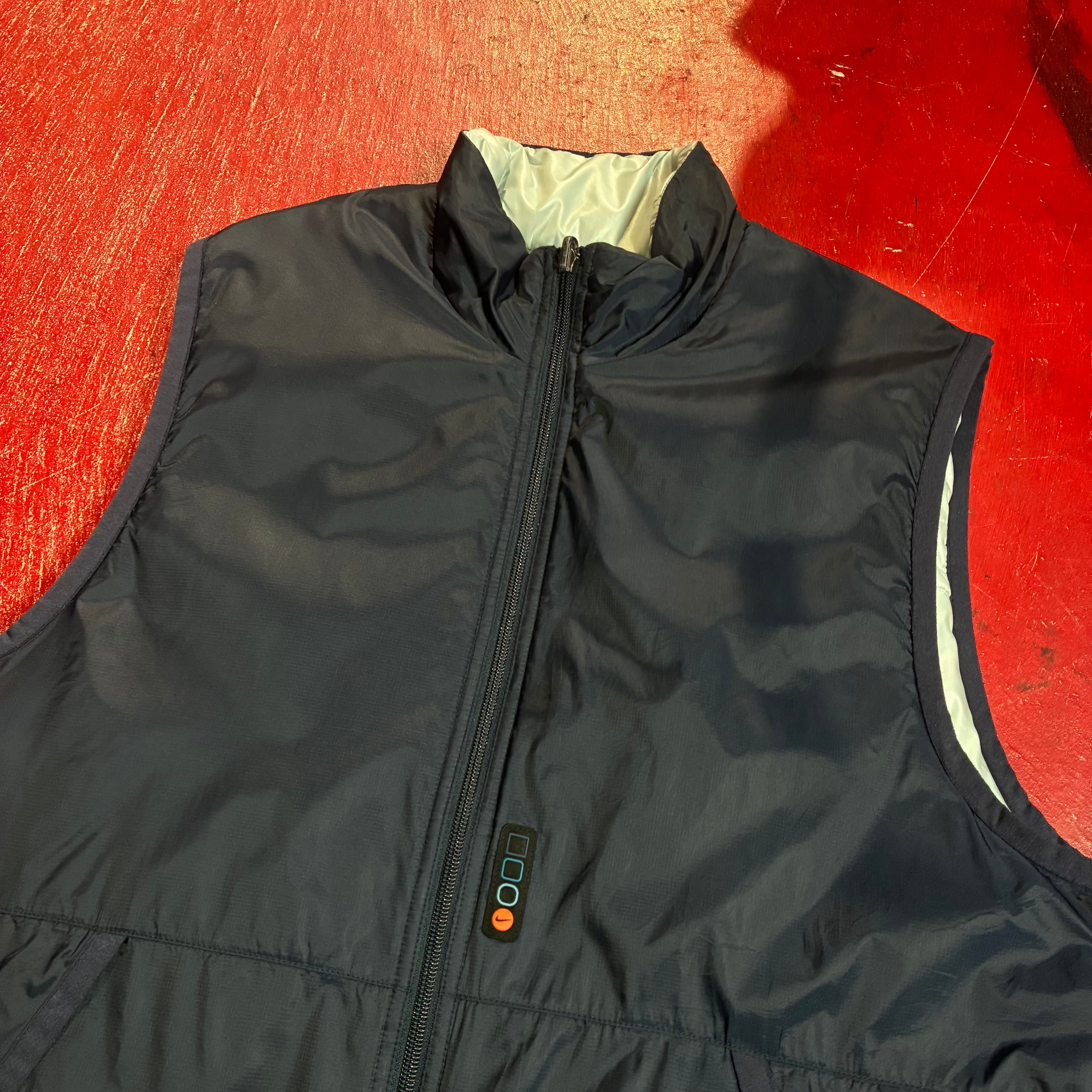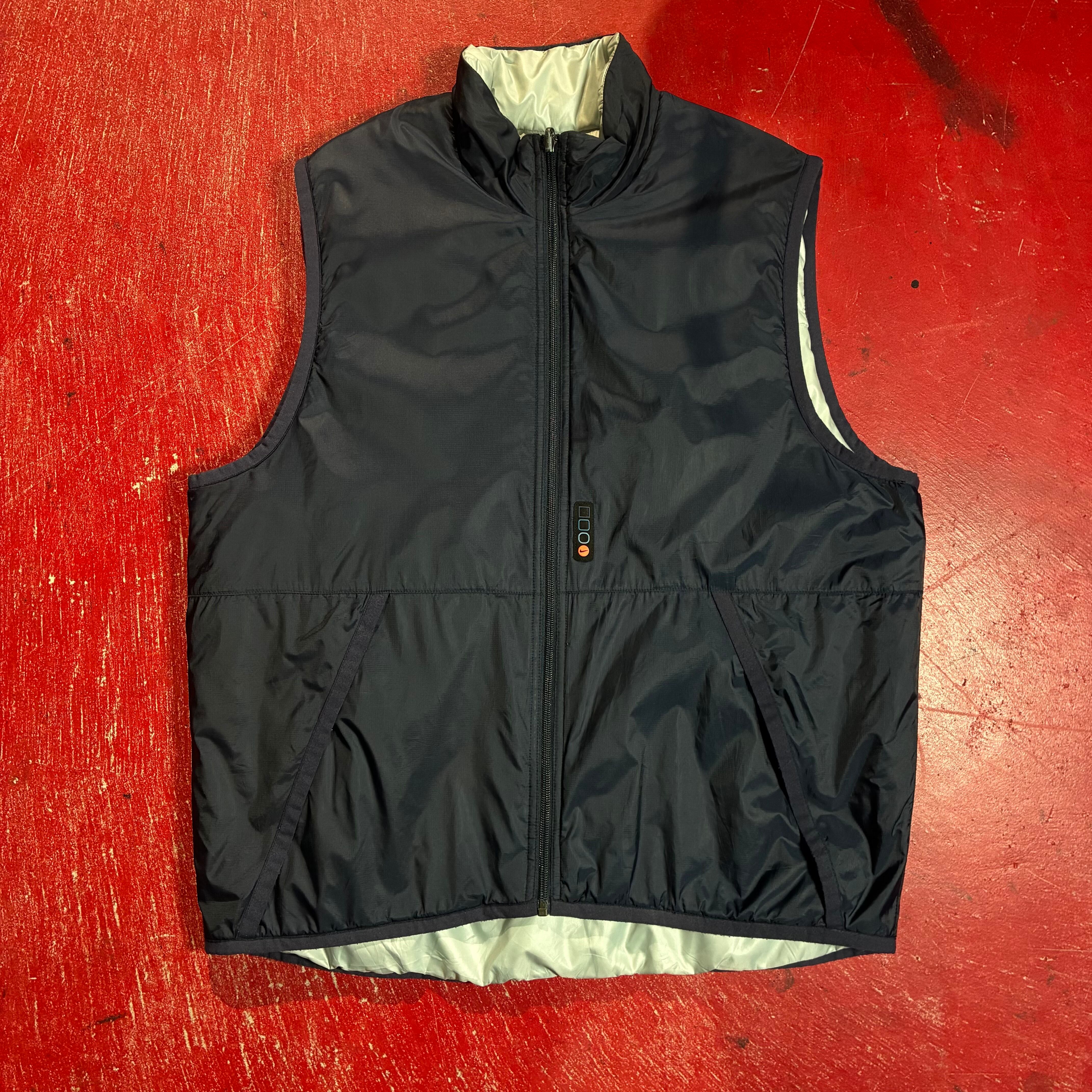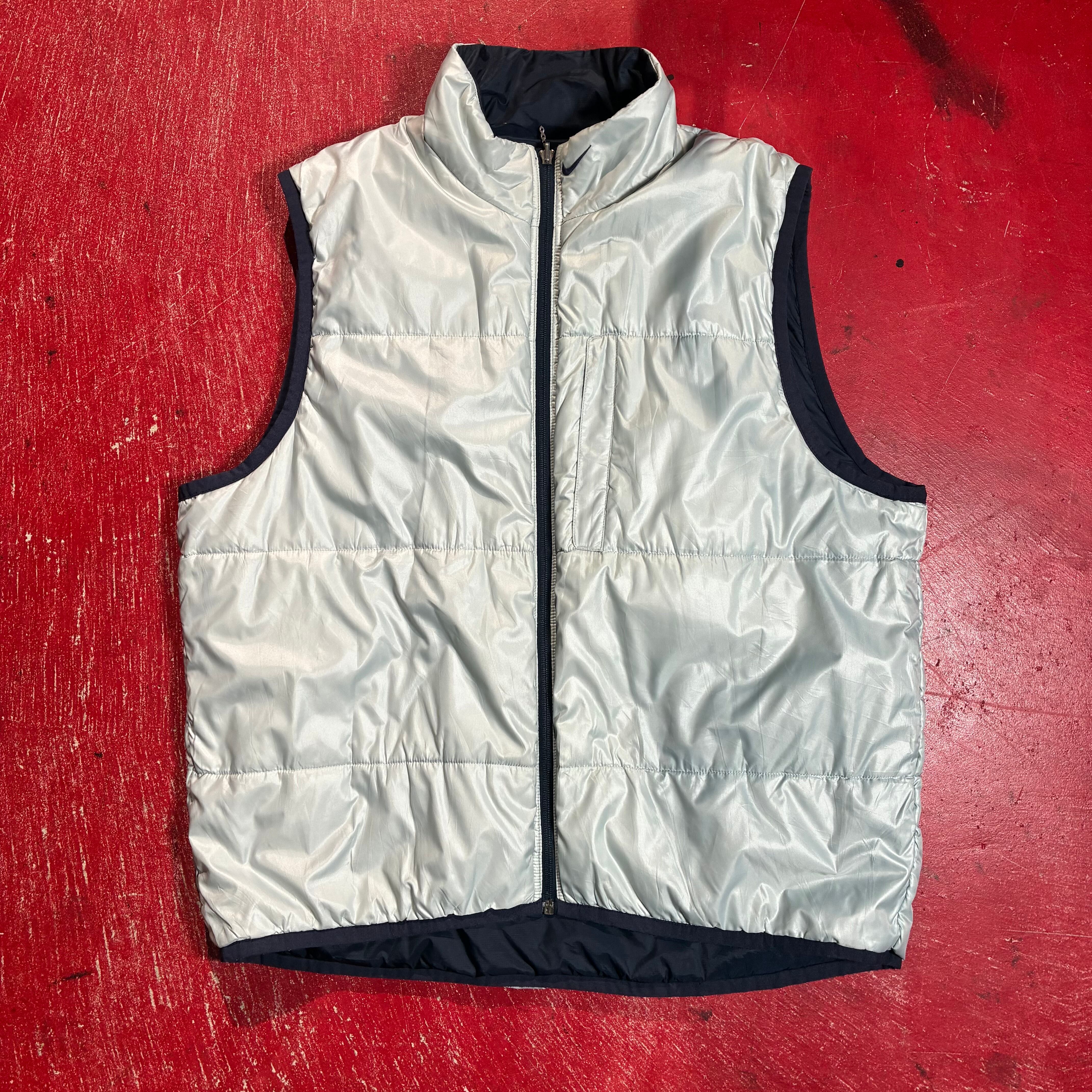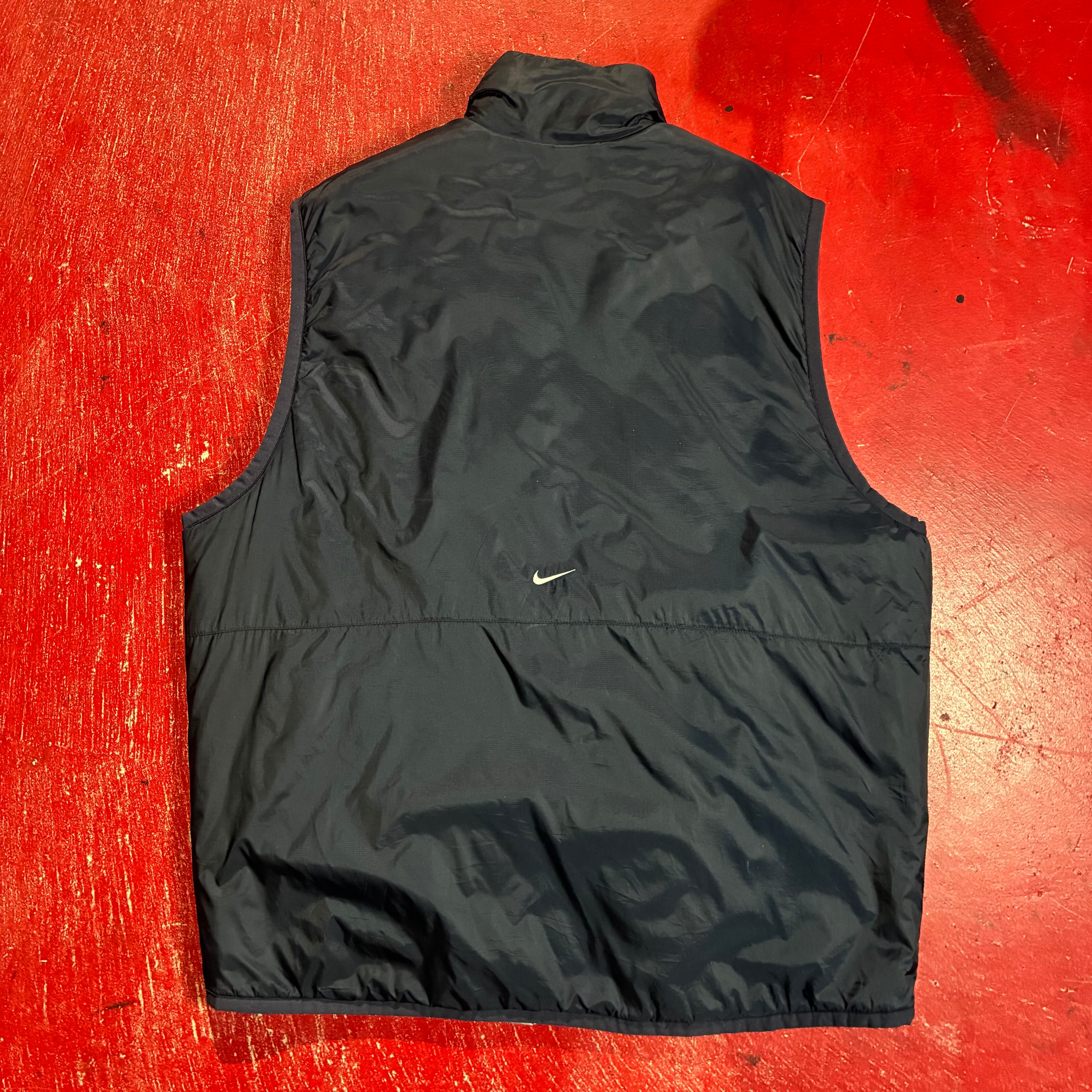 NIKE ナイキ 00s ナイロンベスト リバーシブルベスト テック系 Y2K スウォッシュ 刺繍ロゴ ストリート 古着 メンズベスト