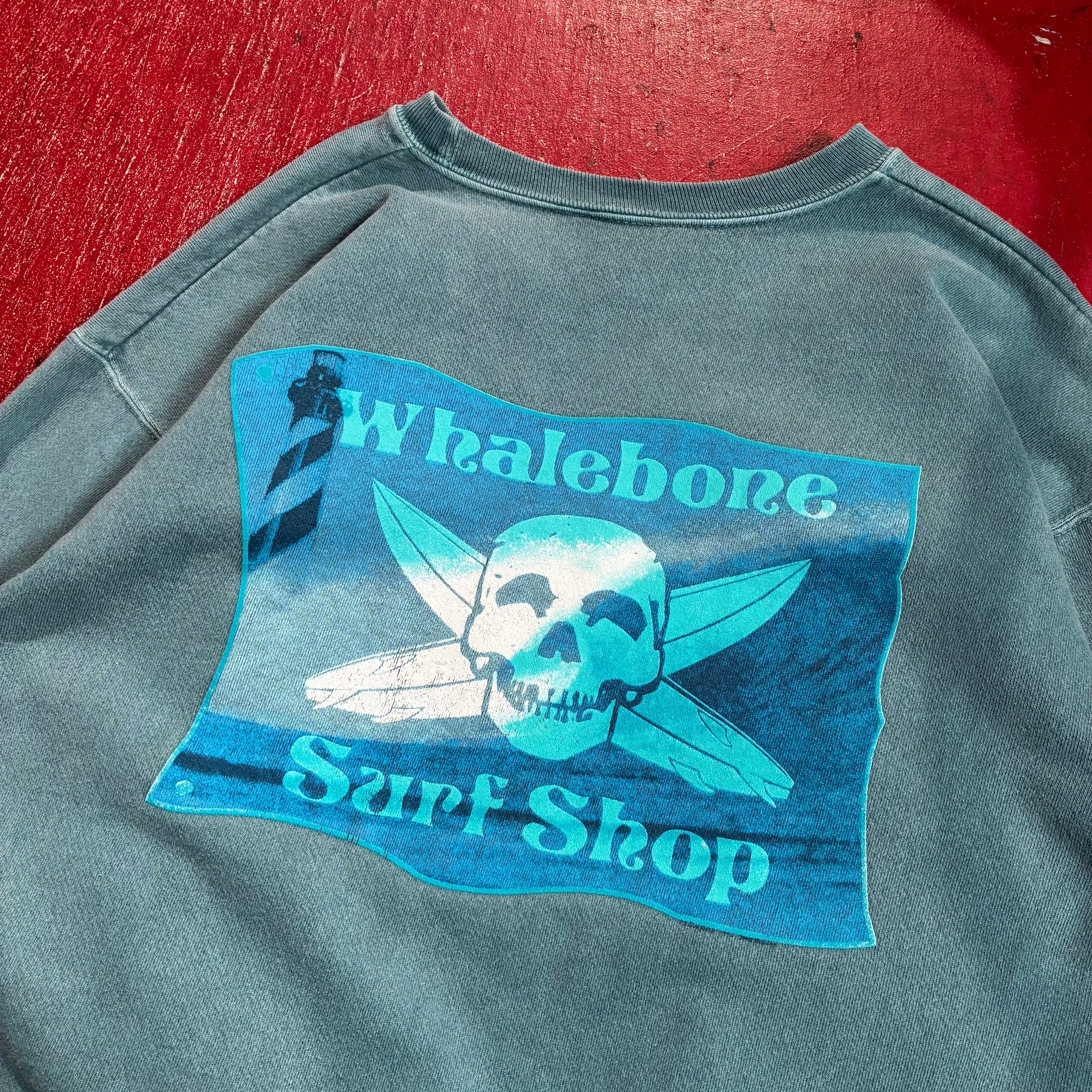 90s Whalebone Surf Shop スウェット 両面プリント サーフブランド ニューヨークサーフ フェードスウェット ビンテージスウェット サーフストリート スカルプリント オールドサーフ USA古着 メンズ古着 トレーナー