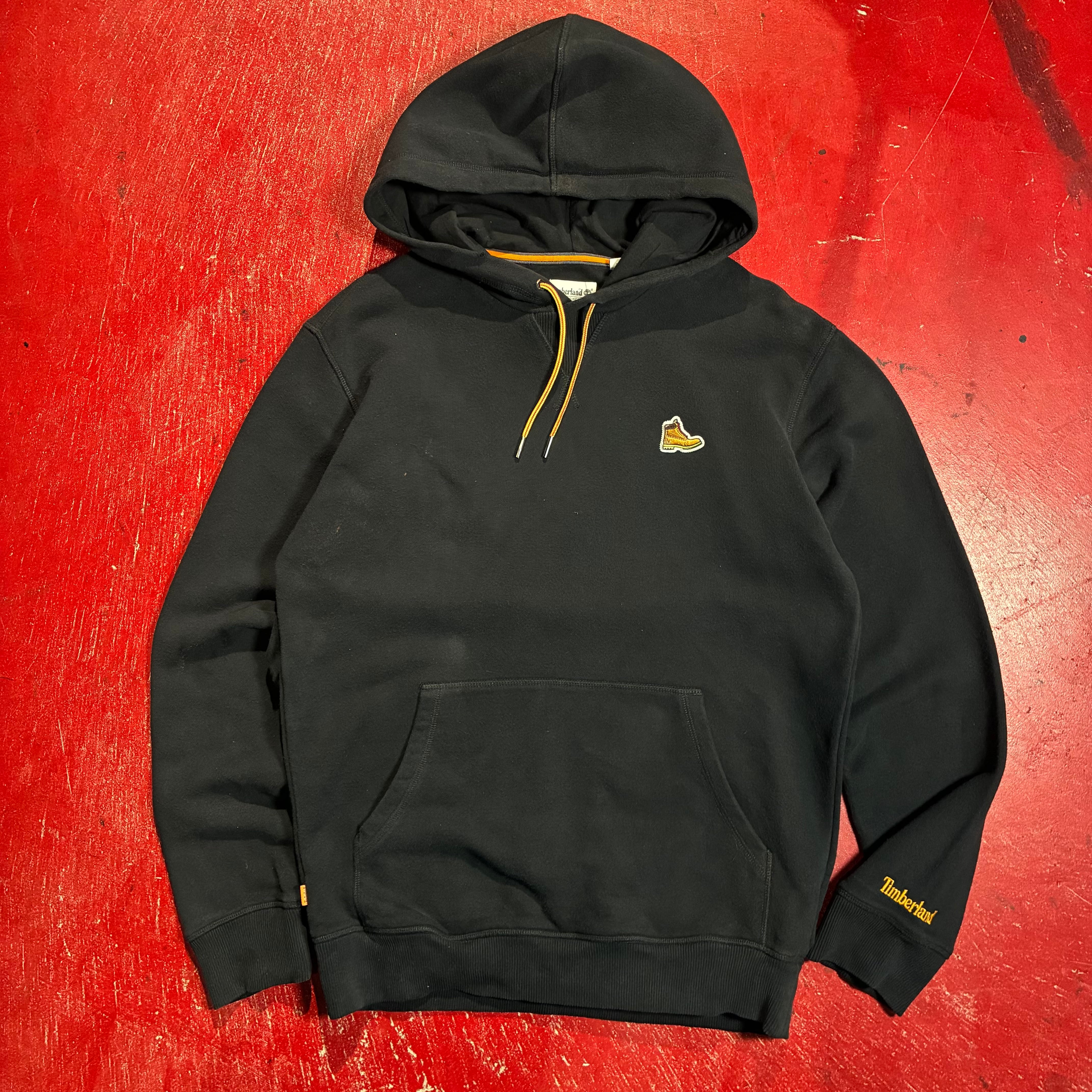 Timberland プルオーバーフーディー ブラック ワンポイント イエローブーツ刺繍