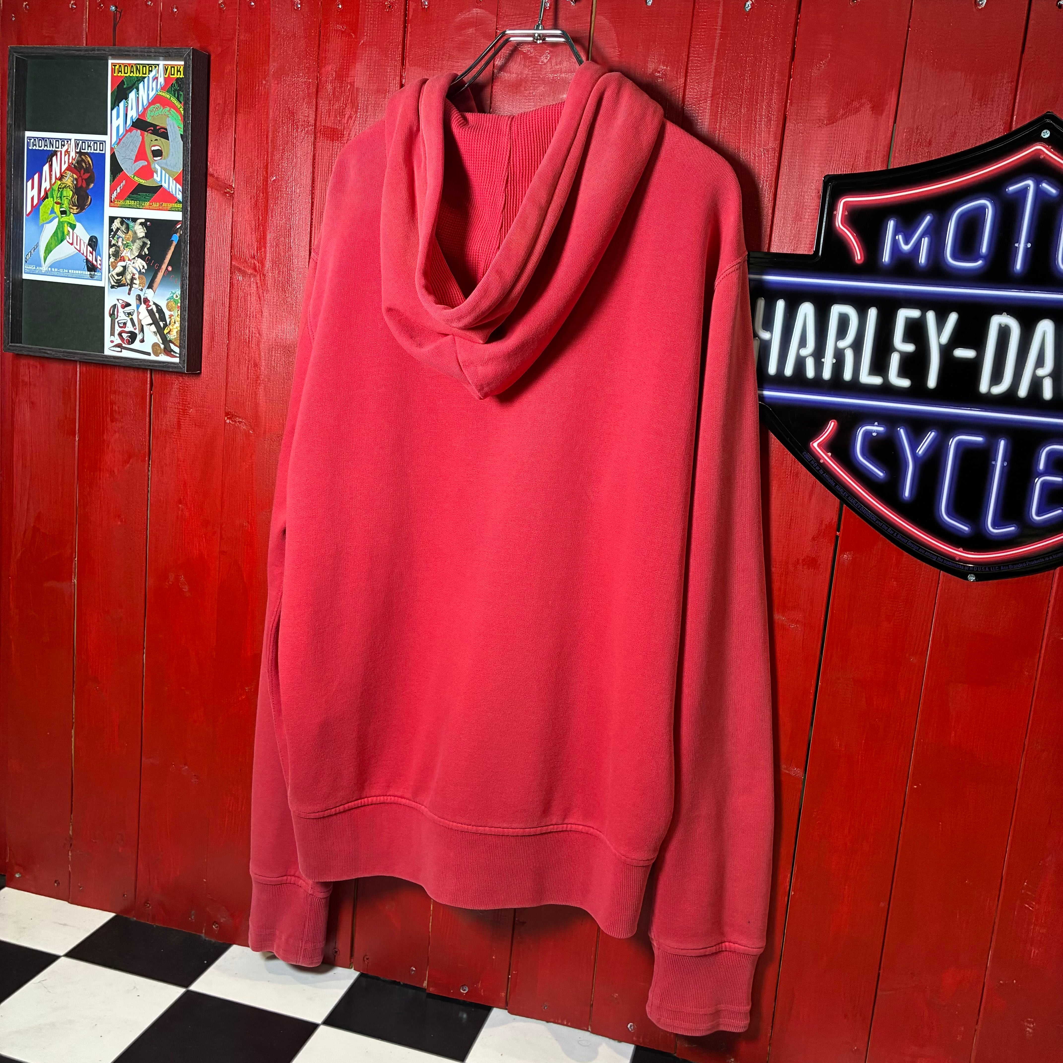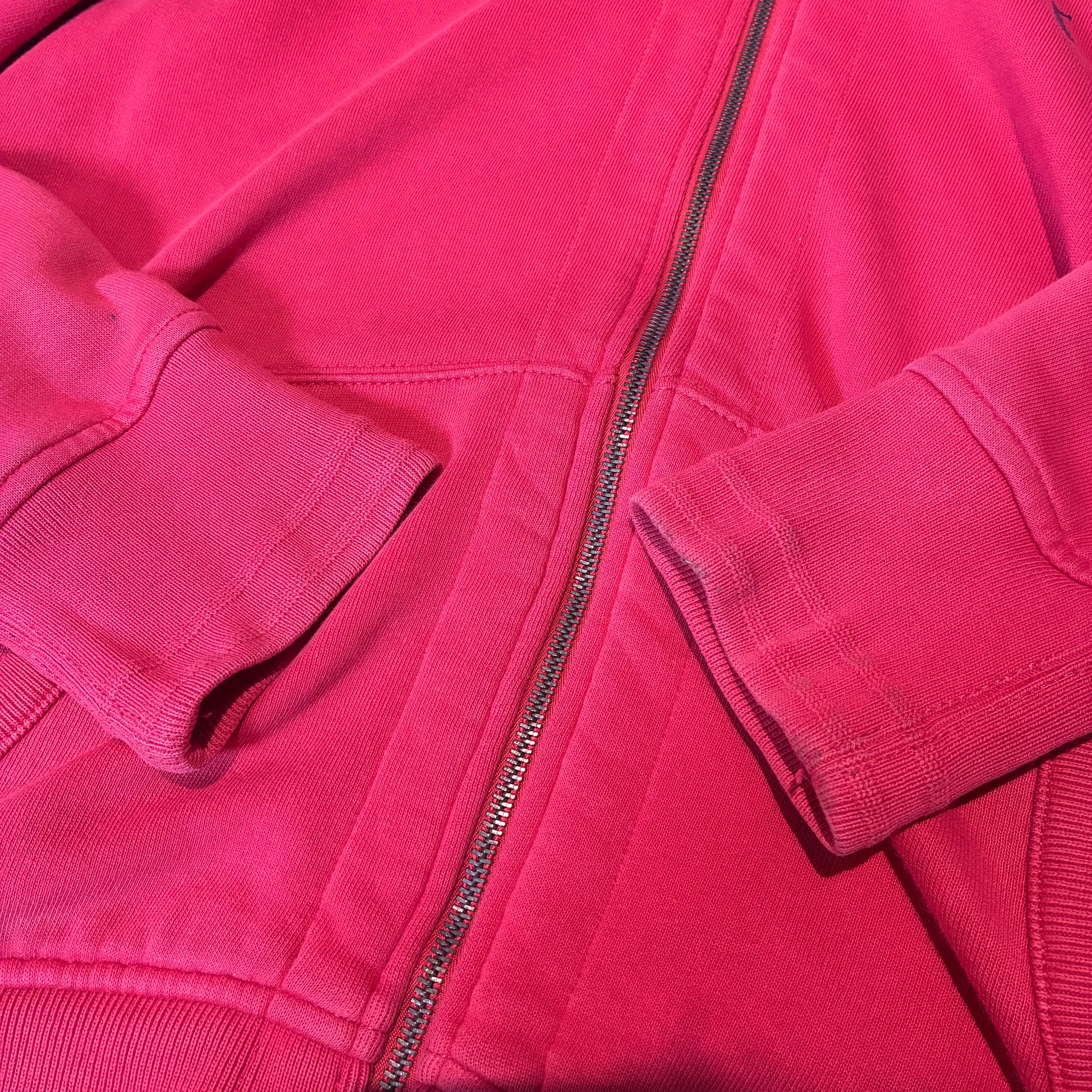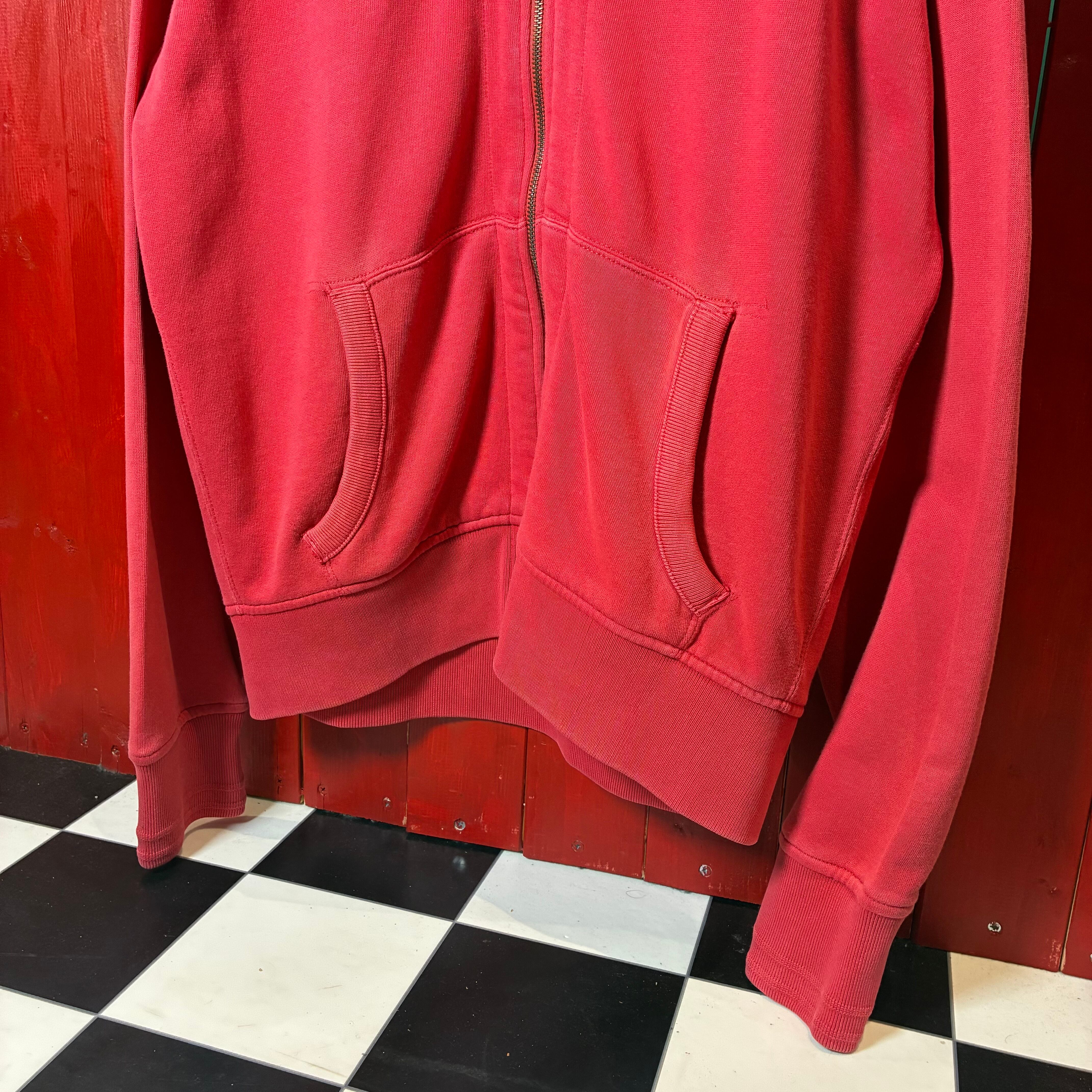 90s POLO RALPH LAUREN ジップパーカー フェードレッド 紺ポニー フード裏サーマル