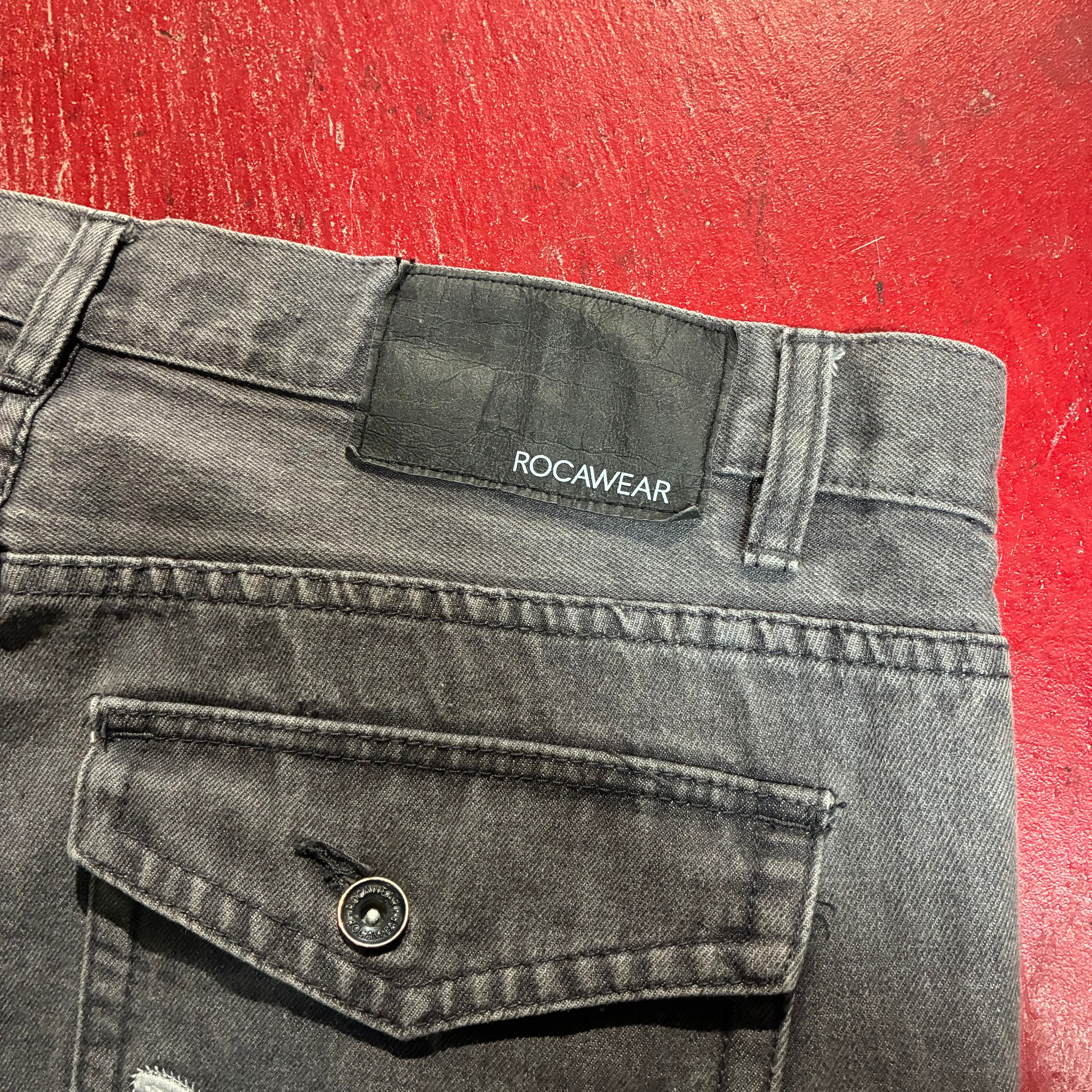 ROCA WEAR Hip Hop ブラックデニムパンツ フェードブラック W38