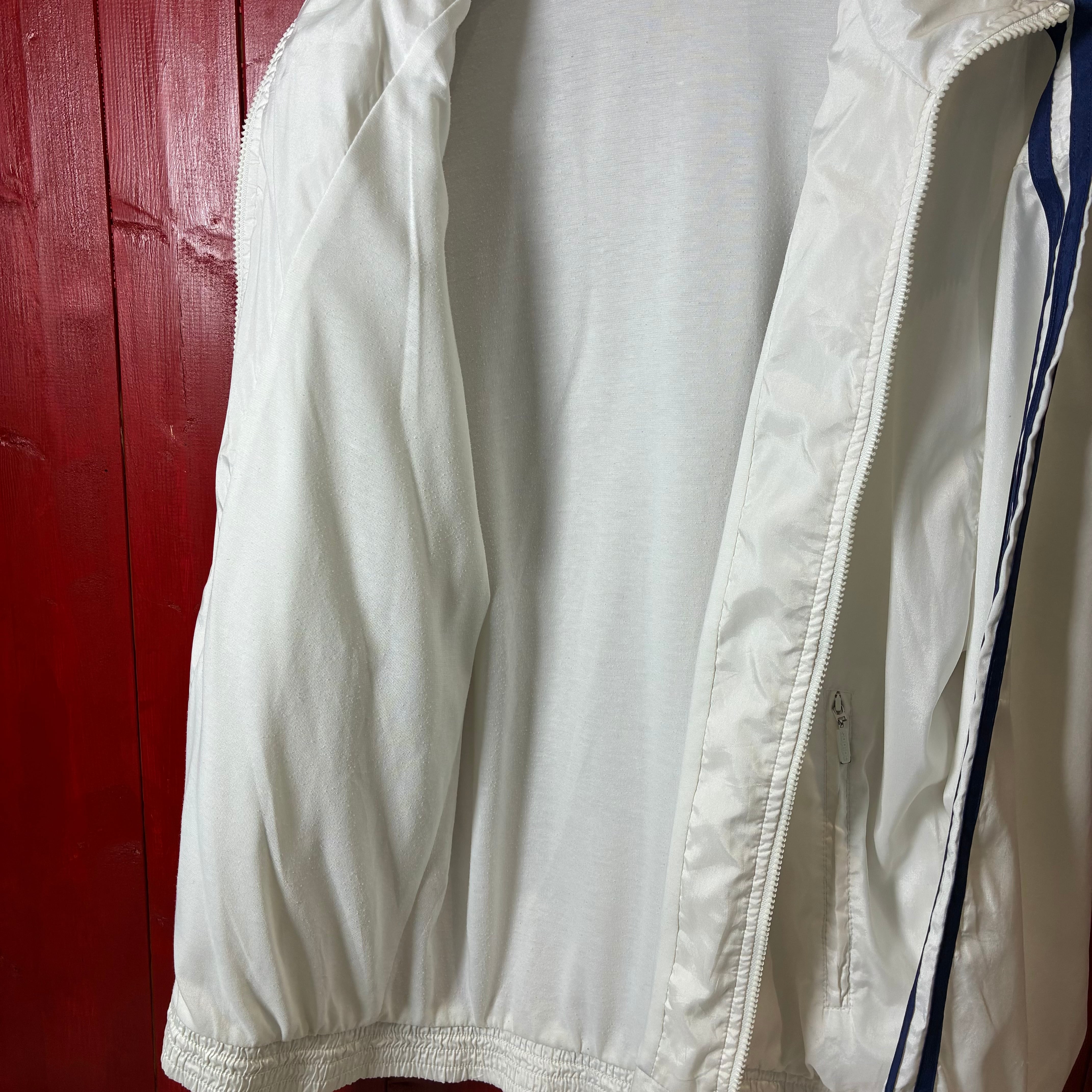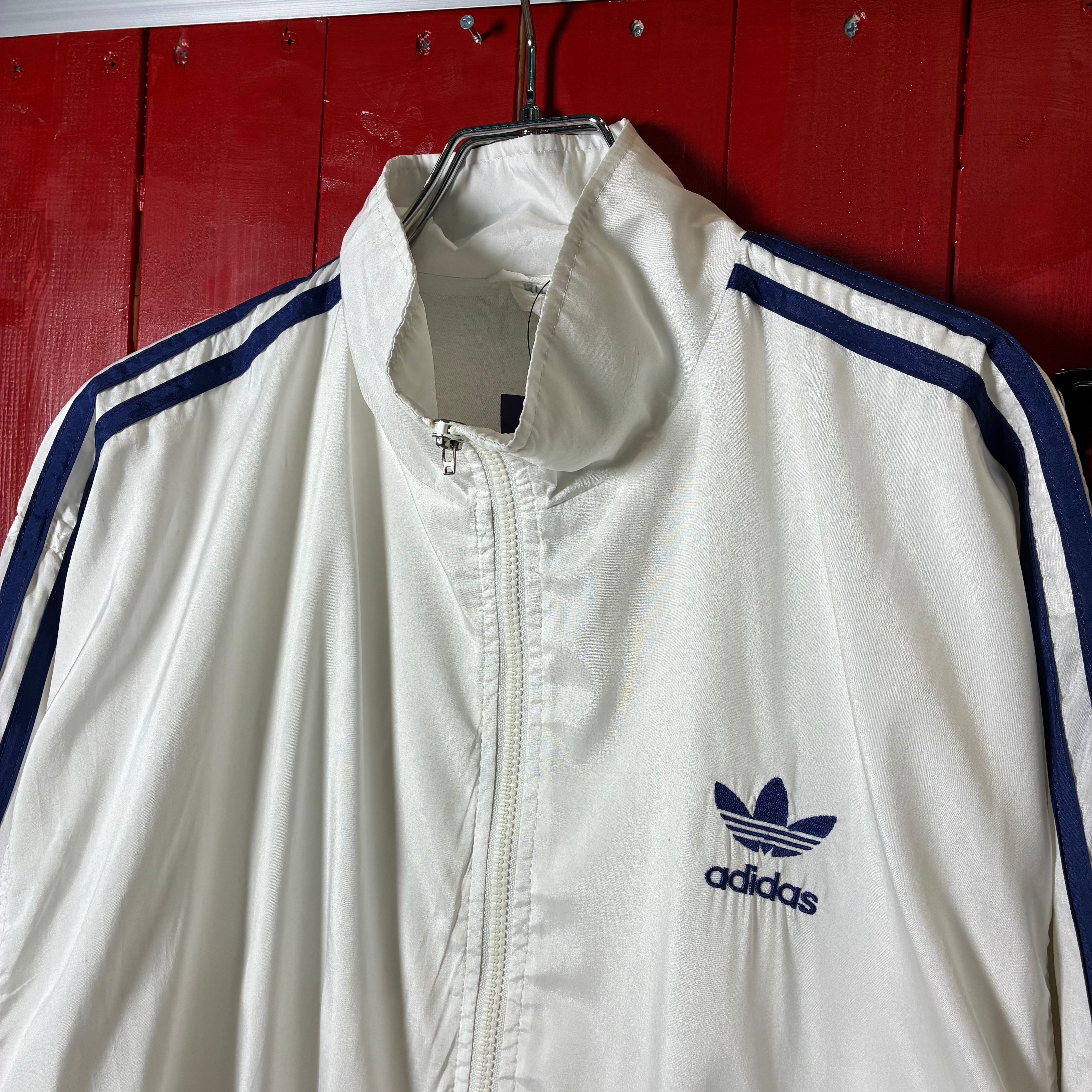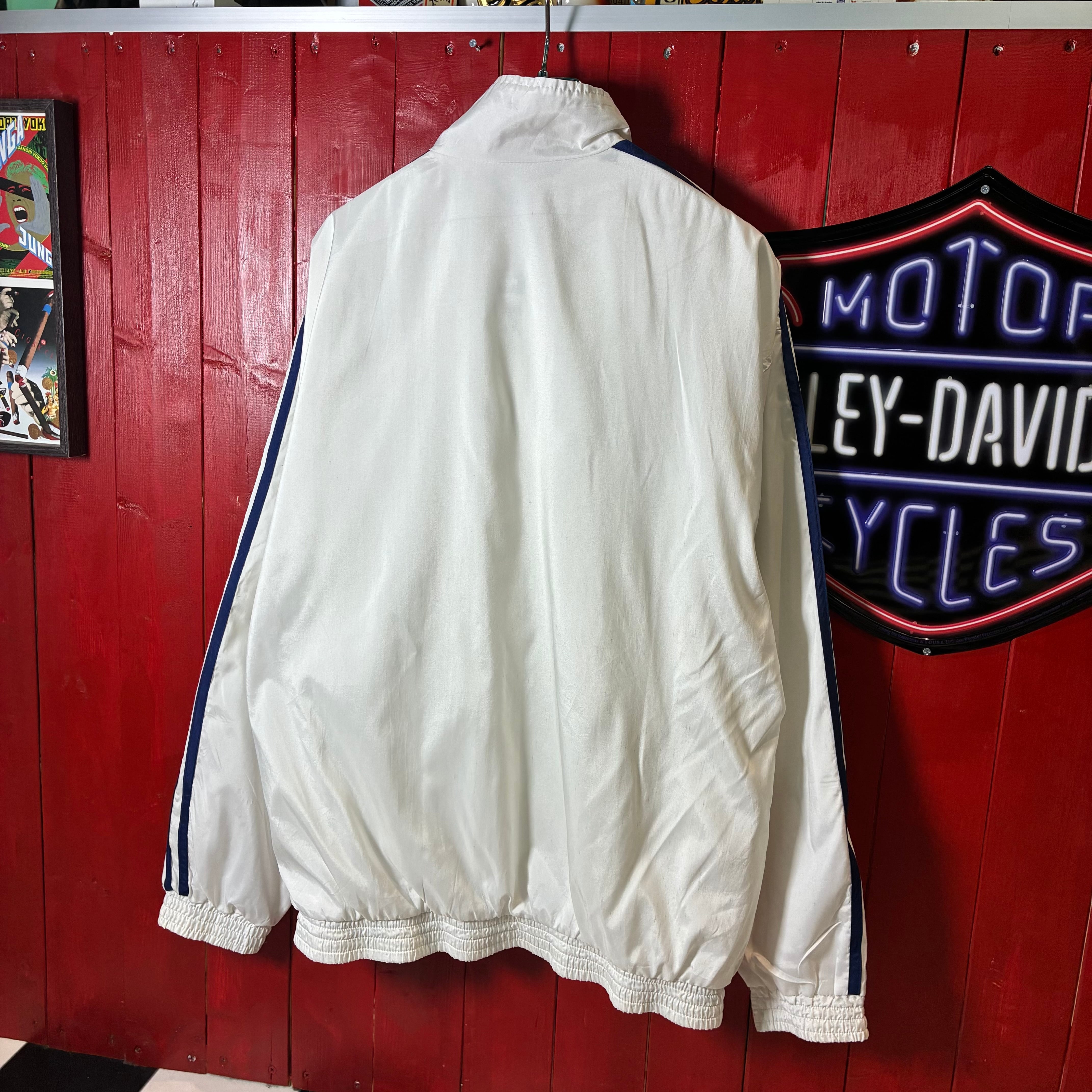 00s adidas ナイロンジャケット トレフォイル刺繍 袖ライン ホワイト