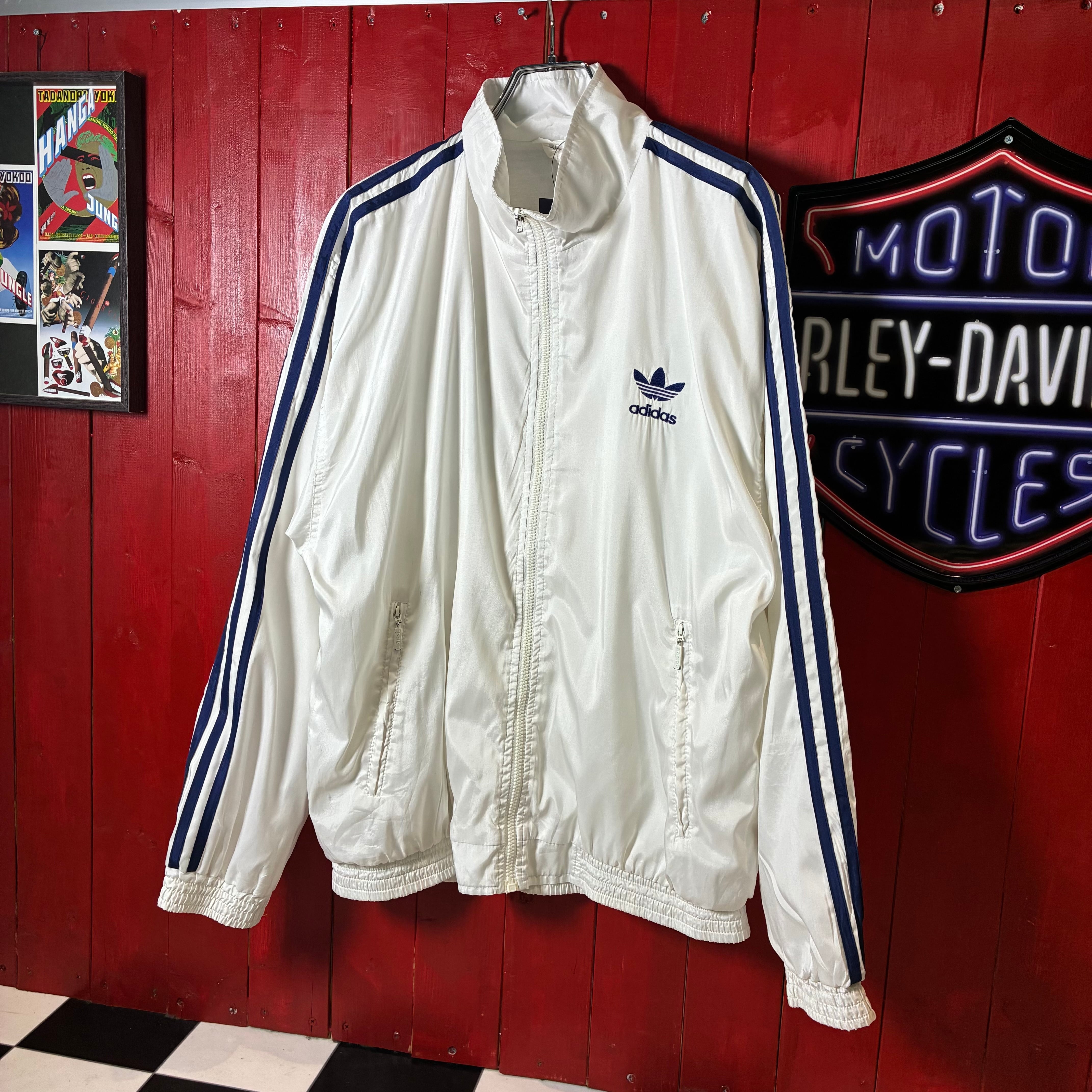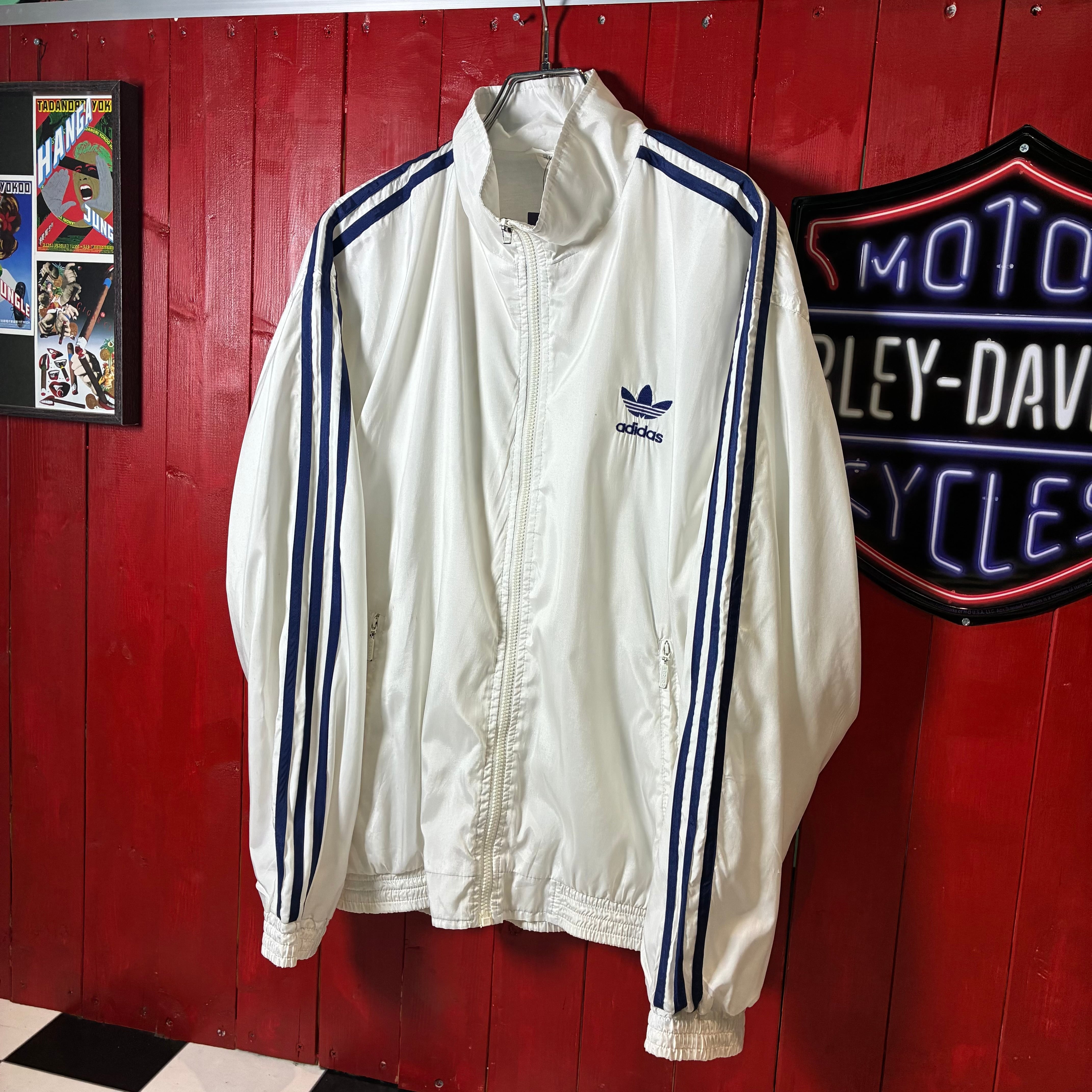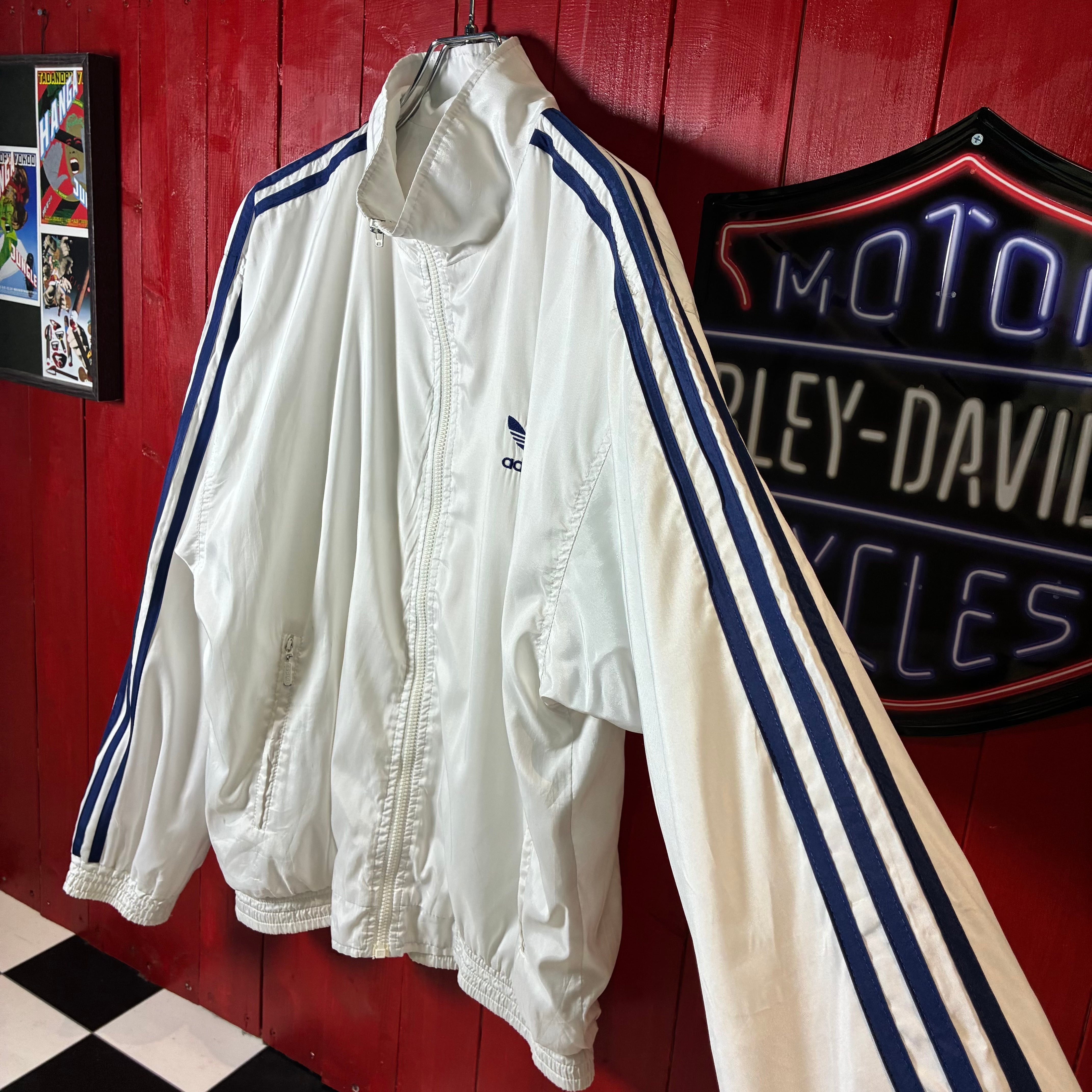 00s adidas ナイロンジャケット トレフォイル刺繍 袖ライン ホワイト