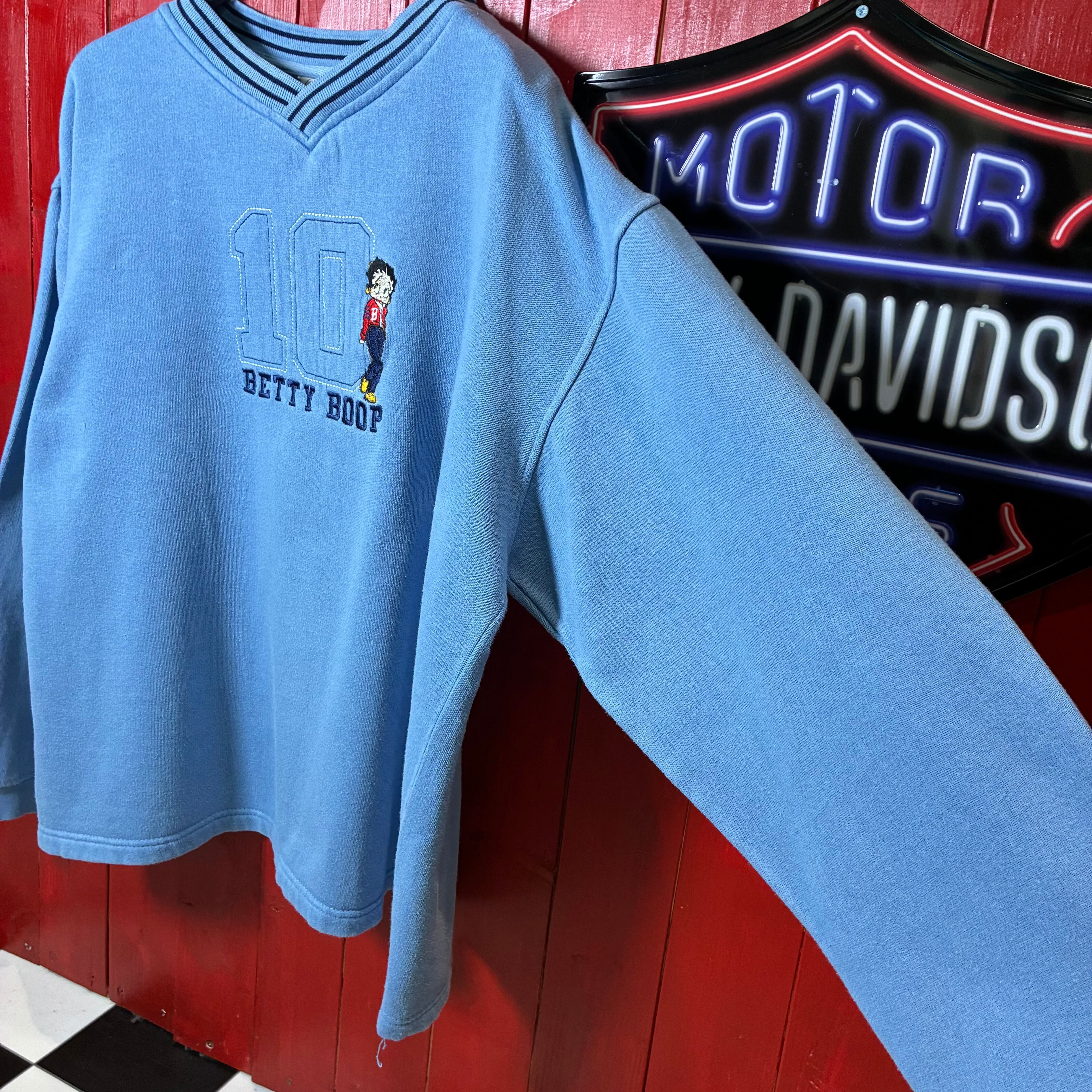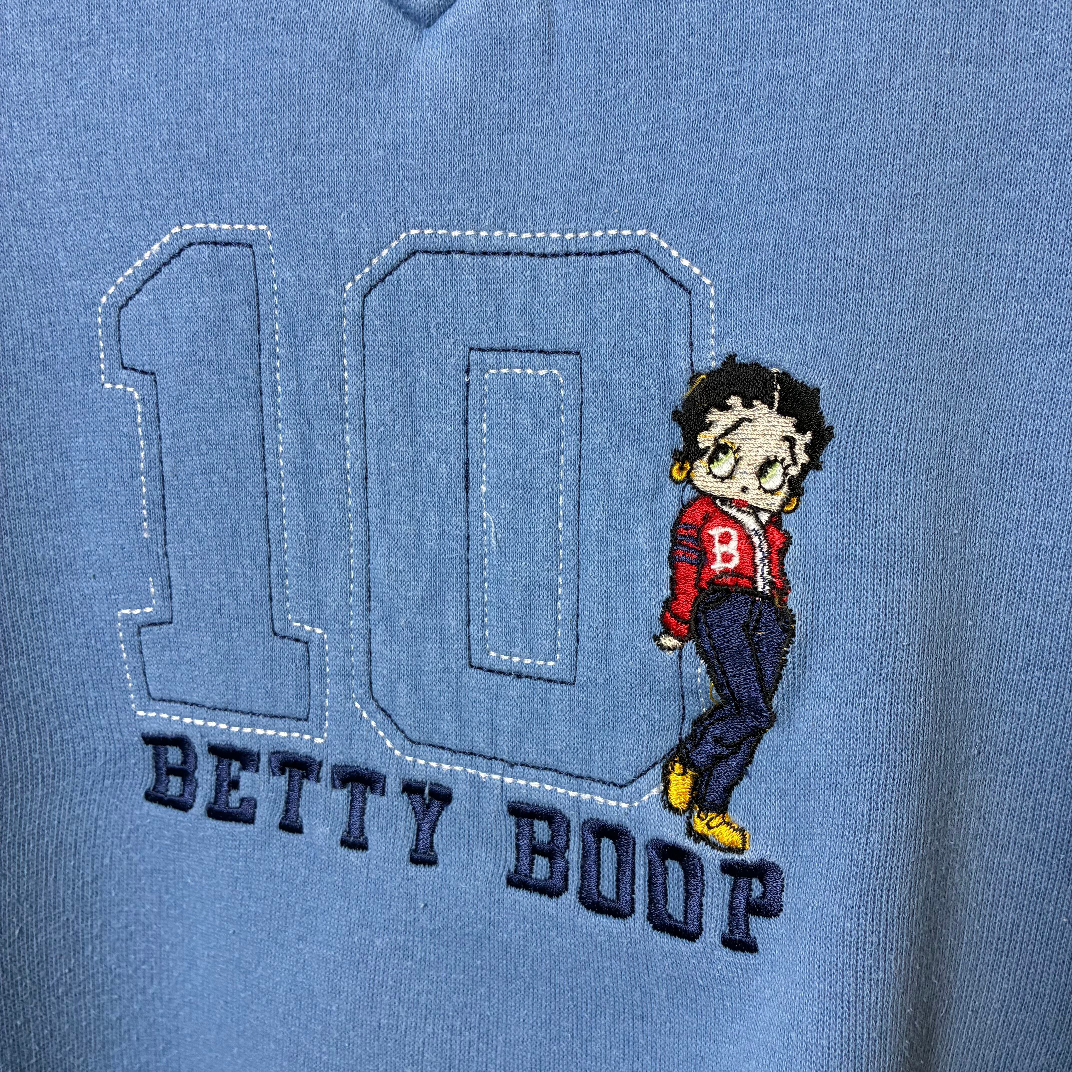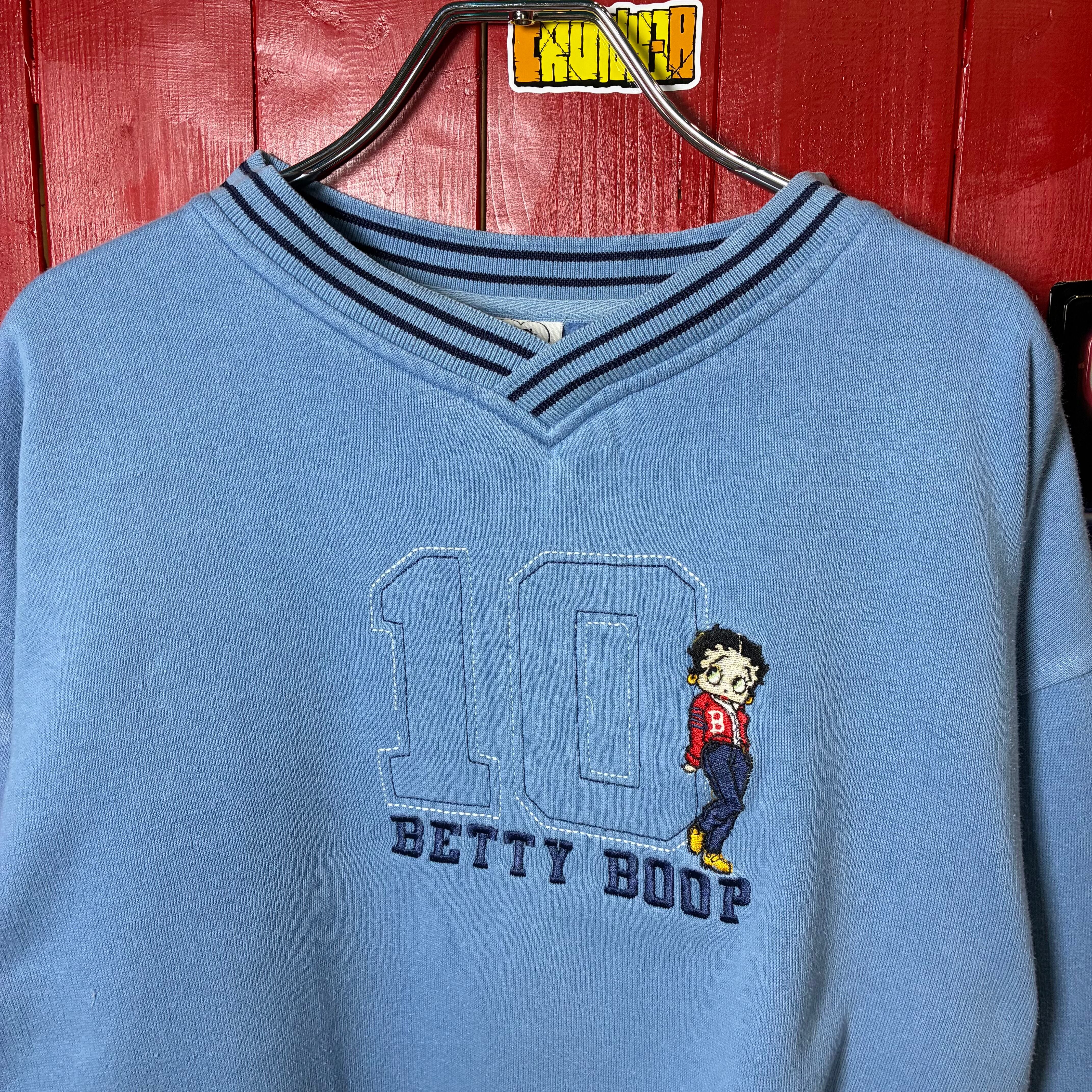 Betty Boop ベティちゃん 刺繍スウェット Vネックスウェット キャラクター 古着女子 古着男子 00s Y2K ストリート アメカジ ナンバリングスウェット