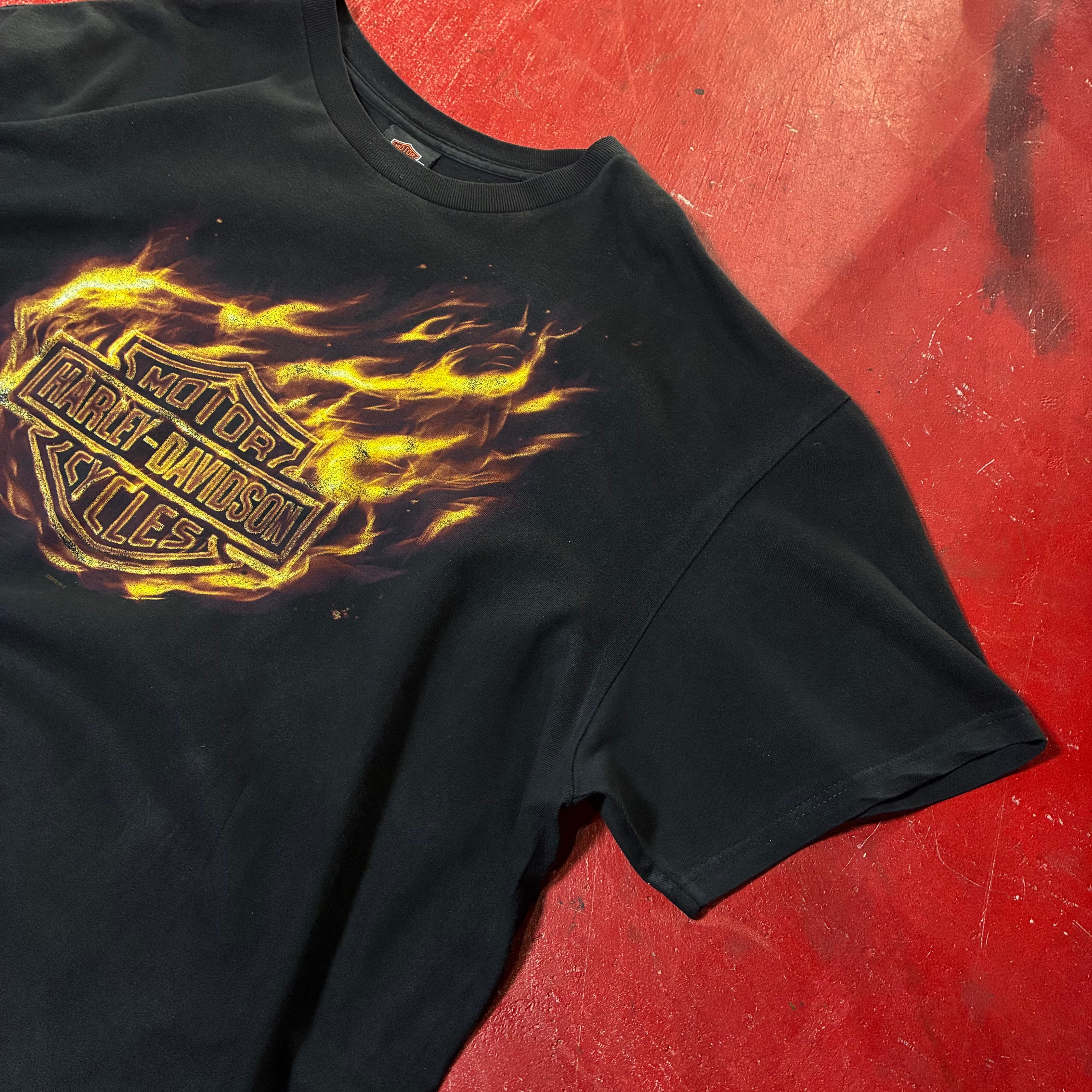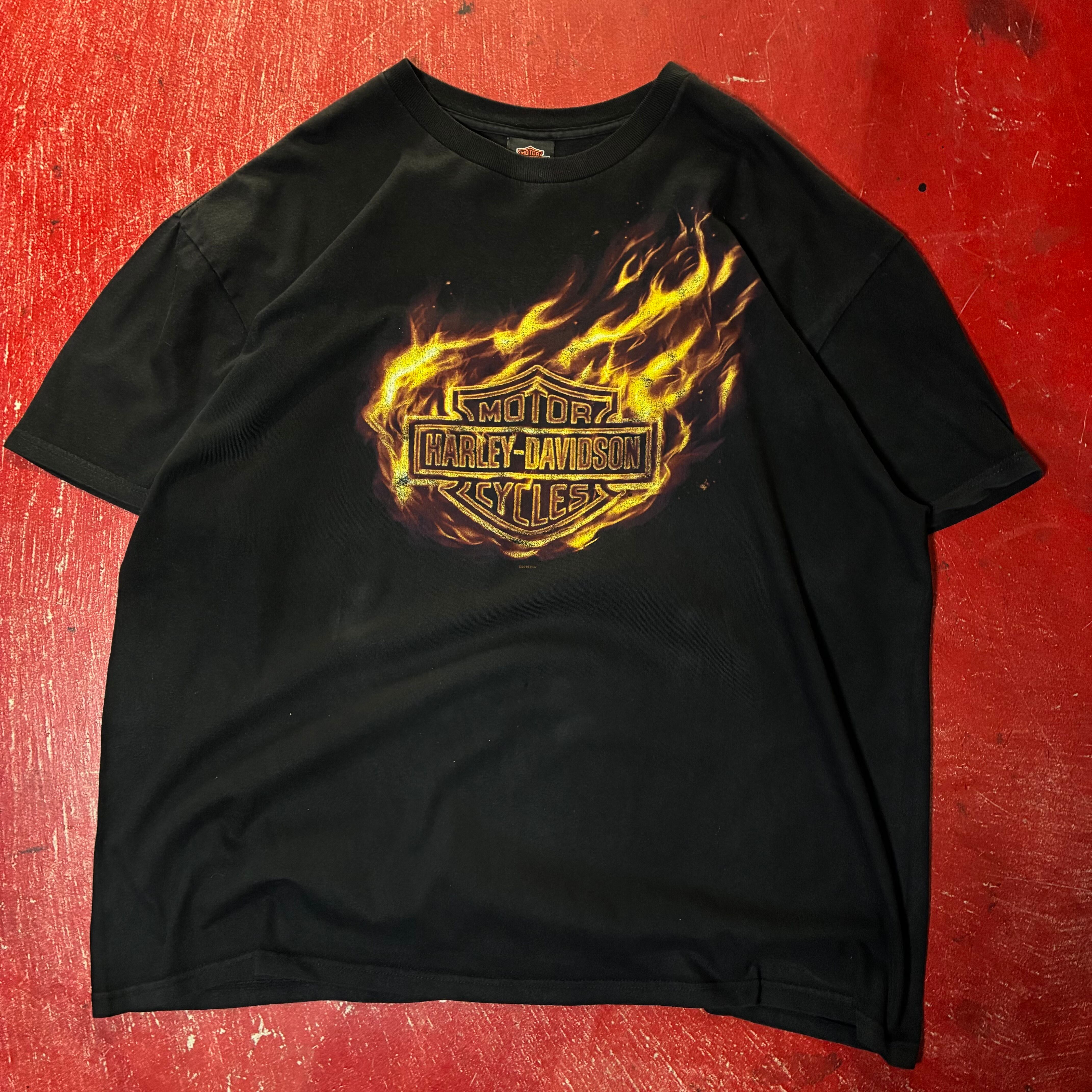 10s Harley-Davidson フレイムTシャツ 黒 ハーレー