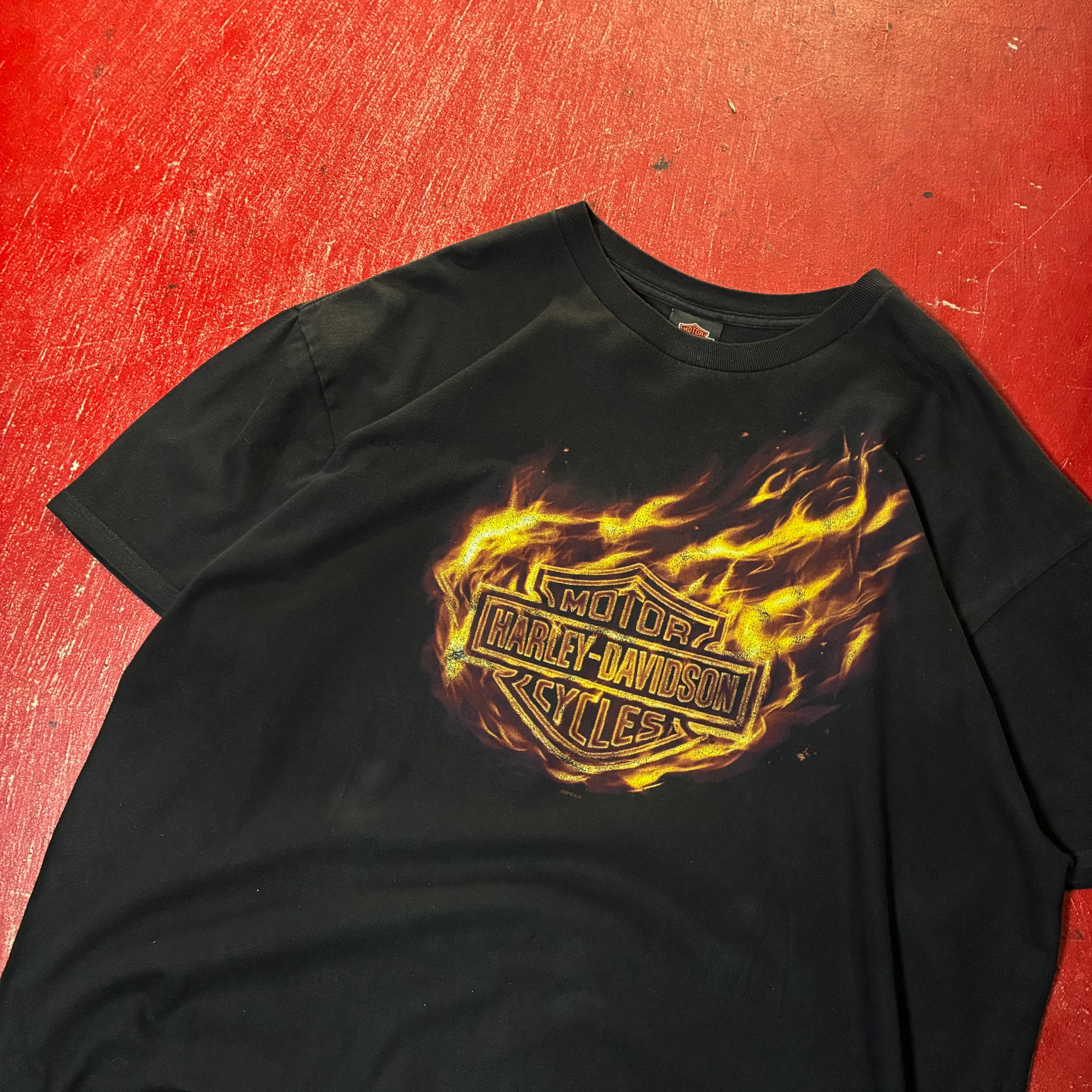 HarleyDavidson ハーレーダビッドソン Tシャツ フレイムロゴ バックプリント ディーラーT バイカー アメカジ ストリート