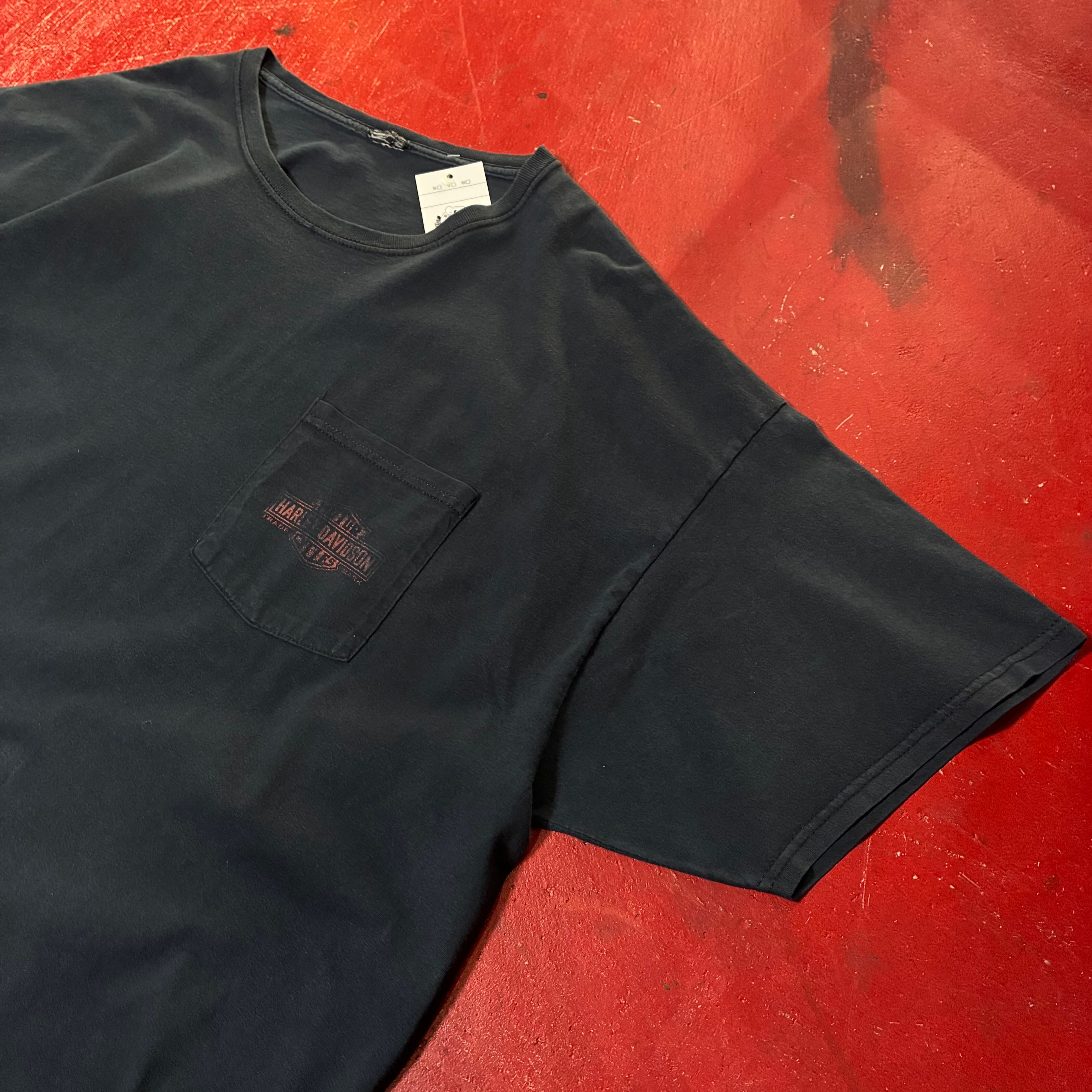 HarleyDavidson ハーレーダビッドソン ポケットT ディーラーT CHEROKEE ノースカロライナ バックプリント フェード ブラックT バイカー アメカジ