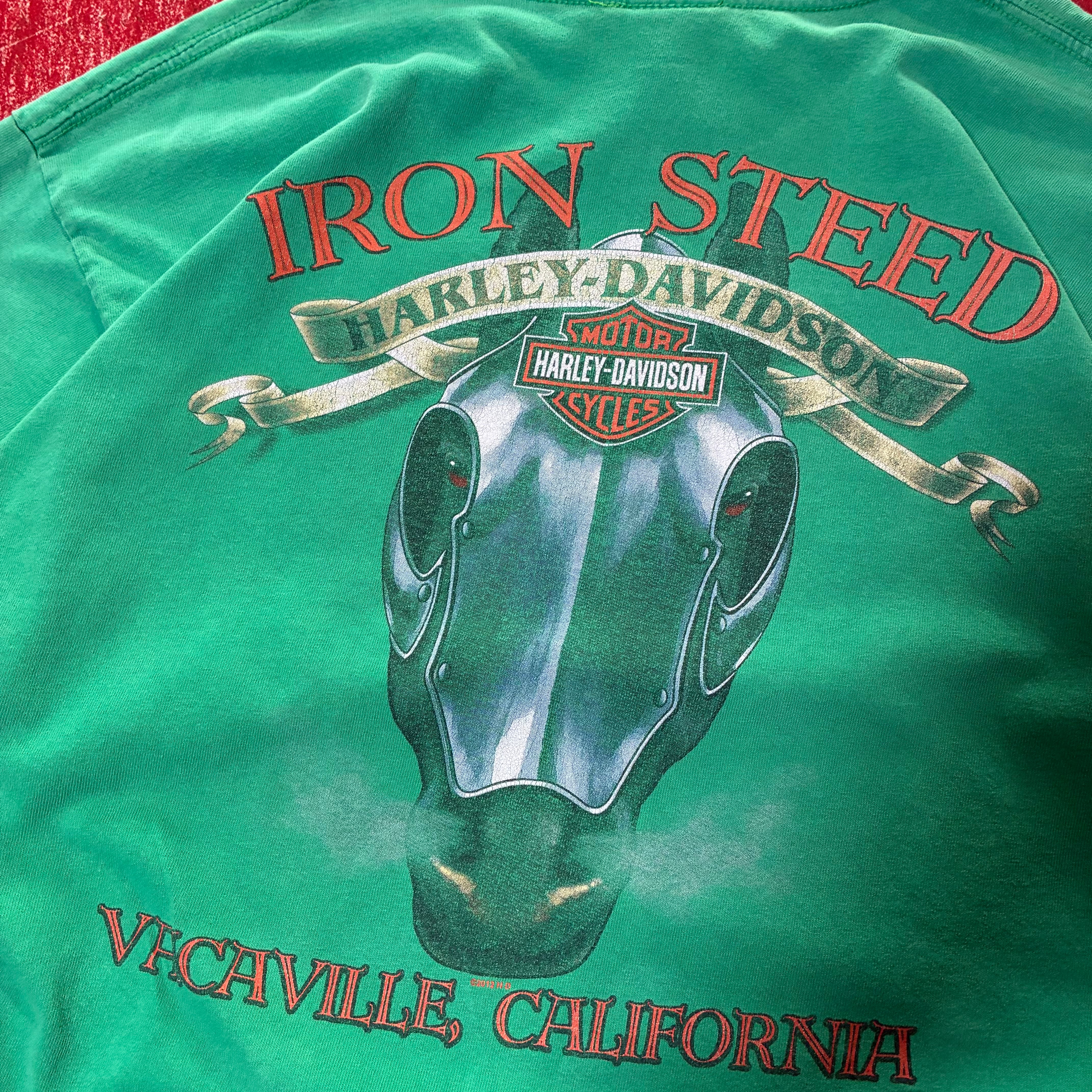 HarleyDavidson ハーレーダビッドソン Tシャツ IRONSTEED 馬モチーフ ディーラーT バックプリント グリーンT カラーT バイカー アメカジ