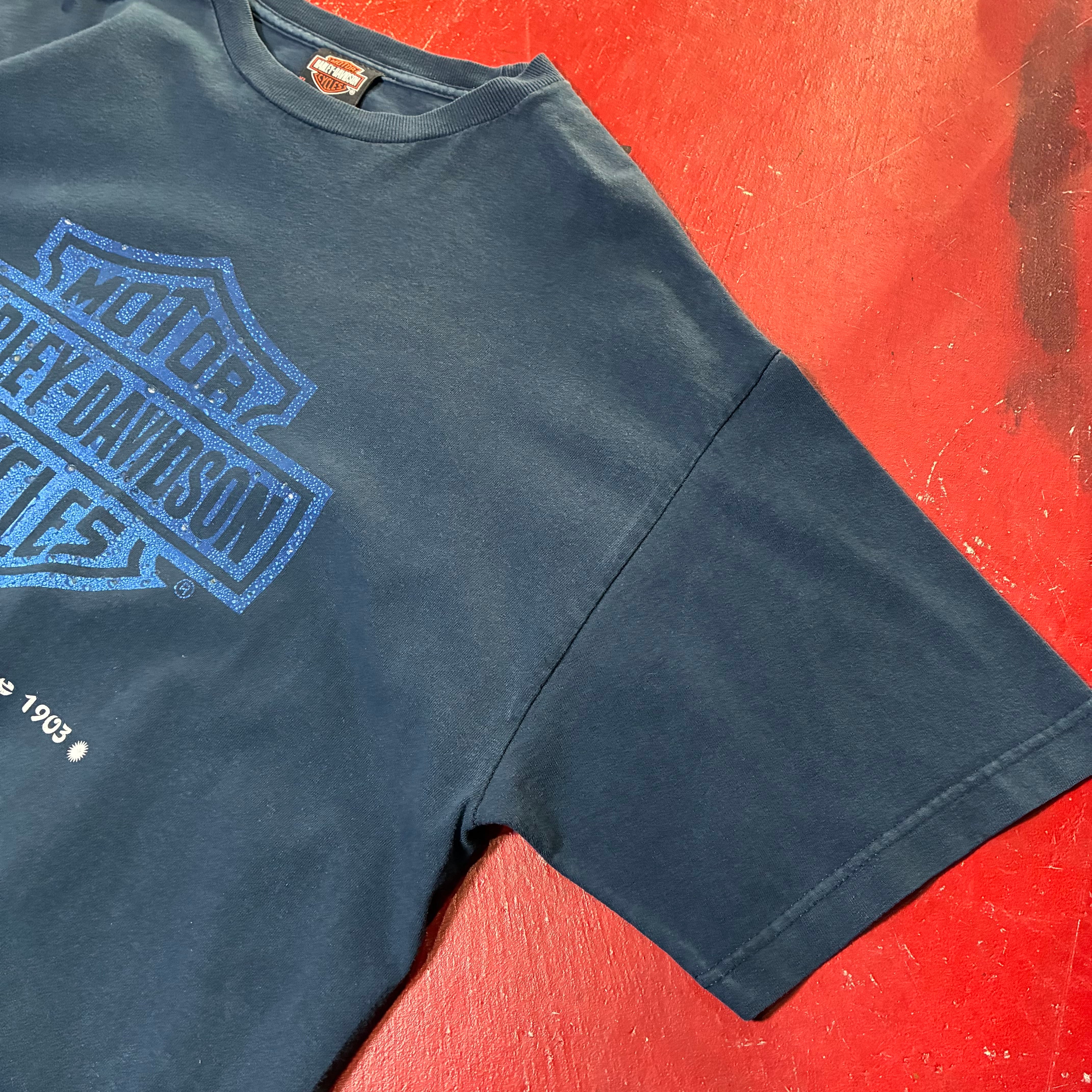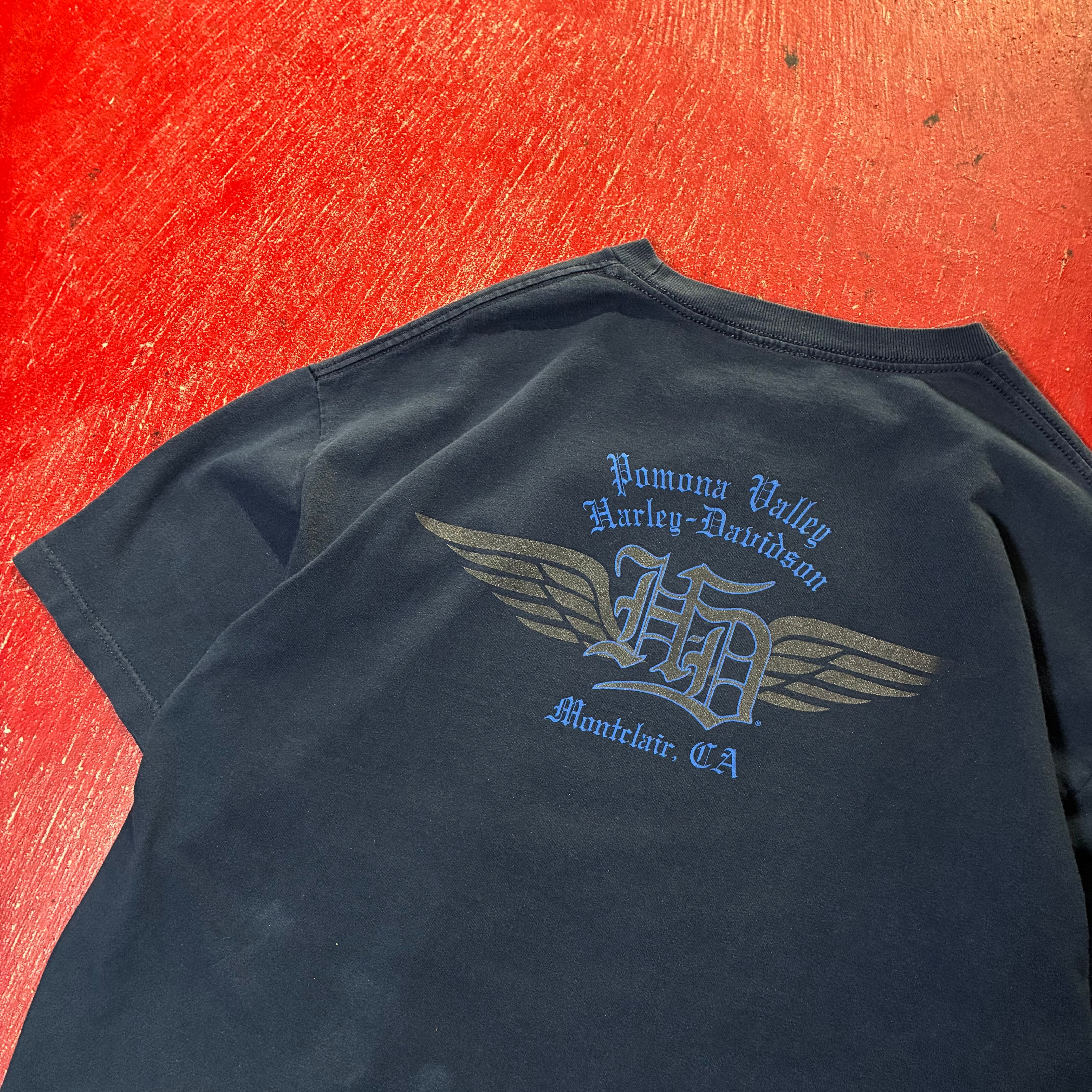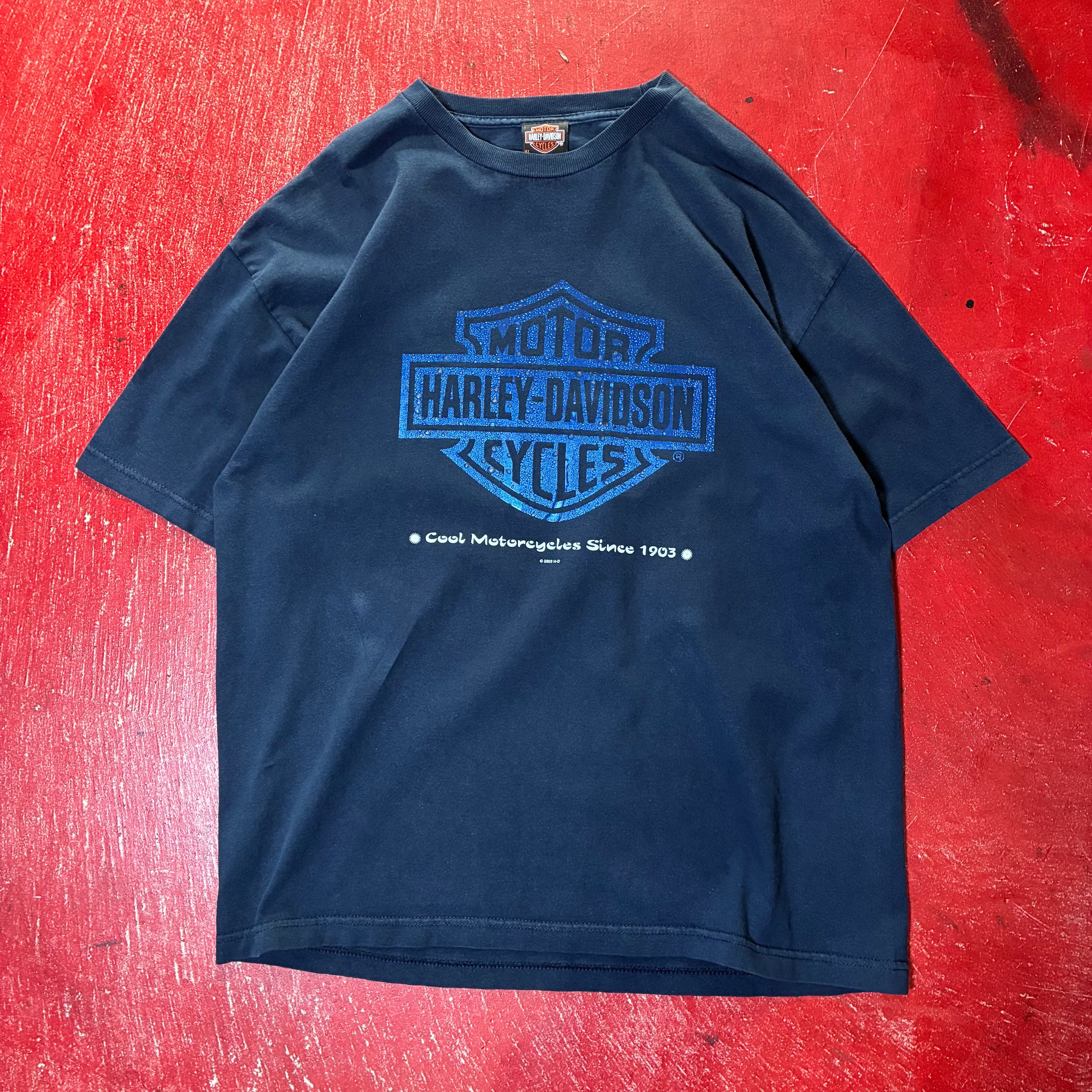 HarleyDavidson ハーレーダビッドソン ウィングロゴ ラメプリント シルバープリント ブラックT ブルーロゴ バックプリント ディーラーT フェードT アメカジ バイカー ストリート
