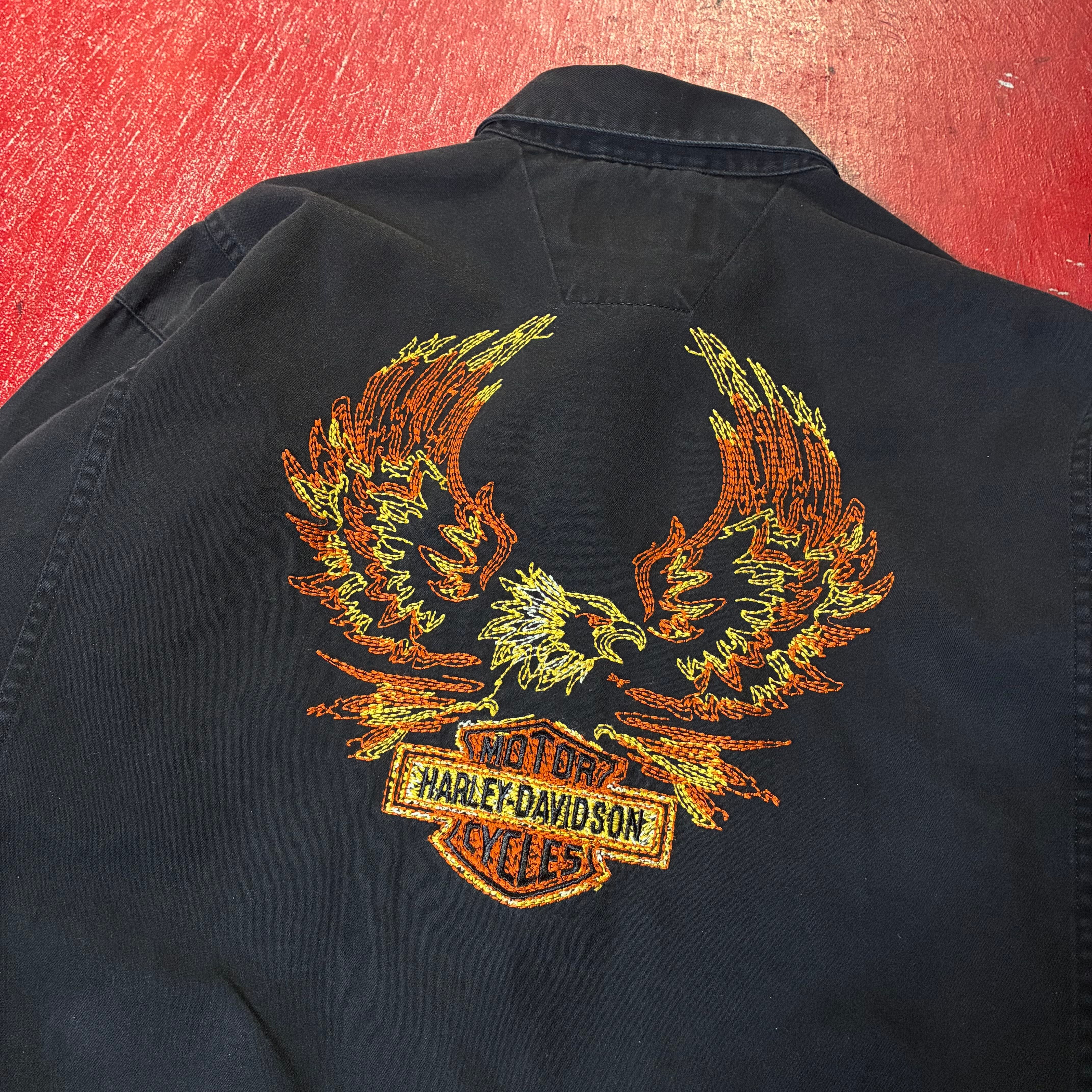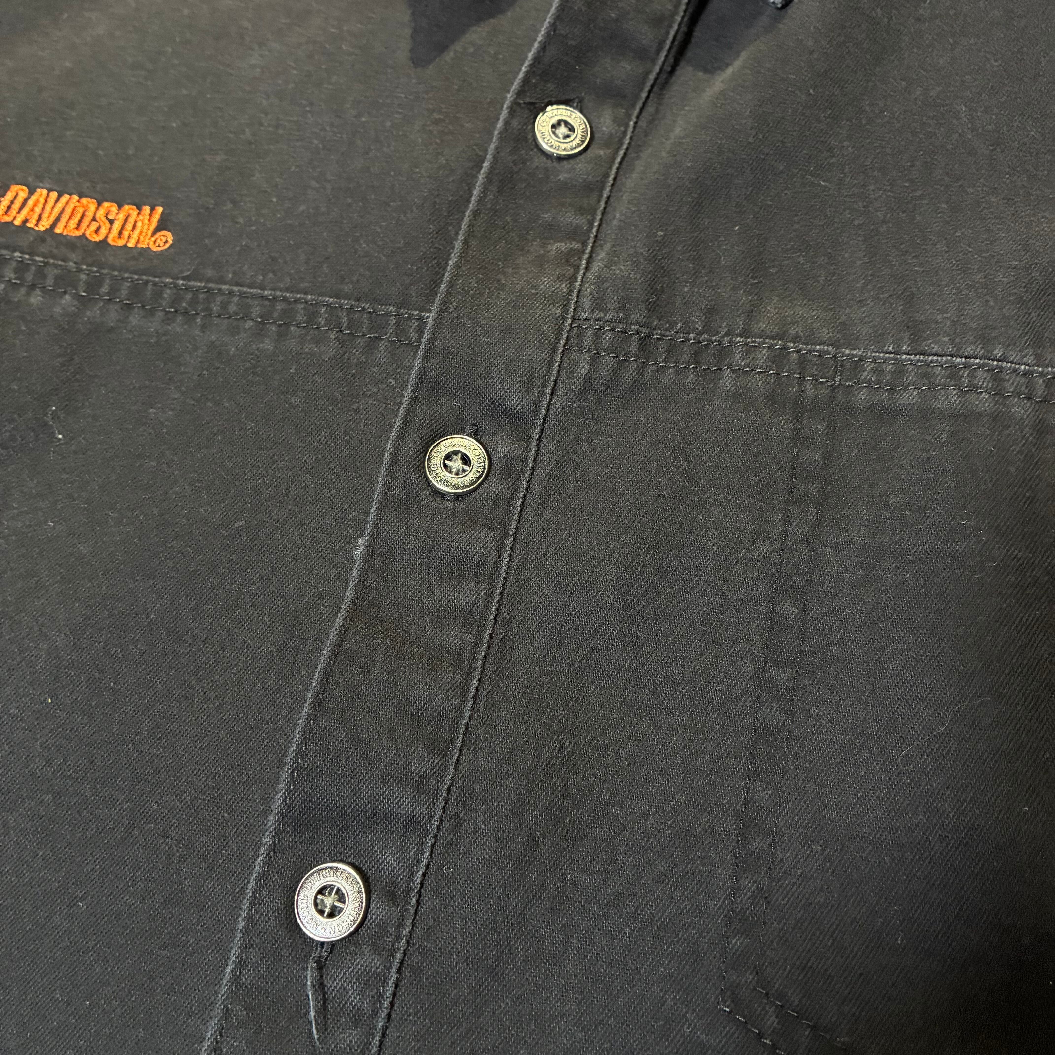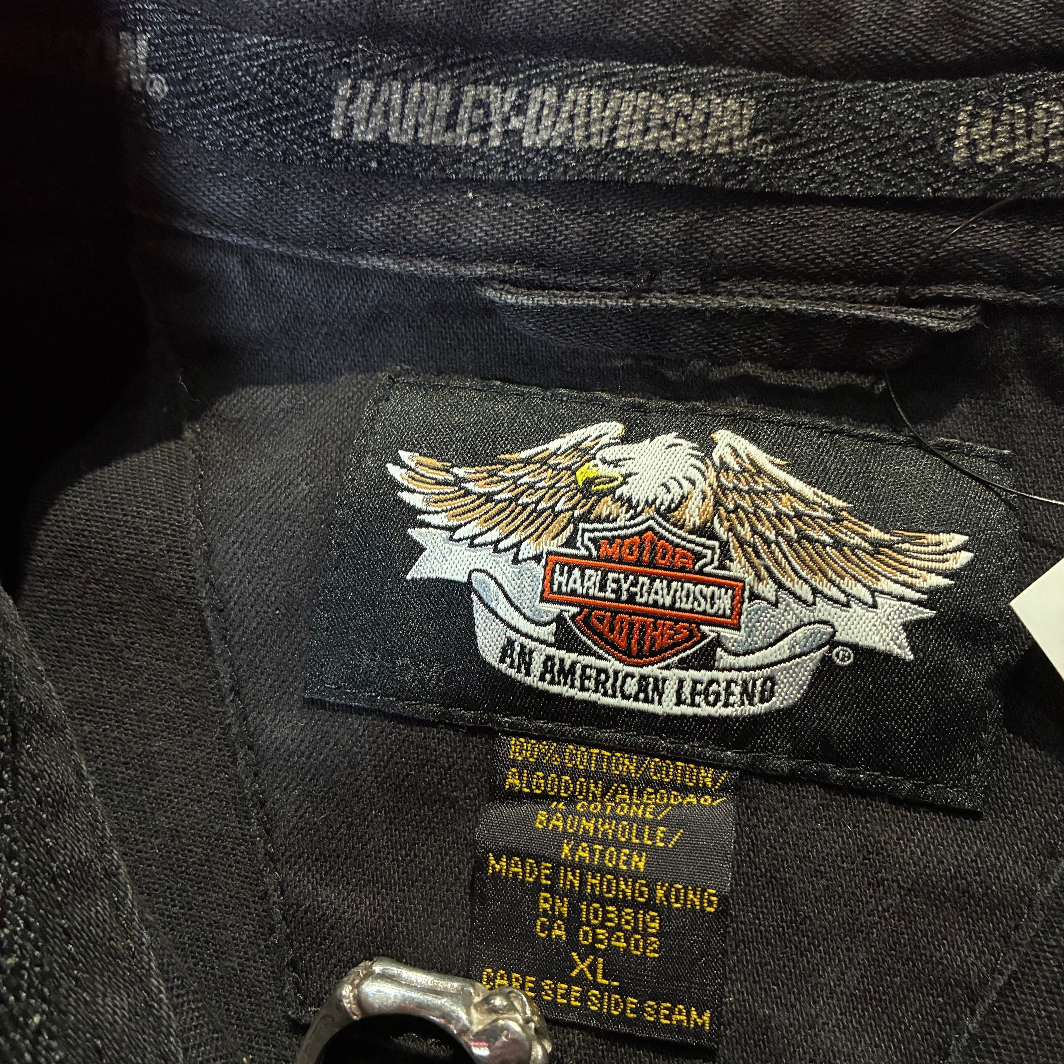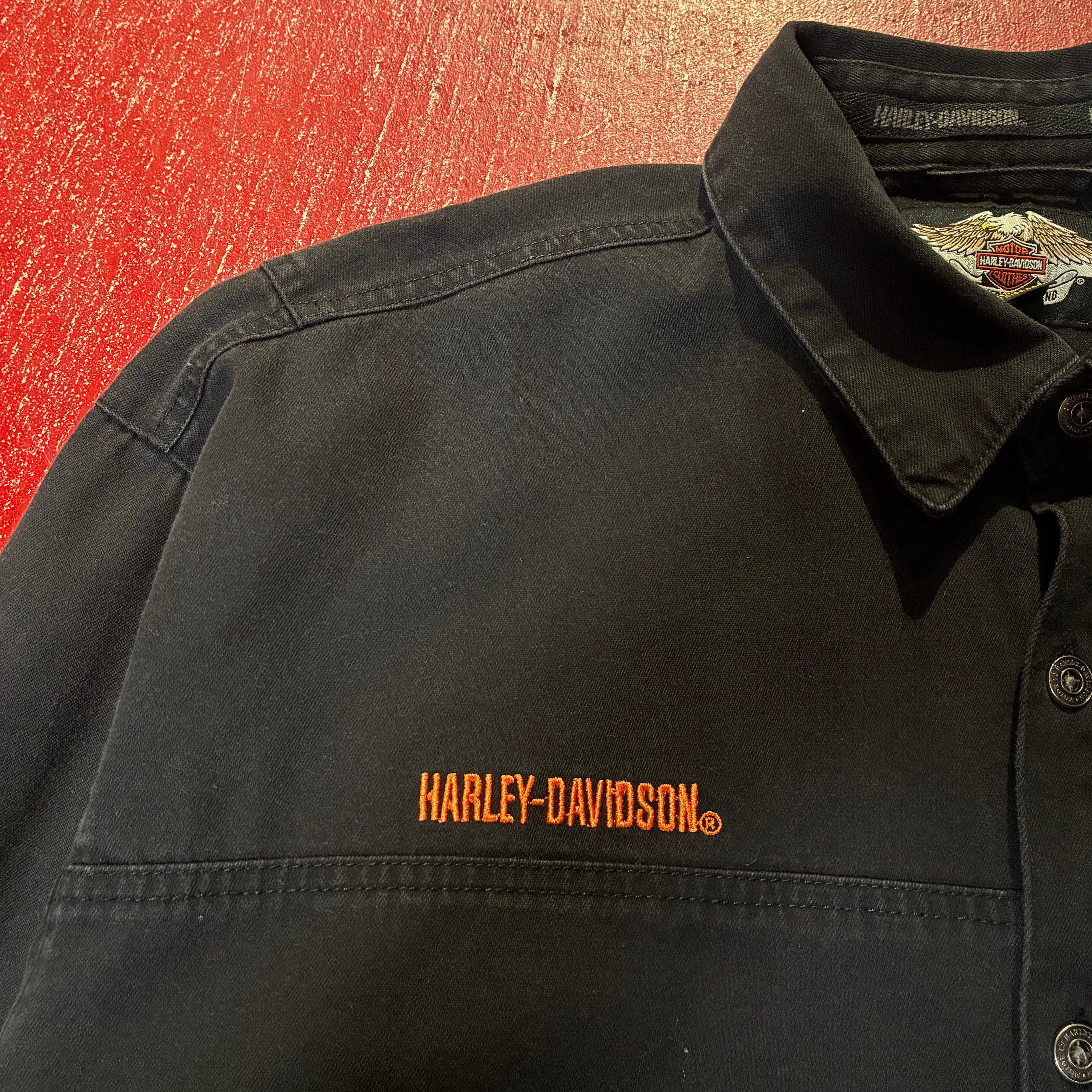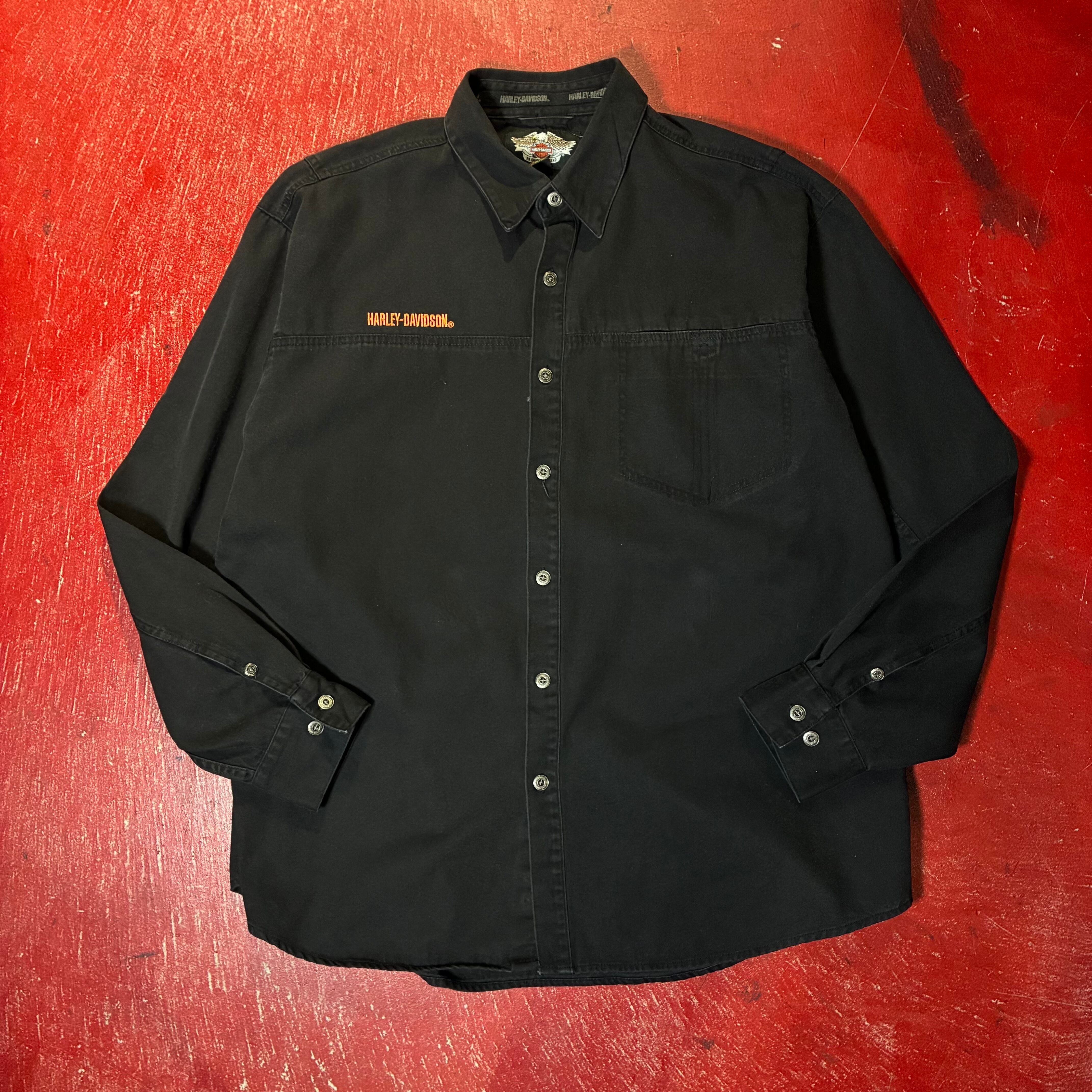 HarleyDavidson ハーレーダビッドソン 刺繍シャツ 長袖シャツ イーグル刺繍 バック刺繍 ブラックシャツ バイカー アメカジ ワークシャツ ストリート