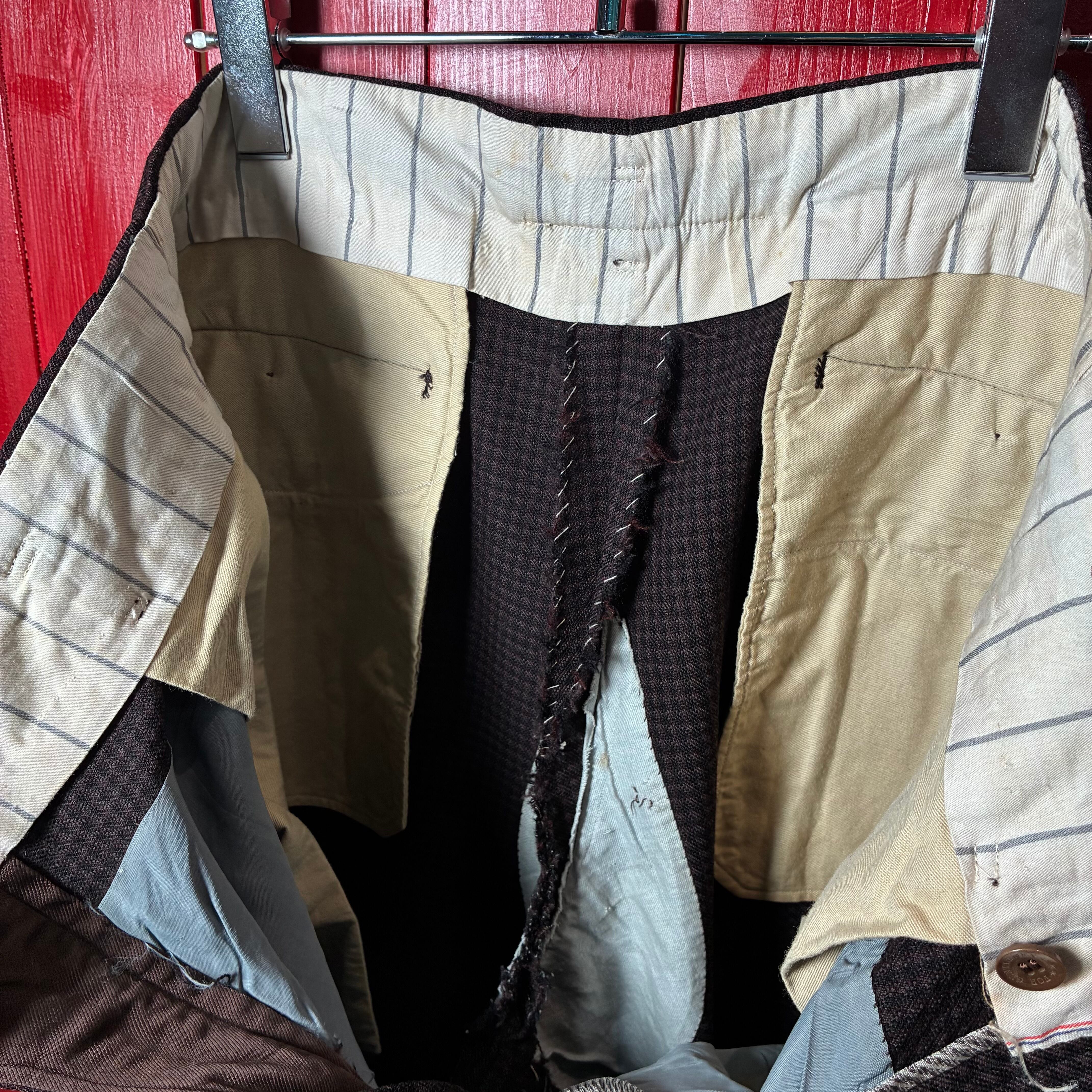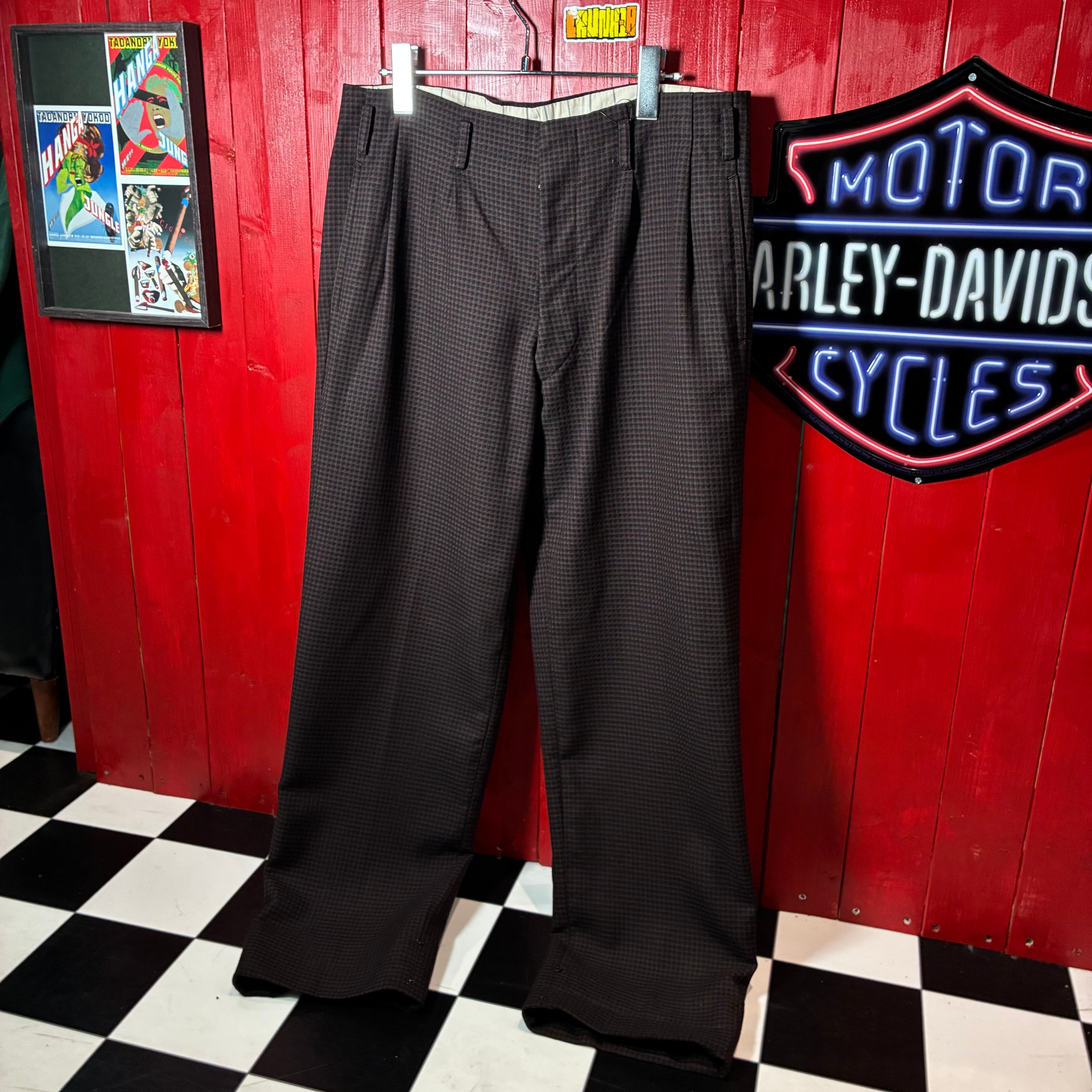 ヴィンテージ スラックス 70s 2タック TALONジップ ブラウン チェック ワイドパンツ